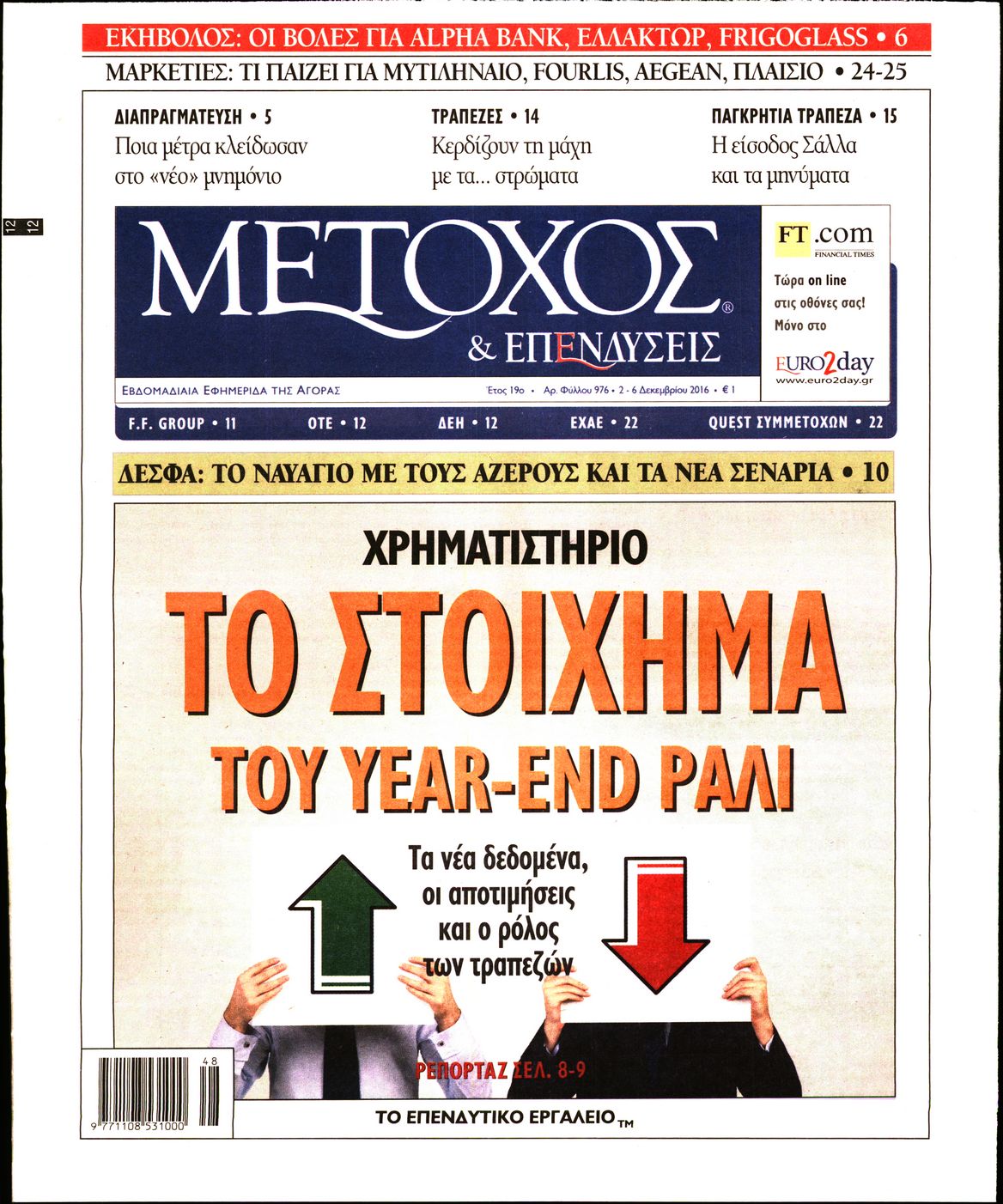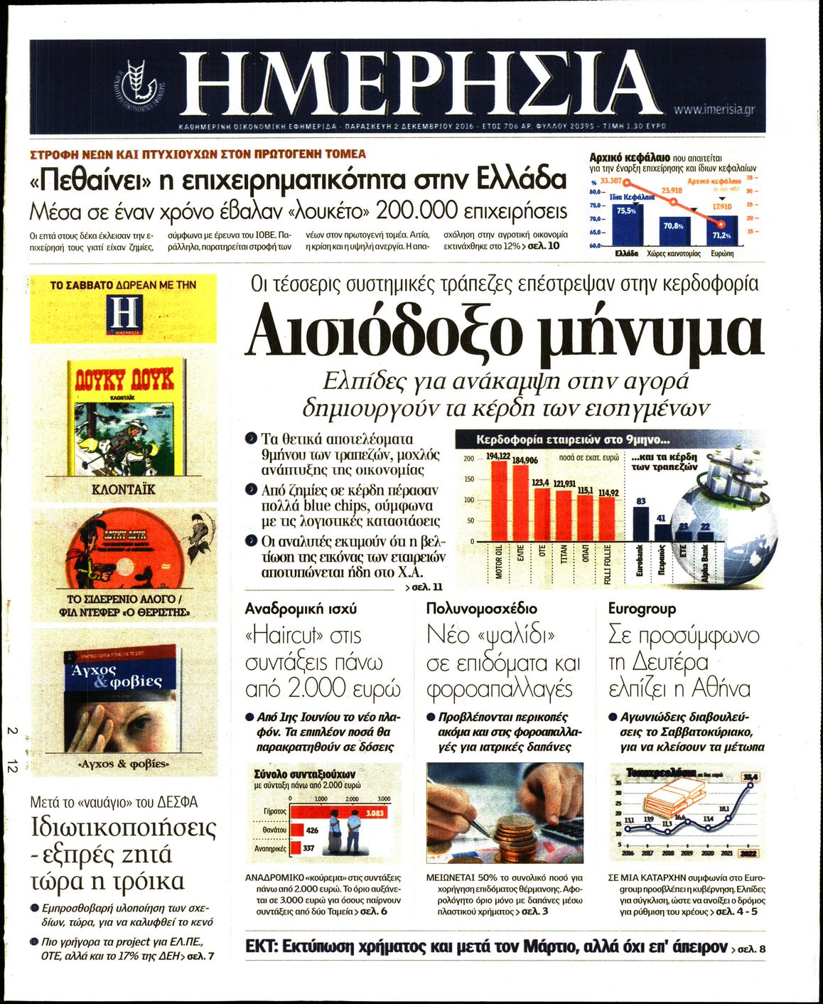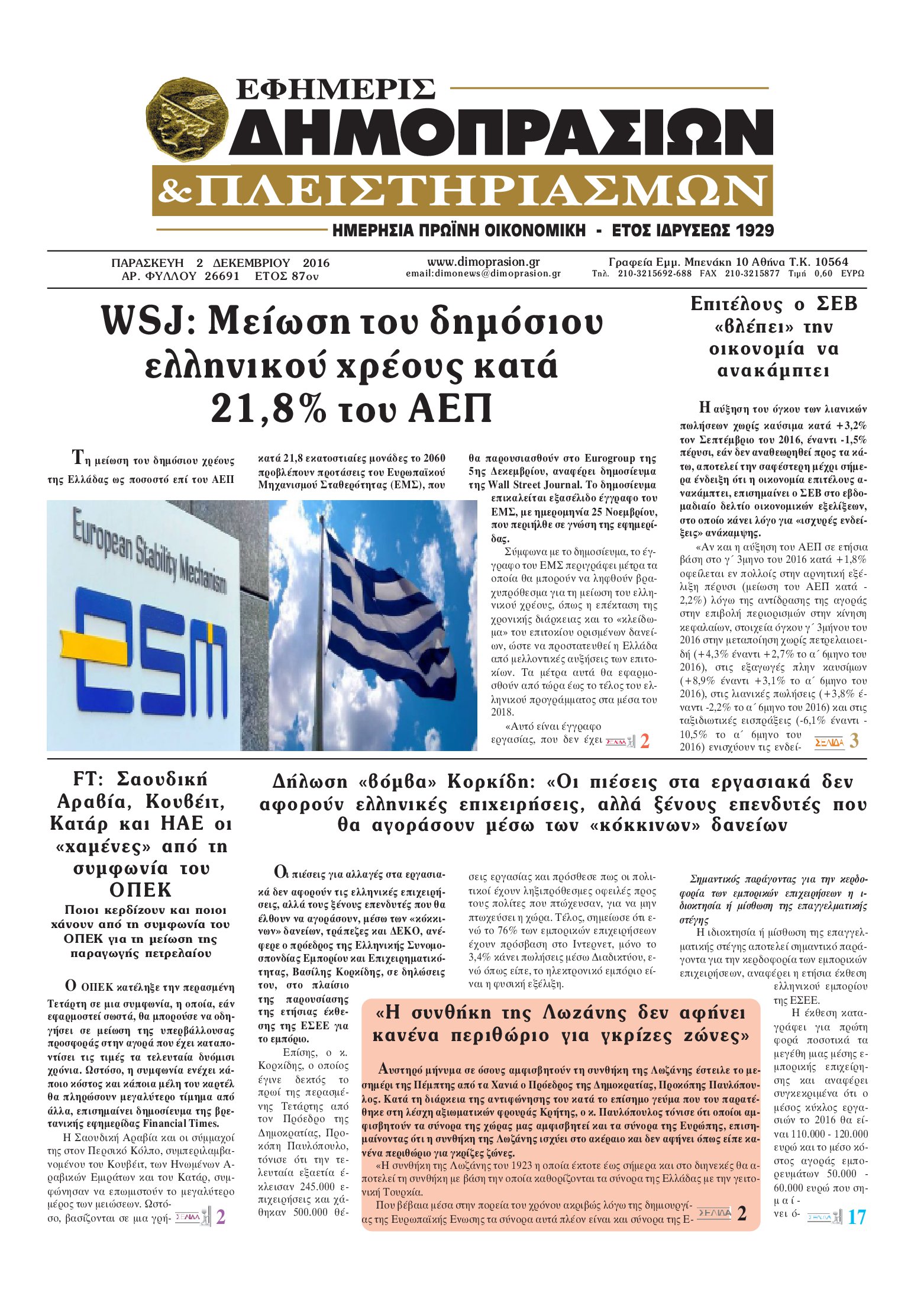 Οι οικονομικές εφημερίδες 2/12/2016 Enikos Newsroom 00:48, Παρασκευή 02 Δεκεμβρίου 2016 Media Διαβάστε τα σημερινά πρωτοσέλιδα των οικονομικών εφημερίδων: ΟΙΚΟΝΟΜΙΚΕΣ ΕΦΗΜΕΡΙΔΕΣ ΠΡΩΤΟΣΕΛΙΔΑ Μοιράσου το: σχολίασε κι εσύ (0 σχόλια) Ακολουθήστε το enikos.gr στο Google News και μάθετε πρώτοι όλες τις ειδήσεις Δείτε όλες τις τελευταίες ειδήσεις από την Ελλάδα και τον Κόσμο στο enikos.gr Ειδήσεις Ροή Ειδήσεων 1 ώρα πριν Έρευνα MRB: Η πρόθεση ψήφου και τα σημαντικότερα προβλήματα – Οι «λέξεις» που εκφράζουν τους πολίτες 1 ώρα πριν Αλαλούμ με τις πληρωμές στους αγρότες: Δεν καταβλήθηκε η Βασική Ενίσχυση, αλλά έγινε παρακράτηση της εισφοράς στον ΕΛΓΑ – Τι απαντά η κυβέρνηση 2 ώρες πριν Ανδρέας Παναγιωτόπουλος: Δεν ψήφισε στον προϋπολογισμό για να πάει στην εκδήλωση του Αλέξη Τσίπρα – «Μείζονος πολιτικής σημασίας η μεγάλη συγκέντρωση που έκανε» 3 ώρες πριν Ρομπ Ράινερ: Το δείπνο με τους Ομπάμα που δεν έγινε ποτέ και νέα στοιχεία για τον «καβγά» στο πάρτι – Βίντεο με τον γιο του να περιφέρεται κοντά στο σπίτι της τραγωδίας 2 ώρες πριν Κυψέλη: Μαθητές κλείδωσαν τους καθηγητές μέσα στο Γυμνάσιο μετά την επίθεση με μαχαίρι 58 λεπτά πριν Τα 4 ζώδια που ξαναβρίσκουν τον εαυτό τους – «Μπαίνετε επιτέλους στην ουσία των πραγμάτων» 5 ώρες πριν Οπτική ψευδαίσθηση: Μόνο αν είσαι ο Σέρλοκ Χολμς θα βρεις τον σκύλο σε 15 δευτερόλεπτα 3 ώρες πριν Νεολιθικός σκύλος βρέθηκε προσεκτικά θαμμένος στον βυθό λίμνης – Δίπλα του βρέθηκε ένα στιλέτο 2 ώρες πριν Έλαβε τελεσίγραφο από τη σύντροφό του – «Μου είπε πως ή θα της κάνω πρόταση στα δύο χρόνια σχέσης ή θα με χωρίσει» 2 λεπτά πριν ΕΕ: Συνάντηση με τους ηγέτες των Δυτικών Βαλκανίων πριν από τη Σύνοδο Κορυφής – Οι χώρες που έχουν προβάδισμα ένταξης 8 λεπτά πριν Θεσσαλονίκη: Έξι λεωφορειακές γραμμές σε 24ωρη λειτουργία μέσα στις γιορτές 13 λεπτά πριν Ταλαιπωρία για επιβάτες του Προαστιακού λόγω τεχνικού προβλήματος – Αμαξοστοιχία έφτασε στον προορισμό της με καθυστέρηση 87 λεπτών 18 λεπτά πριν Εξεταστική ΟΠΕΚΕΠΕ – Μυλωνάκης: «Ουδέποτε είχα πληροφόρηση ή ενημέρωσα οποιονδήποτε για επισυνδέσεις της δικογραφίας» 23 λεπτά πριν «Δεν είχα κλάψει από τότε που διαγνώστηκα με καρκίνο, ώσπου ένα τηλεφώνημα με έκανε να λυγίσω» – Η συγκλονιστική εξομολόγηση ενός άνδρα ENIKOS NETWORK Ανησυχητική αύξηση της υπέρτασης στα παιδιά – Πώς θα τα προστατέψουμε; Αδενώματα Υπόφυσης: Μια πάθηση καλοήθης, αλλά όχι αθώα ΕΕ: Γιατί η Ελλάδα ξεχωρίζει στις ασφαλείς συναλλαγές-πληρωμές στην ΕΕ Ειδικό επιδοτούμενο πρόγραμμα κατάρτισης της ΔΥΠΑ για ανέργους: Αρχίζει σήμερα η υποβολή ενστάσεων-Ποιους αφορά Σύγχρονος Νοστράδαμος: Προειδοποιεί για «μεγάλο γεγονός» τους επόμενους μήνες που θα συγκλονίσει τη Βρετανία και τον κόσμο Τεστ παρατηρητικότητας: Μπορείτε να βρείτε τις 3 διαφορές στις εικόνες με έναν πιγκουίνο σε 14 δευτερόλεπτα περισσότερα 09:08 , Τετάρτη 17 Δεκεμβρίου 2025 Τηλεθέαση (16/12): Ανακατατάξεις στην πρωινή ψυχαγωγική ζώνη Ξεκάθαρη πρωτιά στην τηλεθέαση για την «Super Κατερίνα» στο δυναμικό κοινό με ποσοστό 18,5%, α... 08:00 , Τετάρτη 17 Δεκεμβρίου 2025 Την Κυριακή με τη Realnews: Δωροεπιταγή 10€ Δωροεπιταγή αξίας 10€ για αγορές άνω των 60€ από τα πολυκαταστήματα FactoryOutlet H προσφορά ι... 07:00 , Τετάρτη 17 Δεκεμβρίου 2025 Την Κυριακή με τη Realnews: Ό,τι και αν αγοράσεις, σκανάρεις και κερδίζεις! Την Κυριακή με τη Realnews: Ό,τι και αν αγοράσεις, σκανάρεις και κερδίζεις! Με το PADU app, το... 05:48 , Τετάρτη 17 Δεκεμβρίου 2025 Ο