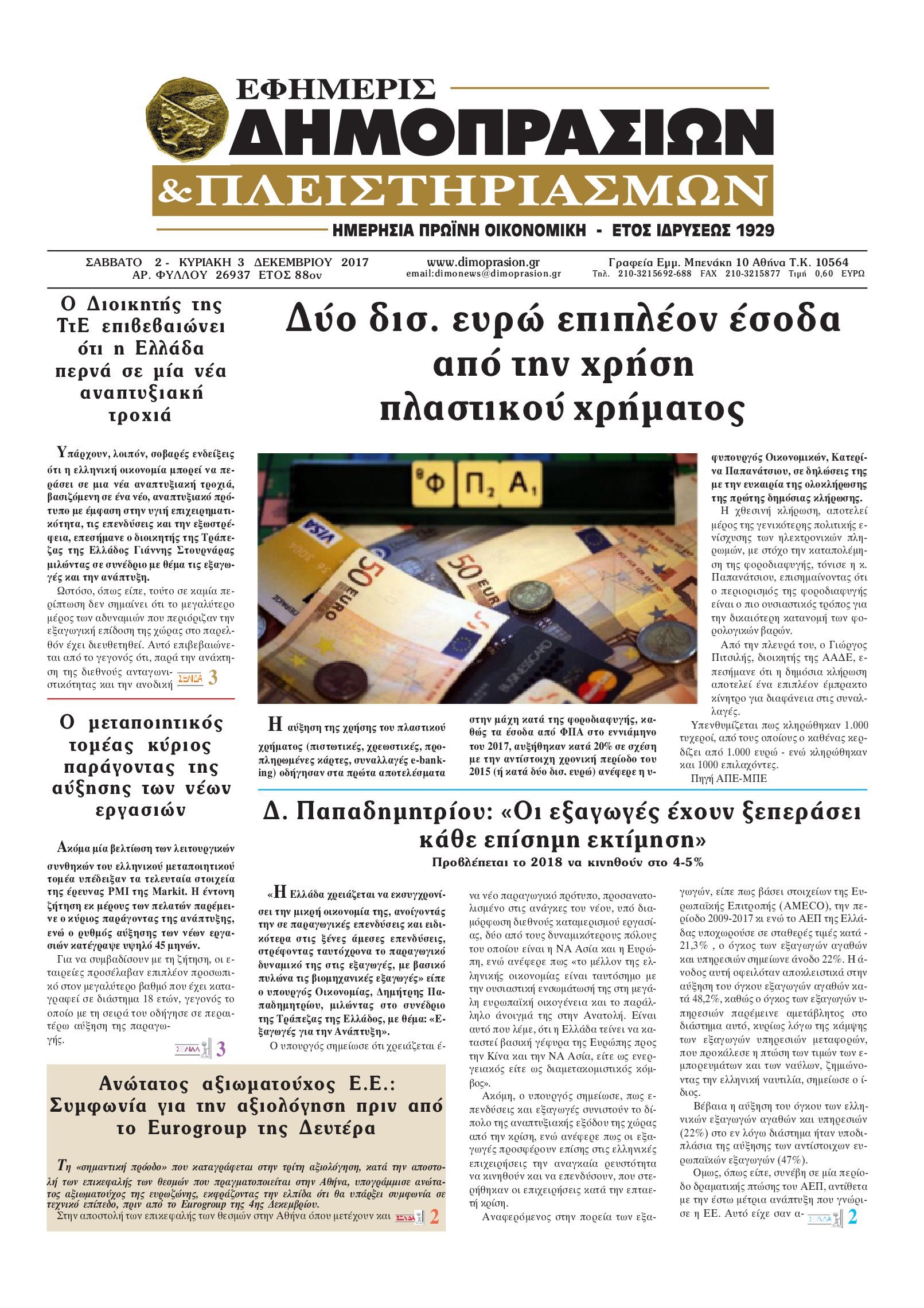 Οι οικονομικές εφημερίδες 2/12/2017 Enikos Newsroom 07:29, Σάββατο 02 Δεκεμβρίου 2017 Media Διαβάστε τα σημερινά πρωτοσέλιδα των οικονομικών εφημερίδων: ΟΙΚΟΝΟΜΙΚΕΣ ΕΦΗΜΕΡΙΔΕΣ ΠΡΩΤΟΣΕΛΙΔΑ Μοιράσου το: σχολίασε κι εσύ (0 σχόλια) Ακολουθήστε το enikos.gr στο Google News και μάθετε πρώτοι όλες τις ειδήσεις Δείτε όλες τις τελευταίες ειδήσεις από την Ελλάδα και τον Κόσμο στο enikos.gr Ειδήσεις Ροή Ειδήσεων 2 ώρες πριν Αυξάνουν την πίεση προς την κυβέρνηση οι αγρότες: Κλείνουν παρακαμπτήριους και ανοίγουν διόδια – Τι θα γίνει τις γιορτές 1 ώρα πριν ΟΠΕΚΕΠΕ: Προφυλακιστέος ο φερόμενος αρχηγός και ο λογιστής της εγκληματικής οργάνωσης 2 ώρες πριν Φοινικούντα: Το Σάββατο απολογείται ο 30χρονος γιος γνωστού επιχειρηματία της Πλάκας που παραδόθηκε – Όσα είπε στους αστυνομικούς και ο ρόλος του στο έγκλημα 2 ώρες πριν Μπορεί ο Μαδούρο να αντέξει τον αποκλεισμό του Τραμπ; Τι θα χρειαστεί η Ουάσινγκτον για να τον ανατρέψει 3 ώρες πριν Πρίγκιπας Ουίλιαμ – Κέιτ: Η νέα οικογενειακή φωτογραφία για τις Χριστουγεννιάτικες κάρτες του 2025 3 ώρες πριν Ύπνος: Η απλή βραδινή ρουτίνα για να προστατεύσετε τα μαλλιά σας από το κρύο κατά τη διάρκεια του χειμώνα 4 ώρες πριν Manifesting: Πώς να συναντήσετε τον σύντροφο της ζωής σας, ανάλογα με τον μήνα γέννησής σας 2 ημέρες πριν 20 χρόνια τα Χριστούγεννα ξεκινούν στα Public με μεγάλη ποικιλία σε δώρα! 2 ώρες πριν Αρχαιολόγοι ανακάλυψαν ρωμαϊκά τεχνουργήματα από μια πόλη που δεν υπήρξε ποτέ – Τα τρία εντυπωσιακά κτίρια και ο αμφορέας με τις… σαρδέλες 41 δευτερόλεπτα πριν Conference League: Με Νόα, Ντρίτα, Άλκμααρ ή Τσέλιε στους «16» η ΑΕΚ 9 λεπτά πριν Conference League: Απευθείας στους «16» η ΑΕΚ Λάρνακας και η Ρακόβ των Σβάρνα και Κωνσταντόπουλου – Τα αποτελέσματα και η βαθμολογία, 3η η ΑΕΚ 19 λεπτά πριν Σε ομάδες που συνδέονται με το ρωσικό κράτος αποδίδει η Δανία δύο κυβερνοεπιθέσεις που δέχθηκε 34 λεπτά πριν Βαθμολογία UEFA: Η Πολωνία προσπέρασε την Ελλάδα 50 λεπτά πριν Conference League: Οι ομάδες που προκρίθηκαν στους «16» και τα «ζευγαρώματα» στα νοκ άουτ ENIKOS NETWORK Σε περίοδο αυξημένης δραστηριότητας η γρίπη στην Ελλάδα-Μέτρα προστασίας από τον ΕΟΔΥ Σκέφτεστε συνέχεια συζητήσεις που έχετε κάνει; Τι σημαίνει αυτό, σύμφωνα με ειδικό Στεγαστικό: Τι λέει η ΠΟΜΙΔΑ για τα νέα μέτρα που ανακοίνωσε ο Κυριάκος Μητσοτάκης Λαγκάρντ: Αισιόδοξη για την ανάπτυξη της Ευρωζώνης, αβέβαιη για τον πληθωρισμό Χαρτογραφώντας το «σημείο χωρίς επιστροφή»: Για πρώτη φορά αποκαλύπτεται με λεπτομέρεια το ακανθώδες όριο της ατμόσφαιρας τ... Η Google καταργεί τη λειτουργία «dark web report» – Πώς θα μπορούν οι χρήστες να διαγράφουν τα δεδομένα τους περισσότερα 17:45 , Πέμπτη 18 Δεκεμβρίου 2025 ROUK ZOUK: Εορταστικό επεισόδιο με καλεσμένους τους πρωταγωνιστές του «Γιατί ρε πατέρα» Το Σάββατο 20 Δεκεμβρίου στις 21:00, η Ζέτα Μακρυπούλια υποδέχεται εκλεκτούς ηθοποιούς που όλο... 17:20 , Πέμπτη 18 Δεκεμβρίου 2025 Άγιος έρωτας: Η Χριστίνα εξομολογείται στον πατέρα Νικόλαο, απόψε στις 21:00 στον Alpha Η Νότα αποφασίζει να εκδικηθεί τον Πέτρο και τον Στέφανο, για χάρη του Λούη, όμως τα πράγματα ... 16:50 , Πέμπτη 18 Δεκεμβρίου 2025 Να μ’ αγαπάς: Ζωή και Φωτεινή συμφιλιώνονται ως μάνα με κόρη, απόψε στις 20:00 Η ταυτότητα του Άγγελου αποκαλύπτεται στο νέο επεισόδιο της σειράς “Να μ’ αγαπάς... 15:52 , Πέμπτη 18 Δεκεμβρίου 2025 Το Σπίτι Δίπλα Στο Ποτάμι: Το καθηλωτικό τελευταίο επεισόδιο για το 2025 απόψε στις 22:30 Καθηλώνει το σημερινό επεισόδιο της σειράς “Το Σπίτι Δίπλα Στο Πο