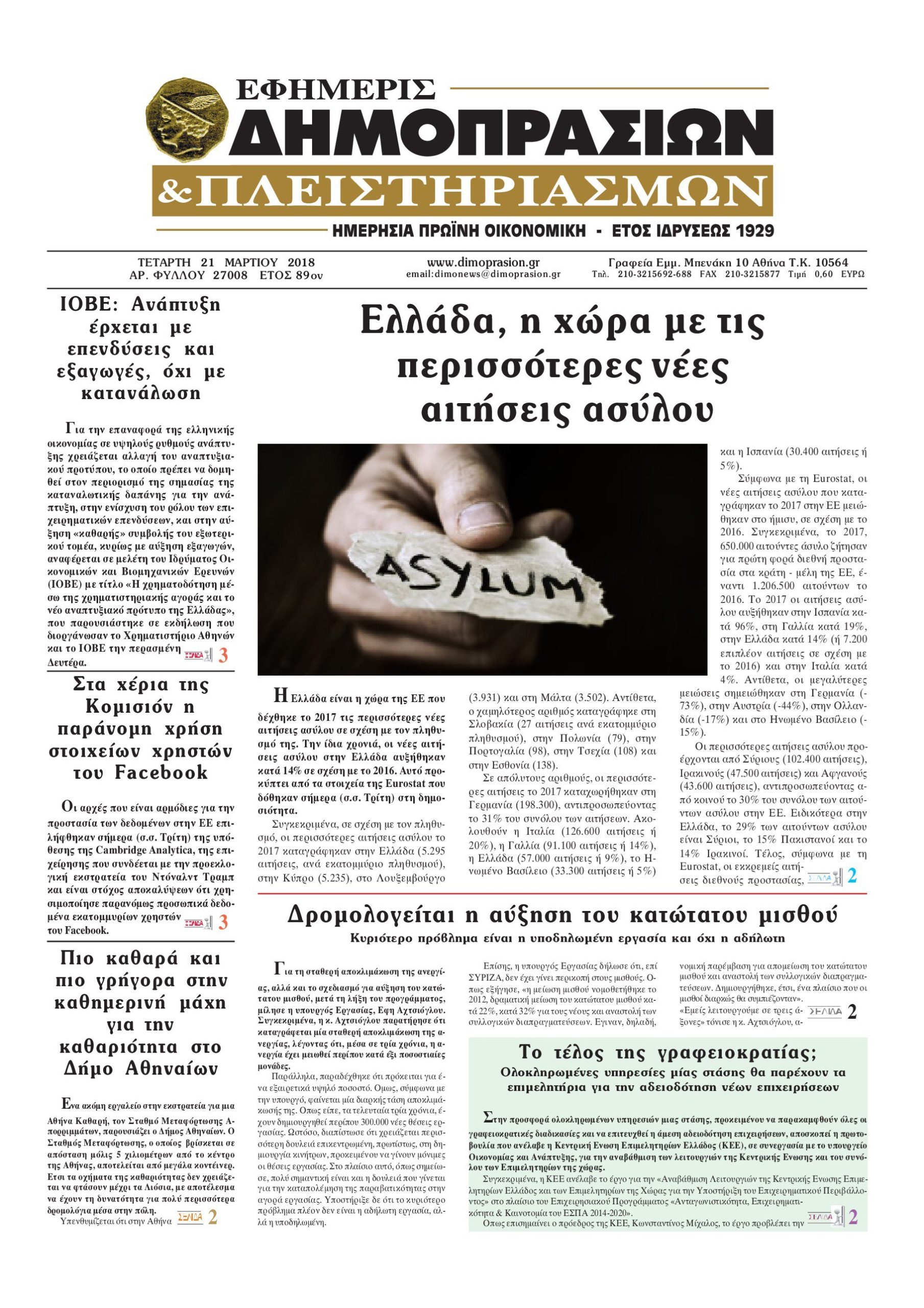 Οι οικονομικές εφημερίδες 21/3/2018 Enikos Newsroom 07:59, Τετάρτη 21 Μαρτίου 2018 Media Διαβάστε τα σημερινά πρωτοσέλιδα των οικονομικών εφημερίδων: ΟΙΚΟΝΟΜΙΚΕΣ ΕΦΗΜΕΡΙΔΕΣ ΠΡΩΤΟΣΕΛΙΔΑ Μοιράσου το: σχολίασε κι εσύ (0 σχόλια) Ακολουθήστε το enikos.gr στο Google News και μάθετε πρώτοι όλες τις ειδήσεις Δείτε όλες τις τελευταίες ειδήσεις από την Ελλάδα και τον Κόσμο στο enikos.gr Ειδήσεις Ροή Ειδήσεων 3 ώρες πριν Αγρότες: «Όχι στον διάλογο, μας εμπαίζει η κυβέρνηση» – Αποφάσισαν κλιμάκωση των κινητοποιήσεων, τι θα γίνει τα Χριστούγεννα 3 ώρες πριν Την πρώτη Belharra παρέλαβε η χώρα μας, υψώθηκε η ελληνική σημαία στη φρεγάτα «Κίμων» – Δένδιας: «Το ισχυρότερο Πολεμικό Ναυτικό που είχε ποτέ ο ελληνισμός» 1 ώρα πριν Γιώργος Μαζωνάκης: «Έχει υποστεί ένα σωρό εκβιαστικές πρακτικές – Του είπαν ότι θα του βάλουν τον συγκεκριμένο άνθρωπο να τον καταγγείλει» 3 ώρες πριν Μιχάλης Χουρδάκης: «Είμαι διαθέσιμος να συμβάλω στην προσωρινή κάλυψη του ιατρείου της Ψερίμου» – Η επιστολή στον Άδωνι Γεωργιάδη 3 ώρες πριν Εξώδικο Γεωργιάδη στην Κωνσταντοπούλου – «Με κατηγόρησε ότι έχω καταδικαστεί για παιδεραστία» 51 λεπτά πριν Γάμος: 11 ψυχρές αλλά ευγενικές φράσεις, που λέει ένας άνδρας όταν σκέφτεται τον χωρισμό 4 ώρες πριν Τα 5 ζώδια που θα ευνοηθούν στα οικονομικά τους το 2026 – «Τραβούν το χρήμα σαν μαγνήτες» 5 ώρες πριν Αυτό που κρύβεται κάτω από τη Γροιλανδία θα μπορούσε να ανατρέψει όσα γνωρίζουμε για την άνοδο της στάθμης των θαλασσών 1 ημέρα πριν 20 χρόνια τα Χριστούγεννα ξεκινούν στα Public με μεγάλη ποικιλία σε δώρα! 6 λεπτά πριν Στη φυλακή ο «Έλληνας Εσκομπάρ» και τρεις συνεργοί του για το φορτίο με την κοκαΐνη – Τι υποστήριξε στην απολογία του 11 λεπτά πριν ΕΕ: Καλεί τα Σκόπια να σέβονται τις δεσμεύσεις από τη διαδικασία ένταξης και το Διεθνές Δίκαιο – Η χρηματοδότηση του Διαδρόμου Χ 17 λεπτά πριν Σοκ στη Σουηδία: 12χρονος πληρωμένος δολοφόνος σκότωσε λάθος άτομο 21 λεπτά πριν FIFA: Έτοιμη να… επανεντάξει τη Ρωσία από το 2026 26 λεπτά πριν Live η κίνηση: Στο «κόκκινο» Κηφισός, Κηφισίας και οι δρόμοι στο κέντρο – Καθυστερήσεις και στην Αττική Οδό ENIKOS NETWORK Ξεκίνησε η «επέλαση» της γρίπης στην Ελλάδα-Ποιοι κινδυνεύουν ΕΟΔΥ: Δωρεάν τεστ για HIV, Ηπατίτιδες, Σύφιλη, Χλαμύδια, Γονόρροια Κλιμάκωση των κινητοποιήσεων αποφάσισαν οι αγρότες, κλείνουν παρακαμπτήριους την Παρασκευή – Τι απαντά η κυβέρνηση Ευλογιά αιγοπροβάτων: Νέες αποζημιώσεις ύψους 26,02 εκατ. ευρώ σε κτηνοτρόφους – Η κατανομή ανά Περιφέρεια Χαρτογραφώντας το «σημείο χωρίς επιστροφή»: Για πρώτη φορά αποκαλύπτεται με λεπτομέρεια το ακανθώδες όριο της ατμόσφαιρας τ... Η Google καταργεί τη λειτουργία «dark web report» – Πώς θα μπορούν οι χρήστες να διαγράφουν τα δεδομένα τους περισσότερα 17:45 , Πέμπτη 18 Δεκεμβρίου 2025 ROUK ZOUK: Εορταστικό επεισόδιο με καλεσμένους τους πρωταγωνιστές του «Γιατί ρε πατέρα» Το Σάββατο 20 Δεκεμβρίου στις 21:00, η Ζέτα Μακρυπούλια υποδέχεται εκλεκτούς ηθοποιούς που όλο... 17:20 , Πέμπτη 18 Δεκεμβρίου 2025 Άγιος έρωτας: Η Χριστίνα εξομολογείται στον πατέρα Νικόλαο, απόψε στις 21:00 στον Alpha Η Νότα αποφασίζει να εκδικηθεί τον Πέτρο και τον Στέφανο, για χάρη του Λούη, όμως τα πράγματα ... 16:50 , Πέμπτη 18 Δεκεμβρίου 2025 Να μ’ αγαπάς: Ζωή και Φωτεινή συμφιλιώνονται ως μάνα με κόρη, απόψε στις 20:00 Η ταυτότητα του Άγγελου αποκαλύπτεται στο νέο επεισόδιο της σειράς “Να μ’ αγαπάς... 15:52 , Πέμπτη 18 Δεκεμβρίου 2025 Το Σπίτι Δίπλα Στο Ποτάμι: Το καθηλωτικό τελευταίο 