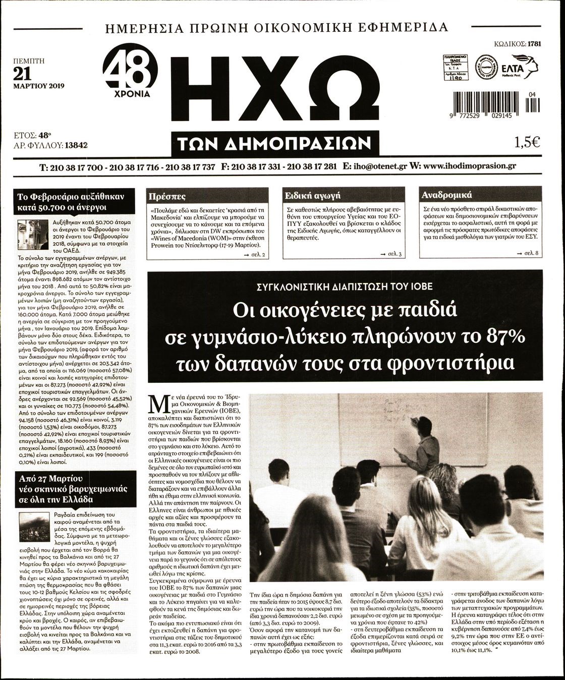 Οι οικονομικές εφημερίδες 21/3/2019 Enikos Newsroom 06:53, Πέμπτη 21 Μαρτίου 2019 Media Διαβάστε τα πρωτοσέλιδα των οικονομικών εφημερίδων: ΟΙΚΟΝΟΜΙΚΕΣ ΕΦΗΜΕΡΙΔΕΣ ΠΡΩΤΟΣΕΛΙΔΑ Μοιράσου το: σχολίασε κι εσύ (0 σχόλια) Ακολουθήστε το enikos.gr στο Google News και μάθετε πρώτοι όλες τις ειδήσεις Δείτε όλες τις τελευταίες ειδήσεις από την Ελλάδα και τον Κόσμο στο enikos.gr Ειδήσεις Ροή Ειδήσεων 45 λεπτά πριν Ευρωπαϊκή Ένωση: Χωρίς συμφωνία, για την μακροπρόθεσμη χρηματοδότηση της Ουκρανίας, ολοκληρώθηκε η Σύνοδος Κορυφής στις Βρυξέλλες 4 ώρες πριν ΟΠΕΚΕΠΕ: Προφυλακιστέος ο φερόμενος αρχηγός και ο λογιστής της εγκληματικής οργάνωσης 5 ώρες πριν Αυξάνουν την πίεση προς την κυβέρνηση οι αγρότες: Κλείνουν παρακαμπτήριους και ανοίγουν διόδια – Τι θα γίνει τις γιορτές 5 ώρες πριν Φοινικούντα: Το Σάββατο απολογείται ο 30χρονος γιος γνωστού επιχειρηματία της Πλάκας που παραδόθηκε – Όσα είπε στους αστυνομικούς και ο ρόλος του στο έγκλημα 4 ώρες πριν ΑΕΚ – Κραϊόβα 3-2: Επική ανατροπή και πρόκριση στους «16» του Conference League η Ένωση 5 ώρες πριν Αρχαιολόγοι ανακάλυψαν ρωμαϊκά τεχνουργήματα από μια πόλη που δεν υπήρξε ποτέ – Τα τρία εντυπωσιακά κτίρια και ο αμφορέας με τις… σαρδέλες 6 ώρες πριν Ύπνος: Η απλή βραδινή ρουτίνα για να προστατεύσετε τα μαλλιά σας από το κρύο κατά τη διάρκεια του χειμώνα 7 ώρες πριν Manifesting: Πώς να συναντήσετε τον σύντροφο της ζωής σας, ανάλογα με τον μήνα γέννησής σας 2 ημέρες πριν 20 χρόνια τα Χριστούγεννα ξεκινούν στα Public με μεγάλη ποικιλία σε δώρα! 49 δευτερόλεπτα πριν Στη Φλόριντα σήμερα οι διαβουλεύσεις σχετικά με τα επόμενα στάδια για τη Λωρίδα της Γάζας 5 λεπτά πριν Σίσσυ Τουμάση: «Είμαι ασθενοφοβική πάρα πολύ και με πιάνει μια παράνοια μ’ αυτό» 29 λεπτά πριν Ντόναλντ Τραμπ: Δεν χρειάζομαι την έγκριση του Κογκρέσου για να διατάξω στρατιωτικά πλήγματα στη Βενεζουέλα 45 λεπτά πριν Ευρωπαϊκή Ένωση: Χωρίς συμφωνία, για την μακροπρόθεσμη χρηματοδότηση της Ουκρανίας, ολοκληρώθηκε η Σύνοδος Κορυφής στις Βρυξέλλες 1 ώρα πριν GNTM: «Κλείδωσαν» οι τέσσερις φιναλίστ – Μεγάλη ανατροπή στις τελευταίες αποχωρήσεις ENIKOS NETWORK Σε περίοδο αυξημένης δραστηριότητας η γρίπη στην Ελλάδα-Μέτρα προστασίας από τον ΕΟΔΥ Σκέφτεστε συνέχεια συζητήσεις που έχετε κάνει; Τι σημαίνει αυτό, σύμφωνα με ειδικό Στεγαστικό: Τι λέει η ΠΟΜΙΔΑ για τα νέα μέτρα που ανακοίνωσε ο Κυριάκος Μητσοτάκης Λαγκάρντ: Αισιόδοξη για την ανάπτυξη της Ευρωζώνης, αβέβαιη για τον πληθωρισμό Χαρτογραφώντας το «σημείο χωρίς επιστροφή»: Για πρώτη φορά αποκαλύπτεται με λεπτομέρεια το ακανθώδες όριο της ατμόσφαιρας τ... Η Google καταργεί τη λειτουργία «dark web report» – Πώς θα μπορούν οι χρήστες να διαγράφουν τα δεδομένα τους περισσότερα 02:50 , Παρασκευή 19 Δεκεμβρίου 2025 GNTM: «Κλείδωσαν» οι τέσσερις φιναλίστ – Μεγάλη ανατροπή στις τελευταίες αποχωρήσεις Για προτελευταία φορά εμφανίστηκαν στο πλατό του GNTM οι φιναλίστ του φετινού κύκλου, το βράδυ... 17:45 , Πέμπτη 18 Δεκεμβρίου 2025 ROUK ZOUK: Εορταστικό επεισόδιο με καλεσμένους τους πρωταγωνιστές του «Γιατί ρε πατέρα» Το Σάββατο 20 Δεκεμβρίου στις 21:00, η Ζέτα Μακρυπούλια υποδέχεται εκλεκτούς ηθοποιούς που όλο... 17:20 , Πέμπτη 18 Δεκεμβρίου 2025 Άγιος έρωτας: Η Χριστίνα εξομολογείται στον πατέρα Νικόλαο, απόψε στις 21:00 στον Alpha Η Νότα αποφασίζει να εκδικηθεί τον Πέτρο και τον Στέφανο, για χάρη του Λούη, όμως τα πράγματα ... 16:50 , Πέμπτη 18 Δεκεμβρίου 2025 Να μ’ αγαπάς: Ζωή και Φωτεινή συμφιλιώνονται ως μάν