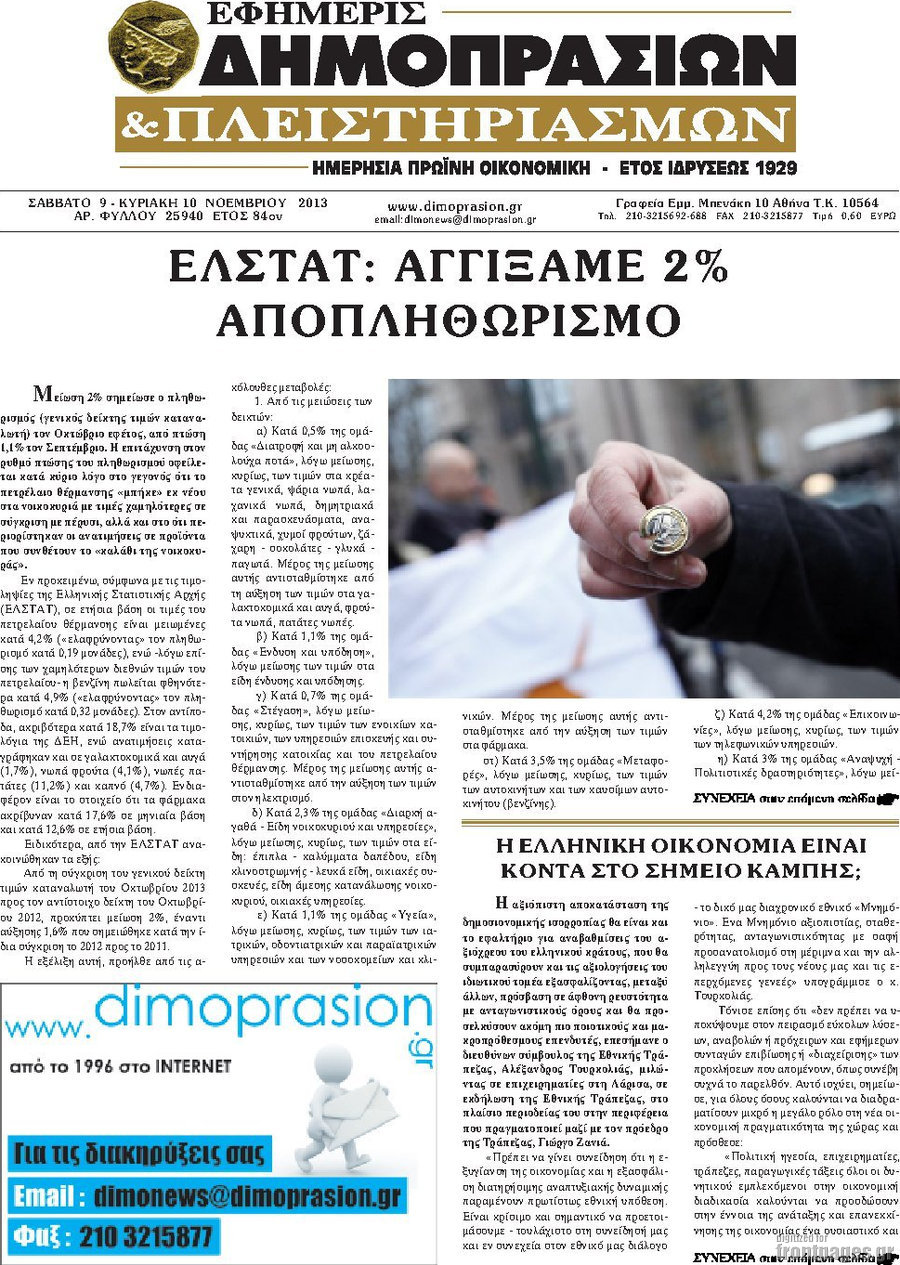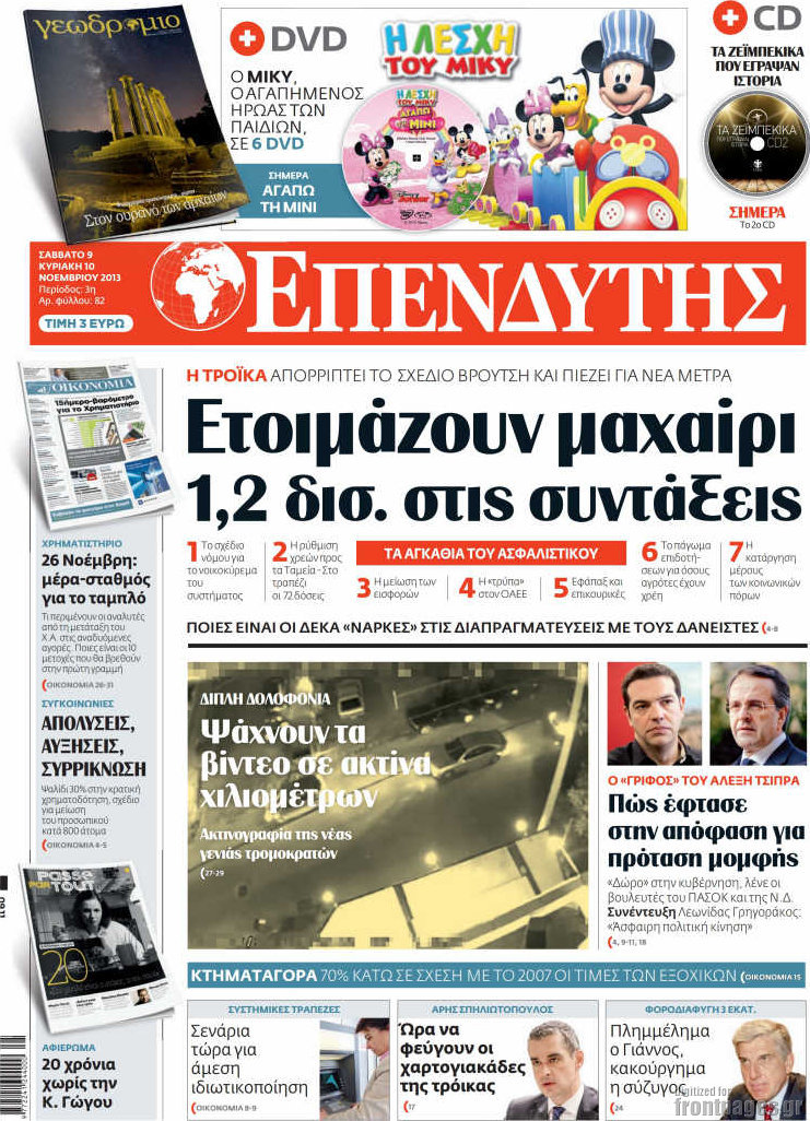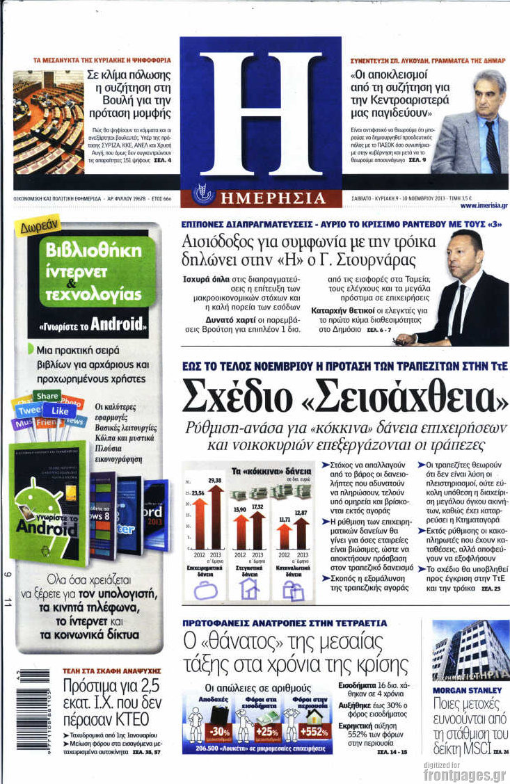 Οι οικονομικές εφημερίδες Enikos Newsroom 08:48, Σάββατο 09 Νοεμβρίου 2013 Media Οι οικονομικές εφημερίδες ΟΙΚΟΝΟΜΙΚΕΣ ΕΦΗΜΕΡΙΔΕΣ Μοιράσου το: σχολίασε κι εσύ (0 σχόλια) Ακολουθήστε το enikos.gr στο Google News και μάθετε πρώτοι όλες τις ειδήσεις Δείτε όλες τις τελευταίες ειδήσεις από την Ελλάδα και τον Κόσμο στο enikos.gr Ειδήσεις Ροή Ειδήσεων 8 ώρες πριν Μητσοτάκης: Αναγκαία η μεταρρύθμιση του πρωτογενούς τομέα – Τα 6 νέα μέτρα για το στεγαστικό και οι αναφορές σε «Ιθάκη» και «πολιτικούς του καναπέ» 7 ώρες πριν Δάνεια σε ελβετικό φράγκο: Τα βασικά σημεία της ρύθμισης – ανάσας για 40.000 δανειολήπτες – Αναλυτικός οδηγός με ερωτήσεις και απαντήσεις 7 ώρες πριν Κυψέλη: Εξιτήριο πήρε η 14χρονη μαθήτρια που μαχαιρώθηκε από την 16χρονη σε σχολείο – «Θέλω να βοηθήσω το παιδί, έχει μπλέξει με κακές παρέες» 6 ώρες πριν Τραμπ: Γιατί κατέθεσε τώρα την αγωγή κατά του BBC – Πώς η κίνησή του εξυπηρετεί το νέο δόγμα του για «αντίσταση» στην Ευρώπη, υπέρ των συντηρητικών 7 ώρες πριν ΟΠΕΚΕΠΕ – Παράνομες επιδοτήσεις: Ελεύθεροι με περιοριστικούς όρους και οι 7 κατηγορούμενοι που απολογήθηκαν σήμερα 6 ώρες πριν Ανακαλύφθηκε βυθισμένη πέτρινη κατασκευή ανοιχτά της Κριμαίας – Αποτελεί μέρος αρχαίας ελληνικής αποικίας 7 ώρες πριν Ύπνος: Αυτό μπορεί να είναι το χειρότερο λάθος για το βιολογικό ρολόι σας, σύμφωνα με ειδικό 8 ώρες πριν Αριθμολογία: Οι άνθρωποι που έχουν γεννηθεί αυτές τις 3 ημερομηνίες, προσελκύουν μεγάλη τύχη πριν από το τέλος του 2025 10 ώρες πριν Οι 7 συμπεριφορές που μαρτυρούν ότι ένας άνδρας επενδύει μακροπρόθεσμα σε μια σχέση 4 λεπτά πριν Κόστα Ρίκα: Το Κογκρέσο απέρριψε το αίτημα για άρση της ασυλίας του προέδρου Τσάβες 12 λεπτά πριν Κολομβία: Νεκροί τέσσερις αστυνομικοί σε βομβιστικές επιθέσεις ανταρτών 20 λεπτά πριν Στάση εργασίας 11:00 – 17:00 σήμερα στα λεωφορεία του ΟΑΣΑ – Ποιες γραμμές θα λειτουργήσουν 35 λεπτά πριν Παλαιστινιακό: «Η λύση των δύο κρατών είναι ο μόνος βιώσιμος δρόμος», τόνισε η Ελλάδα στο Συμβούλιο Ασφαλείας του ΟΗΕ 42 λεπτά πριν Ελένη Καρακάση: «Ένιωθα πολύ αδικημένη, δεν μπορούσα να ελέγξω τον εαυτό μου σε δύσκολες στιγμές» ENIKOS NETWORK Αίτημα ΙΣΑ για την εξαίρεση των προσωπικών γιατρών από τις κατ’ οίκον επισκέψεις Η σκανδιναβική μέθοδος στον ύπνο που μπορεί να σώσει έναν γάμο Πιερρακάκης: Ο προϋπολογισμός συμβάλλει ουσιαστικά στην ενίσχυση της αγοραστικής δύναμης της πλειονότητας των εργαζομένων e-ΕΦΚΑ: Παρατείνεται η προθεσμία για την υποβολή ΑΠΔ – Ποιους αφορά Σύγχρονος Νοστράδαμος: Προειδοποιεί για «μεγάλο γεγονός» τους επόμενους μήνες που θα συγκλονίσει τη Βρετανία και τον κόσμο Τεστ παρατηρητικότητας: Μπορείτε να βρείτε τις 3 διαφορές στις εικόνες με έναν πιγκουίνο σε 14 δευτερόλεπτα περισσότερα 20:06 , Τρίτη 16 Δεκεμβρίου 2025 Ο ΣΚΑΙ καταγγέλλει τον ΕΚΚΟΜΕΔ Επιστολή με την οποία καταγράφει την έντονη διαμαρτυρία του προς τον διευθύνοντα σύμβουλο του... 17:40 , Τρίτη 16 Δεκεμβρίου 2025 Eurovision: Στις 4 Ιανουαρίου αποκαλύπτονται τα 28 τραγούδια του ελληνικού τελικού Η αγωνία τελειώνει, η γιορτή της Eurovision αρχίζει στην ΕΡΤ από τις πρώτες ημέρες της νέας χρ... 17:09 , Τρίτη 16 Δεκεμβρίου 2025 Alter Ego Media: Βαθύτατη θλίψη και ειλικρινή συλλυπητήρια για την απώλεια της Ειρήνης Μαρινάκη Τη βαθύτατη θλίψη και τα ειλικρινή συλλυπητήριά της εκφράζει η Alter Ego Media για τον θάνατο ... 13:00 , Τρίτη 16 Δεκεμβρίου 2025 «Στο Παρά Πέντε – 20 Χρόνια Μετά»: Κυκλοφόρησε το τρέιλερ του επετειακού επεισοδίο