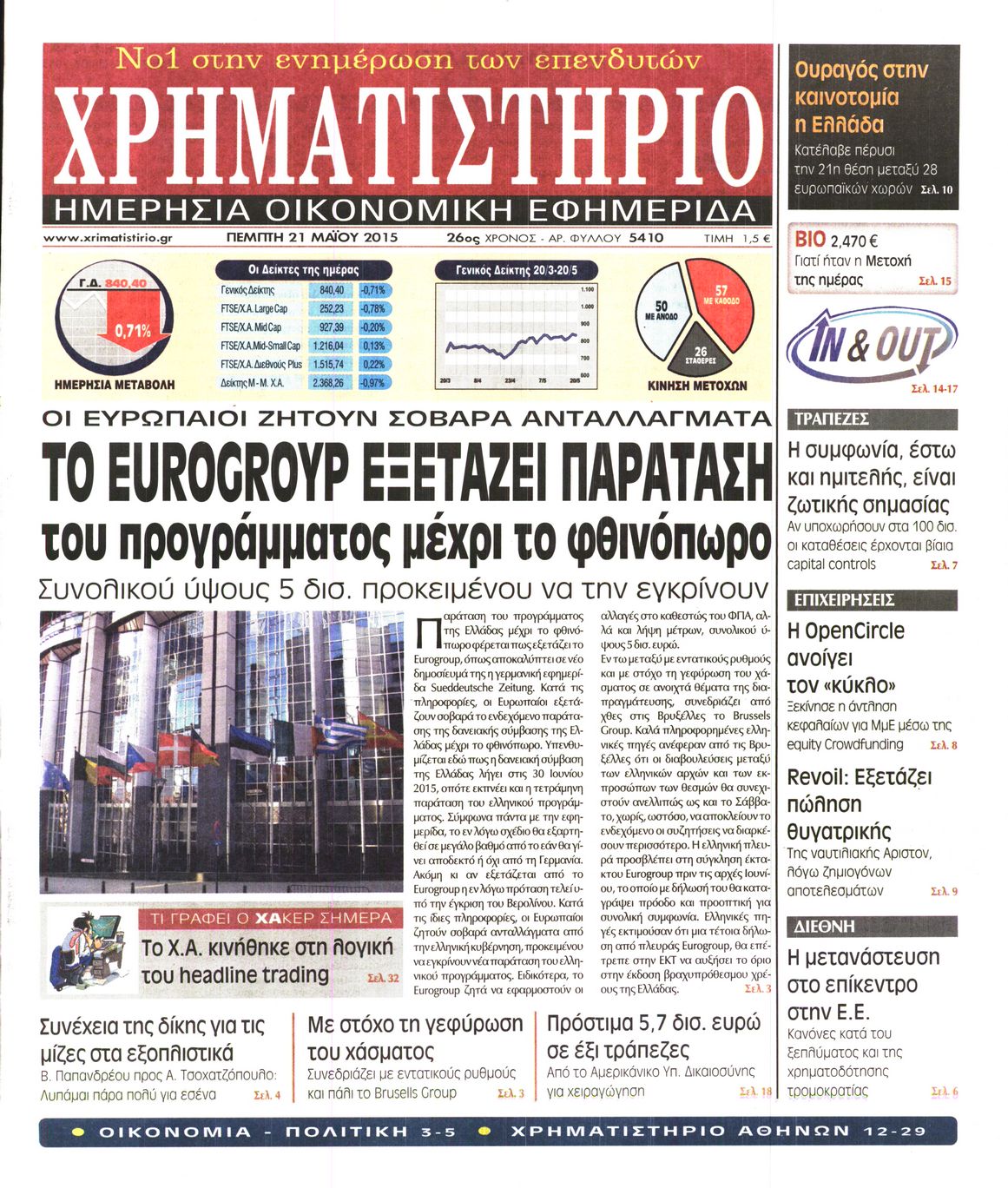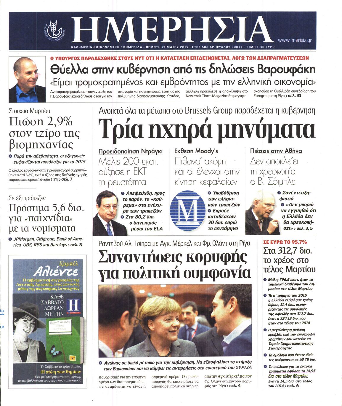 Οι οικονομικές εφημερίδες 21/5/2015 Enikos Newsroom 07:24, Πέμπτη 21 Μαΐου 2015 Media Διαβάστε τα σημερινά πρωτοσέλιδα των οικονομικών εφημερίδων: ΟΙΚΟΝΟΜΙΚΕΣ ΕΦΗΜΕΡΙΔΕΣ ΠΡΩΤΟΣΕΛΙΔΑ Μοιράσου το: σχολίασε κι εσύ (0 σχόλια) Ακολουθήστε το enikos.gr στο Google News και μάθετε πρώτοι όλες τις ειδήσεις Δείτε όλες τις τελευταίες ειδήσεις από την Ελλάδα και τον Κόσμο στο enikos.gr Ειδήσεις Ροή Ειδήσεων 5 ώρες πριν Μητσοτάκης: Αναγκαία η μεταρρύθμιση του πρωτογενούς τομέα – Τα 6 νέα μέτρα για το στεγαστικό και οι αναφορές σε «Ιθάκη» και «πολιτικούς του καναπέ» 4 ώρες πριν Δάνεια σε ελβετικό φράγκο: Τα βασικά σημεία της ρύθμισης – ανάσας για 40.000 δανειολήπτες – Αναλυτικός οδηγός με ερωτήσεις και απαντήσεις 4 ώρες πριν Κυψέλη: Εξιτήριο πήρε η 14χρονη μαθήτρια που μαχαιρώθηκε από την 16χρονη σε σχολείο – «Θέλω να βοηθήσω το παιδί, έχει μπλέξει με κακές παρέες» 3 ώρες πριν Τραμπ: Γιατί κατέθεσε τώρα την αγωγή κατά του BBC – Πώς η κίνησή του εξυπηρετεί το νέο δόγμα του για «αντίσταση» στην Ευρώπη, υπέρ των συντηρητικών 4 ώρες πριν ΟΠΕΚΕΠΕ – Παράνομες επιδοτήσεις: Ελεύθεροι με περιοριστικούς όρους και οι 7 κατηγορούμενοι που απολογήθηκαν σήμερα 4 ώρες πριν Ανακαλύφθηκε βυθισμένη πέτρινη κατασκευή ανοιχτά της Κριμαίας – Αποτελεί μέρος αρχαίας ελληνικής αποικίας 5 ώρες πριν Ύπνος: Αυτό μπορεί να είναι το χειρότερο λάθος για το βιολογικό ρολόι σας, σύμφωνα με ειδικό 6 ώρες πριν Αριθμολογία: Οι άνθρωποι που έχουν γεννηθεί αυτές τις 3 ημερομηνίες, προσελκύουν μεγάλη τύχη πριν από το τέλος του 2025 8 ώρες πριν Οι 7 συμπεριφορές που μαρτυρούν ότι ένας άνδρας επενδύει μακροπρόθεσμα σε μια σχέση 12 λεπτά πριν ΗΠΑ: Στην αγορά δύο Boeing 747-8 προχωρά η Πολεμική Αεροπορία για την υποστήριξη του προεδρικού στόλου 26 λεπτά πριν Ιταλία: Λεωφορείο έπεσε πάνω σε βιτρίνα καταστήματος στο Τορίνο – Τρεις τραυματίες 42 λεπτά πριν Χαλάνδρι: Καθηγητής έπιασε με κόφτη τα δάχτυλα μαθητή σε κατάληψη – «Μου έχεις πιάσει το χέρι» 57 λεπτά πριν Ουκρανία: Εκρήξεις στο Κίεβο ύστερα από προειδοποίηση για επιδρομή drones 1 ώρα πριν Ορφέας Αυγουστίδης: Η επική ατάκα του γιου του για τα «Φαντάσματα» – «Του λέω “δεν ντρέπεσαι να το λες στον πατέρα σου αυτό;”» ENIKOS NETWORK Αίτημα ΙΣΑ για την εξαίρεση των προσωπικών γιατρών από τις κατ’ οίκον επισκέψεις Η σκανδιναβική μέθοδος στον ύπνο που μπορεί να σώσει έναν γάμο Πιερρακάκης: Ο προϋπολογισμός συμβάλλει ουσιαστικά στην ενίσχυση της αγοραστικής δύναμης της πλειονότητας των εργαζομένων e-ΕΦΚΑ: Παρατείνεται η προθεσμία για την υποβολή ΑΠΔ – Ποιους αφορά Σύγχρονος Νοστράδαμος: Προειδοποιεί για «μεγάλο γεγονός» τους επόμενους μήνες που θα συγκλονίσει τη Βρετανία και τον κόσμο Τεστ παρατηρητικότητας: Μπορείτε να βρείτε τις 3 διαφορές στις εικόνες με έναν πιγκουίνο σε 14 δευτερόλεπτα περισσότερα 20:06 , Τρίτη 16 Δεκεμβρίου 2025 Ο ΣΚΑΙ καταγγέλλει τον ΕΚΚΟΜΕΔ Επιστολή με την οποία καταγράφει την έντονη διαμαρτυρία του προς τον διευθύνοντα σύμβουλο του... 17:40 , Τρίτη 16 Δεκεμβρίου 2025 Eurovision: Στις 4 Ιανουαρίου αποκαλύπτονται τα 28 τραγούδια του ελληνικού τελικού Η αγωνία τελειώνει, η γιορτή της Eurovision αρχίζει στην ΕΡΤ από τις πρώτες ημέρες της νέας χρ... 17:09 , Τρίτη 16 Δεκεμβρίου 2025 Alter Ego Media: Βαθύτατη θλίψη και ειλικρινή συλλυπητήρια για την απώλεια της Ειρήνης Μαρινάκη Τη βαθύτατη θλίψη και τα ειλικρινή συλλυπητήριά της εκφράζει η Alter Ego Media για τον θάνατο ... 13:00 , Τρίτη 16 Δεκεμβρίου 2025 «Στο Παρά Πέντε – 20 Χρ