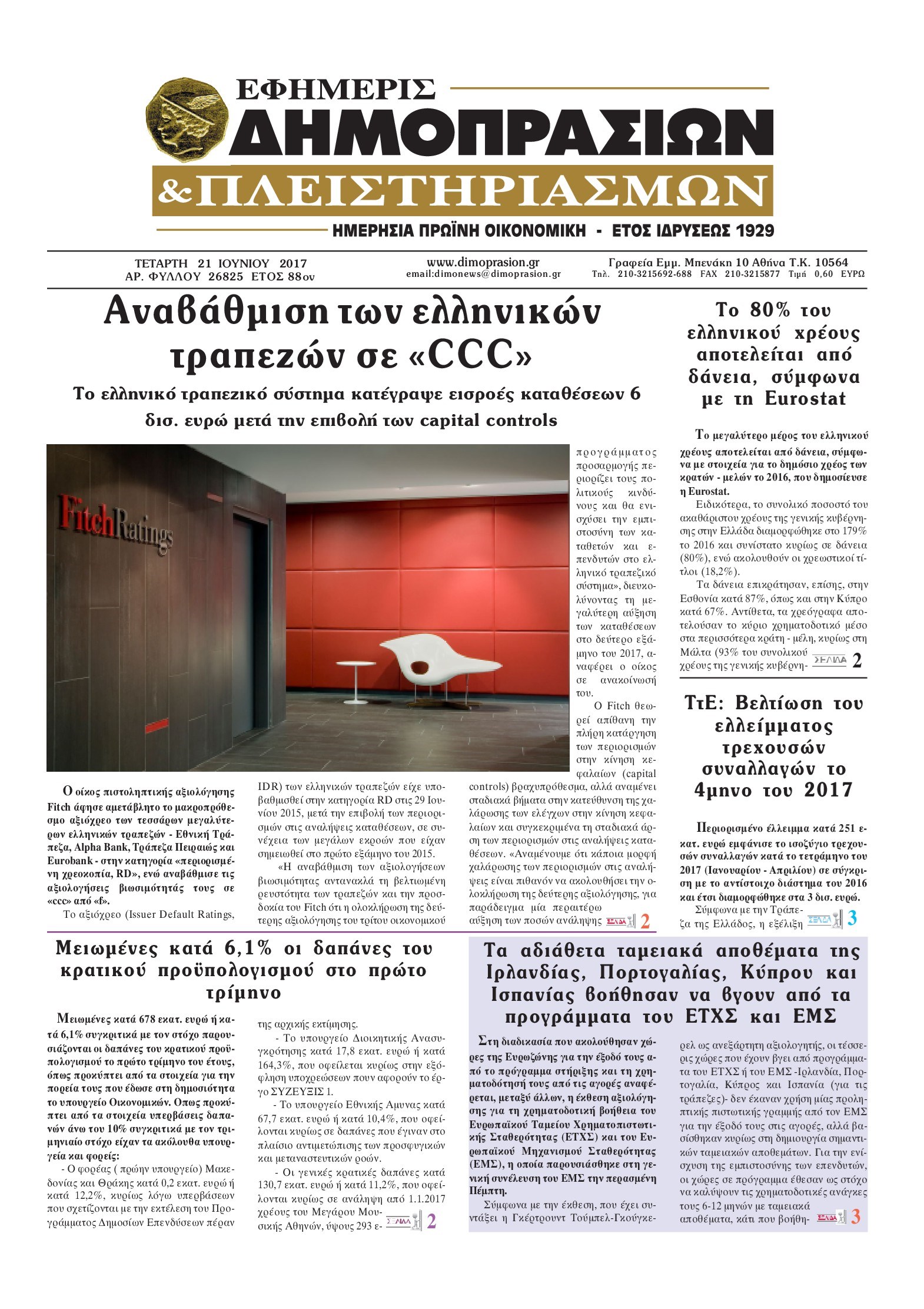 Οι οικονομικές εφημερίδες 21/6/2017 Enikos Newsroom 06:41, Τετάρτη 21 Ιουνίου 2017 Media Διαβάστε τα σημερινά πρωτοσέλιδα των οικονομικών εφημερίδων: ΟΙΚΟΝΟΜΙΚΕΣ ΕΦΗΜΕΡΙΔΕΣ ΠΡΩΤΟΣΕΛΙΔΑ Μοιράσου το: σχολίασε κι εσύ (0 σχόλια) Ακολουθήστε το enikos.gr στο Google News και μάθετε πρώτοι όλες τις ειδήσεις Δείτε όλες τις τελευταίες ειδήσεις από την Ελλάδα και τον Κόσμο στο enikos.gr Ειδήσεις Ροή Ειδήσεων 48 λεπτά πριν Ευρωπαϊκή Ένωση: Χωρίς συμφωνία, για την μακροπρόθεσμη χρηματοδότηση της Ουκρανίας, ολοκληρώθηκε η Σύνοδος Κορυφής στις Βρυξέλλες 4 ώρες πριν ΟΠΕΚΕΠΕ: Προφυλακιστέος ο φερόμενος αρχηγός και ο λογιστής της εγκληματικής οργάνωσης 5 ώρες πριν Αυξάνουν την πίεση προς την κυβέρνηση οι αγρότες: Κλείνουν παρακαμπτήριους και ανοίγουν διόδια – Τι θα γίνει τις γιορτές 5 ώρες πριν Φοινικούντα: Το Σάββατο απολογείται ο 30χρονος γιος γνωστού επιχειρηματία της Πλάκας που παραδόθηκε – Όσα είπε στους αστυνομικούς και ο ρόλος του στο έγκλημα 4 ώρες πριν ΑΕΚ – Κραϊόβα 3-2: Επική ανατροπή και πρόκριση στους «16» του Conference League η Ένωση 5 ώρες πριν Αρχαιολόγοι ανακάλυψαν ρωμαϊκά τεχνουργήματα από μια πόλη που δεν υπήρξε ποτέ – Τα τρία εντυπωσιακά κτίρια και ο αμφορέας με τις… σαρδέλες 6 ώρες πριν Ύπνος: Η απλή βραδινή ρουτίνα για να προστατεύσετε τα μαλλιά σας από το κρύο κατά τη διάρκεια του χειμώνα 7 ώρες πριν Manifesting: Πώς να συναντήσετε τον σύντροφο της ζωής σας, ανάλογα με τον μήνα γέννησής σας 2 ημέρες πριν 20 χρόνια τα Χριστούγεννα ξεκινούν στα Public με μεγάλη ποικιλία σε δώρα! 16 δευτερόλεπτα πριν Αιματηρή βομβιστική επίθεση στην Υεμένη: Τουλάχιστον τρεις νεκροί και 13 τραυματίες 4 λεπτά πριν Στη Φλόριντα σήμερα οι διαβουλεύσεις σχετικά με τα επόμενα στάδια για τη Λωρίδα της Γάζας 8 λεπτά πριν Σίσσυ Τουμάση: «Είμαι ασθενοφοβική πάρα πολύ και με πιάνει μια παράνοια μ’ αυτό» 32 λεπτά πριν Ντόναλντ Τραμπ: Δεν χρειάζομαι την έγκριση του Κογκρέσου για να διατάξω στρατιωτικά πλήγματα στη Βενεζουέλα 48 λεπτά πριν Ευρωπαϊκή Ένωση: Χωρίς συμφωνία, για την μακροπρόθεσμη χρηματοδότηση της Ουκρανίας, ολοκληρώθηκε η Σύνοδος Κορυφής στις Βρυξέλλες ENIKOS NETWORK Σε περίοδο αυξημένης δραστηριότητας η γρίπη στην Ελλάδα-Μέτρα προστασίας από τον ΕΟΔΥ Σκέφτεστε συνέχεια συζητήσεις που έχετε κάνει; Τι σημαίνει αυτό, σύμφωνα με ειδικό Στεγαστικό: Τι λέει η ΠΟΜΙΔΑ για τα νέα μέτρα που ανακοίνωσε ο Κυριάκος Μητσοτάκης Λαγκάρντ: Αισιόδοξη για την ανάπτυξη της Ευρωζώνης, αβέβαιη για τον πληθωρισμό Χαρτογραφώντας το «σημείο χωρίς επιστροφή»: Για πρώτη φορά αποκαλύπτεται με λεπτομέρεια το ακανθώδες όριο της ατμόσφαιρας τ... Η Google καταργεί τη λειτουργία «dark web report» – Πώς θα μπορούν οι χρήστες να διαγράφουν τα δεδομένα τους περισσότερα 02:50 , Παρασκευή 19 Δεκεμβρίου 2025 GNTM: «Κλείδωσαν» οι τέσσερις φιναλίστ – Μεγάλη ανατροπή στις τελευταίες αποχωρήσεις Για προτελευταία φορά εμφανίστηκαν στο πλατό του GNTM οι φιναλίστ του φετινού κύκλου, το βράδυ... 17:45 , Πέμπτη 18 Δεκεμβρίου 2025 ROUK ZOUK: Εορταστικό επεισόδιο με καλεσμένους τους πρωταγωνιστές του «Γιατί ρε πατέρα» Το Σάββατο 20 Δεκεμβρίου στις 21:00, η Ζέτα Μακρυπούλια υποδέχεται εκλεκτούς ηθοποιούς που όλο... 17:20 , Πέμπτη 18 Δεκεμβρίου 2025 Άγιος έρωτας: Η Χριστίνα εξομολογείται στον πατέρα Νικόλαο, απόψε στις 21:00 στον Alpha Η Νότα αποφασίζει να εκδικηθεί τον Πέτρο και τον Στέφανο, για χάρη του Λούη, όμως τα πράγματα ... 16:50 , Πέμπτη 18 Δεκεμβρίου 2025 Να μ’ αγαπάς: Ζωή και Φωτεινή συμφιλιών