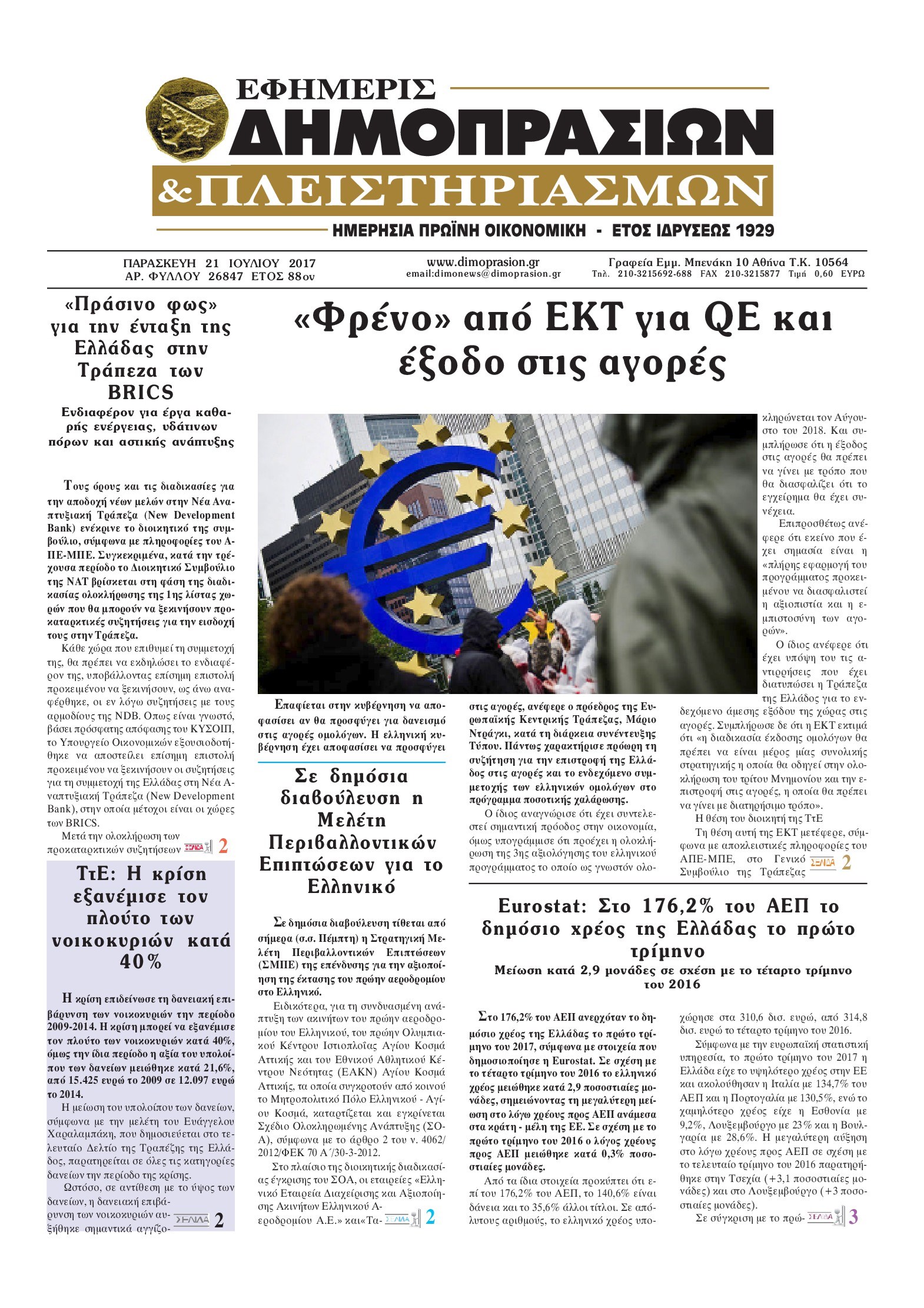 Οι οικονομικές εφημερίδες 21/7/2017 Enikos Newsroom 06:47, Παρασκευή 21 Ιουλίου 2017 Media Διαβάστε τα σημερινά πρωτοσέλιδα των οικονομικών εφημερίδων: ΟΙΚΟΝΟΜΙΚΕΣ ΕΦΗΜΕΡΙΔΕΣ ΠΡΩΤΟΣΕΛΙΔΑ Μοιράσου το: σχολίασε κι εσύ (0 σχόλια) Ακολουθήστε το enikos.gr στο Google News και μάθετε πρώτοι όλες τις ειδήσεις Δείτε όλες τις τελευταίες ειδήσεις από την Ελλάδα και τον Κόσμο στο enikos.gr Ειδήσεις Ροή Ειδήσεων 3 ώρες πριν Αυξάνουν την πίεση προς την κυβέρνηση οι αγρότες: Κλείνουν παρακαμπτήριους και ανοίγουν διόδια – Τι θα γίνει τις γιορτές 1 ώρα πριν ΟΠΕΚΕΠΕ: Προφυλακιστέος ο φερόμενος αρχηγός και ο λογιστής της εγκληματικής οργάνωσης 2 ώρες πριν Φοινικούντα: Το Σάββατο απολογείται ο 30χρονος γιος γνωστού επιχειρηματία της Πλάκας που παραδόθηκε – Όσα είπε στους αστυνομικούς και ο ρόλος του στο έγκλημα 2 ώρες πριν Μπορεί ο Μαδούρο να αντέξει τον αποκλεισμό του Τραμπ; Τι θα χρειαστεί η Ουάσινγκτον για να τον ανατρέψει 4 ώρες πριν Πρίγκιπας Ουίλιαμ – Κέιτ: Η νέα οικογενειακή φωτογραφία για τις Χριστουγεννιάτικες κάρτες του 2025 3 ώρες πριν Ύπνος: Η απλή βραδινή ρουτίνα για να προστατεύσετε τα μαλλιά σας από το κρύο κατά τη διάρκεια του χειμώνα 4 ώρες πριν Manifesting: Πώς να συναντήσετε τον σύντροφο της ζωής σας, ανάλογα με τον μήνα γέννησής σας 2 ημέρες πριν 20 χρόνια τα Χριστούγεννα ξεκινούν στα Public με μεγάλη ποικιλία σε δώρα! 2 ώρες πριν Αρχαιολόγοι ανακάλυψαν ρωμαϊκά τεχνουργήματα από μια πόλη που δεν υπήρξε ποτέ – Τα τρία εντυπωσιακά κτίρια και ο αμφορέας με τις… σαρδέλες 3 λεπτά πριν Νέος πρέσβης της Μεγάλης Βρετανίας στις ΗΠΑ ο Κρίστιαν Τέρνερ 6 λεπτά πριν Conference League: Με Νόα, Ντρίτα, Άλκμααρ ή Τσέλιε στους «16» η ΑΕΚ 15 λεπτά πριν Conference League: Απευθείας στους «16» η ΑΕΚ Λάρνακας και η Ρακόβ των Σβάρνα και Κωνσταντόπουλου – Τα αποτελέσματα και η βαθμολογία, 3η η ΑΕΚ 25 λεπτά πριν Σε ομάδες που συνδέονται με το ρωσικό κράτος αποδίδει η Δανία δύο κυβερνοεπιθέσεις που δέχθηκε 39 λεπτά πριν Βαθμολογία UEFA: Η Πολωνία προσπέρασε την Ελλάδα ENIKOS NETWORK Σε περίοδο αυξημένης δραστηριότητας η γρίπη στην Ελλάδα-Μέτρα προστασίας από τον ΕΟΔΥ Σκέφτεστε συνέχεια συζητήσεις που έχετε κάνει; Τι σημαίνει αυτό, σύμφωνα με ειδικό Στεγαστικό: Τι λέει η ΠΟΜΙΔΑ για τα νέα μέτρα που ανακοίνωσε ο Κυριάκος Μητσοτάκης Λαγκάρντ: Αισιόδοξη για την ανάπτυξη της Ευρωζώνης, αβέβαιη για τον πληθωρισμό Χαρτογραφώντας το «σημείο χωρίς επιστροφή»: Για πρώτη φορά αποκαλύπτεται με λεπτομέρεια το ακανθώδες όριο της ατμόσφαιρας τ... Η Google καταργεί τη λειτουργία «dark web report» – Πώς θα μπορούν οι χρήστες να διαγράφουν τα δεδομένα τους περισσότερα 17:45 , Πέμπτη 18 Δεκεμβρίου 2025 ROUK ZOUK: Εορταστικό επεισόδιο με καλεσμένους τους πρωταγωνιστές του «Γιατί ρε πατέρα» Το Σάββατο 20 Δεκεμβρίου στις 21:00, η Ζέτα Μακρυπούλια υποδέχεται εκλεκτούς ηθοποιούς που όλο... 17:20 , Πέμπτη 18 Δεκεμβρίου 2025 Άγιος έρωτας: Η Χριστίνα εξομολογείται στον πατέρα Νικόλαο, απόψε στις 21:00 στον Alpha Η Νότα αποφασίζει να εκδικηθεί τον Πέτρο και τον Στέφανο, για χάρη του Λούη, όμως τα πράγματα ... 16:50 , Πέμπτη 18 Δεκεμβρίου 2025 Να μ’ αγαπάς: Ζωή και Φωτεινή συμφιλιώνονται ως μάνα με κόρη, απόψε στις 20:00 Η ταυτότητα του Άγγελου αποκαλύπτεται στο νέο επεισόδιο της σειράς “Να μ’ αγαπάς... 15:52 , Πέμπτη 18 Δεκεμβρίου 2025 Το Σπίτι Δίπλα Στο Ποτάμι: Το καθηλωτικό τελευταίο επεισόδιο για το 2025 απόψε στις 22:30 Καθηλώνει το σημερινό επεισόδιο της σειράς “Το Σπίτι Δίπλα Στο Ποτάμι” που έρχεται... ΤΕΛΕΥΤΑ
