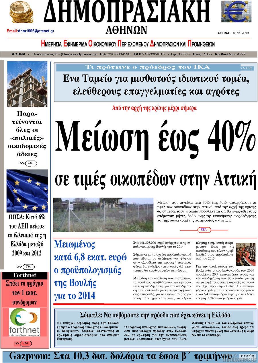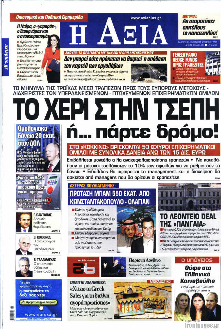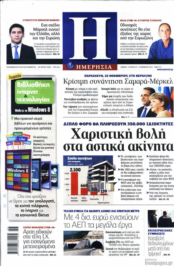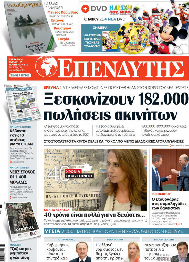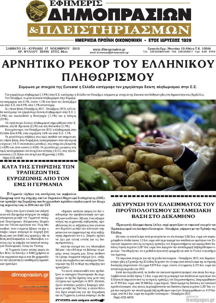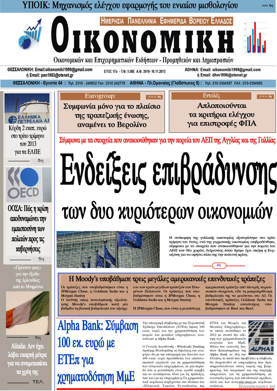 Οι οικονομικές εφημερίδες Enikos Newsroom 09:08, Σάββατο 16 Νοεμβρίου 2013 Media Οι οικονομικές εφημερίδες ΕΦΗΜΕΡΙΔΕΣ ΟΙΚΟΝΟΜΙΚΕΣ ΕΦΗΜΕΡΙΔΕΣ Μοιράσου το: σχολίασε κι εσύ (0 σχόλια) Ακολουθήστε το enikos.gr στο Google News και μάθετε πρώτοι όλες τις ειδήσεις Δείτε όλες τις τελευταίες ειδήσεις από την Ελλάδα και τον Κόσμο στο enikos.gr Ειδήσεις Ροή Ειδήσεων 1 ώρα πριν Ρομπ και Μισέλ Ράινερ: Φωτογραφίες από τη στιγμή που οι αρχές συλλαμβάνουν τον γιο τους – Ο «μεγάλος καβγάς» πριν από την τραγωδία 51 λεπτά πριν Προϋπολογισμός 2026: Σήμερα η ομιλία Μητσοτάκη στη Βουλή – Μέτρα για νέους, μεσαία τάξη και στεγαστικό 2 ώρες πριν Χριστούγεννα: Τι περιμένουν οι έμποροι για να «ζεσταθεί» η αγορά 2 ώρες πριν Κρίσιμη ημέρα για τους αγρότες: Σήμερα θα δώσουν την απάντησή τους στην κυβέρνηση μετά το νέο κάλεσμα για διάλογο 2 ώρες πριν Οι Τούρκοι θέλουν να παρακολουθούν την Αθήνα από την Σμύρνη με Drones – Δείτε βίντεο 3 ώρες πριν Οπτική ψευδαίσθηση: Μόνο 1 στους 10 ανθρώπους θα βρει το κόκκινο αυγό σε 7 δευτερόλεπτα 3 ώρες πριν Υψηλή χοληστερίνη: Γιατρός αποκαλύπτει δύο τρόπους για να την μειώσετε χωρίς φαρμακευτική αγωγή 4 ώρες πριν Τα ζώδια σήμερα, Τρίτη 16 Δεκεμβρίου: Ιχθύες, δεν χρειάζεται να έχετε όλες τις απαντήσεις 1 ώρα πριν Ανακαλύφθηκε περίτεχνη μαρμάρινη μπανιέρα που επαναχρησιμοποιήθηκε ως κρήνη 6 λεπτά πριν «Το θαύμα των Χριστουγέννων»: Σκύλος που εξαφανίστηκε το 2021 βρέθηκε σε καταφύγιο ζώων σε απόσταση 3.200 χιλιομέτρων – ΒΙΝΤΕΟ 10 λεπτά πριν Ευγενία Σαμαρά – Οδυσσέας Παπασπηλιόπουλος: Τίτλοι τέλους 16 λεπτά πριν Η πεθερά της την κατηγορεί πως δεν την ταΐζει σωστά – «Δεν παραπονιέται όμως στον γιο της» 20 λεπτά πριν Δολοφονία στο Νέο Ψυχικό: «Δεν είχαμε κόντρα με τον τοπογράφο» λέει ο μεσίτης της Μυκόνου 25 λεπτά πριν Σίδνεϊ: Βίντεο με ηλικιωμένο ζευγάρι που όρμησε για να σταματήσει τον έναν δράστη – Συγκλονιστικές μαρτυρίες για τους «ήρωες μέχρι τέλους» ENIKOS NETWORK Η Νο1 άσκηση για σμιλεμένους γλουτούς – Την κάνετε στο σπίτι και διαρκεί 1 λεπτό 54χρονη που νόμιζε ότι είχε ιγμορίτιδα έλαβε διάγνωση για σπάνιο καρκίνο – Η συγκλονιστική μαρτυρία της Φορολογικές δηλώσεις 2026: Στις 16 Μαρτίου αρχίζει η υποβολή – Νέες κατηγορίες στις προσυμπληρωμένες Χριστούγεννα: Τι περιμένουν οι έμποροι για να «ζεσταθεί» η αγορά Σύγχρονος Νοστράδαμος: Προειδοποιεί για «μεγάλο γεγονός» τους επόμενους μήνες που θα συγκλονίσει τη Βρετανία και τον κόσμο Τεστ παρατηρητικότητας: Μπορείτε να βρείτε τις 3 διαφορές στις εικόνες με έναν πιγκουίνο σε 14 δευτερόλεπτα περισσότερα 08:00 , Τρίτη 16 Δεκεμβρίου 2025 Την Κυριακή με τη Realnews: Δωροεπιταγή 10€ Δωροεπιταγή αξίας 10€ για αγορές άνω των 60€ από τα πολυκαταστήματα FactoryOutlet H προσφορά ι... 05:48 , Τρίτη 16 Δεκεμβρίου 2025 Οι οικονομικές εφημερίδες 16/12/2025 Διαβάστε τα πρωτοσέλιδα από τις οικονομικές εφημερίδες, σήμερα 16/12/2025. 05:43 , Τρίτη 16 Δεκεμβρίου 2025 Οι αθλητικές εφημερίδες 16/12/2025 Διαβάστε τα πρωτοσέλιδα από τις αθλητικές εφημερίδες, σήμερα 16/12/2025. 05:38 , Τρίτη 16 Δεκεμβρίου 2025 Οι πολιτικές εφημερίδες 16/12/2025 Διαβάστε τα πρωτοσέλιδα από τις πολιτικές εφημερίδες, σήμερα 16/12/2025. ΤΕΛΕΥΤΑΙΕΣ ΕΙΔΗΣΕΙΣ 6 λεπτά πριν «Το θαύμα των Χριστουγέννων»: Σκύλος που εξαφανίστηκε... 10 λεπτά πριν Ευγενία Σαμαρά – Οδυσσέας Παπασπηλιόπουλος: Τίτλοι... 16 λεπτά πριν Η πεθερά της την κατηγορεί πως δεν την ταΐζει σωστά... 20 λεπτά πριν Δολοφονία στο Νέο Ψυχικό: «Δεν είχαμε κόντρα με τον... 25 λεπτά πριν Σίδνεϊ: Βίν