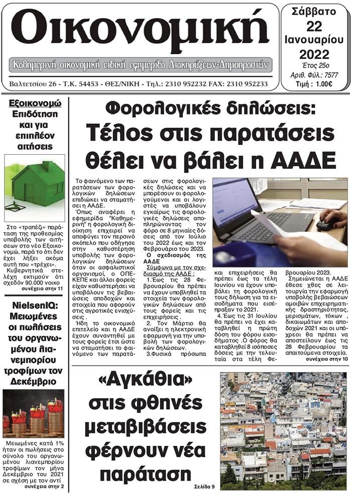 Οι οικονομικές εφημερίδες 22/1/2022 Διονύσης Νίκκας 07:42, Σάββατο 22 Ιανουαρίου 2022 Media Διαβάστε τα πρωτοσέλιδα από τις οικονομικές εφημερίδες… ΟΙΚΟΝΟΜΙΚΕΣ ΕΦΗΜΕΡΙΔΕΣ Μοιράσου το: Νάνσυ Ζαμπέτογλου: “Όταν μίλησα για πρώτη φορά με τον Νάσο Γαλακτερό έπαθα σοκ” Απαγωγή στο Ντράφι: Σημάδια ότι ο επιχειρηματίας βρίσκεται στη ζωή – ΒΙΝΤΕΟ Θεσσαλονίκη: Άνδρες της ΔΙΑΣ παρείχαν βοήθεια σε ηλικιωμένο μέσα στο σπίτι του σχολίασε κι εσύ (0 σχόλια) Ακολουθήστε το enikos.gr στο Google News και μάθετε πρώτοι όλες τις ειδήσεις Δείτε όλες τις τελευταίες ειδήσεις από την Ελλάδα και τον Κόσμο στο enikos.gr Ειδήσεις Ροή Ειδήσεων 1 ώρα πριν Αγρότες: «Όχι στον διάλογο, μας εμπαίζει η κυβέρνηση» – Αποφάσισαν κλιμάκωση των κινητοποιήσεων, τι θα γίνει τα Χριστούγεννα 2 ώρες πριν Την πρώτη Belharra παρέλαβε η χώρα μας, υψώθηκε η ελληνική σημαία στη φρεγάτα «Κίμων» – Δένδιας: «Το ισχυρότερο Πολεμικό Ναυτικό που είχε ποτέ ο ελληνισμός» 4 ώρες πριν Γιώργος Μαζωνάκης: «Δεν ζήτησα χρήματα, παρά μόνο ηθική δικαίωση» – Οι πρώτες δηλώσεις του 21χρονου μετά την κατάθεση της μήνυσης 57 λεπτά πριν Μιχάλης Χουρδάκης: «Είμαι διαθέσιμος να συμβάλω στην προσωρινή κάλυψη του ιατρείου της Ψερίμου» – Η επιστολή στον Άδωνι Γεωργιάδη 1 ώρα πριν Εξώδικο Γεωργιάδη στην Κωνσταντοπούλου – «Με κατηγόρησε ότι έχω καταδικαστεί για παιδεραστία» 2 ώρες πριν Τα 5 ζώδια που θα ευνοηθούν στα οικονομικά τους το 2026 – «Τραβούν το χρήμα σαν μαγνήτες» 7 ώρες πριν Αν κάνετε συνεχώς αυτά τα 8 πράγματα με τα κατοικίδιά σας, σας λείπει η ανθρώπινη επαφή 3 ώρες πριν Αυτό που κρύβεται κάτω από τη Γροιλανδία θα μπορούσε να ανατρέψει όσα γνωρίζουμε για την άνοδο της στάθμης των θαλασσών 1 ημέρα πριν 20 χρόνια τα Χριστούγεννα ξεκινούν στα Public με μεγάλη ποικιλία σε δώρα! 6 λεπτά πριν Δίκη για υποκλοπές: Τη βίαιη προσαγωγή δύο μαρτύρων διέταξε το δικαστήριο – Τι κατέθεσε ο Τάσος Τέλλογλου 11 λεπτά πριν Σύνοδος Κορυφής: Οι Ευρωπαίοι συμφώνησαν να εξετάσουν την χρήση των ρωσικών περιουσιακών για την χρηματοδότηση της Ουκρανίας – Η δήλωση Ζελένσκι 16 λεπτά πριν Δένδιας: Έναρξη διαπραγματεύσεων για την ταχύτερη ανανέωση της Στρατηγικής Εταιρικής Σχέσης Ελλάδας – Γαλλίας 20 λεπτά πριν ROUK ZOUK: Εορταστικό επεισόδιο με καλεσμένους τους πρωταγωνιστές του «Γιατί ρε πατέρα» 26 λεπτά πριν Φιντάν: «Η Κυπριακή Δημοκρατία μας παρεμποδίζει όπου βρει την ευκαιρία» – Η πονηρή πρόταση που ανοίγει τον δρόμο για δύο κράτη ENIKOS NETWORK ΕΟΔΥ: Δωρεάν τεστ για HIV, Ηπατίτιδες, Σύφιλη, Χλαμύδια, Γονόρροια 100 χρόνια ΠΙΣ: Ένας αιώνας προσφοράς στην Ιατρική και την κοινωνία Χριστούγεννα και Πρωτοχρονιά: Δείτε πόσα χρήματα θα πάρουν ως αμοιβή όσοι εργαστούν Κρατική επιχορήγηση έως 14.500 ευρώ: Ποιοι θα λάβουν από σήμερα την προκαταβολή στον τραπεζικό λογαριασμό τους Χαρτογραφώντας το «σημείο χωρίς επιστροφή»: Για πρώτη φορά αποκαλύπτεται με λεπτομέρεια το ακανθώδες όριο της ατμόσφαιρας τ... Η Google καταργεί τη λειτουργία «dark web report» – Πώς θα μπορούν οι χρήστες να διαγράφουν τα δεδομένα τους περισσότερα 17:45 , Πέμπτη 18 Δεκεμβρίου 2025 ROUK ZOUK: Εορταστικό επεισόδιο με καλεσμένους τους πρωταγωνιστές του «Γιατί ρε πατέρα» Το Σάββατο 20 Δεκεμβρίου στις 21:00, η Ζέτα Μακρυπούλια υποδέχεται εκλεκτούς ηθοποιούς που όλο... 17:20 , Πέμπτη 18 Δεκεμβρίου 2025 Άγιος έρωτας: Η Χριστίνα εξομολογείται στον πατέρα Νικόλαο, απόψε στις 21:00 στον Alpha Η Νότα αποφασίζει να εκδικηθεί τον Πέτρο και τον Στέφαν