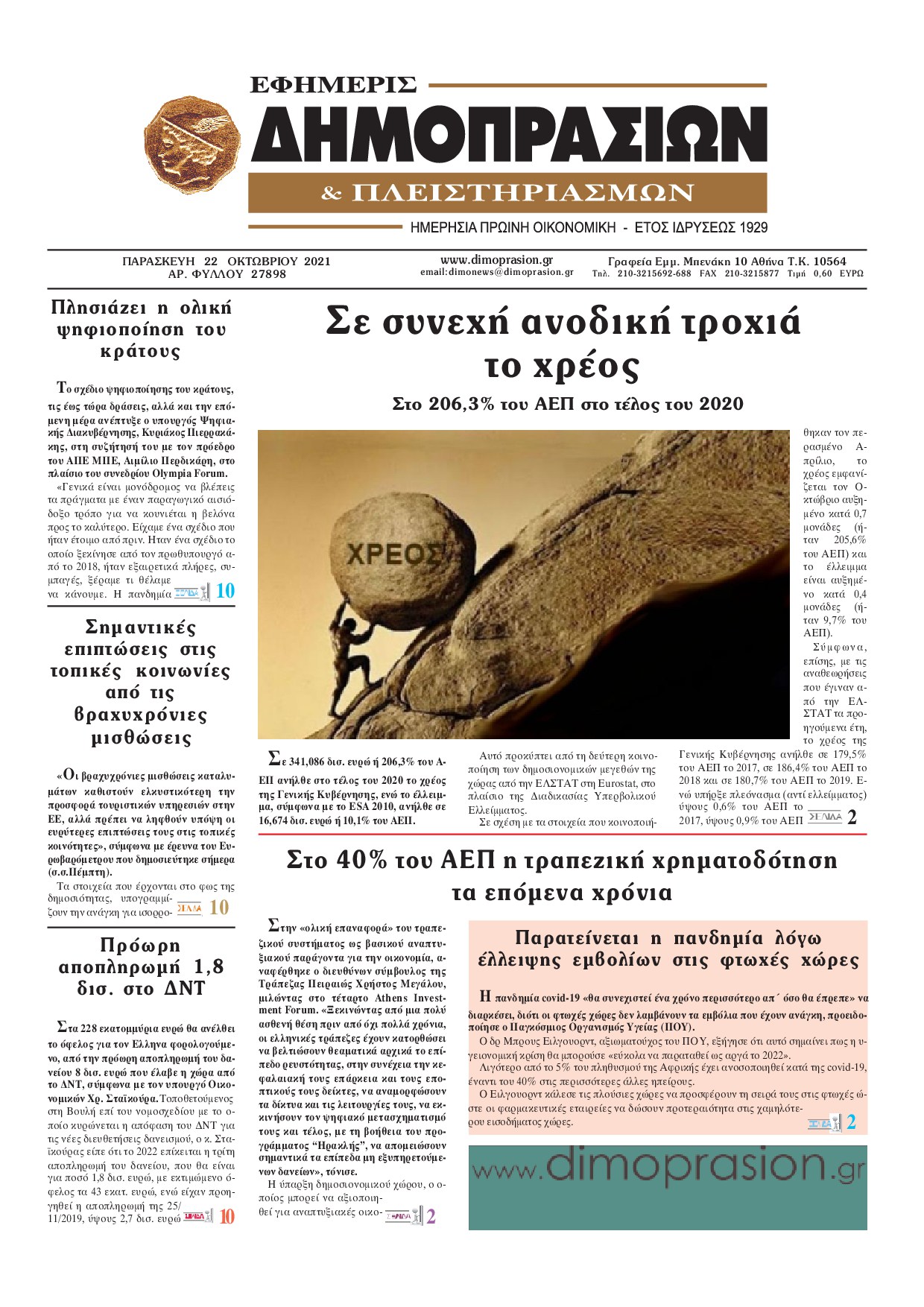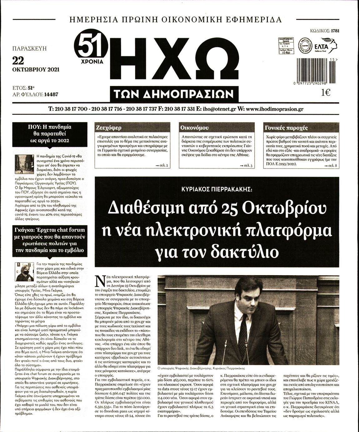 Οι οικονομικές εφημερίδες 22/10/2021 Διονύσης Νίκκας 06:53, Παρασκευή 22 Οκτωβρίου 2021 Media Διαβάστε τα πρωτοσέλιδα από τις οικονομικές εφημερίδες… ΟΙΚΟΝΟΜΙΚΕΣ ΕΦΗΜΕΡΙΔΕΣ Μοιράσου το: σχολίασε κι εσύ (0 σχόλια) Ακολουθήστε το enikos.gr στο Google News και μάθετε πρώτοι όλες τις ειδήσεις Δείτε όλες τις τελευταίες ειδήσεις από την Ελλάδα και τον Κόσμο στο enikos.gr Ειδήσεις Ροή Ειδήσεων 5 ώρες πριν Αγρότες: «Όχι στον διάλογο, μας εμπαίζει η κυβέρνηση» – Αποφάσισαν κλιμάκωση των κινητοποιήσεων, τι θα γίνει τα Χριστούγεννα 2 ώρες πριν Αθήνα: Εξαρθρώθηκε εγκληματική οργάνωση που διακινούσε ναρκωτικά σε μορφή σοκολάτας – Δύο τράπερ ανάμεσα στους 4 συλληφθέντες – ΒΙΝΤΕΟ 2 ώρες πριν Στη φυλακή ο «Έλληνας Εσκομπάρ» και τρεις συνεργοί του για το φορτίο με την κοκαΐνη – Τι υποστήριξε στην απολογία του 3 ώρες πριν Γιώργος Μαζωνάκης: «Έχει υποστεί ένα σωρό εκβιαστικές πρακτικές – Του είπαν ότι θα του βάλουν τον συγκεκριμένο άνθρωπο να τον καταγγείλει» 1 ώρα πριν Γεωργιάδης για Κωνσταντοπούλου: «Έχει καταφέρει να ξεπεράσει ακόμη και τον εαυτό της – Το ερώτημα είναι “γιατί τώρα;”» 5 ώρες πριν Τα 5 ζώδια που θα ευνοηθούν στα οικονομικά τους το 2026 – «Τραβούν το χρήμα σαν μαγνήτες» 2 ώρες πριν Γάμος: 11 ψυχρές αλλά ευγενικές φράσεις, που λέει ένας άνδρας όταν σκέφτεται τον χωρισμό 1 ώρα πριν Σφουγγάρισμα: Η συνήθεια που θα σας βοηθήσει να διατηρήσετε το σπίτι σας καθαρό και τακτοποιημένο 2 ημέρες πριν 20 χρόνια τα Χριστούγεννα ξεκινούν στα Public με μεγάλη ποικιλία σε δώρα! 5 λεπτά πριν Νίκος Παππάς στον ΑΝΤ1: «Δεν κρύβομαι – Μετά το συμβάν ακολούθησα κανονικά το πρόγραμμά μου» – ΒΙΝΤΕΟ 8 λεπτά πριν Αγρότες: Άνοιξε ο μεθοριακός σταθμός του Προμαχώνα για τα φορτηγά 17 λεπτά πριν Δημοσκόπηση Metron Analysis: Στις 10 μονάδες η διαφορά ΝΔ-ΠΑΣΟΚ, στην 3η θέση η Πλεύση Ελευθερίας – 8 στους 10 στηρίζουν τον αγώνα των αγροτών 22 λεπτά πριν Ολυμπιακός: Τι ζήτησε από τον Άγιο Βασίλη ο Χοσέ Λουίς Μεντιλίμπαρ 28 λεπτά πριν Manifesting: Πώς να συναντήσετε τον σύντροφο της ζωής σας, ανάλογα με τον μήνα γέννησής σας ENIKOS NETWORK Σε περίοδο αυξημένης δραστηριότητας η γρίπη στην Ελλάδα-Μέτρα προστασίας από τον ΕΟΔΥ Σκέφτεστε συνέχεια συζητήσεις που έχετε κάνει; Τι σημαίνει αυτό, σύμφωνα με ειδικό ΕΛΣΤΑΤ: Τι δείχνουν τα νέα στοιχεία για τον μόνιμο πληθυσμό στην Ελλάδα Servicers: Μικρή μείωση στα κόκκινα δάνεια που διαχειρίζονται – Αναλυτικά τα στοιχεία Χαρτογραφώντας το «σημείο χωρίς επιστροφή»: Για πρώτη φορά αποκαλύπτεται με λεπτομέρεια το ακανθώδες όριο της ατμόσφαιρας τ... Η Google καταργεί τη λειτουργία «dark web report» – Πώς θα μπορούν οι χρήστες να διαγράφουν τα δεδομένα τους περισσότερα 17:45 , Πέμπτη 18 Δεκεμβρίου 2025 ROUK ZOUK: Εορταστικό επεισόδιο με καλεσμένους τους πρωταγωνιστές του «Γιατί ρε πατέρα» Το Σάββατο 20 Δεκεμβρίου στις 21:00, η Ζέτα Μακρυπούλια υποδέχεται εκλεκτούς ηθοποιούς που όλο... 17:20 , Πέμπτη 18 Δεκεμβρίου 2025 Άγιος έρωτας: Η Χριστίνα εξομολογείται στον πατέρα Νικόλαο, απόψε στις 21:00 στον Alpha Η Νότα αποφασίζει να εκδικηθεί τον Πέτρο και τον Στέφανο, για χάρη του Λούη, όμως τα πράγματα ... 16:50 , Πέμπτη 18 Δεκεμβρίου 2025 Να μ’ αγαπάς: Ζωή και Φωτεινή συμφιλιώνονται ως μάνα με κόρη, απόψε στις 20:00 Η ταυτότητα του Άγγελου αποκαλύπτεται στο νέο επεισόδιο της σειράς “Να μ’ αγαπάς... 15:52 , Πέμπτη 18 Δεκεμβρίου 2025 Το Σπίτι Δίπλα Στο Ποτάμι: Το καθηλωτικό τελευταίο επεισόδιο για το 2025 απόψε στις 22:30 Καθηλώνει το σημερινό επεισόδιο της σε