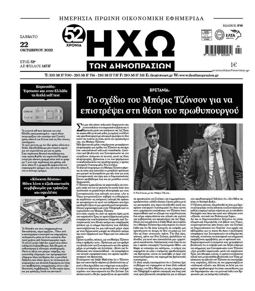Οι οικονομικές εφημερίδες 22/10/2022 Σήφης Γαρυφαλάκης 07:34, Σάββατο 22 Οκτωβρίου 2022 Media Διαβάστε τα πρωτοσέλιδα από τις οικονομικές εφημερίδες, σήμερα 22/10/2022. Σχετικά Άρθρα Οι οικονομικές εφημερίδες 21/10/2022 Οι οικονομικές εφημερίδες 20/10/2022 Οι οικονομικές εφημερίδες 19/10/2022 ΕΦΗΜΕΡΙΔΕΣ ΟΙΚΟΝΟΜΙΚΕΣ ΕΦΗΜΕΡΙΔΕΣ ΠΡΩΤΟΣΕΛΙΔΑ Μοιράσου το: σχολίασε κι εσύ (0 σχόλια) Ακολουθήστε το enikos.gr στο Google News και μάθετε πρώτοι όλες τις ειδήσεις Δείτε όλες τις τελευταίες ειδήσεις από την Ελλάδα και τον Κόσμο στο enikos.gr Ειδήσεις Ροή Ειδήσεων 52 λεπτά πριν Πώς δρούσε το κύκλωμα που διακινούσε ναρκωτικά σε σχολεία – Υπέβαλαν σε βασανιστήρια όσους δεν τηρούσαν τους «κανόνες πειθαρχίας» 1 ώρα πριν Αγρότες: Γιορτές στα μπλόκα με ανοιχτά διόδια – Δικογραφία στα Ιωάννινα για το σήκωμα των μπαρών 5 ώρες πριν Αρχεία Έπσταϊν: Οι συγκλονιστικές φωτογραφίες – Ο Μάικλ Τζάκσον, ο Μικ Τζάγκερ και ο Κέβιν Σπέισι ανάμεσα στους διάσημους που απεικονίζονται 3 ώρες πριν Βέλγιο: Άγνωστοι έριξαν κόκκινη μπογιά στο προξενείο της Πολωνίας στις Βρυξέλλες 2 ώρες πριν ΕΛΑΣ: Συνελήφθησαν Υπαρχιπυροσβέστης και δύο ακόμη άτομα για κατοχή και διακίνηση ναρκωτικών ουσιών – Η καταγγελία και ο τιμοκατάλογος 1 ώρα πριν Η τύχη χαμογελά σε 3 ζώδια έως τις 28 Δεκεμβρίου – «Προσέξτε τις επιλογές σας και η επιμονή σας θα ανταμειφθεί» 6 ώρες πριν Διαιτολόγος αποκαλύπτει 9 πρωινές συνήθειες που «λιώνουν» το κοιλιακό λίπος – «Υποστηρίζουν την υγιεινή απώλεια βάρους» 7 ώρες πριν Οι 7 φράσεις που δεν λένε ποτέ οι συναισθηματικά έξυπνοι άνθρωποι κατά τη διάρκεια ενός καβγά 9 ώρες πριν Enerwave: Το νέο «ρεύμα» στη λιανική ενέργειας που αλλάζει την εμπειρία του καταναλωτή 3 λεπτά πριν NBC: Ο Νετανιάχου σχεδιάζει να ενημερώσει τον Τραμπ για πιθανά νέα πλήγματα εναντίον του Ιράν 12 λεπτά πριν Αττική: Εξαρθρώθηκε εγκληματική οργάνωση που έκλεβε οχήματα, τα παραποιούσε και τα μεταπωλούσε σε πολίτες – Πώς δρούσε το κύκλωμα 21 λεπτά πριν Κωνσταντίνος Αργυρός: «Δεν θέλω να ασχοληθώ με την πολιτική σε αυτή τη φάση – Μου έχουν γίνει προτάσεις» 29 λεπτά πριν Σέρρες: Διέρρηξαν διαμέρισμα και «βούτηξαν» ρολόγια συνολικής αξίας 15.000 ευρώ – 3 συλλήψεις 37 λεπτά πριν Κουίζ για την παλιά Αθήνα: Αναγνωρίζετε την συνοικία; Είναι από τις πιο γνωστές ENIKOS NETWORK Η αποχή από την αναπαραγωγή παρατείνει τη ζωή στα ζώα, σύμφωνα με μελέτη – Τι ισχύει για τους ανθρώπους; Σημαντικές επαφές στις ΗΠΑ είχε ο υπουργός Υγείας Άδωνις Γεωργιάδης Στα ύψη ο χρυσός – Νέο ρεκόρ στην τιμή της λίρας, πόσο πωλείται Τέλη κυκλοφορίας 2026: Προσοχή στην προθεσμία εξόφλησής τους – Πώς διαμορφώνονται τα πρόστιμα σε περίπτωση καθυστέρησης Χαρτογραφώντας το «σημείο χωρίς επιστροφή»: Για πρώτη φορά αποκαλύπτεται με λεπτομέρεια το ακανθώδες όριο της ατμόσφαιρας τ... Η Google καταργεί τη λειτουργία «dark web report» – Πώς θα μπορούν οι χρήστες να διαγράφουν τα δεδομένα τους περισσότερα 14:04 , Σάββατο 20 Δεκεμβρίου 2025 Η Realnews αυτής της Κυριακής (21/12/2025) Με τίτλο: «Ασπίδα προστασίας για την Ελλάδα» κυκλοφορεί, αυτήν την Κυριακή, η Realnews. Σημαντ... 12:53 , Σάββατο 20 Δεκεμβρίου 2025 Να μ’ αγαπάς: Το παρελθόν έρχεται στο φως – Καταιγιστικές εξελίξεις στα τελευταία επεισόδια του 2025 Ο Άγγελος αποκαλύπτεται, η Φωτεινή ανησυχεί για τον Λευτέρη και η Ζωή έρχεται αντιμέτωπη με το... 11:41 , Σάββατο 20 Δεκεμβρίου 2025 «Η αγάπη δεν χάνεται ποτέ»: Η μικρού μήκους ταινία κινουμένων σχεδίων που θέτει ερωτήματα για τη ζ