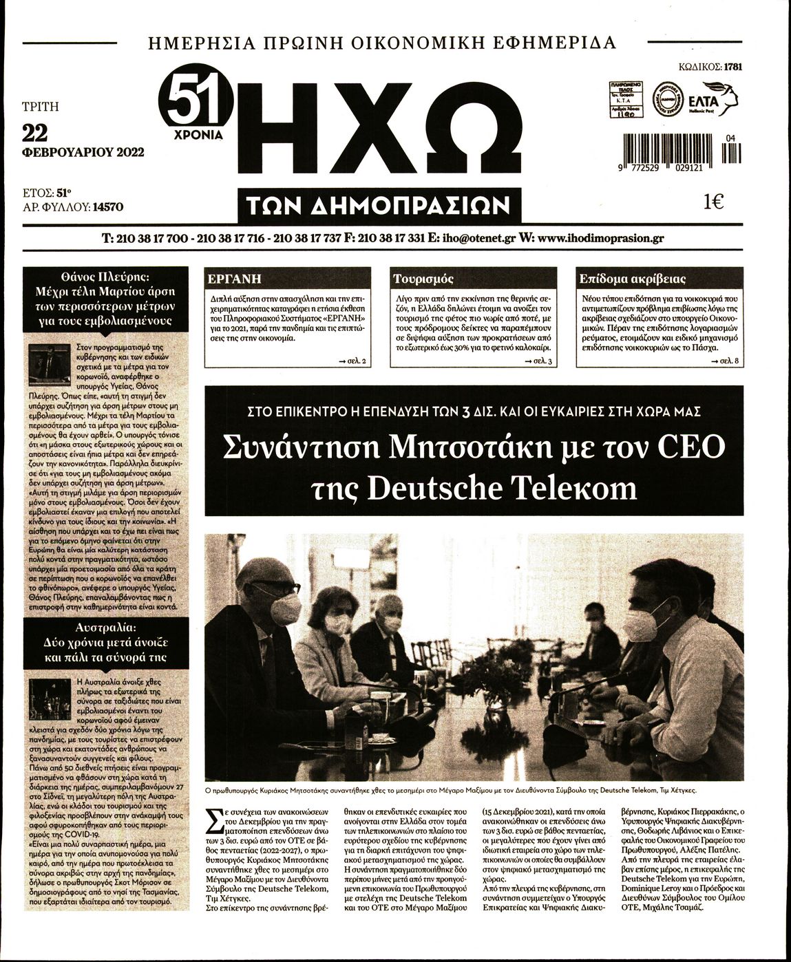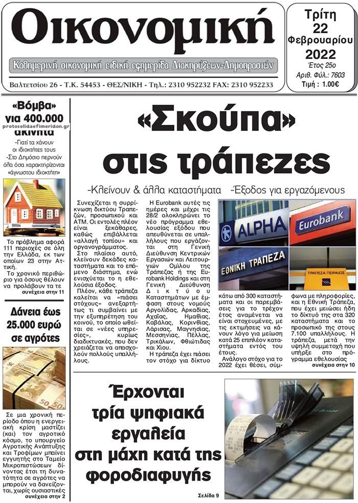 Οι οικονομικές εφημερίδες 22/2/2022 Διονύσης Νίκκας 06:38, Τρίτη 22 Φεβρουαρίου 2022 Media Διαβάστε τα πρωτοσέλιδα από τις οικονομικές εφημερίδες… ΟΙΚΟΝΟΜΙΚΕΣ ΕΦΗΜΕΡΙΔΕΣ Μοιράσου το: Ουκρανία: Ανησυχία του ΟΗΕ για τον κίνδυνο «μείζονος» σύρραξης στην περιοχή ΗΠΑ: «Ανοησίες» η ανακοίνωση της Ρωσίας για «ειρηνευτικές δυνάμεις» στο Ντονμπάς Ουκρανία: Έκτακτη συνεδρίαση του Συμβουλίου Ασφαλείας του ΟΗΕ σχολίασε κι εσύ (0 σχόλια) Ακολουθήστε το enikos.gr στο Google News και μάθετε πρώτοι όλες τις ειδήσεις Δείτε όλες τις τελευταίες ειδήσεις από την Ελλάδα και τον Κόσμο στο enikos.gr Ειδήσεις Ροή Ειδήσεων 21 λεπτά πριν Την πρώτη Belharra παρέλαβε η χώρα μας, υψώθηκε η ελληνική σημαία στη φρεγάτα «Κίμων» – Δένδιας: «Το ισχυρότερο Πολεμικό Ναυτικό που είχε ποτέ ο ελληνισμός» 3 ώρες πριν Γιώργος Μαζωνάκης: «Δεν ζήτησα χρήματα, παρά μόνο ηθική δικαίωση» – Οι πρώτες δηλώσεις του 21χρονου μετά την κατάθεση της μήνυσης 2 ώρες πριν Δίκη Βαλυράκη: Καταθέτει ο βασικός αυτόπτης μάρτυρας – «Δέχτηκα πιέσεις να μη μιλήσω, πήγα να ψωνίσω και αυτοκίνητο με χτύπησε στο πόδι» 2 ώρες πριν Ώρα αποφάσεων για τους αγρότες – Ξεκίνησε η πανελλαδική σύσκεψη μπλόκων στις Σέρρες – ΦΩΤΟ 6 ώρες πριν Συναγερμός και στην Ελλάδα για τη «σούπερ γρίπη»: Πόσο σοβαρή είναι και ποιοι θεωρούνται πιο ευάλωτοι – 3 ειδικοί μιλούν στο enikos.gr 47 λεπτά πριν Τα 5 ζώδια που θα ευνοηθούν στα οικονομικά τους το 2026 – «Τραβούν το χρήμα σαν μαγνήτες» 6 ώρες πριν Αν κάνετε συνεχώς αυτά τα 8 πράγματα με τα κατοικίδιά σας, σας λείπει η ανθρώπινη επαφή 2 ώρες πριν Αυτό που κρύβεται κάτω από τη Γροιλανδία θα μπορούσε να ανατρέψει όσα γνωρίζουμε για την άνοδο της στάθμης των θαλασσών 1 ημέρα πριν 20 χρόνια τα Χριστούγεννα ξεκινούν στα Public με μεγάλη ποικιλία σε δώρα! 7 λεπτά πριν Εξεταστική για ΟΠΕΚΕΠΕ – Μπρατάκος: «Δεν μου τέθηκε ζήτημα για πιέσεις από τον κ. Αυγενάκη ή οποιονδήποτε» – Τι είπε για τον Σημανδράκο 8 λεπτά πριν ΤΕΧΑΝ: 1ο Πανελλήνιο Σχολικό Πρωτάθλημα Ανακύκλωσης Δευτεροβάθμιας Εκπαίδευσης 12 λεπτά πριν Τραυματίστηκε 5χρονο παιδί σε νηπιαγωγείο στο Αγρίνιο – Χτυπήθηκε από αντικείμενο που έπεσε από έπιπλο 17 λεπτά πριν Μεσσηνία: Παρέμβαση εισαγγελέα στο μπλόκο αγροτών στον κόμβο της Θουρίας έπειτα από καταγγελίες για παρακώλυση συγκοινωνιών 21 λεπτά πριν Την πρώτη Belharra παρέλαβε η χώρα μας, υψώθηκε η ελληνική σημαία στη φρεγάτα «Κίμων» – Δένδιας: «Το ισχυρότερο Πολεμικό Ναυτικό που είχε ποτέ ο ελληνισμός» ENIKOS NETWORK 100 χρόνια ΠΙΣ: Ένας αιώνας προσφοράς στην Ιατρική και την κοινωνία Ένα ποτήρι την ημέρα από αυτόν τον χυμό μειώνει τη χοληστερίνη, τη φλεγμονή και την πίεση Κρατική επιχορήγηση έως 14.500 ευρώ: Ποιοι θα λάβουν από σήμερα την προκαταβολή στον τραπεζικό λογαριασμό τους Αυτόματη απόδοση ΦΠΑ: Τα δύο σενάρια που επεξεργάζεται η ΑΑΔΕ Χαρτογραφώντας το «σημείο χωρίς επιστροφή»: Για πρώτη φορά αποκαλύπτεται με λεπτομέρεια το ακανθώδες όριο της ατμόσφαιρας τ... Η Google καταργεί τη λειτουργία «dark web report» – Πώς θα μπορούν οι χρήστες να διαγράφουν τα δεδομένα τους περισσότερα 15:52 , Πέμπτη 18 Δεκεμβρίου 2025 Το Σπίτι Δίπλα Στο Ποτάμι: Το καθηλωτικό τελευταίο επεισόδιο για το 2025 απόψε στις 22:30 Καθηλώνει το σημερινό επεισόδιο της σειράς “Το Σπίτι Δίπλα Στο Ποτάμι” που έρχεται... 15:20 , Πέμπτη 18 Δεκεμβρίου 2025 Άγιος έρωτας – Η Ελευθερία Αρβανιτάκη τραγουδά και ο Γιάννης Τσορτέκης καθηλώνει με τον χορό του Ο Κλεάνθης χορεύει στους ήχου