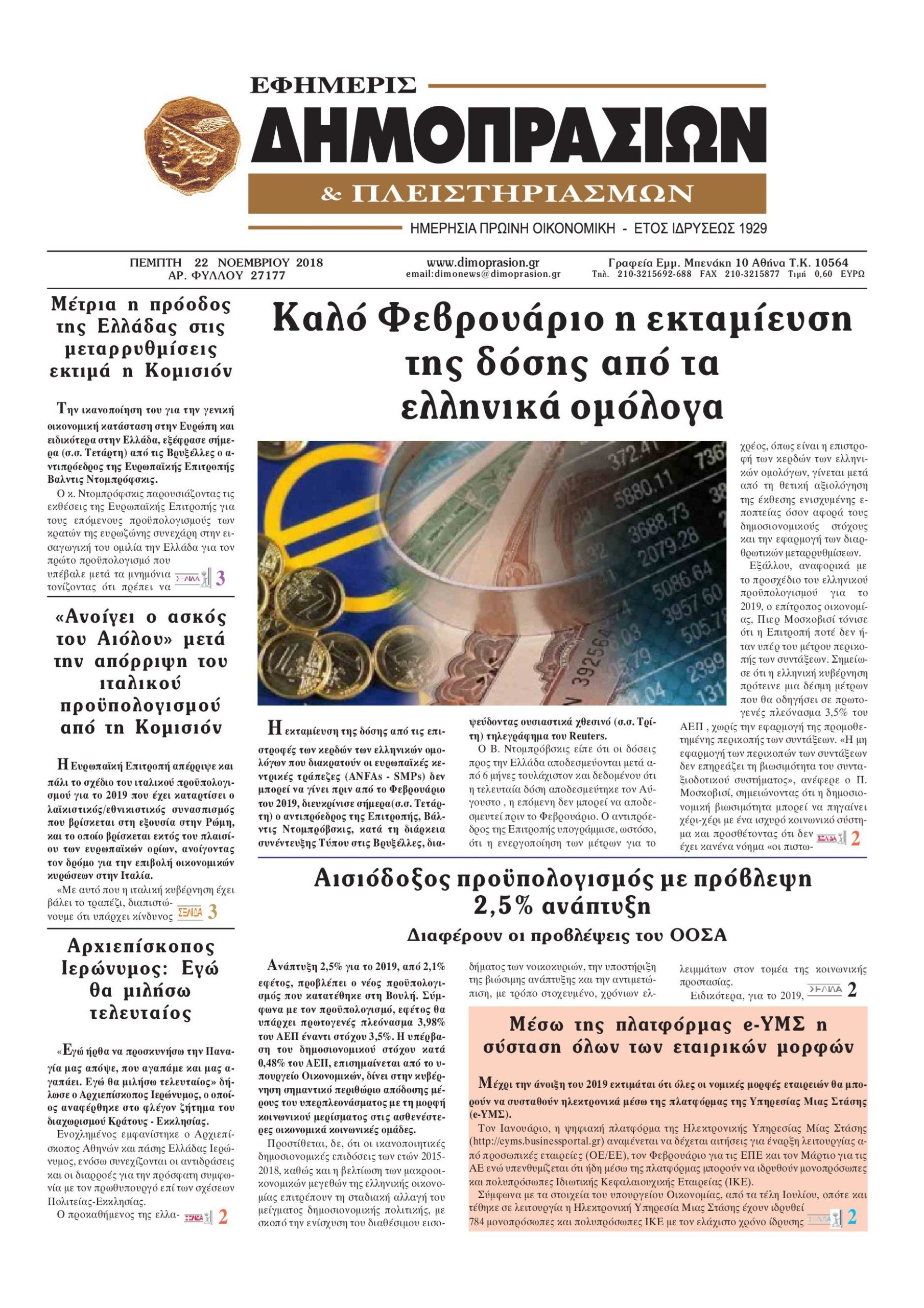 Οι οικονομικές εφημερίδες 22/11/18 Enikos Newsroom 06:38, Πέμπτη 22 Νοεμβρίου 2018 Media Διαβάστε τα πρωτοσέλιδα: ΟΙΚΟΝΟΜΙΚΕΣ ΕΦΗΜΕΡΙΔΕΣ ΠΡΩΤΟΣΕΛΙΔΑ Μοιράσου το: σχολίασε κι εσύ (0 σχόλια) Ακολουθήστε το enikos.gr στο Google News και μάθετε πρώτοι όλες τις ειδήσεις Δείτε όλες τις τελευταίες ειδήσεις από την Ελλάδα και τον Κόσμο στο enikos.gr Ειδήσεις Ροή Ειδήσεων 2 ώρες πριν Πέθανε η Ελένη Γλύκατζη-Αρβελέρ 2 ώρες πριν Ελένη Γλύκατζη-Αρβελέρ: Όσα είχε πει στο Ενώπιος Ενωπίω και τον Νίκο Χατζηνικολάου το 2020 – «Γεννήθηκα και θα πεθάνω Αριστερή» 5 ώρες πριν Υπουργείο Πολιτισμού: Στο Βέλγιο τις επόμενες ημέρες εμπειρογνώμονες για τις φωτογραφίες των 200 εκτελεσθέντων της Καισαριανής 2 ώρες πριν ΠΑΣΟΚ: Εκτός της Κοινοβουλευτικής Ομάδας του κόμματος ο Παναγιώτης Παρασκευαΐδης 2 ώρες πριν Ρόμπερτ Ντιβάλ: Πέθανε σε ηλικία 95 ετών ο βραβευμένος με Όσκαρ ηθοποιός 6 ώρες πριν Τα 4 ζώδια που θα έχουν την απόλυτη τύχη για το υπόλοιπο του Φεβρουαρίου – «Θα είναι σαν να βρίσκεστε στην κορυφή του κόσμου» 11 ώρες πριν «Έχασα 15 κιλά σε δύο μήνες λόγω προβλήματος υγείας» – Γυναίκα μιλάει για την απώλεια βάρους έπειτα από την γέννηση της κόρης της 7 ώρες πριν Ξεκίνησε η ζωή ως «γλίτσα»; Επιστήμονες προτείνουν μια νέα θεωρία που ανατρέπει την «αρχέγονη σούπα» 3 ώρες πριν Πώς να εξαφανίσετε τη μυρωδιά του κρεμμυδιού από τα χέρια σας, χωρίς να χρησιμοποιήσετε γάντια 8 λεπτά πριν ΣΥΡΙΖΑ για Αρβελέρ: Μια πρωτοπόρος που υπερασπίστηκε τη σημασία της ιστορικής γνώσης 9 λεπτά πριν Τέμπη: Εντολή για εκταφή 9 σορών από την Εισαγγελία Πρωτοδικών Λάρισας 14 λεπτά πριν Ηνωμένο Βασίλειο: Ανήλικοι σκότωσαν έναν 49χρονο επειδή πίστευαν ότι ήταν παιδόφιλος – Καταδικάστηκαν για ανθρωποκτονία 20 λεπτά πριν Ηλεία: «Βούλιαξαν» σπίτια και καλλιέργειες στο Βαρθολομιό από την απελευθέρωση υδάτων από το Φράγμα Καραμανλή – Αποκλεισμένοι από τις καθιζήσεις έξι οικισμοί 25 λεπτά πριν Προκόπης Παυλόπουλος για τον θάνατο της Ελένης Γλύκατζη-Αρβελέρ: «Δυσαναπλήρωτο κενό» ENIKOS NETWORK Αϋπνία: Το κόλπο με τη βραστή μπανάνα που θα σας βοηθήσει να κοιμηθείτε μέσα σε 30 λεπτά ΙΣΑ: Επιστολή στον υπουργό Άμυνας για αναβολή στράτευσης νέων γιατρών λόγω ειδικότητας Τσάφος: Η Αθήνα έχει τη χαμηλότερη τιμή στο νερό σε σχέση με όλες τις άλλες πρωτεύουσες της ΕΕ Φορολογικές δηλώσεις 2026: Τα μυστικά που πρέπει να γνωρίζετε για το νέο έντυπο Ε3 του έτους 2025 Ευπάθεια στο moltbook ai αποκαλύπτει email, tokens σύνδεσης και api keys Αυτός είναι ο ρόλος της μικρής τρύπας στους νυχοκόπτες – «Είμαι ο μόνος που δεν το ήξερε;»» περισσότερα 20:35 , Δευτέρα 16 Φεβρουαρίου 2026 MasterChef 10: Ποιοι θα είναι οι δύο υποψήφιοι προς αποχώρηση στο τέλος της βραδιάς; Στο επεισόδιο της Πέμπτης ο Παναγιώτης Καλημέρης ήταν αυτός που αποχώρησε από το MasterChef 10... 20:15 , Δευτέρα 16 Φεβρουαρίου 2026 Ελένη Γλύκατζη-Αρβελέρ: Όσα είχε πει στο Ενώπιος Ενωπίω και τον Νίκο Χατζηνικολάου το 2020 – «Γεννήθηκα και θα πεθάνω Αριστερή» Για τα παιδικά της χρόνια, την ένταξή της στην Αντίσταση καθώς και τα δύσκολα χρόνια της κατοχ... 20:15 , Δευτέρα 16 Φεβρουαρίου 2026 Άγιος έρωτας – Η Δώρα χάνει τον κόσμο κάτω απ’ τα πόδια της αντικρίζοντας ζωντανό τον Γεράσιμο Ο Χάρης είναι ελεύθερος πια να παντρευτεί την αγαπημένη του Αναστασία, χάρη στον Αντρέα στο νέ... 19:57 , Δευτέρα 16 Φεβρουαρίου 2026 Θύμα διαδικτυακής απάτης ο Νίκος Χατζηνικολάου – Προφίλ στο «X» παρίστανε ότι ήταν ο ίδιος Θύμα διαδικτυακής απάτης δήλωσε ότι έπεσε ο δημ