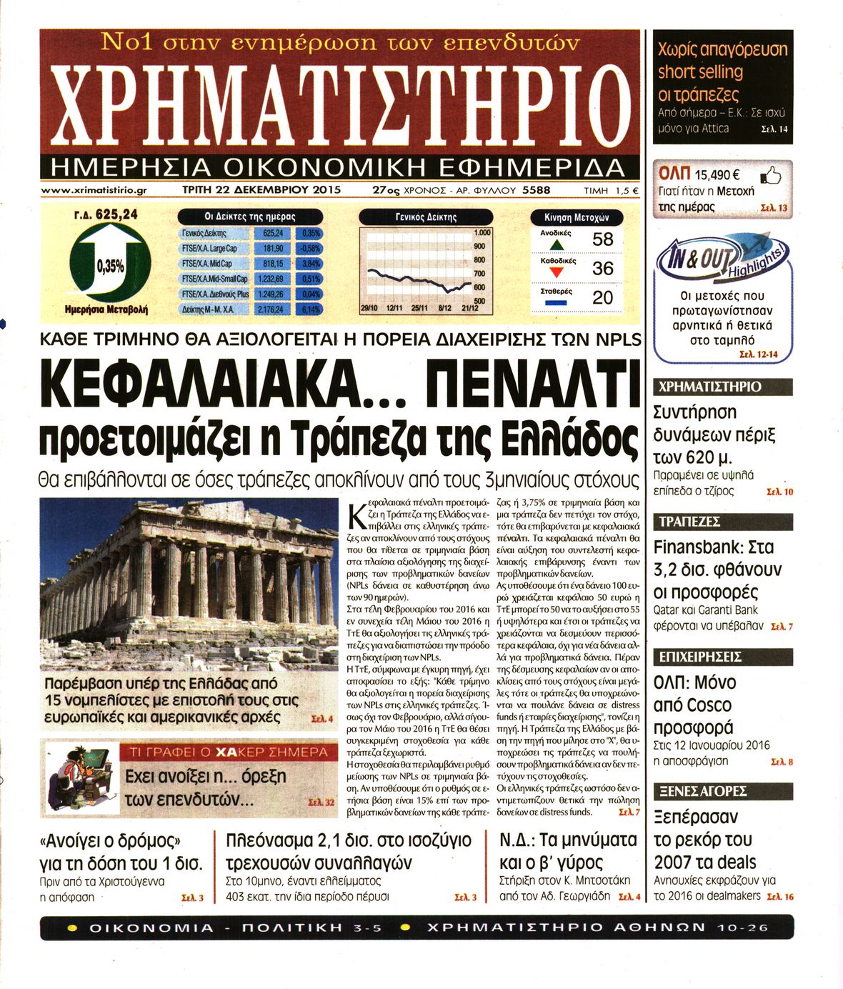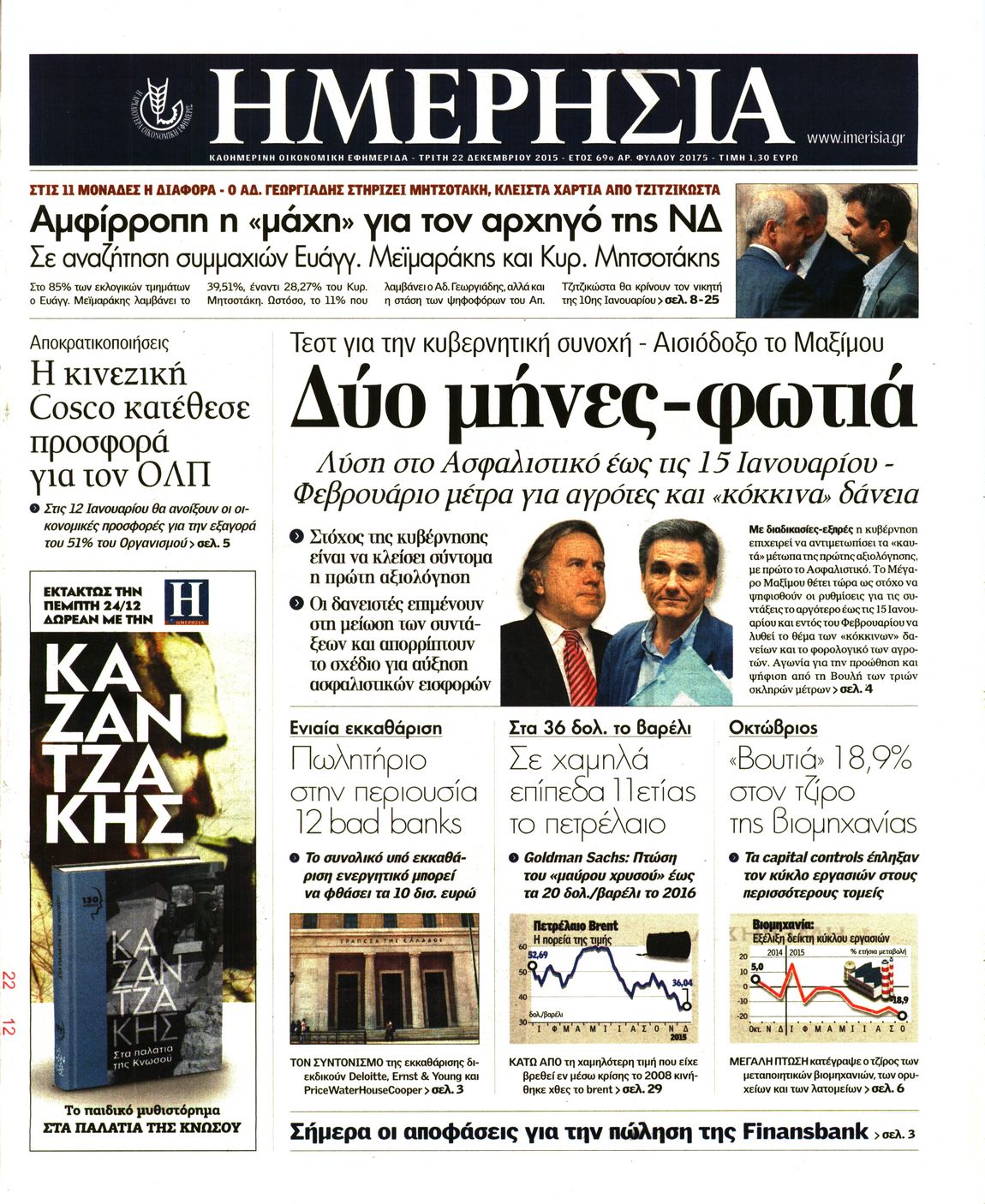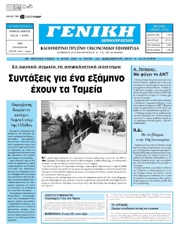 Oι οικονομικές εφημερίδες 22/12/2015 Enikos Newsroom 05:42, Τρίτη 22 Δεκεμβρίου 2015 Media Διαβάστε τα σημερινά πρωτοσέλιδα των οικονομικών εφημερίδων: ΟΙΚΟΝΟΜΙΚΕΣ ΕΦΗΜΕΡΙΔΕΣ ΠΡΩΤΟΣΕΛΙΔΑ Μοιράσου το: σχολίασε κι εσύ (0 σχόλια) Ακολουθήστε το enikos.gr στο Google News και μάθετε πρώτοι όλες τις ειδήσεις Δείτε όλες τις τελευταίες ειδήσεις από την Ελλάδα και τον Κόσμο στο enikos.gr Ειδήσεις Ροή Ειδήσεων 13 λεπτά πριν Κλιμακώνουν από σήμερα τις κινητοποιήσεις οι αγρότες: Νέα μπλόκα, κλείσιμο παρακαμπτηρίων και άνοιγμα διοδίων – Το νέο μήνυμα Μητσοτάκη 40 λεπτά πριν Συντάξεις: Οι κερδισμένοι και οι χαμένοι από τις αυξήσεις – Αναλυτικός οδηγός και παραδείγματα 4 ώρες πριν Ευρωπαϊκή Ένωση: Συμφωνία για δάνειο 90 δισ. ευρώ στην Ουκρανία τη διετία 2026-2027 – Μητσοτάκης: Η λύση που προκρίθηκε είναι η ενδεδειγμένη 59 λεπτά πριν Θανατηφόρο τροχαίο στη Νέα Φιλαδέλφεια: Νεκρός 27χρονος οδηγός μηχανής ύστερα από σύγκρουση με τρόλεϊ 8 ώρες πριν ΟΠΕΚΕΠΕ: Προφυλακιστέος ο φερόμενος αρχηγός και ο λογιστής της εγκληματικής οργάνωσης 2 ώρες πριν Οπτική ψευδαίσθηση: Μόνο αν έχεις αετίσια ματιά θα βρεις τον παπαγάλο σε 12 δευτερόλεπτα 2 ώρες πριν Κρύα χέρια και πόδια: Γιατρός εξηγεί ποια είναι η αίτια και πότε πρέπει να ανησυχήσετε 3 ώρες πριν Τα ζώδια σήμερα, Παρασκευή 19 Δεκεμβρίου: Τοξότες, με τη Νέα Σελήνη έρχεται η προσωπική ανανέωσή σας 2 ημέρες πριν 20 χρόνια τα Χριστούγεννα ξεκινούν στα Public με μεγάλη ποικιλία σε δώρα! 5 δευτερόλεπτα πριν Την Κυριακή με τη Realnews: Δωροεπιταγή 10€ 6 λεπτά πριν Πανεπιστήμιο Μπράουν: Νεκρός ο ύποπτος για την επίθεση 12 λεπτά πριν Τέμπη: Συνεχίζεται σήμερα η δίκη για τη διαχείριση του βιντεοληπτικού υλικού 13 λεπτά πριν Κλιμακώνουν από σήμερα τις κινητοποιήσεις οι αγρότες: Νέα μπλόκα, κλείσιμο παρακαμπτηρίων και άνοιγμα διοδίων – Το νέο μήνυμα Μητσοτάκη 21 λεπτά πριν e-ΕΦΚΑ και ΔΥΠΑ: Τελευταία ημέρα πληρωμών σήμερα ENIKOS NETWORK Άνοια: Ειδικοί προειδοποιούν για 5 κοινές συνήθειες που μπορεί να αυξήσουν τον κίνδυνο 6 Χριστουγεννιάτικα δώρα για όσους τα έχουν όλα – Θα τους εκπλήξουν Συντάξεις: Οι κερδισμένοι και οι χαμένοι από τις αυξήσεις – Αναλυτικός οδηγός Στεγαστικό: Τι λέει η ΠΟΜΙΔΑ για τα νέα μέτρα που ανακοίνωσε ο Κυριάκος Μητσοτάκης Χαρτογραφώντας το «σημείο χωρίς επιστροφή»: Για πρώτη φορά αποκαλύπτεται με λεπτομέρεια το ακανθώδες όριο της ατμόσφαιρας τ... Η Google καταργεί τη λειτουργία «dark web report» – Πώς θα μπορούν οι χρήστες να διαγράφουν τα δεδομένα τους περισσότερα 05:48 , Παρασκευή 19 Δεκεμβρίου 2025 Οι οικονομικές εφημερίδες 19/12/2025 Διαβάστε τα πρωτοσέλιδα από τις οικονομικές εφημερίδες, σήμερα 19/12/2025. 05:43 , Παρασκευή 19 Δεκεμβρίου 2025 Οι αθλητικές εφημερίδες 19/12/2025 Διαβάστε τα πρωτοσέλιδα από τις αθλητικές εφημερίδες, σήμερα 19/12/2025. 05:38 , Παρασκευή 19 Δεκεμβρίου 2025 Οι πολιτικές εφημερίδες 19/12/2025 Διαβάστε τα πρωτοσέλιδα από τις πολιτικές εφημερίδες, σήμερα 19/12/2025. 02:50 , Παρασκευή 19 Δεκεμβρίου 2025 GNTM: «Κλείδωσαν» οι τέσσερις φιναλίστ – Μεγάλη ανατροπή στις τελευταίες αποχωρήσεις Για προτελευταία φορά εμφανίστηκαν στο πλατό του GNTM οι φιναλίστ του φετινού κύκλου, το βράδυ... ΤΕΛΕΥΤΑΙΕΣ ΕΙΔΗΣΕΙΣ 6 λεπτά πριν Πανεπιστήμιο Μπράουν: Νεκρός ο ύποπτος για την επίθεση 12 λεπτά πριν Τέμπη: Συνεχίζεται σήμερα η δίκη για τη διαχείριση του... 13 λεπτά πριν Κλιμακώνουν από σήμερα τις κινητοποιήσεις οι αγρότες:... 21 λεπτά πριν e-ΕΦΚΑ και ΔΥΠΑ: Τελευταία ημέρα πληρωμών σήμερα 28 λεπτά πριν Καιρός: Ηλι