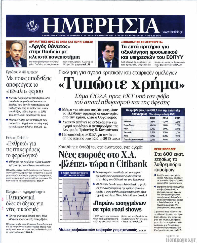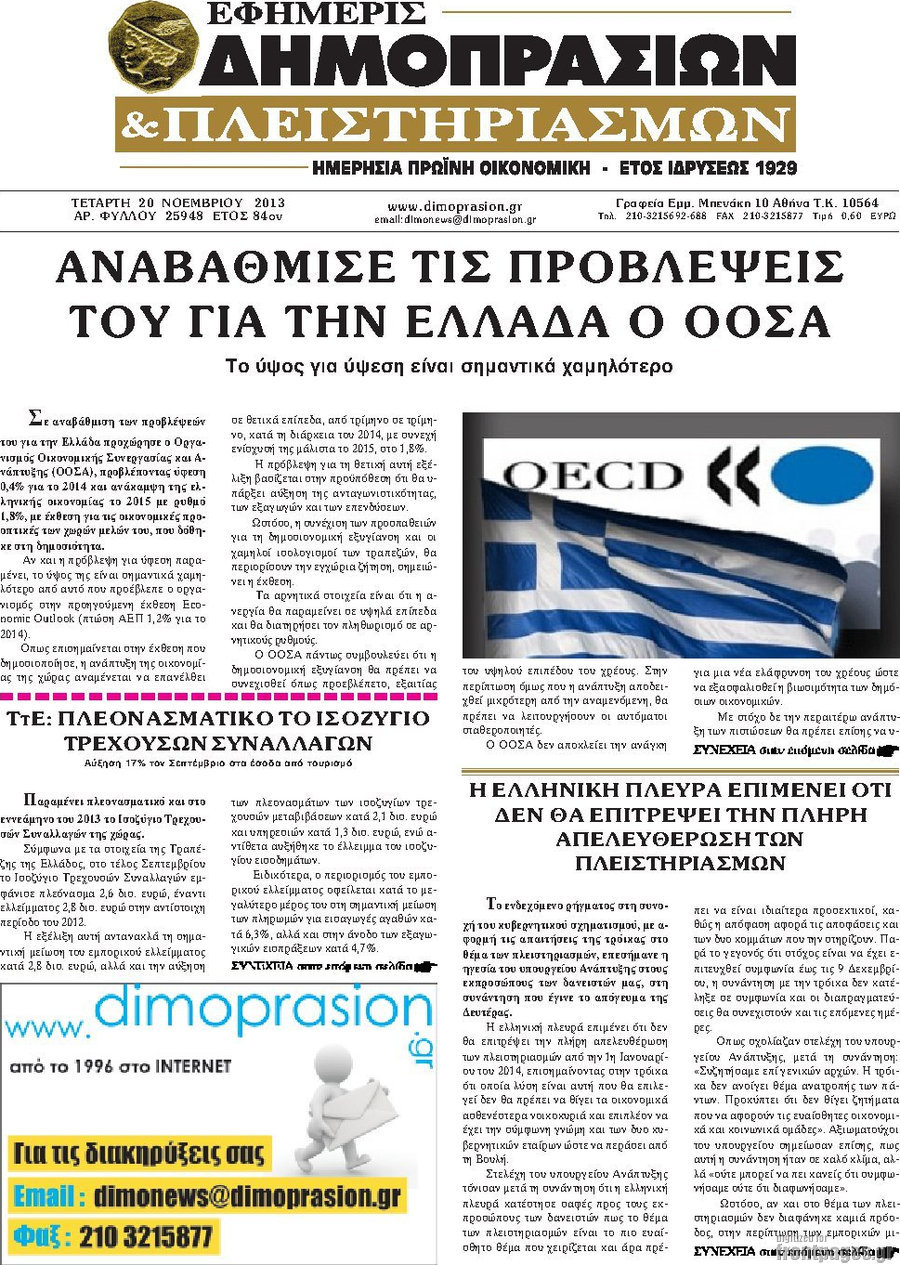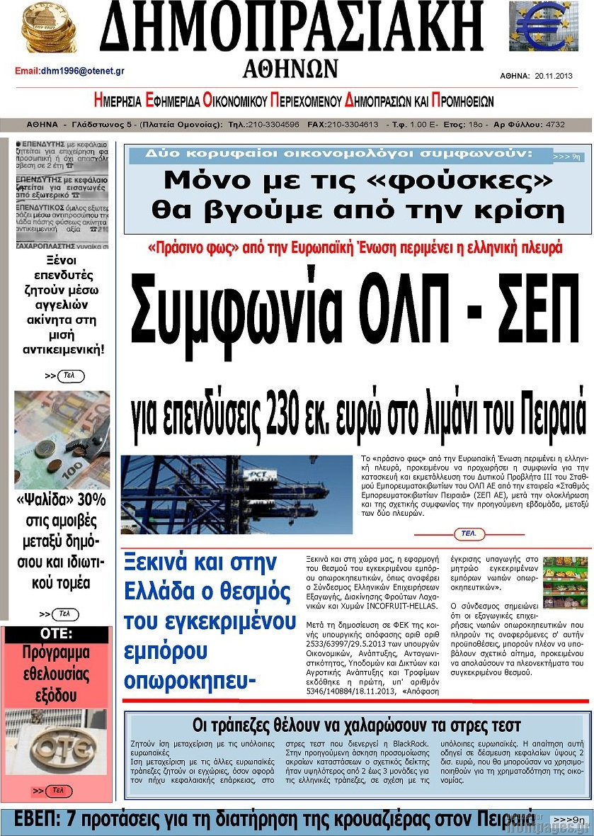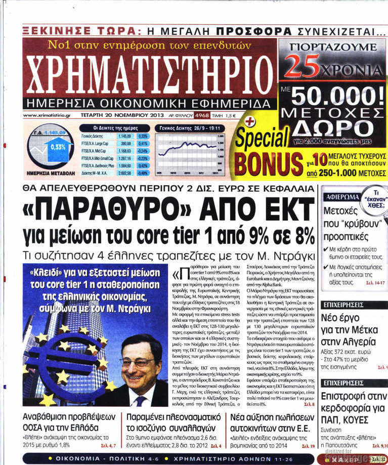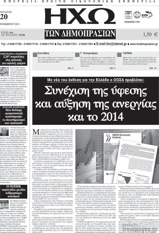 Οι oικονομικές εφημερίδες Enikos Newsroom 09:13, Τετάρτη 20 Νοεμβρίου 2013 Media Οι oικονομικές εφημερίδες Διαβάστε τα πρωτοσέλιδα των οικονομικών εφημερίδων: ΕΦΗΜΕΡΙΕΣ ΟΙΚΟΝΟΜΙΚΕΣ ΕΦΗΜΕΡΙΔΕΣ ΠΡΩΤΟΣΕΛΙΔΑ Μοιράσου το: σχολίασε κι εσύ (0 σχόλια) Ακολουθήστε το enikos.gr στο Google News και μάθετε πρώτοι όλες τις ειδήσεις Δείτε όλες τις τελευταίες ειδήσεις από την Ελλάδα και τον Κόσμο στο enikos.gr Ειδήσεις Ροή Ειδήσεων 2 ώρες πριν Τσιάρας: Καλούμε άμεσα τους εκπροσώπους των αγροτών σε ουσιαστικό διάλογο – Υπάρχουν περιθώρια, η κοινωνία περιμένει υπευθυνότητα 1 ώρα πριν Κυψέλη: Για πρώτη ημέρα βρισκόταν στο σχολείο η 16χρονη που επιτέθηκε με μαχαίρι στην 14χρονη – Τι αναφέρουν μαρτυρίες μαθητών για το επεισόδιο 2 ώρες πριν Λάρισα: Αναβλήθηκε για τον Οκτώβριο του 2026 η δίκη δύο αγροτών του μπλόκου της Νίκαιας 6 ώρες πριν Σίδνεϊ: Τα ονόματα των θυμάτων από την τρομοκρατική επίθεση – Η 10χρονη Ματίλντα και ο επιζών του Ολοκαυτώματος που έσωσε τη γυναίκα του 7 ώρες πριν Δείτε το συνέδριο «Ελληνικός Τουρισμός, Μια Εθνική Υπόθεση!» 1 ώρα πριν Τα 3 ζώδια που θα έχουν τύχη «βουνό» έως τις 21 Δεκεμβρίου – «Η ανατροπή που περιμένετε πλησιάζει» 5 ώρες πριν Μακροζωία: 55χρονος που ισχυρίζεται ότι βιολογικά είναι 20 ετών μοιράζεται μια απλή συμβουλή για υγιή εγκέφαλο 6 ώρες πριν Οι 8 φράσεις που δίνουν αμέσως την εντύπωση πως είστε δύσκολος άνθρωπος 8 ώρες πριν Κληρονόμησε 2,8 εκατ. ευρώ και φοβάται ότι οι άνδρες θα την πλησιάζουν για τα λεφτά – «Μήπως καλύτερα να το κρατήσω μυστικό;» 3 λεπτά πριν Μεσσηνία: Αγρότες απέκλεισαν τον αυτοκινητόδρομο στο ύψος της Θουρίας – Κλειστά και τα δύο ρεύματα 9 λεπτά πριν Ρεάλ Μαδρίτης: 180 λεπτά και 3 γκολ μακριά από το ιστορικό ρεκόρ του Κριστιάνο Ρονάλντο ο Μπαπέ 15 λεπτά πριν Σοκ στη Σίκινο: Ανθρώπινος σκελετός εντοπίστηκε από κυνηγούς – Ανήκει στη μία εκ των 2 τουριστριών που αγνοούνταν από το 2024 21 λεπτά πριν Κουίζ για την παλιά Αθήνα: Αναγνωρίζετε την οδό; Είναι από τις πιο γνωστές 27 λεπτά πριν Νίκος Δένδιας: Ανακριβές ότι πήραμε πίσω την πρότασή μας για το SAFE – ΒΙΝΤΕΟ ENIKOS NETWORK Οι 9 κορυφαίες ιατρικές έρευνες για το 2025 που αλλάζουν το τοπίο της υγείας Ραντεβού από σήμερα για ιατρικές εξετάσεις με ένα κλικ μέσω του MyHealth app ΕΛΣΤΑΤ: Μείωση 6,4% στον αριθμό των κενών θέσεων εργασίας στο σύνολο της οικονομίας κατά το γ’ τρίμηνο 2025 – Δείτε αναλυτι... IRIS: Τι αλλάζει μετά την Πρωτοχρονιά στις συναλλαγές και ποιες θα είναι «επικίνδυνες» Σύγχρονος Νοστράδαμος: Προειδοποιεί για «μεγάλο γεγονός» τους επόμενους μήνες που θα συγκλονίσει τη Βρετανία και τον κόσμο Τεστ παρατηρητικότητας: Μπορείτε να βρείτε τις 3 διαφορές στις εικόνες με έναν πιγκουίνο σε 14 δευτερόλεπτα περισσότερα 15:31 , Δευτέρα 15 Δεκεμβρίου 2025 Συνέδριο «Ελληνικός Τουρισμός 2025, Μια εθνική υπόθεση!» – Το στοίχημα του ανθρώπινου δυναμικού στον τουρισμό Τον κρίσιμο ρόλο της εκπαίδευσης, της κατάρτισης και της επάρκειας ανθρώπινου δυναμικού για τη... 14:57 , Δευτέρα 15 Δεκεμβρίου 2025 Συνέδριο «Ελληνικός Τουρισμός 2025, Μια εθνική υπόθεση!» – Σταύρος Αρναουτάκης: Βασικό θέμα για την ανάπτυξη κάθε Περιφέρειας είναι οι υποδομές Το ετήσιο συνέδριο «Ελληνικός Τουρισμός 2025, Μια εθνική υπόθεση!» συνδιοργανώνουν η Next is N... 14:27 , Δευτέρα 15 Δεκεμβρίου 2025 Να μ’ αγαπάς: Η Φωτεινή αποφασίζει να δώσει τέλος στη ζωή της Η Φωτεινή βεβαιώνεται πως είναι έγκυος στο νέο επεισόδιο της σειράς “Να μ’ αγαπάς&... 14:08 , Δευτέρα 15 Δεκεμβρίου 202