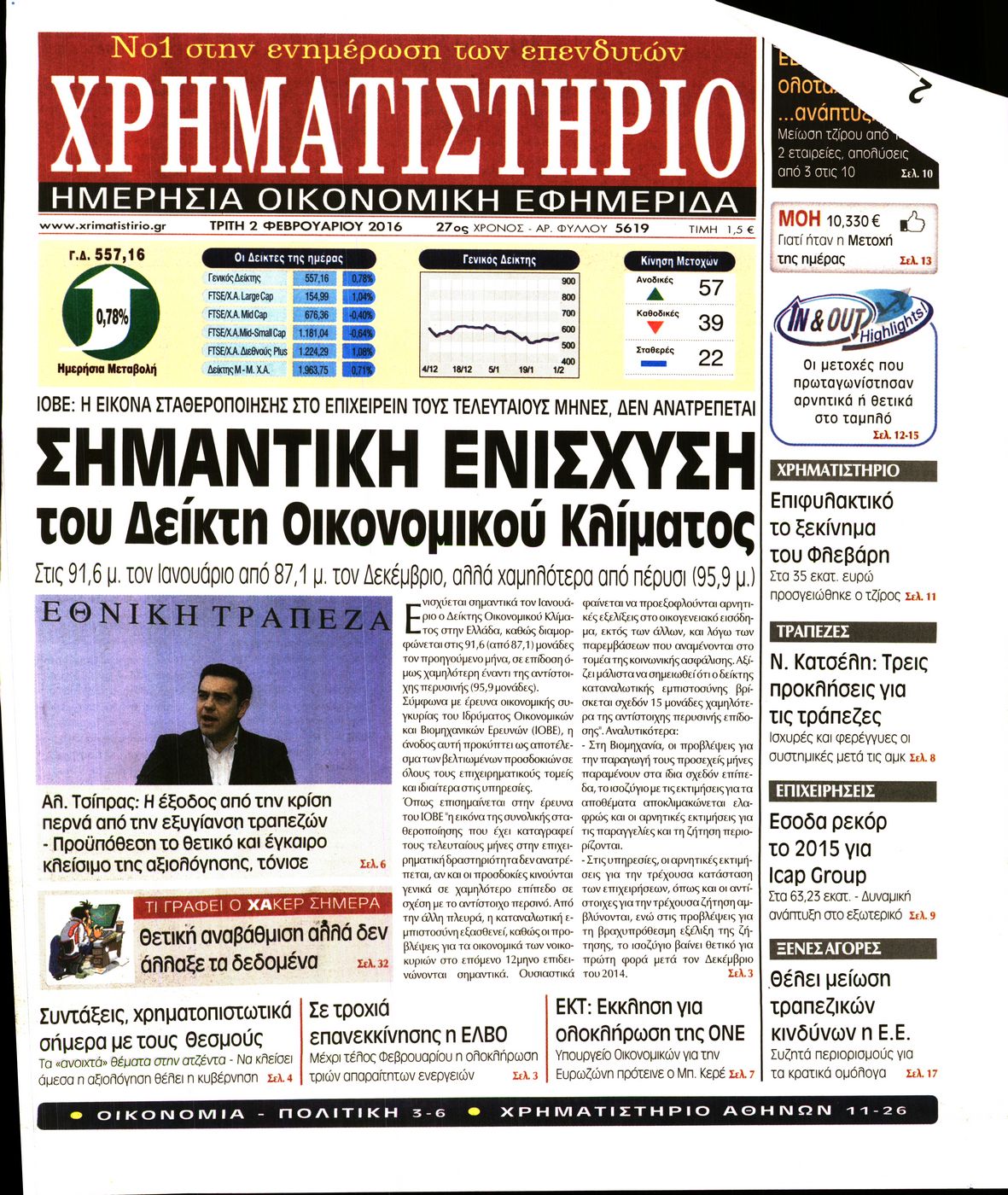 Oι οικονομικές εφημερίδες 2/2/2016 Enikos Newsroom 05:56, Τρίτη 02 Φεβρουαρίου 2016 Media Διαβάστε τα σημερινά πρωτοσέλιδα των οικονομικών εφημερίδων: ΟΙΚΟΝΟΜΙΚΕΣ ΕΦΗΜΕΡΙΔΕΣ ΠΡΩΤΟΣΕΛΙΔΑ Μοιράσου το: σχολίασε κι εσύ (0 σχόλια) Ακολουθήστε το enikos.gr στο Google News και μάθετε πρώτοι όλες τις ειδήσεις Δείτε όλες τις τελευταίες ειδήσεις από την Ελλάδα και τον Κόσμο στο enikos.gr Ειδήσεις Ροή Ειδήσεων 38 λεπτά πριν Φοροδιαφυγή: Ποιοι φορολογούμενοι κινδυνεύουν να πληρώσουν «τσουχτερά» πρόστιμα 16 λεπτά πριν Αγρότες: Ανυποχώρητοι στα μπλόκα – Στις Σέρρες σήμερα η κρίσιμη συνεδρίαση της Πανελλαδικής Επιτροπής 28 λεπτά πριν Τα επίσημα χρονοδιαγράμματα που η Τουρκία θα παραλάβει τα Eurofighter 9 ώρες πριν «Θύελλα» αντιδράσεων για τον Νίκο Παππά μετά την επίθεση στον δημοσιογράφο Νίκο Γιαννόπουλο – Η μήνυση, οι δηλώσεις και η έξοδος από την ευρωομάδα του ΣΥΡΙΖΑ 9 ώρες πριν Politico: Το πρόβλημα της Ευρώπης δεν είναι το Βέλγιο αλλά ο Ντόναλντ Τραμπ 2 ώρες πριν Καούρα: Το μπαχαρικό που είναι «εξίσου αποτελεσματικό» με την ομεπραζόλη, σύμφωνα με ειδικούς 2 ώρες πριν Τα ζώδια σήμερα, Πέμπτη 18 Δεκεμβρίου: Λέοντες, η καρδιά σας θέλει να εκφραστεί 2 ώρες πριν Οπτική ψευδαίσθηση: Μόνο οι πιο έξυπνοι άνθρωποι θα βρουν 7 ξωτικά 15 δευτερόλεπτα 23 ώρες πριν 20 χρόνια τα Χριστούγεννα ξεκινούν στα Public με μεγάλη ποικιλία σε δώρα! 4 λεπτά πριν Την Κυριακή με τη Realnews: Δωροεπιταγή 10€ 2 λεπτά πριν Έδεσσα: Χωρίς τις αισθήσεις ανασύρθηκε ηλικιωμένη έπειτα από φωτιά σε μονοκατοικία 7 λεπτά πριν «Το σόι σου»: Backstage στα γυρίσματα για το εορταστικό επεισόδιο 13 λεπτά πριν e-ΕΦΚΑ και ΔΥΠΑ: Προτελευταία ημέρα πληρωμών σήμερα 16 λεπτά πριν Αγρότες: Ανυποχώρητοι στα μπλόκα – Στις Σέρρες σήμερα η κρίσιμη συνεδρίαση της Πανελλαδικής Επιτροπής ENIKOS NETWORK Ουρική αρθρίτιδα: Μεγάλη μελέτη αποκαλύπτει τι μπορεί να προκαλεί τη νόσο Τι σημαίνει όταν ο σκύλος σας σάς φέρνει τυχαία αντικείμενα, σύμφωνα με εκπαιδεύτρια Φοροδιαφυγή: Ποιοι φορολογούμενοι κινδυνεύουν να πληρώσουν «τσουχτερά» πρόστιμα ΕΛΣΤΑΤ: Τι δείχνουν τα νέα στοιχεία για τις ηλεκτρονικές παραγγελίες των επιχειρήσεων Χαρτογραφώντας το «σημείο χωρίς επιστροφή»: Για πρώτη φορά αποκαλύπτεται με λεπτομέρεια το ακανθώδες όριο της ατμόσφαιρας τ... Η Google καταργεί τη λειτουργία «dark web report» – Πώς θα μπορούν οι χρήστες να διαγράφουν τα δεδομένα τους περισσότερα 07:50 , Πέμπτη 18 Δεκεμβρίου 2025 «Το σόι σου»: Backstage στα γυρίσματα για το εορταστικό επεισόδιο «Το σόι σου» φορά τα γιορτινά του για τα Χριστούγεννα και η Όλγα Λαφαζάνη, με την κάμερα του «... 07:36 , Πέμπτη 18 Δεκεμβρίου 2025 Οι αθλητικές μεταδόσεις 18/12/2025 – Πού θα δείτε τον αγώνα της ΑΕΚ με την Κραϊόβα για το Conference League Τα ματς ΑΕΚ – Ουνιβερσιτάτεα Κραϊόβα για το Conference League και Παναθηναϊκός – Χάποελ Τελ Αβ... 05:48 , Πέμπτη 18 Δεκεμβρίου 2025 Οι οικονομικές εφημερίδες 18/12/2025 Διαβάστε τα πρωτοσέλιδα από τις οικονομικές εφημερίδες, σήμερα 18/12/2025. 05:43 , Πέμπτη 18 Δεκεμβρίου 2025 Οι αθλητικές εφημερίδες 18/12/2025 Διαβάστε τα πρωτοσέλιδα από τις αθλητικές εφημερίδες, σήμερα 18/12/2025. ΤΕΛΕΥΤΑΙΕΣ ΕΙΔΗΣΕΙΣ 7 λεπτά πριν «Το σόι σου»: Backstage στα γυρίσματα για το εορταστικό... 13 λεπτά πριν e-ΕΦΚΑ και ΔΥΠΑ: Προτελευταία ημέρα πληρωμών σήμερα 16 λεπτά πριν Αγρότες: Ανυποχώρητοι στα μπλόκα – Στις Σέρρες... 21 λεπτά πριν Οι αθλητικές μεταδόσεις 18/12/2025 – Πού θα δείτε τον... 24 λεπτά πριν Σοβαρό τροχαίο στη Βασιλίσσης Σοφίας: Αυτοκίνητο... 28 λεπτά πριν Τα επίσημα χρονοδιαγράμ