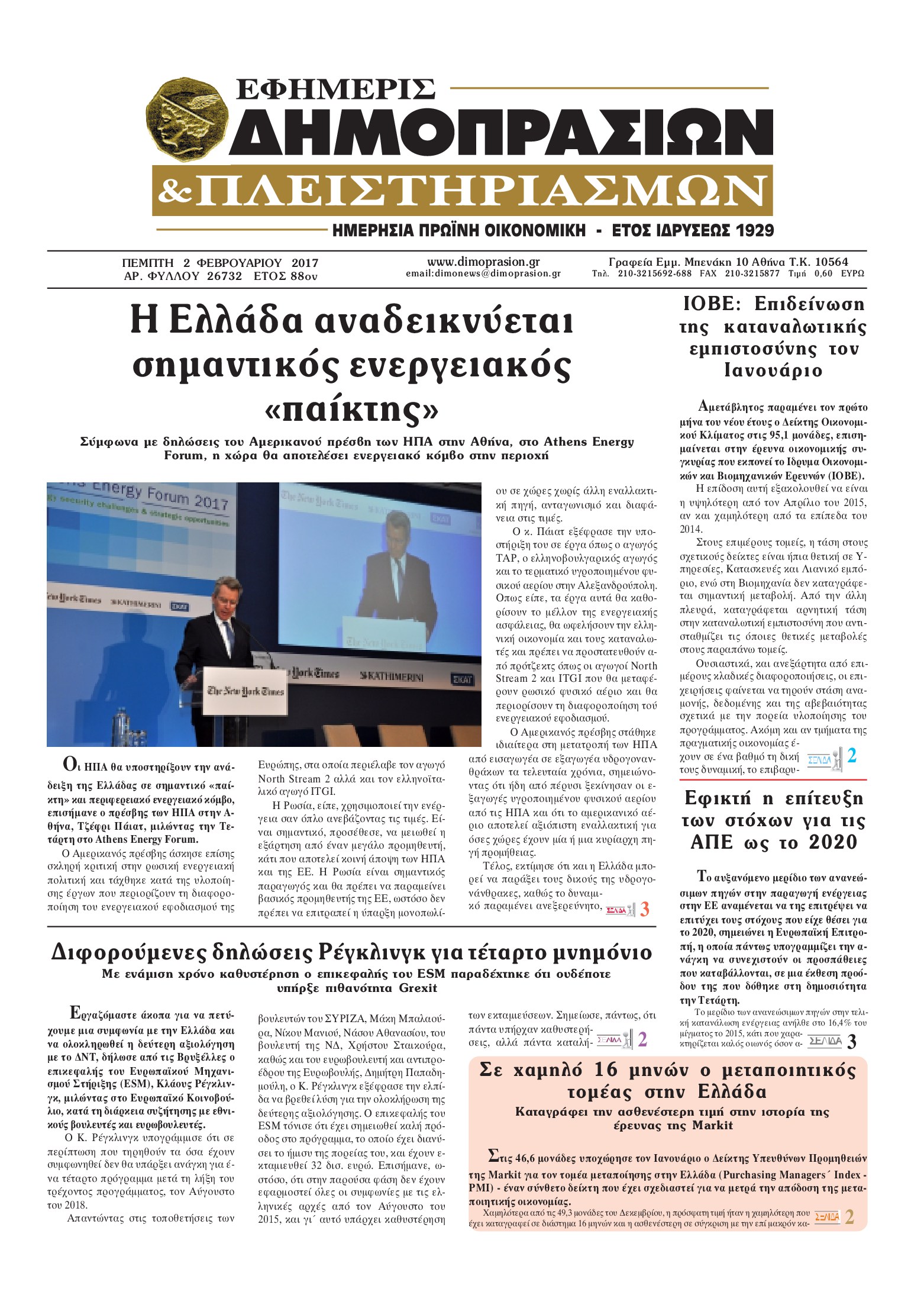 Οι οικονομικές εφημερίδες 2/2/2017