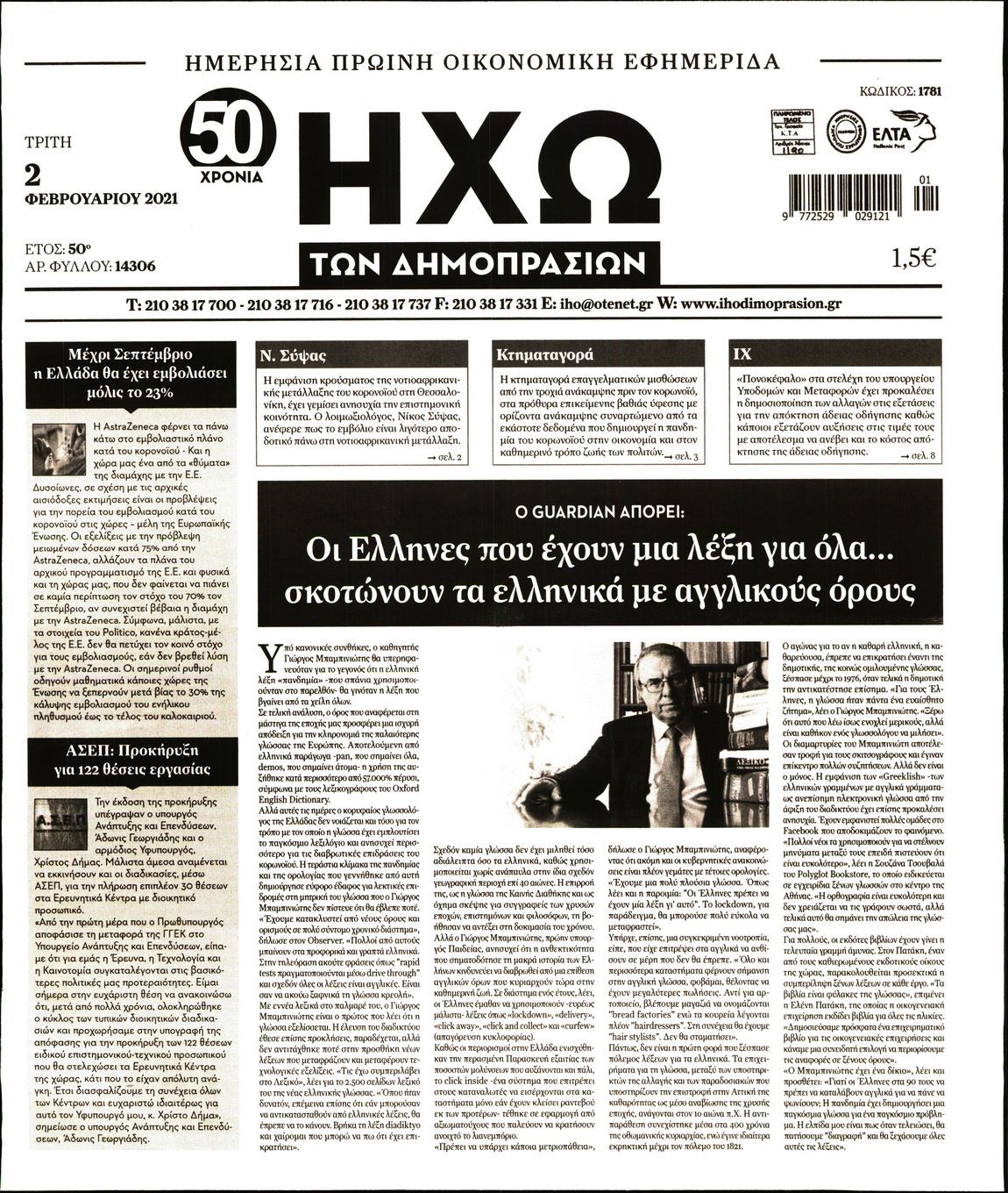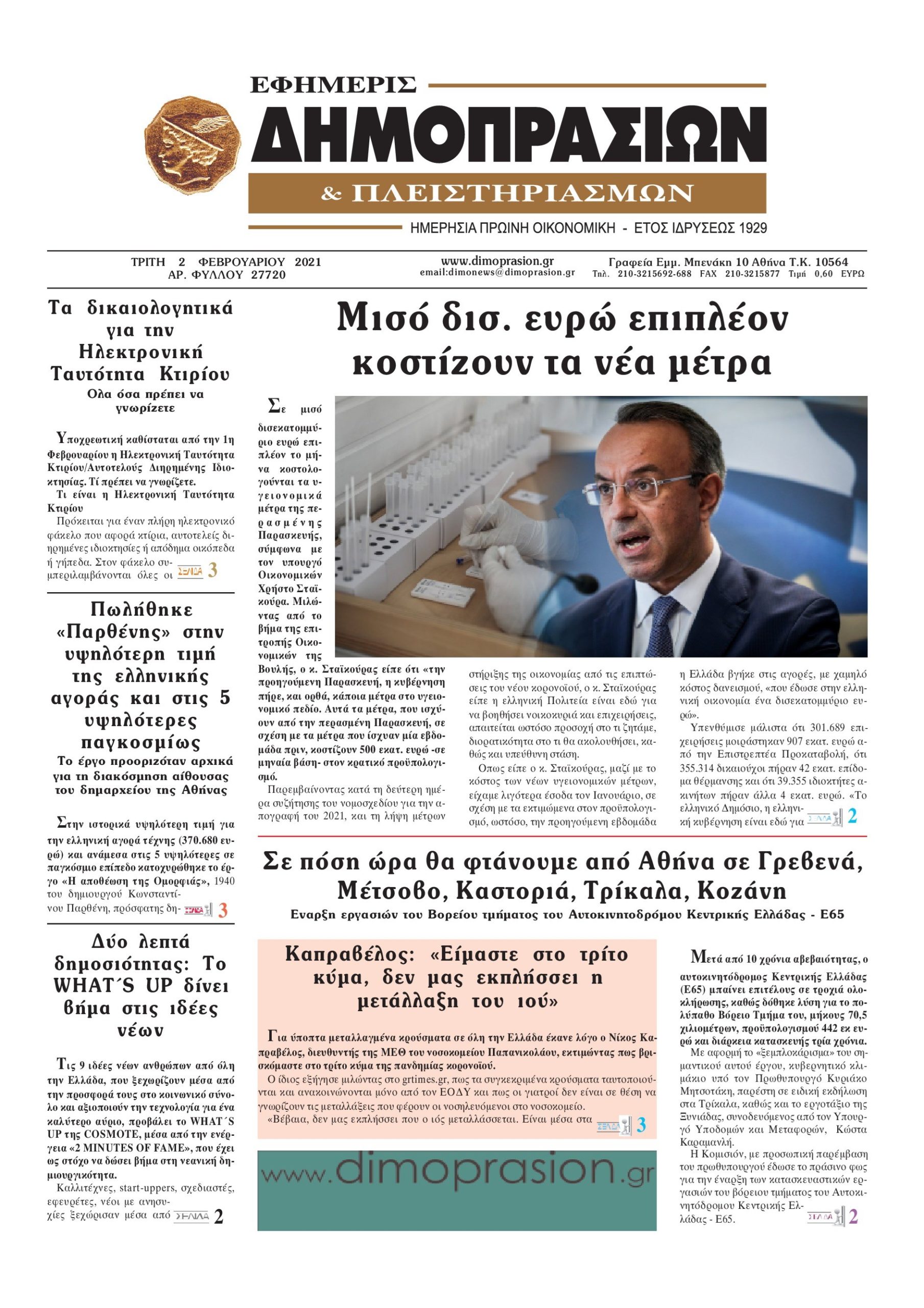 Οι οικονομικές εφημερίδες 2/2/2021 Διονύσης Νίκκας 06:29, Τρίτη 02 Φεβρουαρίου 2021 Media Διαβάστε τα πρωτοσέλιδα των οικονομικών εφημερίδων… ΟΙΚΟΝΟΜΙΚΕΣ ΕΦΗΜΕΡΙΔΕΣ Μοιράσου το: σχολίασε κι εσύ (0 σχόλια) Ακολουθήστε το enikos.gr στο Google News και μάθετε πρώτοι όλες τις ειδήσεις Δείτε όλες τις τελευταίες ειδήσεις από την Ελλάδα και τον Κόσμο στο enikos.gr Ειδήσεις Ροή Ειδήσεων 5 ώρες πριν Χριστούγεννα στα μπλόκα: Επιμένουν στις κινητοποιήσεις τους οι αγρότες – Ανοίγουν τα διόδια το Σαββατοκύριακο 5 ώρες πριν Ουκρανία: Η άνευ προηγουμένου επίθεση σε ρωσικό τάνκερ στη Μεσόγειο και το μήνυμα προς στον Πούτιν – Το «μακρύ χέρι» του Κιέβου 4 ώρες πριν Πούτιν: Τα μηνύματα σε Ευρώπη και ΝΑΤΟ από το μαραθώνιο «σόου» του – Η απαίτηση για «σεβασμό» και η ειρήνη «με τους όρους» της Μόσχας 5 ώρες πριν Τραμπ: Δεν αποκλείει την πιθανότητα ενός πολέμου στη Βενεζουέλα – «Ο Μαδούρο ξέρει καλύτερα από τον καθένα τι ακριβώς θέλω» 6 ώρες πριν Συνεχίζει να προκαλεί ο Μίτσκοσκι: «Για μένα το όνομα Μακεδονία είναι ιερό» 4 ώρες πριν Ανακαλύφθηκαν αρχαία χρυσά νομίσματα 2.200 ετών που απεικονίζουν τον θεό Απόλλωνα – Η άγνωστη σύνδεση με τον Φίλιππο Β΄ της Μακεδονίας 5 ώρες πριν Ύπνος: Μια κρυφή κατάσταση του εγκεφάλου πριν από τον ύπνο μπορεί να είναι το “κλειδί” για υψηλή ευφυΐα και δημιουργικότητα 6 ώρες πριν Αριθμολογία: Οι άνθρωποι που έχουν γεννηθεί αυτές τις 4 ημερομηνίες, συχνά παρεξηγούνται – «Η καλοσύνη τους κρύβει τεράστια δύναμη» 7 ώρες πριν Ξεχάστε το καθάρισμα το Σαββατοκύριακο: Ο «κανόνας των 20 λεπτών» που θα σας λύσει τα χέρια 14 λεπτά πριν Η Ελλάδα προσχωρεί στη Διεθνή Επιτροπή Αποζημιώσεων για την Ουκρανία 29 λεπτά πριν GNTM: Η Ξένια Τσίρκοβα αναδείχθηκε μεγάλη νικήτρια και πήρε τις 50.000 ευρώ – Ποιος βρέθηκε σε απόσταση αναπνοής; 44 λεπτά πριν Θεσσαλονίκη: Εξαφανίστηκε 13χρονος από χώρο φιλοξενίας ασυνόδευτων ανηλίκων στο Ωραιόκαστρο 54 λεπτά πριν Ντόναλντ Τραμπ: «Πολύ βαριά αντίποινα» στη Συρία – «Πλήττουμε πολύ δυνατά οχυρά του Ισλαμικού Κράτους» 1 ώρα πριν Εξάρχεια: Ένταση με μολότοφ, χημικά και κρότου λάμψης ENIKOS NETWORK Το ΕΚΑΒ τιμήθηκε από την Ακαδημία Αθηνών για τα 40 χρόνια προσφοράς του Έχετε πραγματικά μεγάλη καρδιά; 10 χαρακτηριστικά όσων έχουν καλοσύνη Αναστολή μέτρων αναγκαστικής εκτέλεσης για κτηνοτρόφους που πλήττονται από την ευλογιά των αιγοπροβάτων Πλήρης επάρκεια προϊόντων στις λαϊκές της Αττικής, παρά τις αγροτικές κινητοποιήσεις – Τι απαντούν οι πωλητές Χαρτογραφώντας το «σημείο χωρίς επιστροφή»: Για πρώτη φορά αποκαλύπτεται με λεπτομέρεια το ακανθώδες όριο της ατμόσφαιρας τ... Η Google καταργεί τη λειτουργία «dark web report» – Πώς θα μπορούν οι χρήστες να διαγράφουν τα δεδομένα τους περισσότερα 02:50 , Σάββατο 20 Δεκεμβρίου 2025 GNTM: Η Ξένια Τσίρκοβα αναδείχθηκε μεγάλη νικήτρια και πήρε τις 50.000 ευρώ – Ποιος βρέθηκε σε απόσταση αναπνοής; Με φαντασμαγορικό τρόπο ολοκληρώθηκε το βράδυ της Παρασκευής ο μεγάλος τελικός του GNTM, μέσα ... 22:42 , Παρασκευή 19 Δεκεμβρίου 2025 Γιώργος Γιαννόπουλος για “Το σόι σου”: “Είναι ευτυχία και ευλογία αυτή η σειρά” «Είναι ευτυχία και ευλογία η συγκυρία αυτής της σειράς», θα πει ο Γιώργος Γιαννόπουλος -ο αγαπ... 20:37 , Παρασκευή 19 Δεκεμβρίου 2025 Don’t Forget The Lyrics: Η Έλλη Κοκκίνου υποδέχεται 4 παίκτες που θα κάνουν τα πάντα για να μη χάσουν ούτε… μισή λέξη από τους στίχους Το «Don’t Forget The Lyrics» επιστρέφει απόψε, Παρασκευή 19 Δεκεμβρίου, στις 21:00 με νέο επ