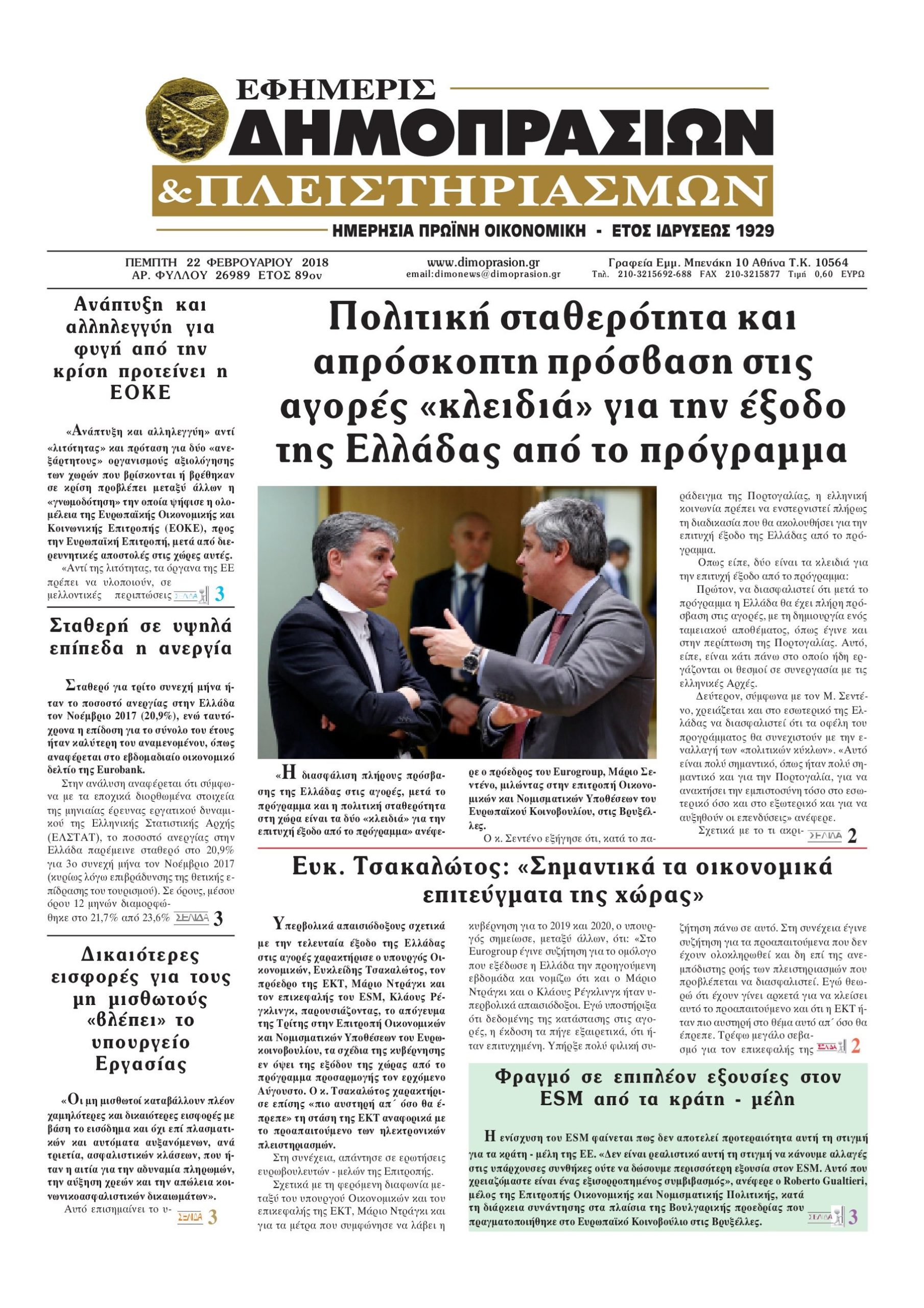 Οι οικονομικές εφημερίδες 22/2/2018 Enikos Newsroom 07:19, Πέμπτη 22 Φεβρουαρίου 2018 Media Διαβάστε τα σημερινά πρωτοσέλιδα των οικονομικών εφημερίδων: ΟΙΚΟΝΟΜΙΚΕΣ ΕΦΗΜΕΡΙΔΕΣ ΠΡΩΤΟΣΕΛΙΔΑ Μοιράσου το: σχολίασε κι εσύ (0 σχόλια) Ακολουθήστε το enikos.gr στο Google News και μάθετε πρώτοι όλες τις ειδήσεις Δείτε όλες τις τελευταίες ειδήσεις από την Ελλάδα και τον Κόσμο στο enikos.gr Ειδήσεις Ροή Ειδήσεων 3 ώρες πριν Αυξάνουν την πίεση προς την κυβέρνηση οι αγρότες: Κλείνουν παρακαμπτήριους και ανοίγουν διόδια – Τι θα γίνει τις γιορτές 2 ώρες πριν ΟΠΕΚΕΠΕ: Προφυλακιστέος ο φερόμενος αρχηγός και ο λογιστής της εγκληματικής οργάνωσης 3 ώρες πριν Φοινικούντα: Το Σάββατο απολογείται ο 30χρονος γιος γνωστού επιχειρηματία της Πλάκας που παραδόθηκε – Όσα είπε στους αστυνομικούς και ο ρόλος του στο έγκλημα 3 ώρες πριν Μπορεί ο Μαδούρο να αντέξει τον αποκλεισμό του Τραμπ; Τι θα χρειαστεί η Ουάσινγκτον για να τον ανατρέψει 4 ώρες πριν Πρίγκιπας Ουίλιαμ – Κέιτ: Η νέα οικογενειακή φωτογραφία για τις Χριστουγεννιάτικες κάρτες του 2025 4 ώρες πριν Ύπνος: Η απλή βραδινή ρουτίνα για να προστατεύσετε τα μαλλιά σας από το κρύο κατά τη διάρκεια του χειμώνα 5 ώρες πριν Manifesting: Πώς να συναντήσετε τον σύντροφο της ζωής σας, ανάλογα με τον μήνα γέννησής σας 2 ημέρες πριν 20 χρόνια τα Χριστούγεννα ξεκινούν στα Public με μεγάλη ποικιλία σε δώρα! 3 ώρες πριν Αρχαιολόγοι ανακάλυψαν ρωμαϊκά τεχνουργήματα από μια πόλη που δεν υπήρξε ποτέ – Τα τρία εντυπωσιακά κτίρια και ο αμφορέας με τις… σαρδέλες 6 λεπτά πριν Μιχάλης Χρυσοχοΐδης από την Κωνσταντινούπολη: Κοινές επιχειρήσεις Ελλάδας – Τουρκίας ενάντια στο οργανωμένο έγκλημα 28 λεπτά πριν Μάρκο Νίκολιτς: «Είμαι περήφανος για τους παίκτες μου, όποιος αντίπαλος και να έρθει θα προετοιμαστούμε» 37 λεπτά πριν ΟΗΕ: Την εκλογή του νέου ύπατου αρμοστή για τους Πρόσφυγες Μπαρχάμ Άχμεντ Σαλίχ χαιρέτησε ο Αντόνιο Γκουτέρες 42 λεπτά πριν Σύνοδος Κορυφής στις Βρυξέλλες: Ακόμη πιο κοντά σε διέξοδο για τη χρηματοδότηση της Ουκρανίας 50 λεπτά πριν ΟΗΕ: Iστορική επίσκεψη του Συμβουλίου Ασφαλείας στη Δαμασκό – Mήνυμα Ελλάδας για συμπερίληψη και λογοδοσία ENIKOS NETWORK Σε περίοδο αυξημένης δραστηριότητας η γρίπη στην Ελλάδα-Μέτρα προστασίας από τον ΕΟΔΥ Σκέφτεστε συνέχεια συζητήσεις που έχετε κάνει; Τι σημαίνει αυτό, σύμφωνα με ειδικό Στεγαστικό: Τι λέει η ΠΟΜΙΔΑ για τα νέα μέτρα που ανακοίνωσε ο Κυριάκος Μητσοτάκης Λαγκάρντ: Αισιόδοξη για την ανάπτυξη της Ευρωζώνης, αβέβαιη για τον πληθωρισμό Χαρτογραφώντας το «σημείο χωρίς επιστροφή»: Για πρώτη φορά αποκαλύπτεται με λεπτομέρεια το ακανθώδες όριο της ατμόσφαιρας τ... Η Google καταργεί τη λειτουργία «dark web report» – Πώς θα μπορούν οι χρήστες να διαγράφουν τα δεδομένα τους περισσότερα 17:45 , Πέμπτη 18 Δεκεμβρίου 2025 ROUK ZOUK: Εορταστικό επεισόδιο με καλεσμένους τους πρωταγωνιστές του «Γιατί ρε πατέρα» Το Σάββατο 20 Δεκεμβρίου στις 21:00, η Ζέτα Μακρυπούλια υποδέχεται εκλεκτούς ηθοποιούς που όλο... 17:20 , Πέμπτη 18 Δεκεμβρίου 2025 Άγιος έρωτας: Η Χριστίνα εξομολογείται στον πατέρα Νικόλαο, απόψε στις 21:00 στον Alpha Η Νότα αποφασίζει να εκδικηθεί τον Πέτρο και τον Στέφανο, για χάρη του Λούη, όμως τα πράγματα ... 16:50 , Πέμπτη 18 Δεκεμβρίου 2025 Να μ’ αγαπάς: Ζωή και Φωτεινή συμφιλιώνονται ως μάνα με κόρη, απόψε στις 20:00 Η ταυτότητα του Άγγελου αποκαλύπτεται στο νέο επεισόδιο της σειράς “Να μ’ αγαπάς... 15:52 , Πέμπτη 18 Δεκεμβρίου 2025 Το Σπίτι Δίπλα Στο Ποτάμι: Το καθη