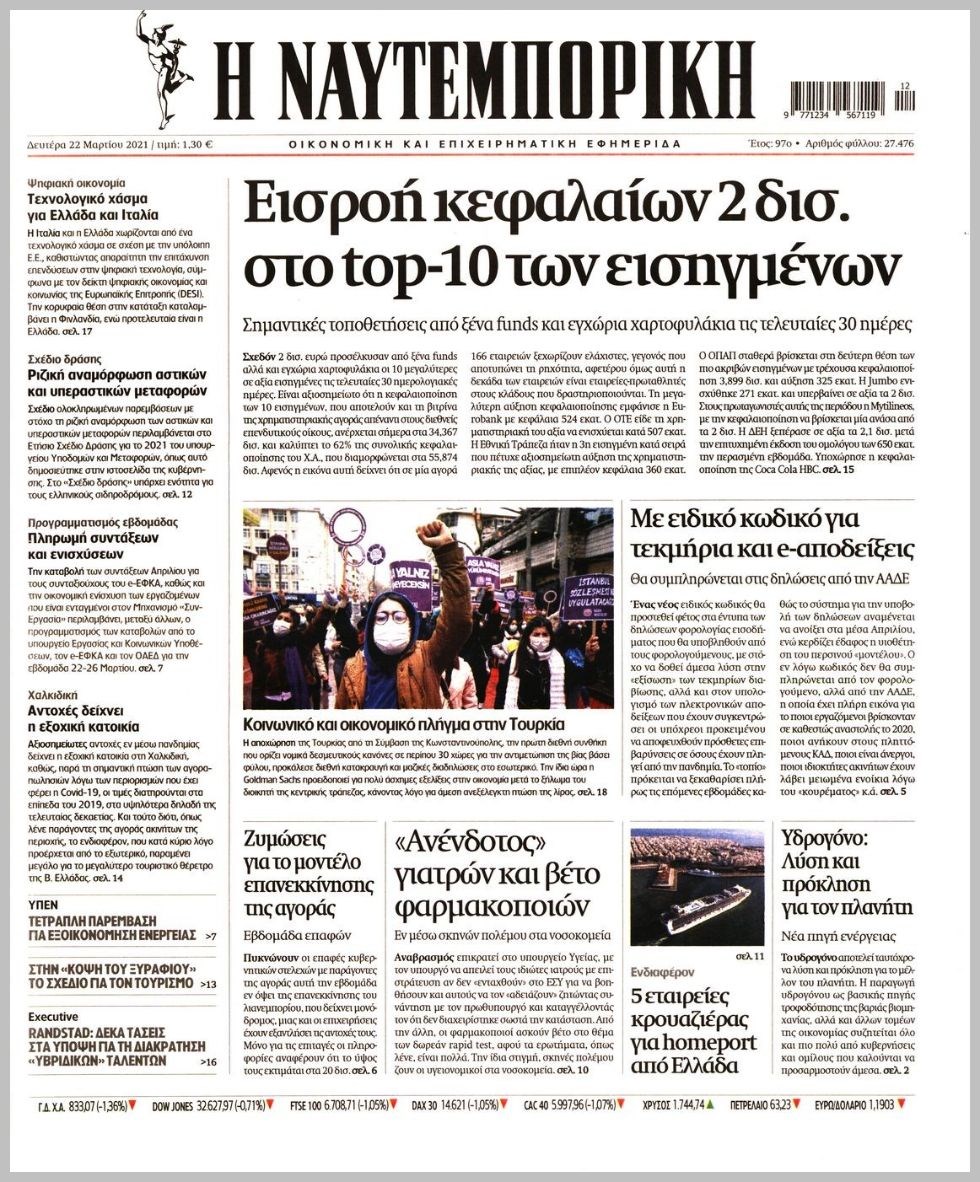 Οι οικονομικές εφημερίδες 22/3/2021 Διονύσης Νίκκας 06:51, Δευτέρα 22 Μαρτίου 2021 Media Διαβάστε τα πρωτοσέλιδα των οικονομικών εφημερίδων… ΟΙΚΟΝΟΜΙΚΕΣ ΕΦΗΜΕΡΙΔΕΣ Μοιράσου το: σχολίασε κι εσύ (0 σχόλια) Ακολουθήστε το enikos.gr στο Google News και μάθετε πρώτοι όλες τις ειδήσεις Δείτε όλες τις τελευταίες ειδήσεις από την Ελλάδα και τον Κόσμο στο enikos.gr Ειδήσεις Ροή Ειδήσεων 45 λεπτά πριν Ευρωπαϊκή Ένωση: Χωρίς συμφωνία, για την μακροπρόθεσμη χρηματοδότηση της Ουκρανίας, ολοκληρώθηκε η Σύνοδος Κορυφής στις Βρυξέλλες 4 ώρες πριν ΟΠΕΚΕΠΕ: Προφυλακιστέος ο φερόμενος αρχηγός και ο λογιστής της εγκληματικής οργάνωσης 5 ώρες πριν Αυξάνουν την πίεση προς την κυβέρνηση οι αγρότες: Κλείνουν παρακαμπτήριους και ανοίγουν διόδια – Τι θα γίνει τις γιορτές 5 ώρες πριν Φοινικούντα: Το Σάββατο απολογείται ο 30χρονος γιος γνωστού επιχειρηματία της Πλάκας που παραδόθηκε – Όσα είπε στους αστυνομικούς και ο ρόλος του στο έγκλημα 4 ώρες πριν ΑΕΚ – Κραϊόβα 3-2: Επική ανατροπή και πρόκριση στους «16» του Conference League η Ένωση 5 ώρες πριν Αρχαιολόγοι ανακάλυψαν ρωμαϊκά τεχνουργήματα από μια πόλη που δεν υπήρξε ποτέ – Τα τρία εντυπωσιακά κτίρια και ο αμφορέας με τις… σαρδέλες 6 ώρες πριν Ύπνος: Η απλή βραδινή ρουτίνα για να προστατεύσετε τα μαλλιά σας από το κρύο κατά τη διάρκεια του χειμώνα 7 ώρες πριν Manifesting: Πώς να συναντήσετε τον σύντροφο της ζωής σας, ανάλογα με τον μήνα γέννησής σας 2 ημέρες πριν 20 χρόνια τα Χριστούγεννα ξεκινούν στα Public με μεγάλη ποικιλία σε δώρα! 1 λεπτό πριν Στη Φλόριντα σήμερα οι διαβουλεύσεις σχετικά με τα επόμενα στάδια για τη Λωρίδα της Γάζας 5 λεπτά πριν Σίσσυ Τουμάση: «Είμαι ασθενοφοβική πάρα πολύ και με πιάνει μια παράνοια μ’ αυτό» 30 λεπτά πριν Ντόναλντ Τραμπ: Δεν χρειάζομαι την έγκριση του Κογκρέσου για να διατάξω στρατιωτικά πλήγματα στη Βενεζουέλα 45 λεπτά πριν Ευρωπαϊκή Ένωση: Χωρίς συμφωνία, για την μακροπρόθεσμη χρηματοδότηση της Ουκρανίας, ολοκληρώθηκε η Σύνοδος Κορυφής στις Βρυξέλλες 1 ώρα πριν GNTM: «Κλείδωσαν» οι τέσσερις φιναλίστ – Μεγάλη ανατροπή στις τελευταίες αποχωρήσεις ENIKOS NETWORK Σε περίοδο αυξημένης δραστηριότητας η γρίπη στην Ελλάδα-Μέτρα προστασίας από τον ΕΟΔΥ Σκέφτεστε συνέχεια συζητήσεις που έχετε κάνει; Τι σημαίνει αυτό, σύμφωνα με ειδικό Στεγαστικό: Τι λέει η ΠΟΜΙΔΑ για τα νέα μέτρα που ανακοίνωσε ο Κυριάκος Μητσοτάκης Λαγκάρντ: Αισιόδοξη για την ανάπτυξη της Ευρωζώνης, αβέβαιη για τον πληθωρισμό Χαρτογραφώντας το «σημείο χωρίς επιστροφή»: Για πρώτη φορά αποκαλύπτεται με λεπτομέρεια το ακανθώδες όριο της ατμόσφαιρας τ... Η Google καταργεί τη λειτουργία «dark web report» – Πώς θα μπορούν οι χρήστες να διαγράφουν τα δεδομένα τους περισσότερα 02:50 , Παρασκευή 19 Δεκεμβρίου 2025 GNTM: «Κλείδωσαν» οι τέσσερις φιναλίστ – Μεγάλη ανατροπή στις τελευταίες αποχωρήσεις Για προτελευταία φορά εμφανίστηκαν στο πλατό του GNTM οι φιναλίστ του φετινού κύκλου, το βράδυ... 17:45 , Πέμπτη 18 Δεκεμβρίου 2025 ROUK ZOUK: Εορταστικό επεισόδιο με καλεσμένους τους πρωταγωνιστές του «Γιατί ρε πατέρα» Το Σάββατο 20 Δεκεμβρίου στις 21:00, η Ζέτα Μακρυπούλια υποδέχεται εκλεκτούς ηθοποιούς που όλο... 17:20 , Πέμπτη 18 Δεκεμβρίου 2025 Άγιος έρωτας: Η Χριστίνα εξομολογείται στον πατέρα Νικόλαο, απόψε στις 21:00 στον Alpha Η Νότα αποφασίζει να εκδικηθεί τον Πέτρο και τον Στέφανο, για χάρη του Λούη, όμως τα πράγματα ... 16:50 , Πέμπτη 18 Δεκεμβρίου 2025 Να μ’ αγαπάς: Ζωή και Φωτεινή συμφιλιώνονται ως μάνα με κόρη, α