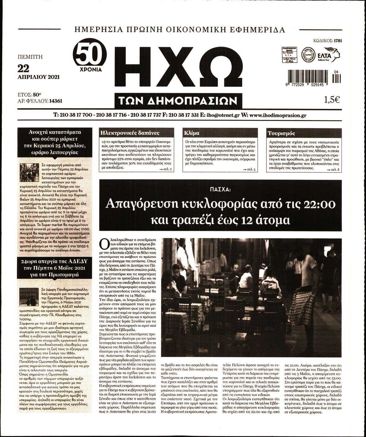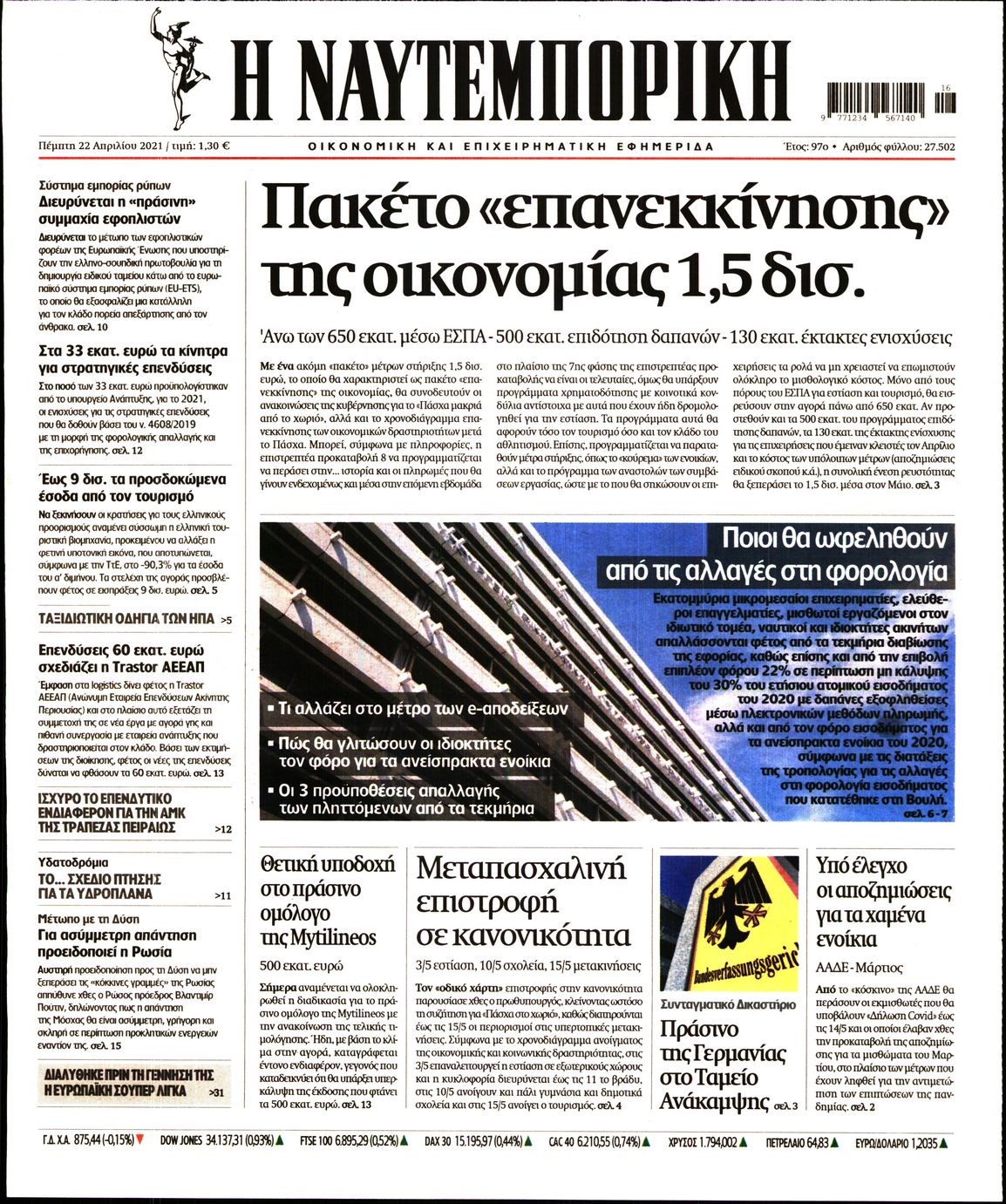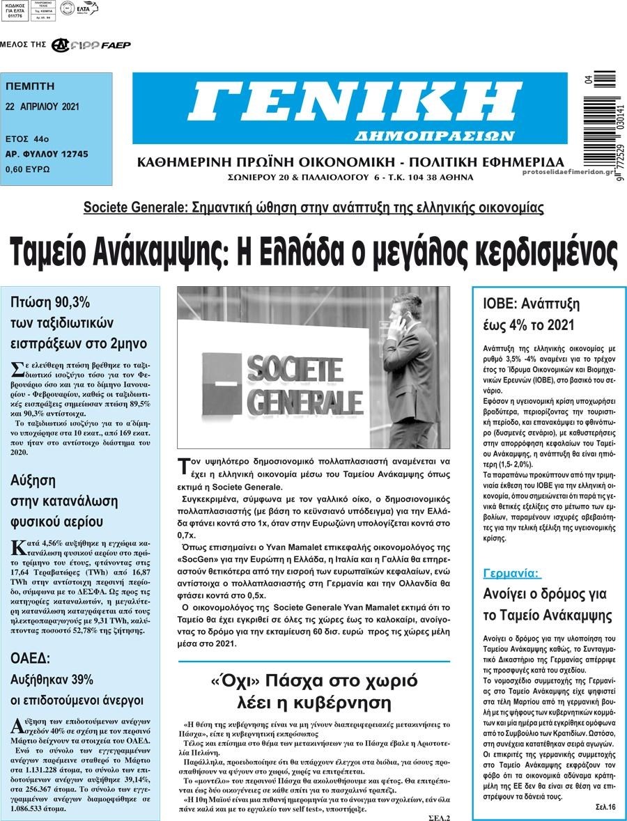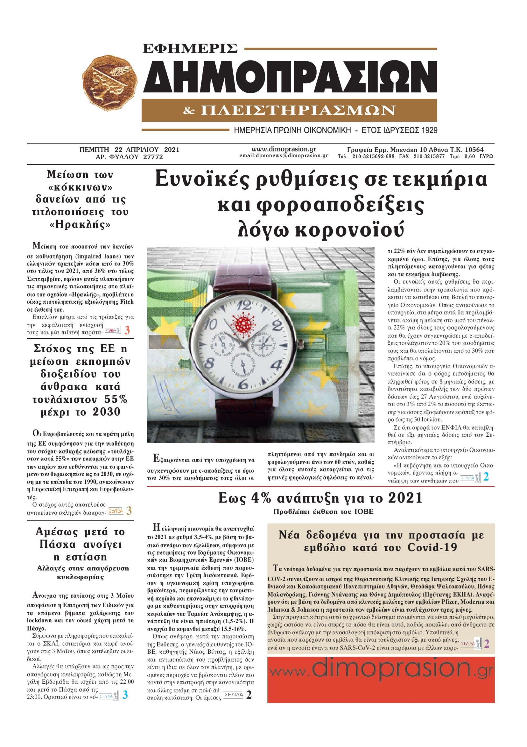 Οι οικονομικές εφημερίδες 22/4/2021 Διονύσης Νίκκας 06:39, Πέμπτη 22 Απριλίου 2021 Media Διαβάστε τα πρωτοσέλιδα των οικονομικών εφημερίδων… ΟΙΚΟΝΟΜΙΚΕΣ ΕΦΗΜΕΡΙΔΕΣ Μοιράσου το: σχολίασε κι εσύ (0 σχόλια) Ακολουθήστε το enikos.gr στο Google News και μάθετε πρώτοι όλες τις ειδήσεις Δείτε όλες τις τελευταίες ειδήσεις από την Ελλάδα και τον Κόσμο στο enikos.gr Ειδήσεις Ροή Ειδήσεων 11 λεπτά πριν Ουκρανία: Xτύπησε με drones ρωσικό τάνκερ στη Μεσόγειο 2 ώρες πριν Πούτιν: Η Ουκρανία δεν είναι έτοιμη για ειρηνευτικές συνομιλίες – ο ρωσικός στρατός προελαύνει σε όλα τα μέτωπα 3 ώρες πριν Νίκος Παππάς: Ζητώ συγγνώμη για αυτό το επεισόδιο – Δεν τον γρονθοκόπησα 53 λεπτά πριν Θεσσαλονίκη: Άφησαν τα ανήλικα παιδιά τους να κοιμούνται στην αυλή – Κάτοικος ειδοποίησε το «Χαμόγελο του Παιδιού» 14 λεπτά πριν Βουλή: Υπερψηφίστηκε το νομοσχέδιο για την ένταξη του ΟΠΕΚΕΠΕ στην ΑΑΔΕ 4 ώρες πριν Αλλαγή σελίδας για 3 ζώδια – «Μία δύσκολη περίοδος φτάνει στο τέλος της» 2 ημέρες πριν 20 χρόνια τα Χριστούγεννα ξεκινούν στα Public με μεγάλη ποικιλία σε δώρα! 3 ώρες πριν Γεμάτος νεροχύτης; 5 σοβαρές ευθύνες που «φοβίζουν» όσους αφήνουν άπλυτα πιάτα 2 ώρες πριν Ειδικός μοιράζεται 6 κόλπα για να διατηρείστε σε φόρμα με πάνω από 40 ώρες εργασίας την εβδομάδα: «Προπονηθείτε πριν από τη δουλειά, όχι μετά» 2 λεπτά πριν Οι αγρότες έκλεισαν και τα δύο ρεύματα κυκλοφορίας στα διόδια των Μαλγάρων 7 λεπτά πριν Ανδρουλάκης για ΕΛΤΑ: Το σκάνδαλο αυτό είναι η ωμή εκδοχή του κράτους-λάφυρου 11 λεπτά πριν Ουκρανία: Xτύπησε με drones ρωσικό τάνκερ στη Μεσόγειο 12 λεπτά πριν Βουλή: Εγκρίθηκε ο διορισμός της νέας διοικήτριας της Ανεξάρτητης Αρχής Ελέγχου της Αγοράς και Προστασίας του Καταναλωτή 14 λεπτά πριν Βουλή: Υπερψηφίστηκε το νομοσχέδιο για την ένταξη του ΟΠΕΚΕΠΕ στην ΑΑΔΕ ENIKOS NETWORK Τάξη στις ιατρικές διαφημίσεις για την προστασία των πολιτών βάζει ο ΙΣΑ Μακροζωία: Τι παίζει πιο σημαντικό ρόλο ακόμα και από την διατροφή και την άσκηση, σύμφωνα με μελέτη e-ΕΦΚΑ: Νέα παράταση της προθεσμίας υποβολής για τις ΑΠΔ – Ποιες επιχειρήσεις αφορά Αγορά πολυτελών κατοικιών: Αυτές είναι οι προτεραιότητες των αγοραστών – Σε ποιες περιοχές στρέφονται και τι επιλέγουν Χαρτογραφώντας το «σημείο χωρίς επιστροφή»: Για πρώτη φορά αποκαλύπτεται με λεπτομέρεια το ακανθώδες όριο της ατμόσφαιρας τ... Η Google καταργεί τη λειτουργία «dark web report» – Πώς θα μπορούν οι χρήστες να διαγράφουν τα δεδομένα τους περισσότερα 08:00 , Παρασκευή 19 Δεκεμβρίου 2025 Την Κυριακή με τη Realnews: Δωροεπιταγή 10€ Δωροεπιταγή αξίας 10€ για αγορές άνω των 60€ από τα πολυκαταστήματα FactoryOutlet H προσφορά ι... 05:48 , Παρασκευή 19 Δεκεμβρίου 2025 Οι οικονομικές εφημερίδες 19/12/2025 Διαβάστε τα πρωτοσέλιδα από τις οικονομικές εφημερίδες, σήμερα 19/12/2025. 05:43 , Παρασκευή 19 Δεκεμβρίου 2025 Οι αθλητικές εφημερίδες 19/12/2025 Διαβάστε τα πρωτοσέλιδα από τις αθλητικές εφημερίδες, σήμερα 19/12/2025. 05:38 , Παρασκευή 19 Δεκεμβρίου 2025 Οι πολιτικές εφημερίδες 19/12/2025 Διαβάστε τα πρωτοσέλιδα από τις πολιτικές εφημερίδες, σήμερα 19/12/2025. ΤΕΛΕΥΤΑΙΕΣ ΕΙΔΗΣΕΙΣ 7 λεπτά πριν Ανδρουλάκης για ΕΛΤΑ: Το σκάνδαλο αυτό είναι η ωμή... 11 λεπτά πριν Ουκρανία: Xτύπησε με drones ρωσικό τάνκερ στη Μεσόγειο 12 λεπτά πριν Βουλή: Εγκρίθηκε ο διορισμός της νέας διοικήτριας της... 14 λεπτά πριν Βουλή: Υπερψηφίστηκε το νομοσχέδιο για την ένταξη του... 18 λεπτά πριν Θεσσαλονίκη: Οδηγός μηχανής εμβόλισε ηλεκτρικό... 23 λεπτά πριν Κατερίνα Καινούργιου: Τα «πονάκια