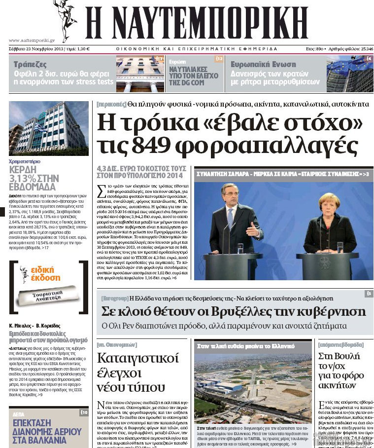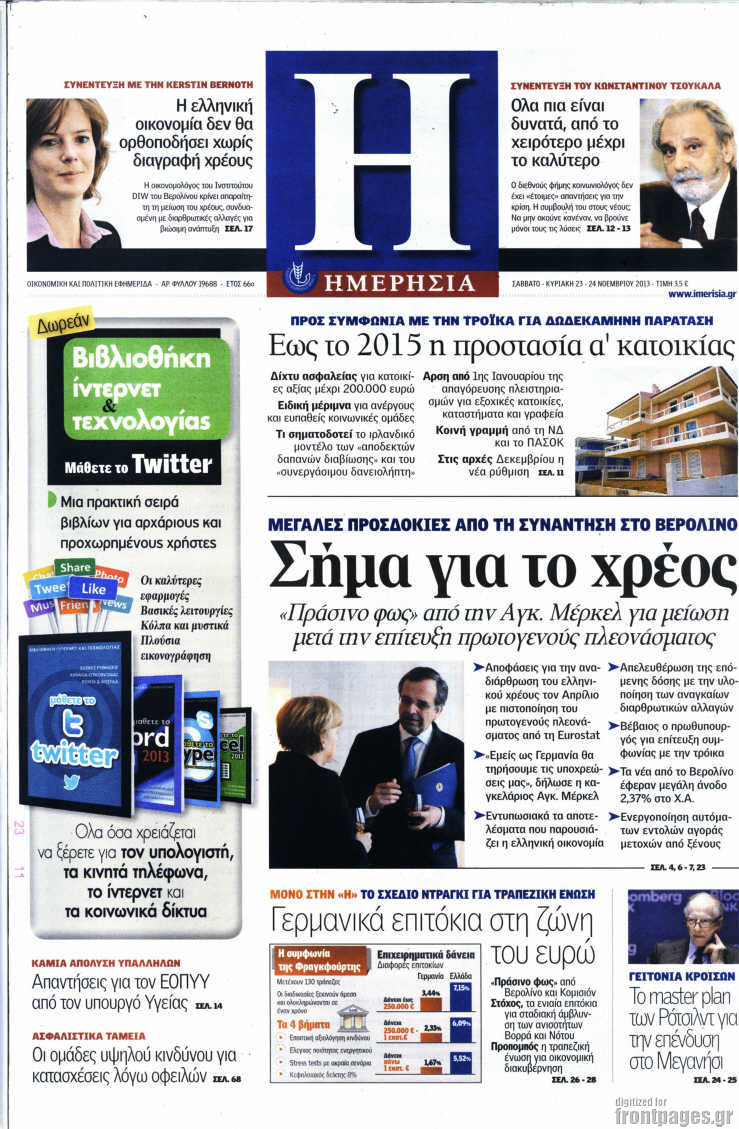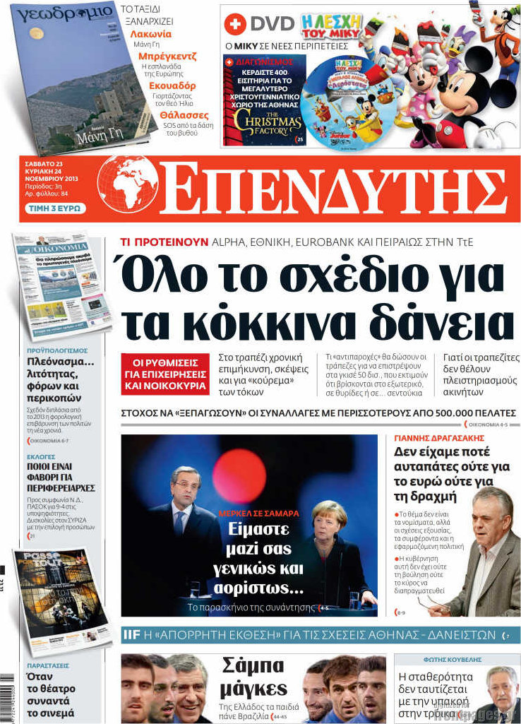 Οι oικονομικές εφημερίδες Enikos Newsroom 09:27, Σάββατο 23 Νοεμβρίου 2013 Media Οι oικονομικές εφημερίδες Διαβάστε τα πρωτοσέλιδα των οικονομικών εφημερίδων: ΕΦΗΜΕΡΙΔΕΣ ΟΙΚΟΝΟΜΙΚΕΣ ΕΦΗΜΕΡΙΔΕΣ ΠΡΩΤΟΣΕΛΙΔΑ Μοιράσου το: σχολίασε κι εσύ (0 σχόλια) Ακολουθήστε το enikos.gr στο Google News και μάθετε πρώτοι όλες τις ειδήσεις Δείτε όλες τις τελευταίες ειδήσεις από την Ελλάδα και τον Κόσμο στο enikos.gr Ειδήσεις Ροή Ειδήσεων 2 ώρες πριν Εκτός ευρωομάδας ΣΥΡΙΖΑ ο Νίκος Παππάς μετά την επίθεση στον δημοσιογράφο Νίκο Γιαννόπουλο – Η μήνυση και οι νέες δηλώσεις 2 ώρες πριν «Αγριεύουν» οι αγρότες: «Δεν συντρέχει λόγος συνάντησης με τον πρωθυπουργό» – Ώρα αποφάσεων στη σύσκεψη της Πέμπτης 2 ώρες πριν Κυψέλη: Χωρίς την οικογένειά της δίπλα της απολογήθηκε η 16χρονη – «Της είχε επιτεθεί κάποιος για να την βιάσει, φοβήθηκε και κυκλοφορούσε με μαχαίρι» 2 ώρες πριν Politico: Το πρόβλημα της Ευρώπης δεν είναι το Βέλγιο αλλά ο Ντόναλντ Τραμπ 4 ώρες πριν Αλεξανδρούπολη: Πολυοργανική ανεπάρκεια λόγω υποσιτισμού η αιτία θανάτου του 3χρονου αγοριού 2 ώρες πριν Μυστήριο με τεράστιες κυκλικές πέτρες 200 κιλών – Ανακαλύφθηκαν τυχαία κατά τη διάρκεια οδικών έργων και κανείς δεν ξέρει από πού προέρχονται 3 ώρες πριν Ύπνος: Ειδικός εξηγεί τον πραγματικό λόγο που ξυπνάτε στις 4 τα ξημερώματα – Ο ρόλος των ορμονών και του κιρκάδιου ρυθμού 4 ώρες πριν Αριθμολογία: Οι άνθρωποι που έχουν γεννηθεί αυτές τις 4 ημερομηνίες, είναι τρυφεροί και αγαπούν ανιδιοτελώς 16 ώρες πριν 20 χρόνια τα Χριστούγεννα ξεκινούν στα Public με μεγάλη ποικιλία σε δώρα! 7 λεπτά πριν Σάρα Εσκενάζυ: Η πρώτη ανάρτηση για το θάνατο του πατέρα της, Αλμπέρτο Εσκενάζυ και η επιθυμία της οικογένειας 23 λεπτά πριν Παρί Σεν Ζερμέν – Φλαμένγκο 2-1 πεν. (1-1 κ.δ.): Οι Γάλλοι σήκωσαν και το Διηπειρωτικό με ήρωα τον Σαφόνοφ που έπιασε 4 πέναλτι 38 λεπτά πριν Βέλγους πολιτικούς και επικεφαλής χρηματοπιστωτικών ιδρυμάτων στοχοποιεί η Μόσχα για τα κατασχεθέντα περιουσιακά στοιχεία 53 λεπτά πριν ΗΠΑ: Αναζητείται δεύτερος ύποπτος για την επίθεση στο πανεπιστήμιο Μπράουν 1 ώρα πριν Λεωφόρος Αλεξάνδρας: Δεν εντοπίστηκε βόμβα έξω από το κολλέγιο – Προσήχθη άνδρας για το προειδοποιητικό σημείωμα ENIKOS NETWORK Αϋπνία: Το κόλπο που θα σας βοηθήσει να κοιμηθείτε απόψε – Είναι απλό και έχει αποτέλεσμα 2,6 εκατομμύρια πολίτες έχουν ήδη εμβολιαστεί κατά της γρίπης ΕΛΣΤΑΤ: Τι δείχνουν τα νέα στοιχεία για τις ηλεκτρονικές παραγγελίες των επιχειρήσεων ΚΕΠΕ: Οι 3 διακριτές συμβολές των ΜμΕ και της μεταποίησης στην ελληνική οικονομία Χαρτογραφώντας το «σημείο χωρίς επιστροφή»: Για πρώτη φορά αποκαλύπτεται με λεπτομέρεια το ακανθώδες όριο της ατμόσφαιρας τ... Η Google καταργεί τη λειτουργία «dark web report» – Πώς θα μπορούν οι χρήστες να διαγράφουν τα δεδομένα τους περισσότερα 22:24 , Τετάρτη 17 Δεκεμβρίου 2025 Το Σπίτι Δίπλα Στο Ποτάμι: Σε κίνδυνο η υγεία του Απόστολου – Τι θα δούμε απόψε “Το Σπίτι Δίπλα στο Ποτάμι” ξετυλίγει το νήμα της ζωής των πέντε αδελφών με καταισ... 21:14 , Τετάρτη 17 Δεκεμβρίου 2025 Παιχνίδια Εκδίκησης: Θα καταφέρει ο Χρήστος να κλονίσει την εμπιστοσύνη της Μάγιας απέναντι στον Άγη; Τα «Παιχνίδια Εκδίκησης» έρχονται απόψε στις 22:30, στον Αντ1, με το τελευταίο επεισόδιο της χ... 20:57 , Τετάρτη 17 Δεκεμβρίου 2025 Άγιος Έρωτας: Η Χλόη καταθέτει εναντίον του πατέρα της και ο Χάρης αποκαλύπτει στον Κλεάνθη ότι δεν είναι ο βιολογικός του πατέρας. Γεμάτο αποκαλύψεις είναι το νέο επεισόδ