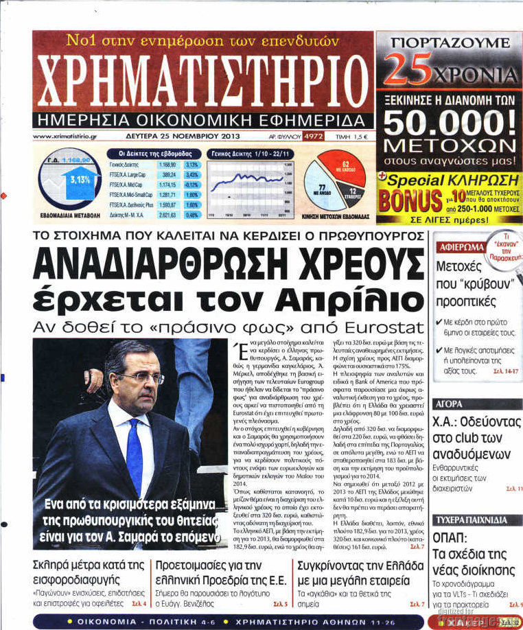 Οι oικονομικές εφημερίδες Enikos Newsroom 08:56, Δευτέρα 25 Νοεμβρίου 2013 Media Οι oικονομικές εφημερίδες Διαβάστε τα πρωτοσέλιδα των οικονομικών εφημερίδων: ΕΦΗΜΕΡΙΔΕΣ ΟΙΚΟΝΟΜΙΚΕΣ ΕΦΗΜΕΡΙΔΕΣ ΠΡΩΤΟΣΕΛΙΔΑ Μοιράσου το: σχολίασε κι εσύ (0 σχόλια) Ακολουθήστε το enikos.gr στο Google News και μάθετε πρώτοι όλες τις ειδήσεις Δείτε όλες τις τελευταίες ειδήσεις από την Ελλάδα και τον Κόσμο στο enikos.gr Ειδήσεις Ροή Ειδήσεων 1 ώρα πριν Ευρωπαϊκή Ένωση: Συμφωνία για δάνειο 90 δισ. ευρώ στην Ουκρανία τη διετία 2026-2027 6 ώρες πριν ΟΠΕΚΕΠΕ: Προφυλακιστέος ο φερόμενος αρχηγός και ο λογιστής της εγκληματικής οργάνωσης 7 ώρες πριν Αυξάνουν την πίεση προς την κυβέρνηση οι αγρότες: Κλείνουν παρακαμπτήριους και ανοίγουν διόδια – Τι θα γίνει τις γιορτές 7 ώρες πριν Φοινικούντα: Το Σάββατο απολογείται ο 30χρονος γιος γνωστού επιχειρηματία της Πλάκας που παραδόθηκε – Όσα είπε στους αστυνομικούς και ο ρόλος του στο έγκλημα 5 ώρες πριν ΑΕΚ – Κραϊόβα 3-2: Επική ανατροπή και πρόκριση στους «16» του Conference League η Ένωση 6 ώρες πριν Αρχαιολόγοι ανακάλυψαν ρωμαϊκά τεχνουργήματα από μια πόλη που δεν υπήρξε ποτέ – Τα τρία εντυπωσιακά κτίρια και ο αμφορέας με τις… σαρδέλες 7 ώρες πριν Ύπνος: Η απλή βραδινή ρουτίνα για να προστατεύσετε τα μαλλιά σας από το κρύο κατά τη διάρκεια του χειμώνα 8 ώρες πριν Manifesting: Πώς να συναντήσετε τον σύντροφο της ζωής σας, ανάλογα με τον μήνα γέννησής σας 2 ημέρες πριν 20 χρόνια τα Χριστούγεννα ξεκινούν στα Public με μεγάλη ποικιλία σε δώρα! 3 λεπτά πριν Εφημερεύοντα φαρμακεία σε Αθήνα και Θεσσαλονίκη (19/12) 9 λεπτά πριν Η TikTok στις ΗΠΑ πωλείται σε Oracle, Silver Lake και MGX – Οι λεπτομέρειες του «deal» 18 λεπτά πριν Αλεξάντερ Λουκασένκο: Η Λευκορωσία βρίσκεται κοντά στην αποκατάσταση των σχέσεών της με τις ΗΠΑ 33 λεπτά πριν Αυστραλία: Κήρυξε την Κυριακή (21/12) ημέρα εθνικού πένθους για τη φονική επίθεση στην παραλία Μπόνταϊ 43 λεπτά πριν Ρόδος: Δάσκαλος καράτε καταδικάστηκε για ασέλγεια σε ανήλικες αθλήτριες – Μαρτυρίες για αγγίγματα σε ευαίσθητα σημεία ENIKOS NETWORK Σε περίοδο αυξημένης δραστηριότητας η γρίπη στην Ελλάδα-Μέτρα προστασίας από τον ΕΟΔΥ Σκέφτεστε συνέχεια συζητήσεις που έχετε κάνει; Τι σημαίνει αυτό, σύμφωνα με ειδικό Στεγαστικό: Τι λέει η ΠΟΜΙΔΑ για τα νέα μέτρα που ανακοίνωσε ο Κυριάκος Μητσοτάκης Λαγκάρντ: Αισιόδοξη για την ανάπτυξη της Ευρωζώνης, αβέβαιη για τον πληθωρισμό Χαρτογραφώντας το «σημείο χωρίς επιστροφή»: Για πρώτη φορά αποκαλύπτεται με λεπτομέρεια το ακανθώδες όριο της ατμόσφαιρας τ... Η Google καταργεί τη λειτουργία «dark web report» – Πώς θα μπορούν οι χρήστες να διαγράφουν τα δεδομένα τους περισσότερα 02:50 , Παρασκευή 19 Δεκεμβρίου 2025 GNTM: «Κλείδωσαν» οι τέσσερις φιναλίστ – Μεγάλη ανατροπή στις τελευταίες αποχωρήσεις Για προτελευταία φορά εμφανίστηκαν στο πλατό του GNTM οι φιναλίστ του φετινού κύκλου, το βράδυ... 17:45 , Πέμπτη 18 Δεκεμβρίου 2025 ROUK ZOUK: Εορταστικό επεισόδιο με καλεσμένους τους πρωταγωνιστές του «Γιατί ρε πατέρα» Το Σάββατο 20 Δεκεμβρίου στις 21:00, η Ζέτα Μακρυπούλια υποδέχεται εκλεκτούς ηθοποιούς που όλο... 17:20 , Πέμπτη 18 Δεκεμβρίου 2025 Άγιος έρωτας: Η Χριστίνα εξομολογείται στον πατέρα Νικόλαο, απόψε στις 21:00 στον Alpha Η Νότα αποφασίζει να εκδικηθεί τον Πέτρο και τον Στέφανο, για χάρη του Λούη, όμως τα πράγματα ... 16:50 , Πέμπτη 18 Δεκεμβρίου 2025 Να μ’ αγαπάς: Ζωή και Φωτεινή συμφιλιώνονται ως μάνα με κόρη, απόψε στις 20:00 Η ταυτότητα του Άγγελου αποκαλύπτεται στο νέο επεισόδιο της