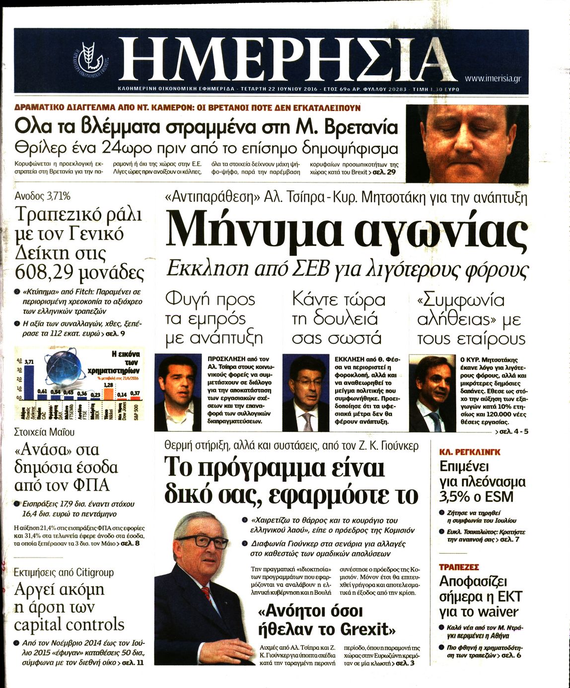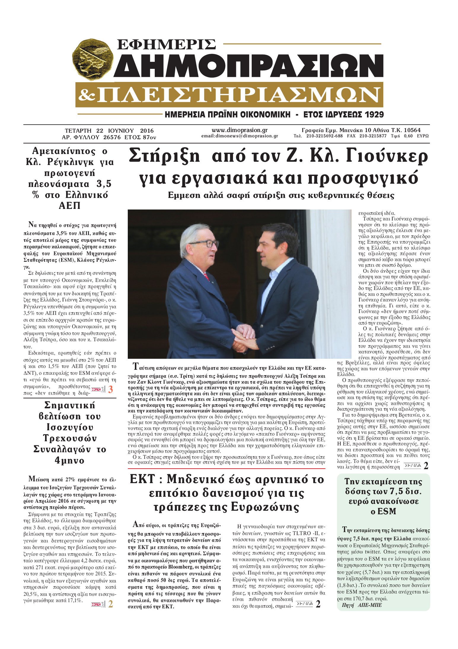 Oι οικονομικές εφημερίδες 22/6/2016 Enikos Newsroom 04:50, Τετάρτη 22 Ιουνίου 2016 Media Διαβάστε τα σημερινά πρωτοσέλιδα των οικονομικών εφημερίδων: ΟΙΚΟΝΟΜΙΚΕΣ ΕΦΗΜΕΡΙΔΕΣ ΠΡΩΤΟΣΕΛΙΔΑ Μοιράσου το: σχολίασε κι εσύ (0 σχόλια) Ακολουθήστε το enikos.gr στο Google News και μάθετε πρώτοι όλες τις ειδήσεις Δείτε όλες τις τελευταίες ειδήσεις από την Ελλάδα και τον Κόσμο στο enikos.gr Ειδήσεις Ροή Ειδήσεων 2 ώρες πριν Αυξάνουν την πίεση προς την κυβέρνηση οι αγρότες: Κλείνουν παρακαμπτήριους και ανοίγουν διόδια – Τι θα γίνει τις γιορτές 33 λεπτά πριν ΟΠΕΚΕΠΕ: Προφυλακιστέος ο φερόμενος αρχηγός και ο λογιστής της εγκληματικής οργάνωσης 2 ώρες πριν Φοινικούντα: Το Σάββατο απολογείται ο 30χρονος γιος γνωστού επιχειρηματία της Πλάκας που παραδόθηκε – Όσα είπε στους αστυνομικούς και ο ρόλος του στο έγκλημα 1 ώρα πριν Μπορεί ο Μαδούρο να αντέξει τον αποκλεισμό του Τραμπ; Τι θα χρειαστεί η Ουάσινγκτον για να τον ανατρέψει 3 ώρες πριν Πρίγκιπας Ουίλιαμ – Κέιτ: Η νέα οικογενειακή φωτογραφία για τις Χριστουγεννιάτικες κάρτες του 2025 2 ώρες πριν Ύπνος: Η απλή βραδινή ρουτίνα για να προστατεύσετε τα μαλλιά σας από το κρύο κατά τη διάρκεια του χειμώνα 3 ώρες πριν Manifesting: Πώς να συναντήσετε τον σύντροφο της ζωής σας, ανάλογα με τον μήνα γέννησής σας 2 ημέρες πριν 20 χρόνια τα Χριστούγεννα ξεκινούν στα Public με μεγάλη ποικιλία σε δώρα! 1 ώρα πριν Αρχαιολόγοι ανακάλυψαν ρωμαϊκά τεχνουργήματα από μια πόλη που δεν υπήρξε ποτέ – Τα τρία εντυπωσιακά κτίρια και ο αμφορέας με τις… σαρδέλες 13 λεπτά πριν ΑΕΚ – Κραϊόβα 3-2: Επική ανατροπή και πρόκριση στους «16» του Conference League η Ένωση 33 λεπτά πριν ΟΠΕΚΕΠΕ: Προφυλακιστέος ο φερόμενος αρχηγός και ο λογιστής της εγκληματικής οργάνωσης 43 λεπτά πριν Αθηνά Μαξίμου: Η τρυφερή ανάρτηση για τα γενέθλια του Αιμίλιου Χειλάκη – «Είναι η εκλεκτική συγγένειά μου, η επιλογή και η ευθύνη μου» 58 λεπτά πριν Παναθηναϊκός – Χάποελ Τελ Αβίβ 93-82: Με… φόρα από την Κωνσταντινούπολη 1 ώρα πριν Μπορεί ο Μαδούρο να αντέξει τον αποκλεισμό του Τραμπ; Τι θα χρειαστεί η Ουάσινγκτον για να τον ανατρέψει ENIKOS NETWORK Σε περίοδο αυξημένης δραστηριότητας η γρίπη στην Ελλάδα-Μέτρα προστασίας από τον ΕΟΔΥ Σκέφτεστε συνέχεια συζητήσεις που έχετε κάνει; Τι σημαίνει αυτό, σύμφωνα με ειδικό Στεγαστικό: Τι λέει η ΠΟΜΙΔΑ για τα νέα μέτρα που ανακοίνωσε ο Κυριάκος Μητσοτάκης Λαγκάρντ: Αισιόδοξη για την ανάπτυξη της Ευρωζώνης, αβέβαιη για τον πληθωρισμό Χαρτογραφώντας το «σημείο χωρίς επιστροφή»: Για πρώτη φορά αποκαλύπτεται με λεπτομέρεια το ακανθώδες όριο της ατμόσφαιρας τ... Η Google καταργεί τη λειτουργία «dark web report» – Πώς θα μπορούν οι χρήστες να διαγράφουν τα δεδομένα τους περισσότερα 17:45 , Πέμπτη 18 Δεκεμβρίου 2025 ROUK ZOUK: Εορταστικό επεισόδιο με καλεσμένους τους πρωταγωνιστές του «Γιατί ρε πατέρα» Το Σάββατο 20 Δεκεμβρίου στις 21:00, η Ζέτα Μακρυπούλια υποδέχεται εκλεκτούς ηθοποιούς που όλο... 17:20 , Πέμπτη 18 Δεκεμβρίου 2025 Άγιος έρωτας: Η Χριστίνα εξομολογείται στον πατέρα Νικόλαο, απόψε στις 21:00 στον Alpha Η Νότα αποφασίζει να εκδικηθεί τον Πέτρο και τον Στέφανο, για χάρη του Λούη, όμως τα πράγματα ... 16:50 , Πέμπτη 18 Δεκεμβρίου 2025 Να μ’ αγαπάς: Ζωή και Φωτεινή συμφιλιώνονται ως μάνα με κόρη, απόψε στις 20:00 Η ταυτότητα του Άγγελου αποκαλύπτεται στο νέο επεισόδιο της σειράς “Να μ’ αγαπάς... 15:52 , Πέμπτη 18 Δεκεμβρίου 2025 Το Σπίτι Δίπλα Στο Ποτάμι: Το καθηλωτικό τελευταίο επεισόδιο για το 2025 απόψε στις 22:30 Καθηλώνει το σημερ