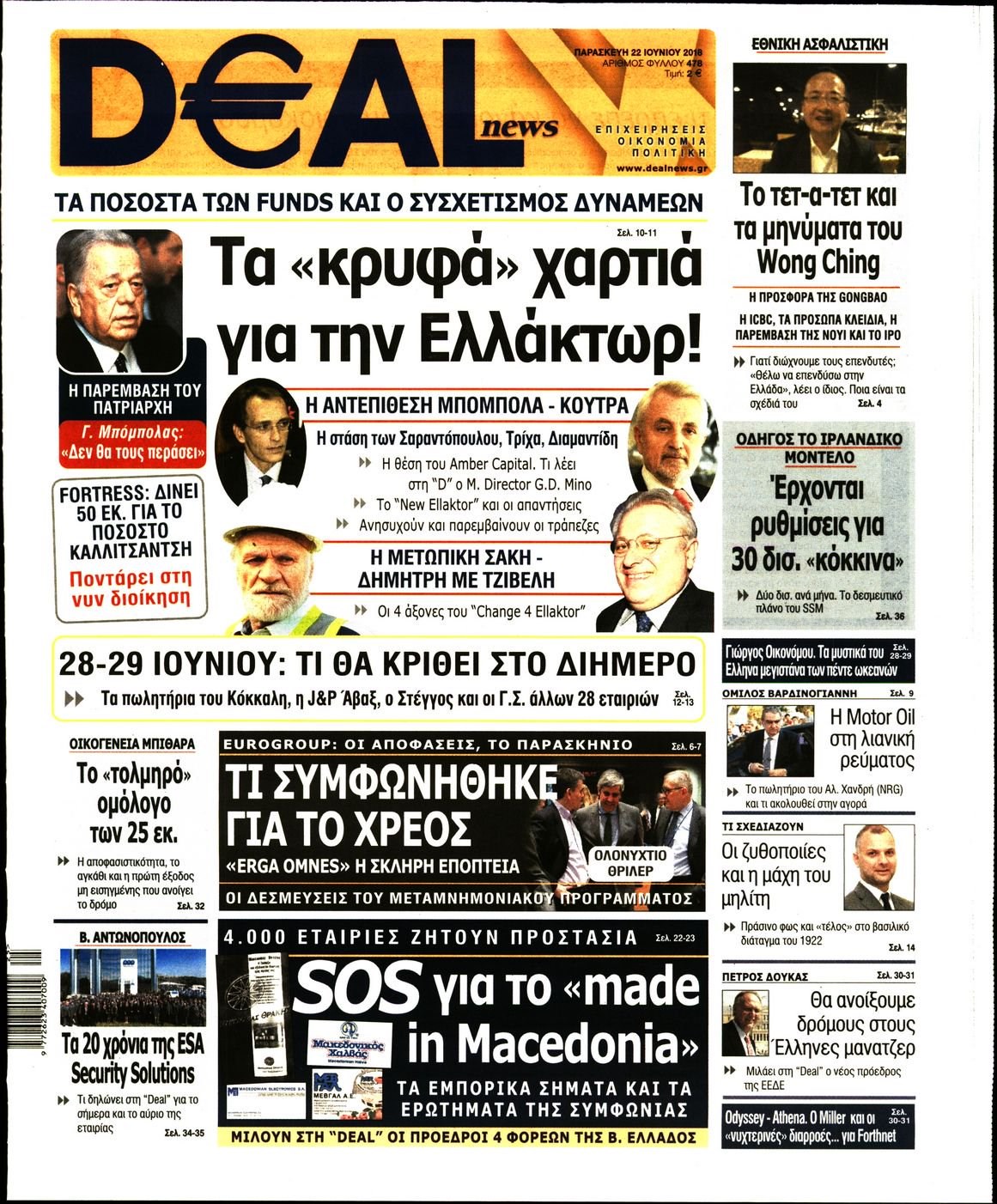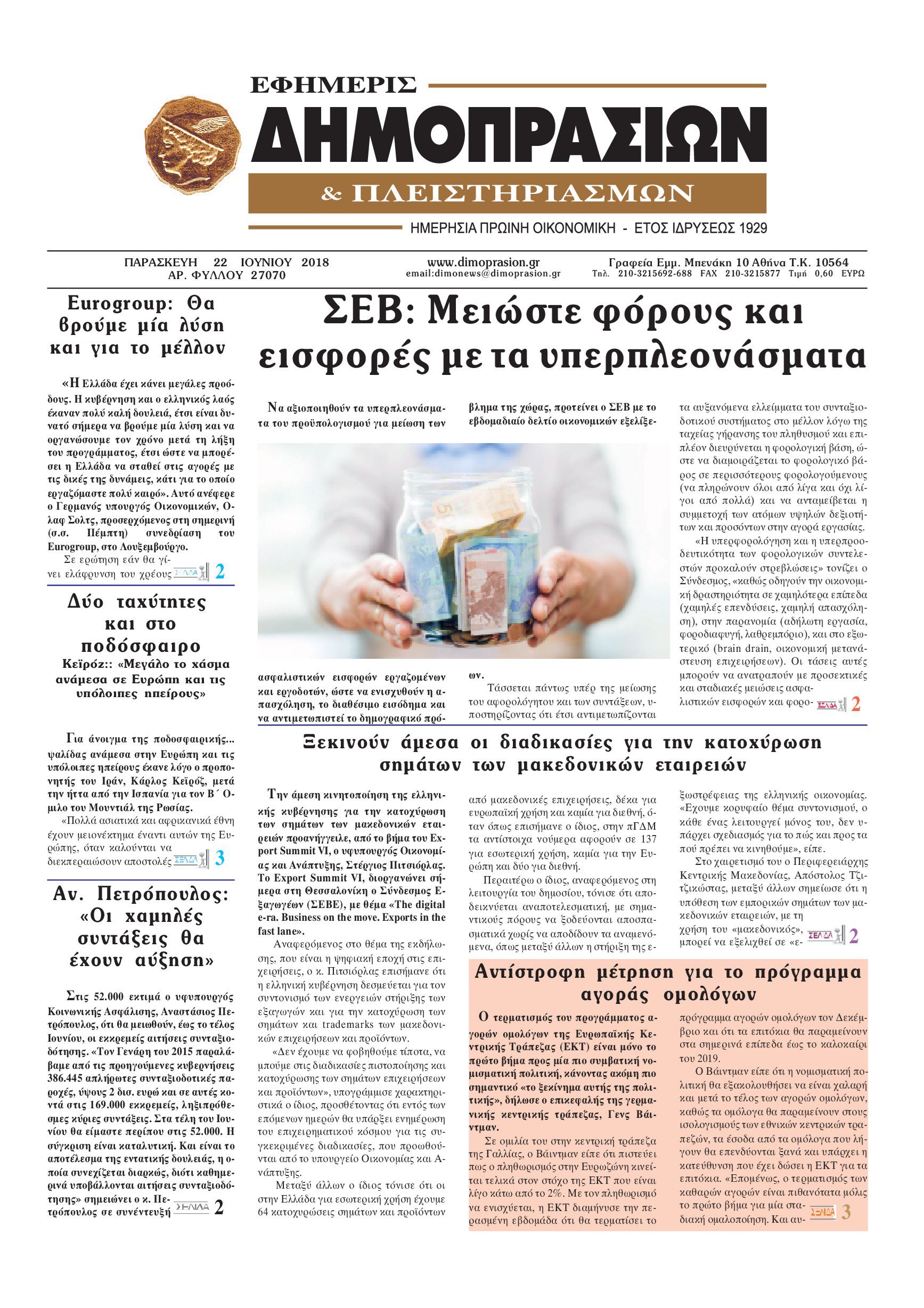 Οι οικονομικές εφημερίδες 22/6/2018 Enikos Newsroom 06:35, Παρασκευή 22 Ιουνίου 2018 Media Διαβάστε τα σημερινά πρωτοσέλιδα των οικονομικών εφημερίδων. ΟΙΚΟΝΟΜΙΚΕΣ ΕΦΗΜΕΡΙΔΕΣ Μοιράσου το: σχολίασε κι εσύ (0 σχόλια) Ακολουθήστε το enikos.gr στο Google News και μάθετε πρώτοι όλες τις ειδήσεις Δείτε όλες τις τελευταίες ειδήσεις από την Ελλάδα και τον Κόσμο στο enikos.gr Ειδήσεις Ροή Ειδήσεων 1 ώρα πριν Δημοσκόπηση Metron Analysis: Στις 10 μονάδες η διαφορά ΝΔ-ΠΑΣΟΚ, στην 3η θέση η Πλεύση Ελευθερίας – 8 στους 10 στηρίζουν τον αγώνα των αγροτών 6 ώρες πριν Αγρότες: «Όχι στον διάλογο, μας εμπαίζει η κυβέρνηση» – Αποφάσισαν κλιμάκωση των κινητοποιήσεων, τι θα γίνει τα Χριστούγεννα 1 ώρα πριν Νίκος Παππάς στον ΑΝΤ1: «Δεν κρύβομαι – Μετά το συμβάν ακολούθησα κανονικά το πρόγραμμά μου» – ΒΙΝΤΕΟ 2 ώρες πριν Αθήνα: Εξαρθρώθηκε εγκληματική οργάνωση που διακινούσε ναρκωτικά σε μορφή σοκολάτας – Δύο τράπερ ανάμεσα στους 4 συλληφθέντες – ΒΙΝΤΕΟ 54 λεπτά πριν Διαμαντής Καραναστάσης: Οδηγούσε υπό την επήρεια αλκοόλ – Του αφαιρέθηκε το δίπλωμα και του επιβλήθηκε πρόστιμο 350 ευρώ 1 ώρα πριν Manifesting: Πώς να συναντήσετε τον σύντροφο της ζωής σας, ανάλογα με τον μήνα γέννησής σας 3 ώρες πριν Γάμος: 11 ψυχρές αλλά ευγενικές φράσεις, που λέει ένας άνδρας όταν σκέφτεται τον χωρισμό 2 ώρες πριν Σφουγγάρισμα: Η συνήθεια που θα σας βοηθήσει να διατηρήσετε το σπίτι σας καθαρό και τακτοποιημένο 2 ημέρες πριν 20 χρόνια τα Χριστούγεννα ξεκινούν στα Public με μεγάλη ποικιλία σε δώρα! 5 λεπτά πριν Τσιάρας: Δεν θα κινδυνέψουν οι πληρωμές των αγροτών – Χρειαζόμαστε μια νέα πολιτική, ένα restart 11 λεπτά πριν Δέσποινα Βανδή: Το βίντεο που δημοσίευσε με τον Γιώργο Νικολαΐδη – «Έχουμε καταστραφεί από τα μελομακάρονά σου» 17 λεπτά πριν Κλήρωση ΤΖΟΚΕΡ 18/12/2025: Αυτοί είναι οι τυχεροί αριθμοί 20 λεπτά πριν Τραμπ: Ζητεί από την Ουκρανία να “κινηθεί γρήγορα” στις διαπραγματεύσεις για το τέλος της σύγκρουσης 25 λεπτά πριν Ύπνος: Η απλή βραδινή ρουτίνα για να προστατεύσετε τα μαλλιά σας από το κρύο κατά τη διάρκεια του χειμώνα ENIKOS NETWORK Σε περίοδο αυξημένης δραστηριότητας η γρίπη στην Ελλάδα-Μέτρα προστασίας από τον ΕΟΔΥ Σκέφτεστε συνέχεια συζητήσεις που έχετε κάνει; Τι σημαίνει αυτό, σύμφωνα με ειδικό ΑΣΕΠ 2ΓΒ/2025: Σήμερα αρχίζει η υποβολή ενστάσεων – Πότε θα βγουν τα οριστικά αποτελέσματα ΕΛΤΑ: Αυτό είναι το νέο σχέδιο μετασχηματισμού του Οργανισμού- Τι δήλωσαν Πιερρακάκης και Παπαστεργίου Χαρτογραφώντας το «σημείο χωρίς επιστροφή»: Για πρώτη φορά αποκαλύπτεται με λεπτομέρεια το ακανθώδες όριο της ατμόσφαιρας τ... Η Google καταργεί τη λειτουργία «dark web report» – Πώς θα μπορούν οι χρήστες να διαγράφουν τα δεδομένα τους περισσότερα 17:45 , Πέμπτη 18 Δεκεμβρίου 2025 ROUK ZOUK: Εορταστικό επεισόδιο με καλεσμένους τους πρωταγωνιστές του «Γιατί ρε πατέρα» Το Σάββατο 20 Δεκεμβρίου στις 21:00, η Ζέτα Μακρυπούλια υποδέχεται εκλεκτούς ηθοποιούς που όλο... 17:20 , Πέμπτη 18 Δεκεμβρίου 2025 Άγιος έρωτας: Η Χριστίνα εξομολογείται στον πατέρα Νικόλαο, απόψε στις 21:00 στον Alpha Η Νότα αποφασίζει να εκδικηθεί τον Πέτρο και τον Στέφανο, για χάρη του Λούη, όμως τα πράγματα ... 16:50 , Πέμπτη 18 Δεκεμβρίου 2025 Να μ’ αγαπάς: Ζωή και Φωτεινή συμφιλιώνονται ως μάνα με κόρη, απόψε στις 20:00 Η ταυτότητα του Άγγελου αποκαλύπτεται στο νέο επεισόδιο της σειράς “Να μ’ αγαπάς... 15:52 , Πέμπτη 18 Δεκεμβρίου 2025 Το Σπίτι Δίπλα Στο Ποτάμι: Το καθηλωτικό τελευταίο επεισόδιο για το 2025 απόψε στις 22:30 Καθηλώνει το σημ