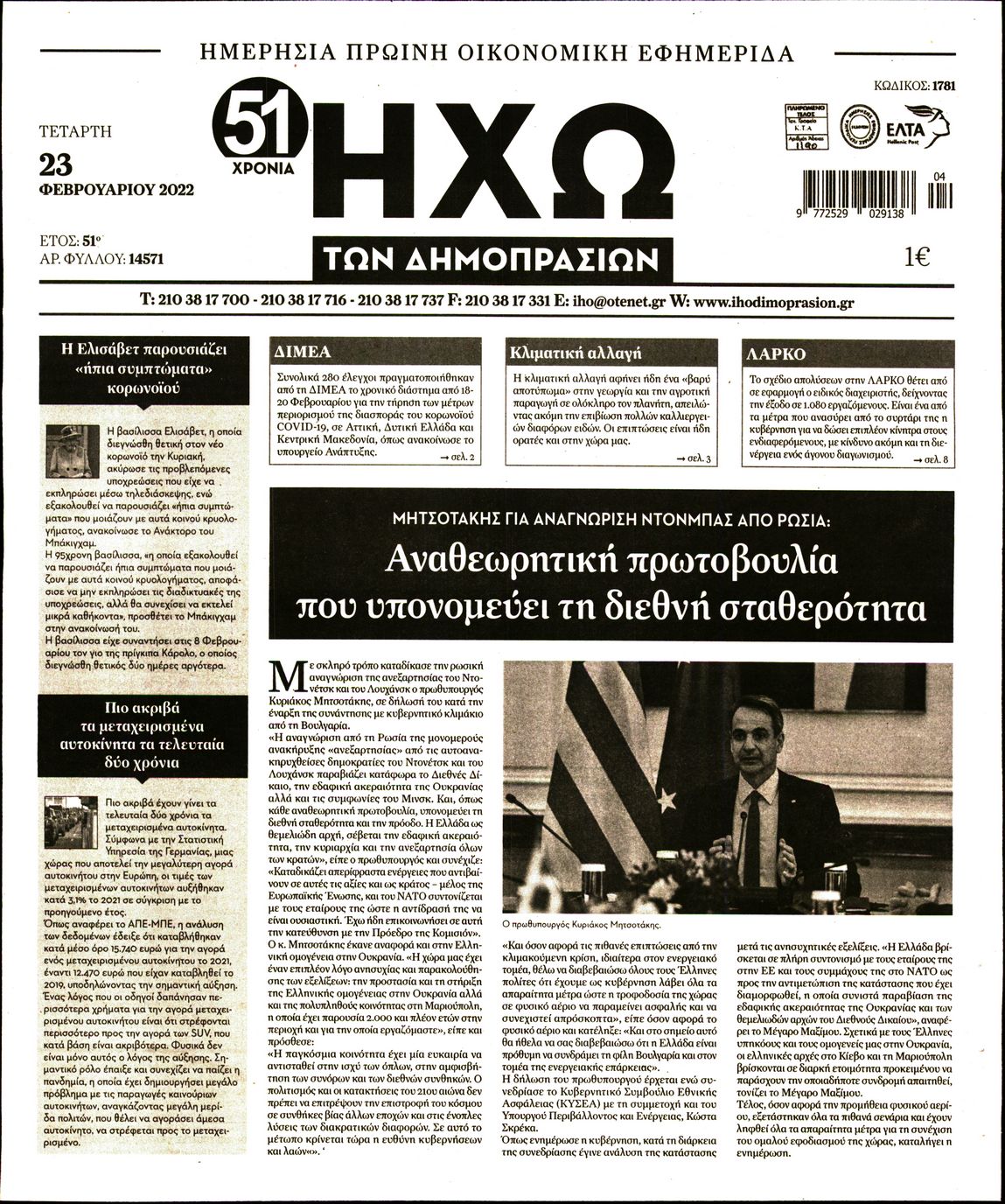 Οι οικονομικές εφημερίδες 23/2/2022 Διονύσης Νίκκας 06:50, Τετάρτη 23 Φεβρουαρίου 2022 Media Διαβάστε τα πρωτοσέλιδα από τις οικονομικές εφημερίδες… ΟΙΚΟΝΟΜΙΚΕΣ ΕΦΗΜΕΡΙΔΕΣ Μοιράσου το: Εφιάλτης για 47χρονο στην Κρήτη – Αρνήθηκε ένα κέρασμα και του έβγαλε το μάτι με το δάχτυλό του Ουκρανία: Μερική επιστράτευση ανακοίνωσε ο πρόεδρος Ζελένσκι Θεσσαλονίκη: Φωτιά σε ισόγειο κατάστημα που διέμενε ρακοσυλλέκτης σχολίασε κι εσύ (0 σχόλια) Ακολουθήστε το enikos.gr στο Google News και μάθετε πρώτοι όλες τις ειδήσεις Δείτε όλες τις τελευταίες ειδήσεις από την Ελλάδα και τον Κόσμο στο enikos.gr Ειδήσεις Ροή Ειδήσεων 1 ώρα πριν Αγρότες: «Όχι στον διάλογο, μας εμπαίζει η κυβέρνηση» – Αποφάσισαν κλιμάκωση των κινητοποιήσεων, τι θα γίνει τα Χριστούγεννα 2 ώρες πριν Την πρώτη Belharra παρέλαβε η χώρα μας, υψώθηκε η ελληνική σημαία στη φρεγάτα «Κίμων» – Δένδιας: «Το ισχυρότερο Πολεμικό Ναυτικό που είχε ποτέ ο ελληνισμός» 4 ώρες πριν Γιώργος Μαζωνάκης: «Δεν ζήτησα χρήματα, παρά μόνο ηθική δικαίωση» – Οι πρώτες δηλώσεις του 21χρονου μετά την κατάθεση της μήνυσης 56 λεπτά πριν Μιχάλης Χουρδάκης: «Είμαι διαθέσιμος να συμβάλω στην προσωρινή κάλυψη του ιατρείου της Ψερίμου» – Η επιστολή στον Άδωνι Γεωργιάδη 1 ώρα πριν Εξώδικο Γεωργιάδη στην Κωνσταντοπούλου – «Με κατηγόρησε ότι έχω καταδικαστεί για παιδεραστία» 2 ώρες πριν Τα 5 ζώδια που θα ευνοηθούν στα οικονομικά τους το 2026 – «Τραβούν το χρήμα σαν μαγνήτες» 7 ώρες πριν Αν κάνετε συνεχώς αυτά τα 8 πράγματα με τα κατοικίδιά σας, σας λείπει η ανθρώπινη επαφή 3 ώρες πριν Αυτό που κρύβεται κάτω από τη Γροιλανδία θα μπορούσε να ανατρέψει όσα γνωρίζουμε για την άνοδο της στάθμης των θαλασσών 1 ημέρα πριν 20 χρόνια τα Χριστούγεννα ξεκινούν στα Public με μεγάλη ποικιλία σε δώρα! 5 λεπτά πριν Δίκη για υποκλοπές: Τη βίαιη προσαγωγή δύο μαρτύρων διέταξε το δικαστήριο – Τι κατέθεσε ο Τάσος Τέλλογλου 10 λεπτά πριν Σύνοδος Κορυφής: Οι Ευρωπαίοι συμφώνησαν να εξετάσουν την χρήση των ρωσικών περιουσιακών για την χρηματοδότηση της Ουκρανίας – Η δήλωση Ζελένσκι 15 λεπτά πριν Δένδιας: Έναρξη διαπραγματεύσεων για την ταχύτερη ανανέωση της Στρατηγικής Εταιρικής Σχέσης Ελλάδας – Γαλλίας 20 λεπτά πριν ROUK ZOUK: Εορταστικό επεισόδιο με καλεσμένους τους πρωταγωνιστές του «Γιατί ρε πατέρα» 25 λεπτά πριν Φιντάν: «Η Κυπριακή Δημοκρατία μας παρεμποδίζει όπου βρει την ευκαιρία» – Η πονηρή πρόταση που ανοίγει τον δρόμο για δύο κράτη ENIKOS NETWORK ΕΟΔΥ: Δωρεάν τεστ για HIV, Ηπατίτιδες, Σύφιλη, Χλαμύδια, Γονόρροια 100 χρόνια ΠΙΣ: Ένας αιώνας προσφοράς στην Ιατρική και την κοινωνία Χριστούγεννα και Πρωτοχρονιά: Δείτε πόσα χρήματα θα πάρουν ως αμοιβή όσοι εργαστούν Κρατική επιχορήγηση έως 14.500 ευρώ: Ποιοι θα λάβουν από σήμερα την προκαταβολή στον τραπεζικό λογαριασμό τους Χαρτογραφώντας το «σημείο χωρίς επιστροφή»: Για πρώτη φορά αποκαλύπτεται με λεπτομέρεια το ακανθώδες όριο της ατμόσφαιρας τ... Η Google καταργεί τη λειτουργία «dark web report» – Πώς θα μπορούν οι χρήστες να διαγράφουν τα δεδομένα τους περισσότερα 17:45 , Πέμπτη 18 Δεκεμβρίου 2025 ROUK ZOUK: Εορταστικό επεισόδιο με καλεσμένους τους πρωταγωνιστές του «Γιατί ρε πατέρα» Το Σάββατο 20 Δεκεμβρίου στις 21:00, η Ζέτα Μακρυπούλια υποδέχεται εκλεκτούς ηθοποιούς που όλο... 17:20 , Πέμπτη 18 Δεκεμβρίου 2025 Άγιος έρωτας: Η Χριστίνα εξομολογείται στον πατέρα Νικόλαο, απόψε στις 21:00 στον Alpha Η Νότα αποφασίζει να εκδικηθεί τον Πέτρο και τον Στέφανο, για χάρη 