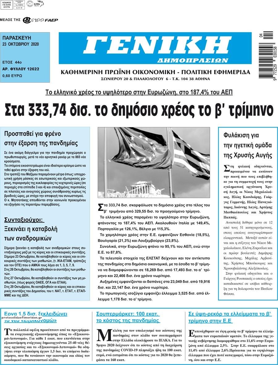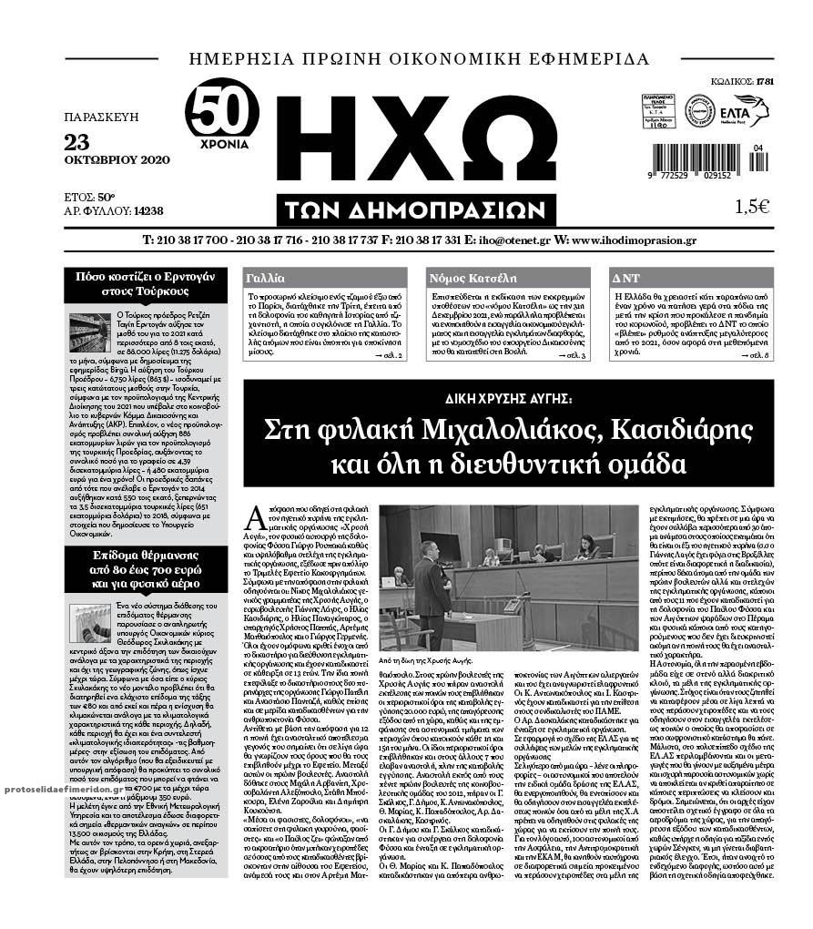 Οι οικονομικές εφημερίδες 23/10/2020 Σήφης Γαρυφαλάκης 06:08, Παρασκευή 23 Οκτωβρίου 2020 Media Διαβάστε τα πρωτοσέλιδα των οικονομικών εφημερίδων… ΕΦΗΜΕΡΙΔΕΣ ΟΙΚΟΝΟΜΙΚΕΣ ΕΦΗΜΕΡΙΔΕΣ ΠΡΩΤΟΣΕΛΙΔΑ ΠΡΩΤΟΣΕΛΙΔΑ ΕΦΗΜΕΡΙΔΩΝ Μοιράσου το: σχολίασε κι εσύ (0 σχόλια) Ακολουθήστε το enikos.gr στο Google News και μάθετε πρώτοι όλες τις ειδήσεις Δείτε όλες τις τελευταίες ειδήσεις από την Ελλάδα και τον Κόσμο στο enikos.gr Ειδήσεις Ροή Ειδήσεων 8 ώρες πριν Μητσοτάκης: Αναγκαία η μεταρρύθμιση του πρωτογενούς τομέα – Τα 6 νέα μέτρα για το στεγαστικό και οι αναφορές σε «Ιθάκη» και «πολιτικούς του καναπέ» 7 ώρες πριν Δάνεια σε ελβετικό φράγκο: Τα βασικά σημεία της ρύθμισης – ανάσας για 40.000 δανειολήπτες – Αναλυτικός οδηγός με ερωτήσεις και απαντήσεις 6 ώρες πριν Κυψέλη: Εξιτήριο πήρε η 14χρονη μαθήτρια που μαχαιρώθηκε από την 16χρονη σε σχολείο – «Θέλω να βοηθήσω το παιδί, έχει μπλέξει με κακές παρέες» 6 ώρες πριν Τραμπ: Γιατί κατέθεσε τώρα την αγωγή κατά του BBC – Πώς η κίνησή του εξυπηρετεί το νέο δόγμα του για «αντίσταση» στην Ευρώπη, υπέρ των συντηρητικών 7 ώρες πριν ΟΠΕΚΕΠΕ – Παράνομες επιδοτήσεις: Ελεύθεροι με περιοριστικούς όρους και οι 7 κατηγορούμενοι που απολογήθηκαν σήμερα 6 ώρες πριν Ανακαλύφθηκε βυθισμένη πέτρινη κατασκευή ανοιχτά της Κριμαίας – Αποτελεί μέρος αρχαίας ελληνικής αποικίας 7 ώρες πριν Ύπνος: Αυτό μπορεί να είναι το χειρότερο λάθος για το βιολογικό ρολόι σας, σύμφωνα με ειδικό 8 ώρες πριν Αριθμολογία: Οι άνθρωποι που έχουν γεννηθεί αυτές τις 3 ημερομηνίες, προσελκύουν μεγάλη τύχη πριν από το τέλος του 2025 10 ώρες πριν Οι 7 συμπεριφορές που μαρτυρούν ότι ένας άνδρας επενδύει μακροπρόθεσμα σε μια σχέση 2 λεπτά πριν Κολομβία: Νεκροί τέσσερις αστυνομικοί σε βομβιστικές επιθέσεις ανταρτών 10 λεπτά πριν Στάση εργασίας 11:00 – 17:00 σήμερα στα λεωφορεία του ΟΑΣΑ – Ποιες γραμμές θα λειτουργήσουν 26 λεπτά πριν Παλαιστινιακό: «Η λύση των δύο κρατών είναι ο μόνος βιώσιμος δρόμος», τόνισε η Ελλάδα στο Συμβούλιο Ασφαλείας του ΟΗΕ 33 λεπτά πριν Ελένη Καρακάση: «Ένιωθα πολύ αδικημένη, δεν μπορούσα να ελέγξω τον εαυτό μου σε δύσκολες στιγμές» 41 λεπτά πριν Κλαούδια Σέινμπαουμ προς Ντόναλντ Τραμπ για φαιντανύλη: Να επιτεθούμε στα αίτια κατανάλωσης αντί να την κατατάσσουμε στα «όπλα μαζικής καταστροφής» ENIKOS NETWORK Αίτημα ΙΣΑ για την εξαίρεση των προσωπικών γιατρών από τις κατ’ οίκον επισκέψεις Η σκανδιναβική μέθοδος στον ύπνο που μπορεί να σώσει έναν γάμο Πιερρακάκης: Ο προϋπολογισμός συμβάλλει ουσιαστικά στην ενίσχυση της αγοραστικής δύναμης της πλειονότητας των εργαζομένων e-ΕΦΚΑ: Παρατείνεται η προθεσμία για την υποβολή ΑΠΔ – Ποιους αφορά Σύγχρονος Νοστράδαμος: Προειδοποιεί για «μεγάλο γεγονός» τους επόμενους μήνες που θα συγκλονίσει τη Βρετανία και τον κόσμο Τεστ παρατηρητικότητας: Μπορείτε να βρείτε τις 3 διαφορές στις εικόνες με έναν πιγκουίνο σε 14 δευτερόλεπτα περισσότερα 20:06 , Τρίτη 16 Δεκεμβρίου 2025 Ο ΣΚΑΙ καταγγέλλει τον ΕΚΚΟΜΕΔ Επιστολή με την οποία καταγράφει την έντονη διαμαρτυρία του προς τον διευθύνοντα σύμβουλο του... 17:40 , Τρίτη 16 Δεκεμβρίου 2025 Eurovision: Στις 4 Ιανουαρίου αποκαλύπτονται τα 28 τραγούδια του ελληνικού τελικού Η αγωνία τελειώνει, η γιορτή της Eurovision αρχίζει στην ΕΡΤ από τις πρώτες ημέρες της νέας χρ... 17:09 , Τρίτη 16 Δεκεμβρίου 2025 Alter Ego Media: Βαθύτατη θλίψη και ειλικρινή συλλυπητήρια για την απώλεια της Ειρήνης Μαρινάκη Τη βαθύτατη θλίψη και τα ειλικρινή συ