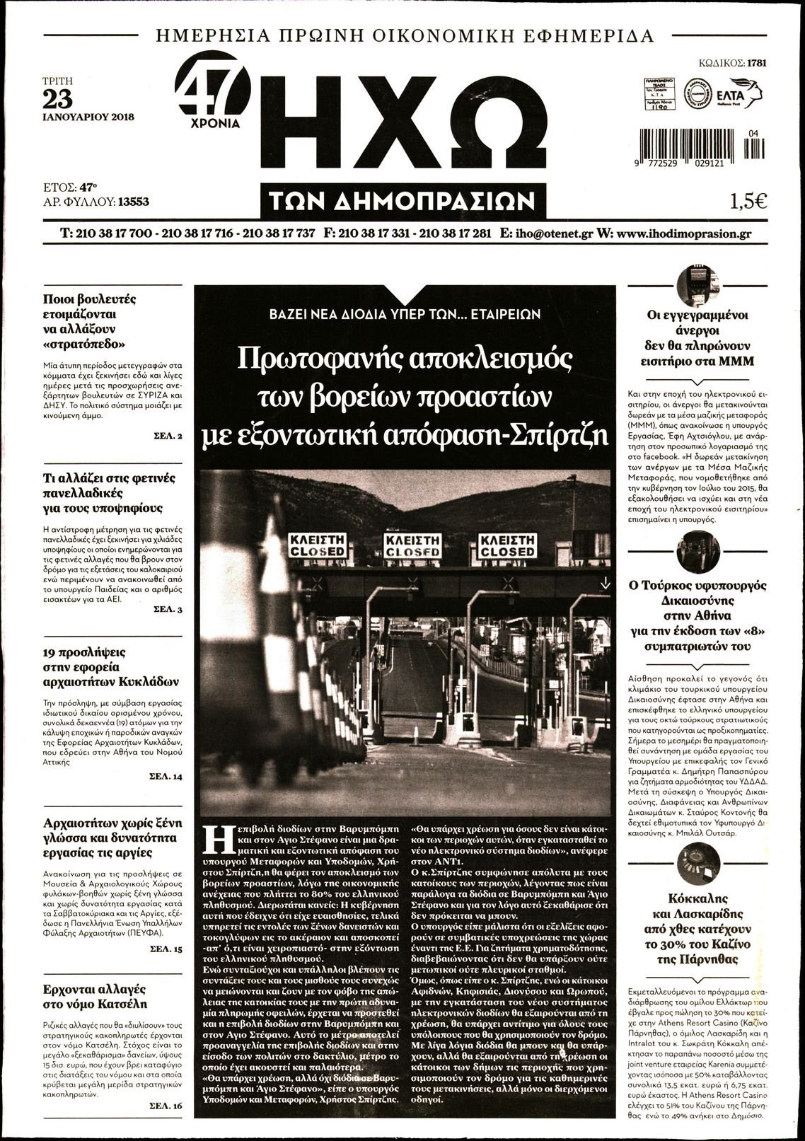Οι οικονομικές εφημερίδες 23/1/2018 Enikos Newsroom 07:18, Τρίτη 23 Ιανουαρίου 2018 Media Διαβάστε τα σημερινά πρωτοσέλιδα των οικονομικών εφημερίδων: ΟΙΚΟΝΟΜΙΚΕΣ ΕΦΗΜΕΡΙΔΕΣ ΠΡΩΤΟΣΕΛΙΔΑ Μοιράσου το: σχολίασε κι εσύ (0 σχόλια) Ακολουθήστε το enikos.gr στο Google News και μάθετε πρώτοι όλες τις ειδήσεις Δείτε όλες τις τελευταίες ειδήσεις από την Ελλάδα και τον Κόσμο στο enikos.gr Ειδήσεις Ροή Ειδήσεων 3 ώρες πριν Αγρότες: Πολύωροι αποκλεισμοί στα τελωνεία Προμαχώνα, Εξοχής, Ευζώνων και Νίκης – Κλείνουν τον κόμβο Φιλώτα οι παραγωγοί στη Δυτική Μακεδονία 2 ώρες πριν Νίκος Παππάς: Ζητώ συγγνώμη για αυτό το επεισόδιο – Δεν τον γρονθοκόπησα 1 ώρα πριν Πούτιν: Η Ουκρανία δεν είναι έτοιμη για ειρηνευτικές συνομιλίες – ο ρωσικός στρατός προελαύνει σε όλα τα μέτωπα 59 λεπτά πριν Κρήτη: Στο Ρέθυμνο μεταφέρονται οι εκατοντάδες μετανάστες που διασώθηκαν ανοιχτά της Γαύδου 2 ώρες πριν Τρομακτικό βίντεο: Η στιγμή της έκρηξης στο τζετ που μετέφερε τον οδηγό του NASCAR, Γκρεγκ Μπιφλ και την οικογένειά του 3 ώρες πριν Αλλαγή σελίδας για 3 ζώδια – «Μία δύσκολη περίοδος φτάνει στο τέλος της» 2 ημέρες πριν 20 χρόνια τα Χριστούγεννα ξεκινούν στα Public με μεγάλη ποικιλία σε δώρα! 2 ώρες πριν Γεμάτος νεροχύτης; 5 σοβαρές ευθύνες που «φοβίζουν» όσους αφήνουν άπλυτα πιάτα 1 ώρα πριν Ειδικός μοιράζεται 6 κόλπα για να διατηρείστε σε φόρμα με πάνω από 40 ώρες εργασίας την εβδομάδα: «Προπονηθείτε πριν από τη δουλειά, όχι μετά» 7 λεπτά πριν ΑΑΔΕ: QR Code και Barcode για εύκολες και γρήγορες πληρωμές οφειλών 12 λεπτά πριν Νέα Φιλαδέλφεια: Βίντεο ντοκουμέντο από το θανατηφόρο τροχαίο 17 λεπτά πριν Παπαθανάσης: «Η Ελλάδα αλλάζει με μεταρρυθμίσεις και έργα – Το 2026 χρονιά μεγάλης ανάπτυξης, νέων θέσεων εργασίας, καλύτερων αμοιβών» 23 λεπτά πριν Αγρότες: Παραμένουν στα μπλόκα και ενισχύουν τις δράσεις τους σε Ημαθία, Πέλλα, Πιερία και Καβάλα 29 λεπτά πριν Γιώργος Μαζωνάκης: «Φοβόταν, θεώρησα ότι έπρεπε να τον προστατεύσω» – Τι λέει η τραγουδίστρια, Νωαίνα για τον Στέφανο Παπαδόπουλο ENIKOS NETWORK Κίνδυνος παραπλάνησης από διαφημίσεις οδοντικών εμφυτευμάτων Καρκίνος του πνεύμονα: Έως 8.000 ζωές μπορούν να σωθούν με την έγκαιρη διάγνωση Αγορά πολυτελών κατοικιών: Αυτές είναι οι προτεραιότητες των αγοραστών – Σε ποιες περιοχές στρέφονται και τι επιλέγουν ΕΥΔΑΠ: Στο τραπέζι αλλαγές στους λογαριασμούς του νερού – Τι θα ισχύσει για ευάλωτα νοικοκυριά και επιχειρήσεις Χαρτογραφώντας το «σημείο χωρίς επιστροφή»: Για πρώτη φορά αποκαλύπτεται με λεπτομέρεια το ακανθώδες όριο της ατμόσφαιρας τ... Η Google καταργεί τη λειτουργία «dark web report» – Πώς θα μπορούν οι χρήστες να διαγράφουν τα δεδομένα τους περισσότερα 08:00 , Παρασκευή 19 Δεκεμβρίου 2025 Την Κυριακή με τη Realnews: Δωροεπιταγή 10€ Δωροεπιταγή αξίας 10€ για αγορές άνω των 60€ από τα πολυκαταστήματα FactoryOutlet H προσφορά ι... 05:48 , Παρασκευή 19 Δεκεμβρίου 2025 Οι οικονομικές εφημερίδες 19/12/2025 Διαβάστε τα πρωτοσέλιδα από τις οικονομικές εφημερίδες, σήμερα 19/12/2025. 05:43 , Παρασκευή 19 Δεκεμβρίου 2025 Οι αθλητικές εφημερίδες 19/12/2025 Διαβάστε τα πρωτοσέλιδα από τις αθλητικές εφημερίδες, σήμερα 19/12/2025. 05:38 , Παρασκευή 19 Δεκεμβρίου 2025 Οι πολιτικές εφημερίδες 19/12/2025 Διαβάστε τα πρωτοσέλιδα από τις πολιτικές εφημερίδες, σήμερα 19/12/2025. ΤΕΛΕΥΤΑΙΕΣ ΕΙΔΗΣΕΙΣ 7 λεπτά πριν ΑΑΔΕ: QR Code και Barcode για εύκολες και γρήγορες πληρωμές... 12 λεπτά πριν Νέα Φιλαδέλφεια: Βίντεο ντοκουμέντο από το θανατηφόρο... 17 λεπτά πριν Παπαθανάσης: «Η Ελλάδ