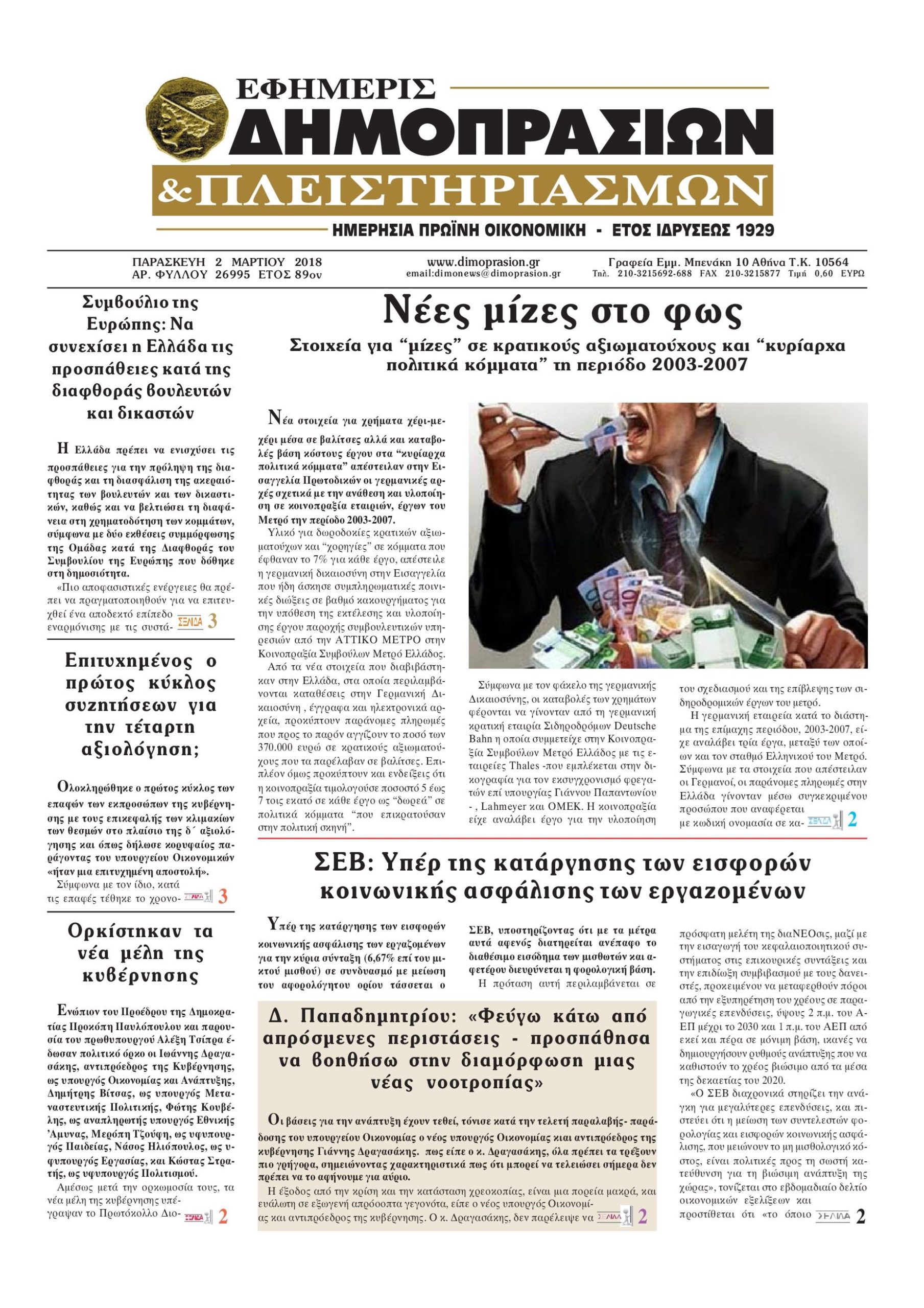 Οι οικονομικές εφημερίδες 2/3/2018 Enikos Newsroom 07:19, Παρασκευή 02 Μαρτίου 2018 Media Διαβάστε τα σημερινά πρωτοσέλιδα των οικονομικών εφημερίδων: ΟΙΚΟΝΟΜΙΚΕΣ ΕΦΗΜΕΡΙΔΕΣ ΠΡΩΤΟΣΕΛΙΔΑ Μοιράσου το: σχολίασε κι εσύ (0 σχόλια) Ακολουθήστε το enikos.gr στο Google News και μάθετε πρώτοι όλες τις ειδήσεις Δείτε όλες τις τελευταίες ειδήσεις από την Ελλάδα και τον Κόσμο στο enikos.gr Ειδήσεις Ροή Ειδήσεων 27 λεπτά πριν Αγρότες: «Όχι στον διάλογο, μας εμπαίζει η κυβέρνηση» – Αποφάσισαν κλιμάκωση των κινητοποιήσεων 55 λεπτά πριν Την πρώτη Belharra παρέλαβε η χώρα μας, υψώθηκε η ελληνική σημαία στη φρεγάτα «Κίμων» – Δένδιας: «Το ισχυρότερο Πολεμικό Ναυτικό που είχε ποτέ ο ελληνισμός» 4 ώρες πριν Γιώργος Μαζωνάκης: «Δεν ζήτησα χρήματα, παρά μόνο ηθική δικαίωση» – Οι πρώτες δηλώσεις του 21χρονου μετά την κατάθεση της μήνυσης 2 ώρες πριν Δίκη Βαλυράκη: Καταθέτει ο βασικός αυτόπτης μάρτυρας – «Δέχτηκα πιέσεις να μη μιλήσω, πήγα να ψωνίσω και αυτοκίνητο με χτύπησε στο πόδι» 7 ώρες πριν Συναγερμός και στην Ελλάδα για τη «σούπερ γρίπη»: Πόσο σοβαρή είναι και ποιοι θεωρούνται πιο ευάλωτοι – 3 ειδικοί μιλούν στο enikos.gr 1 ώρα πριν Τα 5 ζώδια που θα ευνοηθούν στα οικονομικά τους το 2026 – «Τραβούν το χρήμα σαν μαγνήτες» 6 ώρες πριν Αν κάνετε συνεχώς αυτά τα 8 πράγματα με τα κατοικίδιά σας, σας λείπει η ανθρώπινη επαφή 2 ώρες πριν Αυτό που κρύβεται κάτω από τη Γροιλανδία θα μπορούσε να ανατρέψει όσα γνωρίζουμε για την άνοδο της στάθμης των θαλασσών 1 ημέρα πριν 20 χρόνια τα Χριστούγεννα ξεκινούν στα Public με μεγάλη ποικιλία σε δώρα! 5 λεπτά πριν ΕΛΚ – Κωστής Χατζηδάκης: Παρεμβάσεις σε 9 τομείς για την ανταγωνιστικότητα 11 λεπτά πριν Μιχάλης Χουρδάκης: «Είμαι διαθέσιμος να συμβάλω στην προσωρινή κάλυψη του ιατρείου της Ψερίμου» – Η επιστολή στον Άδωνι Γεωργιάδη 16 λεπτά πριν Κουίζ για την παλιά Αθήνα: Αναγνωρίζετε την περιοχή; Είναι από τις πιο γνωστές 22 λεπτά πριν Λάμπρος Κωνσταντάρας για τα φετινά Χριστούγεννα: «Θα είναι πάρα πολύ δύσκολα, γιατί θα είναι τα πρώτα χωρίς τον πατέρα μου» 27 λεπτά πριν Αγρότες: «Όχι στον διάλογο, μας εμπαίζει η κυβέρνηση» – Αποφάσισαν κλιμάκωση των κινητοποιήσεων ENIKOS NETWORK 100 χρόνια ΠΙΣ: Ένας αιώνας προσφοράς στην Ιατρική και την κοινωνία Ένα ποτήρι την ημέρα από αυτόν τον χυμό μειώνει τη χοληστερίνη, τη φλεγμονή και την πίεση Χριστούγεννα και Πρωτοχρονιά: Δείτε πόσα χρήματα θα πάρουν ως αμοιβή όσοι εργαστούν Κρατική επιχορήγηση έως 14.500 ευρώ: Ποιοι θα λάβουν από σήμερα την προκαταβολή στον τραπεζικό λογαριασμό τους Χαρτογραφώντας το «σημείο χωρίς επιστροφή»: Για πρώτη φορά αποκαλύπτεται με λεπτομέρεια το ακανθώδες όριο της ατμόσφαιρας τ... Η Google καταργεί τη λειτουργία «dark web report» – Πώς θα μπορούν οι χρήστες να διαγράφουν τα δεδομένα τους περισσότερα 16:50 , Πέμπτη 18 Δεκεμβρίου 2025 Να μ’ αγαπάς: Ζωή και Φωτεινή συμφιλιώνονται ως μάνα με κόρη, απόψε στις 20:00 Η ταυτότητα του Άγγελου αποκαλύπτεται στο νέο επεισόδιο της σειράς “Να μ’ αγαπάς... 15:52 , Πέμπτη 18 Δεκεμβρίου 2025 Το Σπίτι Δίπλα Στο Ποτάμι: Το καθηλωτικό τελευταίο επεισόδιο για το 2025 απόψε στις 22:30 Καθηλώνει το σημερινό επεισόδιο της σειράς “Το Σπίτι Δίπλα Στο Ποτάμι” που έρχεται... 15:20 , Πέμπτη 18 Δεκεμβρίου 2025 Άγιος έρωτας – Η Ελευθερία Αρβανιτάκη τραγουδά και ο Γιάννης Τσορτέκης καθηλώνει με τον χορό του Ο Κλεάνθης χορεύει στους ήχους της Ελευθερίας Αρβανιτάκη στη σειρά “Άγιος Έρωτας“.... 08:00 , Πέμπτη 18 Δεκεμβρίου 2025 Την Κυρια