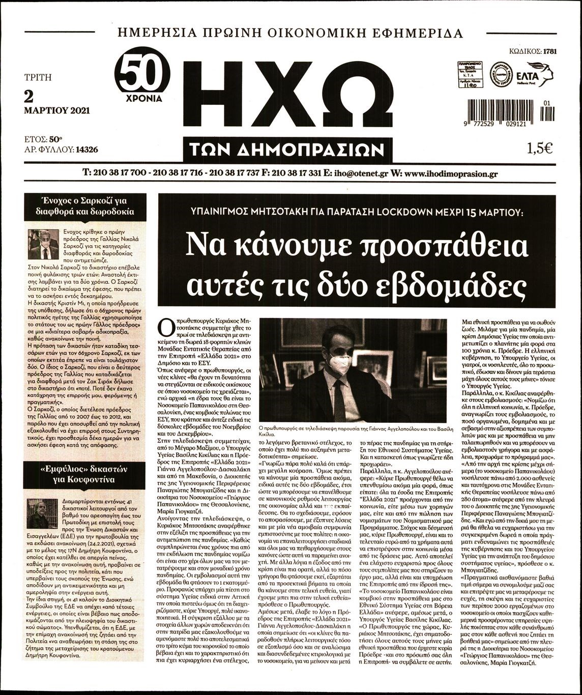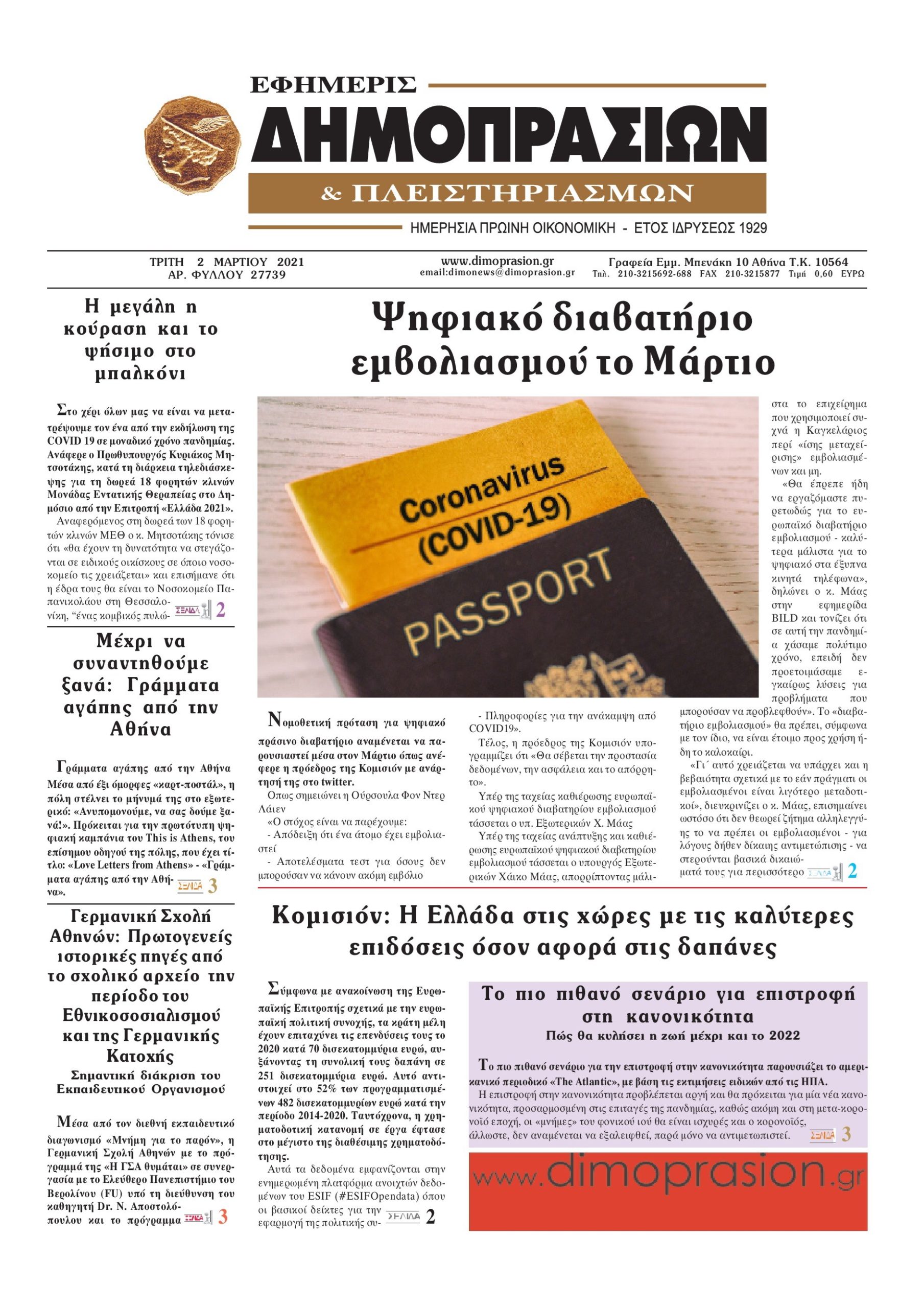 Οι οικονομικές εφημερίδες 2/3/2021 Διονύσης Νίκκας 06:47, Τρίτη 02 Μαρτίου 2021 Media Διαβάστε τα πρωτοσέλιδα των οικονομικών εφημερίδων… ΟΙΚΟΝΟΜΙΚΕΣ ΕΦΗΜΕΡΙΔΕΣ Μοιράσου το: σχολίασε κι εσύ (0 σχόλια) Ακολουθήστε το enikos.gr στο Google News και μάθετε πρώτοι όλες τις ειδήσεις Δείτε όλες τις τελευταίες ειδήσεις από την Ελλάδα και τον Κόσμο στο enikos.gr Ειδήσεις Ροή Ειδήσεων 35 λεπτά πριν Χριστούγεννα στα μπλόκα: Επιμένουν στις κινητοποιήσεις τους οι αγρότες – Ανοίγουν τα διόδια το Σαββατοκύριακο 57 λεπτά πριν Ουκρανία: Η άνευ προηγουμένου επίθεση σε ρωσικό τάνκερ στη Μεσόγειο και το μήνυμα προς στον Πούτιν – Το «μακρύ χέρι» του Κιέβου 12 λεπτά πριν Πούτιν: Τα μηνύματα σε Ευρώπη και ΝΑΤΟ από το μαραθώνιο «σόου» του – Η απαίτηση για «σεβασμό» και η ειρήνη «με τους όρους» της Μόσχας 1 ώρα πριν Τραμπ: Δεν αποκλείει την πιθανότητα ενός πολέμου στη Βενεζουέλα – «Ο Μαδούρο ξέρει καλύτερα από τον καθένα τι ακριβώς θέλω» 2 ώρες πριν Συνεχίζει να προκαλεί ο Μίτσκοσκι: «Για μένα το όνομα Μακεδονία είναι ιερό» 3 ώρες πριν Πούτιν: «Ναι, είμαι ερωτευμένος» – Βίντεο από τη σπάνια προσωπική παραδοχή του 2 ώρες πριν Αριθμολογία: Οι άνθρωποι που έχουν γεννηθεί αυτές τις 4 ημερομηνίες, συχνά παρεξηγούνται – «Η καλοσύνη τους κρύβει τεράστια δύναμη» 1 ώρα πριν Ύπνος: Μια κρυφή κατάσταση του εγκεφάλου πριν από τον ύπνο μπορεί να είναι το “κλειδί” για υψηλή ευφυΐα και δημιουργικότητα 3 ώρες πριν Ξεχάστε το καθάρισμα το Σαββατοκύριακο: Ο «κανόνας των 20 λεπτών» που θα σας λύσει τα χέρια 13 λεπτά πριν Ανακαλύφθηκαν αρχαία χρυσά νομίσματα 2.200 ετών που απεικονίζουν τον θεό Απόλλωνα – Η άγνωστη σύνδεση με τον Φίλιππο Β΄ της Μακεδονίας 12 λεπτά πριν Πούτιν: Τα μηνύματα σε Ευρώπη και ΝΑΤΟ από το μαραθώνιο «σόου» του – Η απαίτηση για «σεβασμό» και η ειρήνη «με τους όρους» της Μόσχας 13 λεπτά πριν Ανακαλύφθηκαν αρχαία χρυσά νομίσματα 2.200 ετών που απεικονίζουν τον θεό Απόλλωνα – Η άγνωστη σύνδεση με τον Φίλιππο Β΄ της Μακεδονίας 18 λεπτά πριν Νίκος Ξυλούρης: Συγκινεί η χήρα του σπουδαίου καλλιτέχνη – «Ευχαριστώ όλο τον κόσμο που τον κρατάει ζωντανό 45 χρόνια» 25 λεπτά πριν Παναθηναϊκός: «Μέσα» οι Σφιντέρσκι και Τουμπά για το ματς με τον ΠΑΟΚ – Τι έδειξε η μαγνητική του Πάντοβιτς 30 λεπτά πριν Γιώργος Γιαννόπουλος για “Το σόι σου”: “Είναι ευτυχία και ευλογία αυτή η σειρά” ENIKOS NETWORK Το ΕΚΑΒ τιμήθηκε από την Ακαδημία Αθηνών για τα 40 χρόνια προσφοράς του Έχετε πραγματικά μεγάλη καρδιά; 10 χαρακτηριστικά όσων έχουν καλοσύνη Πλήρης επάρκεια προϊόντων στις λαϊκές της Αττικής, παρά τις αγροτικές κινητοποιήσεις – Τι απαντούν οι πωλητές ΑΑΔΕ: Νέες αναβαθμίσεις στο Ψηφιακό Πελατολόγιο και την εφαρμογή myDATAapp – Τι πρέπει να γνωρίζετε Χαρτογραφώντας το «σημείο χωρίς επιστροφή»: Για πρώτη φορά αποκαλύπτεται με λεπτομέρεια το ακανθώδες όριο της ατμόσφαιρας τ... Η Google καταργεί τη λειτουργία «dark web report» – Πώς θα μπορούν οι χρήστες να διαγράφουν τα δεδομένα τους περισσότερα 22:42 , Παρασκευή 19 Δεκεμβρίου 2025 Γιώργος Γιαννόπουλος για “Το σόι σου”: “Είναι ευτυχία και ευλογία αυτή η σειρά” «Είναι ευτυχία και ευλογία η συγκυρία αυτής της σειράς», θα πει ο Γιώργος Γιαννόπουλος -ο αγαπ... 20:37 , Παρασκευή 19 Δεκεμβρίου 2025 Don’t Forget The Lyrics: Η Έλλη Κοκκίνου υποδέχεται 4 παίκτες που θα κάνουν τα πάντα για να μη χάσουν ούτε… μισή λέξη από τους στίχους Το «Don’t Forget The Lyrics» επιστρέφει απόψε, Παρασκευή 19 Δεκεμβρίου, στις 21:00 με νέο επει... 1