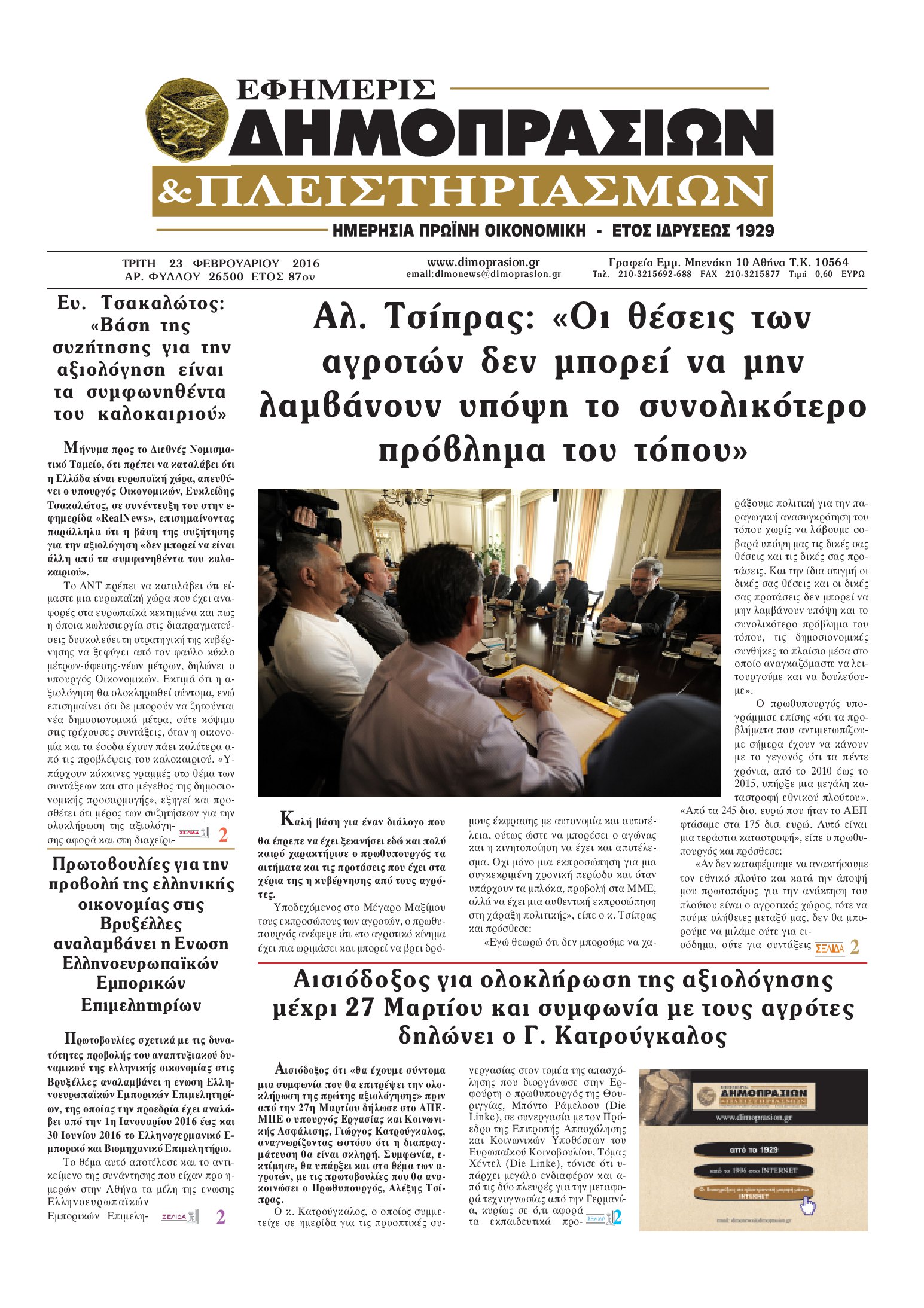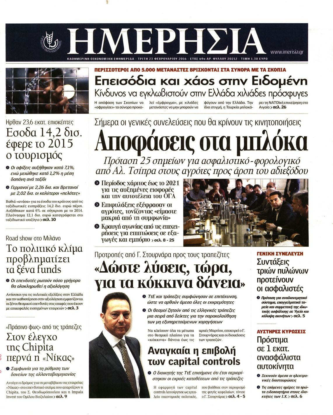 Οι οικονομικές εφημερίδες 23/2/2016 Enikos Newsroom 06:20, Τρίτη 23 Φεβρουαρίου 2016 Media Διαβάστε τα σημερινά πρωτοσέλιδα των οικονομικών εφημερίδων: ΟΙΚΟΝΟΜΙΚΕΣ ΕΦΗΜΕΡΙΔΕΣ ΠΡΩΤΟΣΕΛΙΔΑ Μοιράσου το: σχολίασε κι εσύ (0 σχόλια) Ακολουθήστε το enikos.gr στο Google News και μάθετε πρώτοι όλες τις ειδήσεις Δείτε όλες τις τελευταίες ειδήσεις από την Ελλάδα και τον Κόσμο στο enikos.gr Ειδήσεις Ροή Ειδήσεων 6 ώρες πριν Εκτός ευρωομάδας ΣΥΡΙΖΑ ο Νίκος Παππάς μετά την επίθεση στον δημοσιογράφο Νίκο Γιαννόπουλο – Η μήνυση και οι νέες δηλώσεις 6 ώρες πριν «Αγριεύουν» οι αγρότες: «Δεν συντρέχει λόγος συνάντησης με τον πρωθυπουργό» – Ώρα αποφάσεων στη σύσκεψη της Πέμπτης 6 ώρες πριν Κυψέλη: Χωρίς την οικογένειά της δίπλα της απολογήθηκε η 16χρονη – «Της είχε επιτεθεί κάποιος για να την βιάσει, φοβήθηκε και κυκλοφορούσε με μαχαίρι» 6 ώρες πριν Politico: Το πρόβλημα της Ευρώπης δεν είναι το Βέλγιο αλλά ο Ντόναλντ Τραμπ 8 ώρες πριν Αλεξανδρούπολη: Πολυοργανική ανεπάρκεια λόγω υποσιτισμού η αιτία θανάτου του 3χρονου αγοριού 6 ώρες πριν Μυστήριο με τεράστιες κυκλικές πέτρες 200 κιλών – Ανακαλύφθηκαν τυχαία κατά τη διάρκεια οδικών έργων και κανείς δεν ξέρει από πού προέρχονται 7 ώρες πριν Ύπνος: Ειδικός εξηγεί τον πραγματικό λόγο που ξυπνάτε στις 4 τα ξημερώματα – Ο ρόλος των ορμονών και του κιρκάδιου ρυθμού 8 ώρες πριν Αριθμολογία: Οι άνθρωποι που έχουν γεννηθεί αυτές τις 4 ημερομηνίες, είναι τρυφεροί και αγαπούν ανιδιοτελώς 20 ώρες πριν 20 χρόνια τα Χριστούγεννα ξεκινούν στα Public με μεγάλη ποικιλία σε δώρα! 5 λεπτά πριν Αυστραλία: Κυβερνητική δέσμευση για αυστηρότερα μέτρα κατά της υποκίνησης μίσους 20 λεπτά πριν Ντόναλντ Τραμπ: Παρουσίασε τα επιτεύγματα της διακυβέρνησής του – Σκληρή κριτική στον Τζο Μπάιντεν 35 λεπτά πριν Κτηνοτρόφοι: Με δάκρυα στα μάτια ζουν τον εφιάλτη των άδειων στάβλων – «Καταστράφηκαν οι ζωές μας» 50 λεπτά πριν Νέο αμερικανικό πλήγμα σε σκάφος που φέρεται να μετέφερε ναρκωτικά στον Ειρηνικό – Τέσσερις νεκροί 1 ώρα πριν Αλ Τσαντίρι Νιουζ: «Λύγισε» ο Δημήτρης Λάλος για τον Δημήτρη Ήμελλο – «Τον μνημονεύω, να ‘ναι καλά εκεί που είναι» ENIKOS NETWORK Αϋπνία: Το κόλπο που θα σας βοηθήσει να κοιμηθείτε απόψε – Είναι απλό και έχει αποτέλεσμα 2,6 εκατομμύρια πολίτες έχουν ήδη εμβολιαστεί κατά της γρίπης ΕΛΣΤΑΤ: Τι δείχνουν τα νέα στοιχεία για τις ηλεκτρονικές παραγγελίες των επιχειρήσεων ΚΕΠΕ: Οι 3 διακριτές συμβολές των ΜμΕ και της μεταποίησης στην ελληνική οικονομία Χαρτογραφώντας το «σημείο χωρίς επιστροφή»: Για πρώτη φορά αποκαλύπτεται με λεπτομέρεια το ακανθώδες όριο της ατμόσφαιρας τ... Η Google καταργεί τη λειτουργία «dark web report» – Πώς θα μπορούν οι χρήστες να διαγράφουν τα δεδομένα τους περισσότερα 02:30 , Πέμπτη 18 Δεκεμβρίου 2025 Αλ Τσαντίρι Νιουζ: Η κόρη της Πάολα στο κοινό – Η ατάκα Λαζόπουλου που την έκανε να «κοκκινήσει» Γιορτινή διάθεση και ευχάριστες στιγμές γέμισε η αποψινή, τελευταία για το 2025, εκπομπή του «... 22:24 , Τετάρτη 17 Δεκεμβρίου 2025 Το Σπίτι Δίπλα Στο Ποτάμι: Σε κίνδυνο η υγεία του Απόστολου – Τι θα δούμε απόψε “Το Σπίτι Δίπλα στο Ποτάμι” ξετυλίγει το νήμα της ζωής των πέντε αδελφών με καταισ... 21:14 , Τετάρτη 17 Δεκεμβρίου 2025 Παιχνίδια Εκδίκησης: Θα καταφέρει ο Χρήστος να κλονίσει την εμπιστοσύνη της Μάγιας απέναντι στον Άγη; Τα «Παιχνίδια Εκδίκησης» έρχονται απόψε στις 22:30, στον Αντ1, με το τελευταίο επεισόδιο της χ... 20:57 , Τετάρτη 17 Δεκεμβρίου 2025 Άγιος Έρωτας: Η Χλόη καταθ