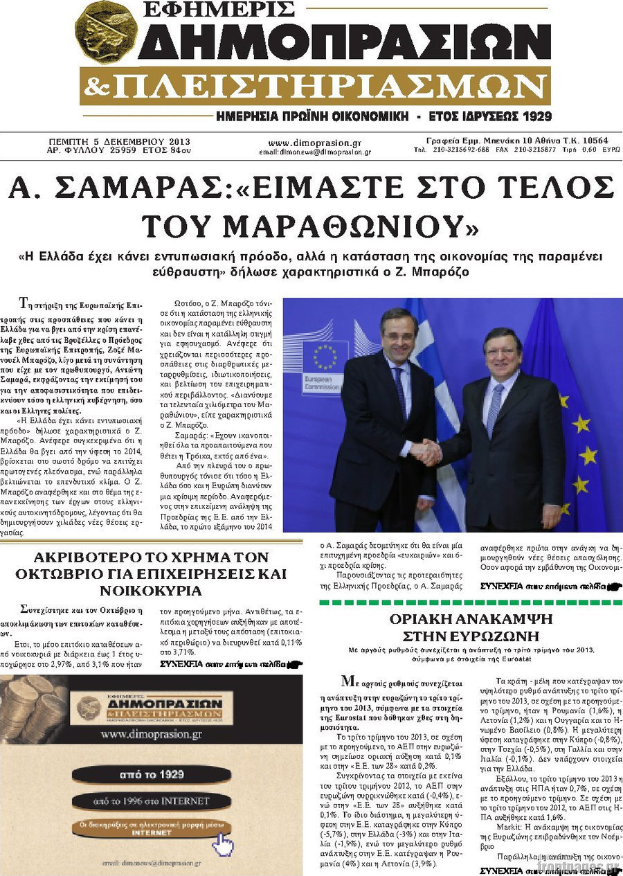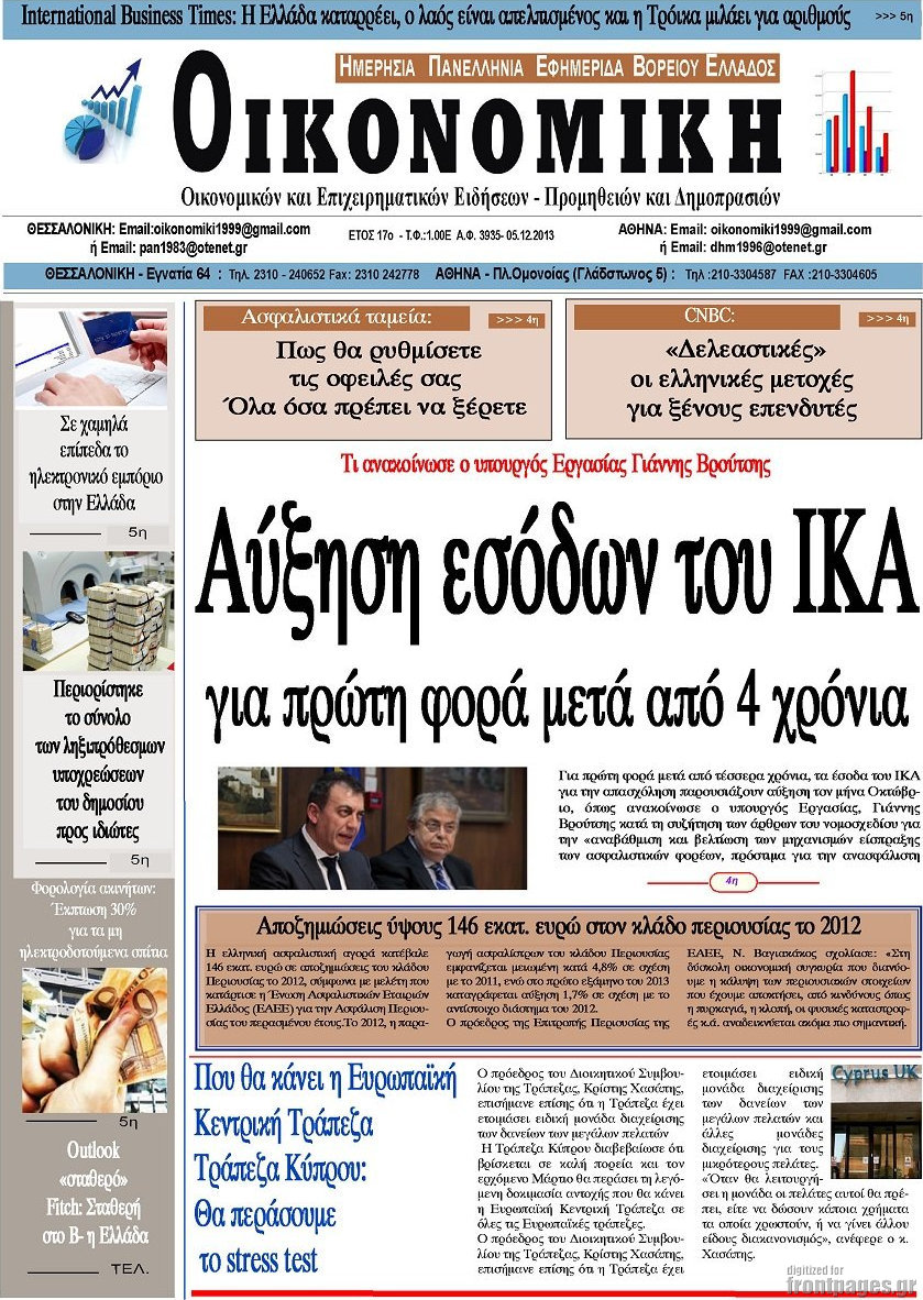 Οι oικονομικές εφημερίδες Enikos Newsroom 08:34, Πέμπτη 05 Δεκεμβρίου 2013 Media Οι oικονομικές εφημερίδες Διαβάστε τα πρωτοσέλιδα των οικονομικών εφημερίδων: ΕΦΗΜΕΡΙΔΕΣ ΠΡΩΤΟΣΕΛΙΔΑ Μοιράσου το: σχολίασε κι εσύ (0 σχόλια) Ακολουθήστε το enikos.gr στο Google News και μάθετε πρώτοι όλες τις ειδήσεις Δείτε όλες τις τελευταίες ειδήσεις από την Ελλάδα και τον Κόσμο στο enikos.gr Ειδήσεις Ροή Ειδήσεων 4 ώρες πριν Εκτός ευρωομάδας ΣΥΡΙΖΑ ο Νίκος Παππάς μετά την επίθεση στον δημοσιογράφο Νίκο Γιαννόπουλο – Η μήνυση και οι νέες δηλώσεις 4 ώρες πριν «Αγριεύουν» οι αγρότες: «Δεν συντρέχει λόγος συνάντησης με τον πρωθυπουργό» – Ώρα αποφάσεων στη σύσκεψη της Πέμπτης 4 ώρες πριν Κυψέλη: Χωρίς την οικογένειά της δίπλα της απολογήθηκε η 16χρονη – «Της είχε επιτεθεί κάποιος για να την βιάσει, φοβήθηκε και κυκλοφορούσε με μαχαίρι» 4 ώρες πριν Politico: Το πρόβλημα της Ευρώπης δεν είναι το Βέλγιο αλλά ο Ντόναλντ Τραμπ 5 ώρες πριν Αλεξανδρούπολη: Πολυοργανική ανεπάρκεια λόγω υποσιτισμού η αιτία θανάτου του 3χρονου αγοριού 4 ώρες πριν Μυστήριο με τεράστιες κυκλικές πέτρες 200 κιλών – Ανακαλύφθηκαν τυχαία κατά τη διάρκεια οδικών έργων και κανείς δεν ξέρει από πού προέρχονται 5 ώρες πριν Ύπνος: Ειδικός εξηγεί τον πραγματικό λόγο που ξυπνάτε στις 4 τα ξημερώματα – Ο ρόλος των ορμονών και του κιρκάδιου ρυθμού 6 ώρες πριν Αριθμολογία: Οι άνθρωποι που έχουν γεννηθεί αυτές τις 4 ημερομηνίες, είναι τρυφεροί και αγαπούν ανιδιοτελώς 18 ώρες πριν 20 χρόνια τα Χριστούγεννα ξεκινούν στα Public με μεγάλη ποικιλία σε δώρα! 10 λεπτά πριν Σουδάν: Επιδρομή drone σε χωριό του Νότιου Κορντοφάν – Οκτώ νεκροί 26 λεπτά πριν Αλ Τσαντίρι Νιουζ: Η κόρη της Πάολα στο κοινό – Η ατάκα Λαζόπουλου που την έκανε να «κοκκινήσει» 40 λεπτά πριν Ρωσία: Ουκρανικές δυνάμεις έπληξαν πλοίο στο λιμάνι του Ροστόφ – Αναφορές για θύματα 56 λεπτά πριν Βρυξέλλες: Νυχτερινό… μπλόκο αγροτών μπροστά από το κτίριο της Ευρωπαϊκής Επιτροπής – Πάνω από 100 τρακτέρ απέκλεισαν την λεωφόρο 1 ώρα πριν Euroleague: Απρόσμενη ήττα για την Μονακό του Βασίλη Σπανούλη – Η βαθμολογία μετά το τέλος της 16ης αγωνιστικής ENIKOS NETWORK Αϋπνία: Το κόλπο που θα σας βοηθήσει να κοιμηθείτε απόψε – Είναι απλό και έχει αποτέλεσμα 2,6 εκατομμύρια πολίτες έχουν ήδη εμβολιαστεί κατά της γρίπης ΕΛΣΤΑΤ: Τι δείχνουν τα νέα στοιχεία για τις ηλεκτρονικές παραγγελίες των επιχειρήσεων ΚΕΠΕ: Οι 3 διακριτές συμβολές των ΜμΕ και της μεταποίησης στην ελληνική οικονομία Χαρτογραφώντας το «σημείο χωρίς επιστροφή»: Για πρώτη φορά αποκαλύπτεται με λεπτομέρεια το ακανθώδες όριο της ατμόσφαιρας τ... Η Google καταργεί τη λειτουργία «dark web report» – Πώς θα μπορούν οι χρήστες να διαγράφουν τα δεδομένα τους περισσότερα 02:30 , Πέμπτη 18 Δεκεμβρίου 2025 Αλ Τσαντίρι Νιουζ: Η κόρη της Πάολα στο κοινό – Η ατάκα Λαζόπουλου που την έκανε να «κοκκινήσει» Γιορτινή διάθεση και ευχάριστες στιγμές γέμισε η αποψινή, τελευταία για το 2025, εκπομπή του «... 22:24 , Τετάρτη 17 Δεκεμβρίου 2025 Το Σπίτι Δίπλα Στο Ποτάμι: Σε κίνδυνο η υγεία του Απόστολου – Τι θα δούμε απόψε “Το Σπίτι Δίπλα στο Ποτάμι” ξετυλίγει το νήμα της ζωής των πέντε αδελφών με καταισ... 21:14 , Τετάρτη 17 Δεκεμβρίου 2025 Παιχνίδια Εκδίκησης: Θα καταφέρει ο Χρήστος να κλονίσει την εμπιστοσύνη της Μάγιας απέναντι στον Άγη; Τα «Παιχνίδια Εκδίκησης» έρχονται απόψε στις 22:30, στον Αντ1, με το τελευταίο επεισόδιο της χ... 20:57 , Τετάρτη 17 Δεκεμβρίου 2025 Άγιος Έρωτας: Η Χλόη καταθέτει εναντίον τ