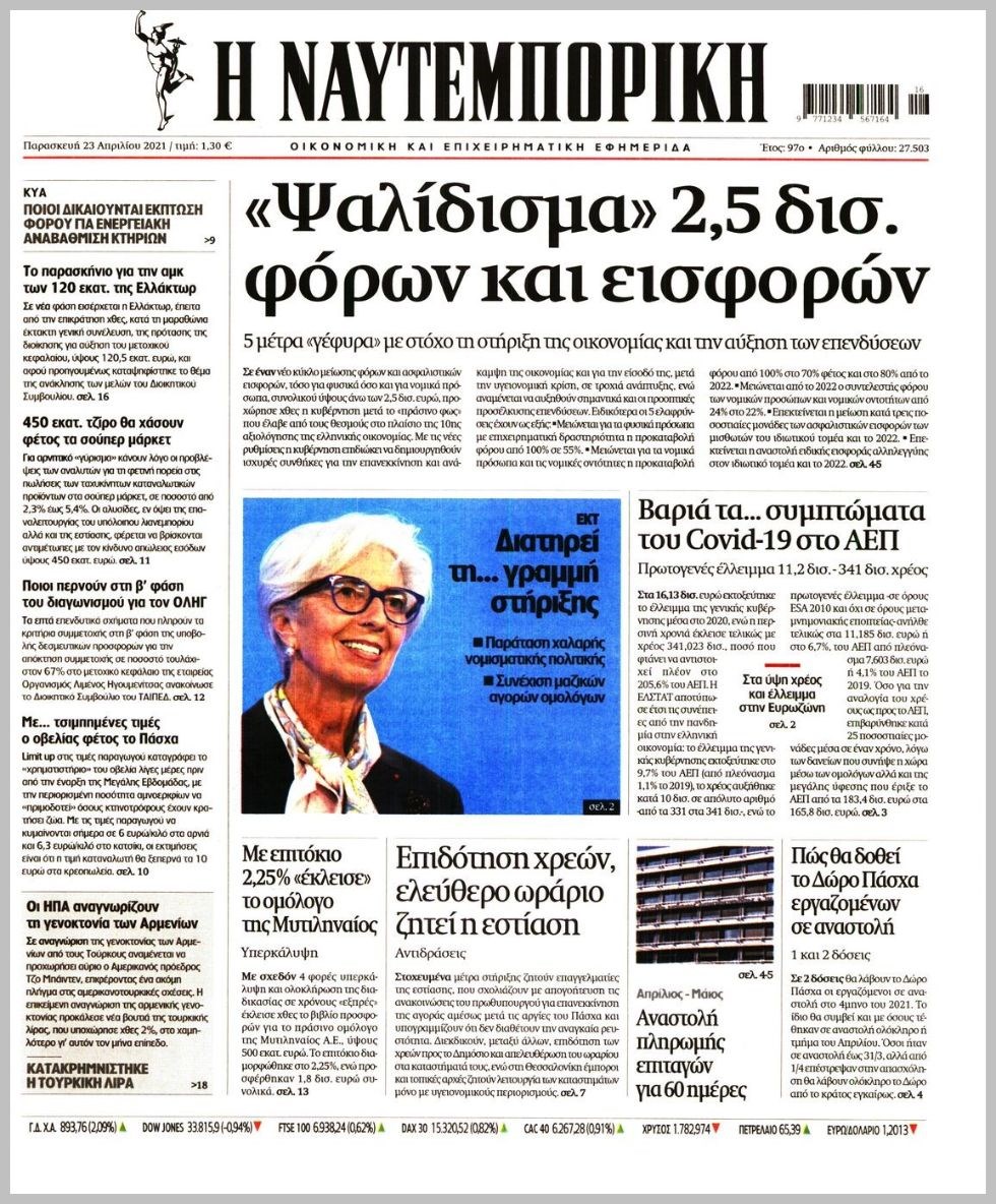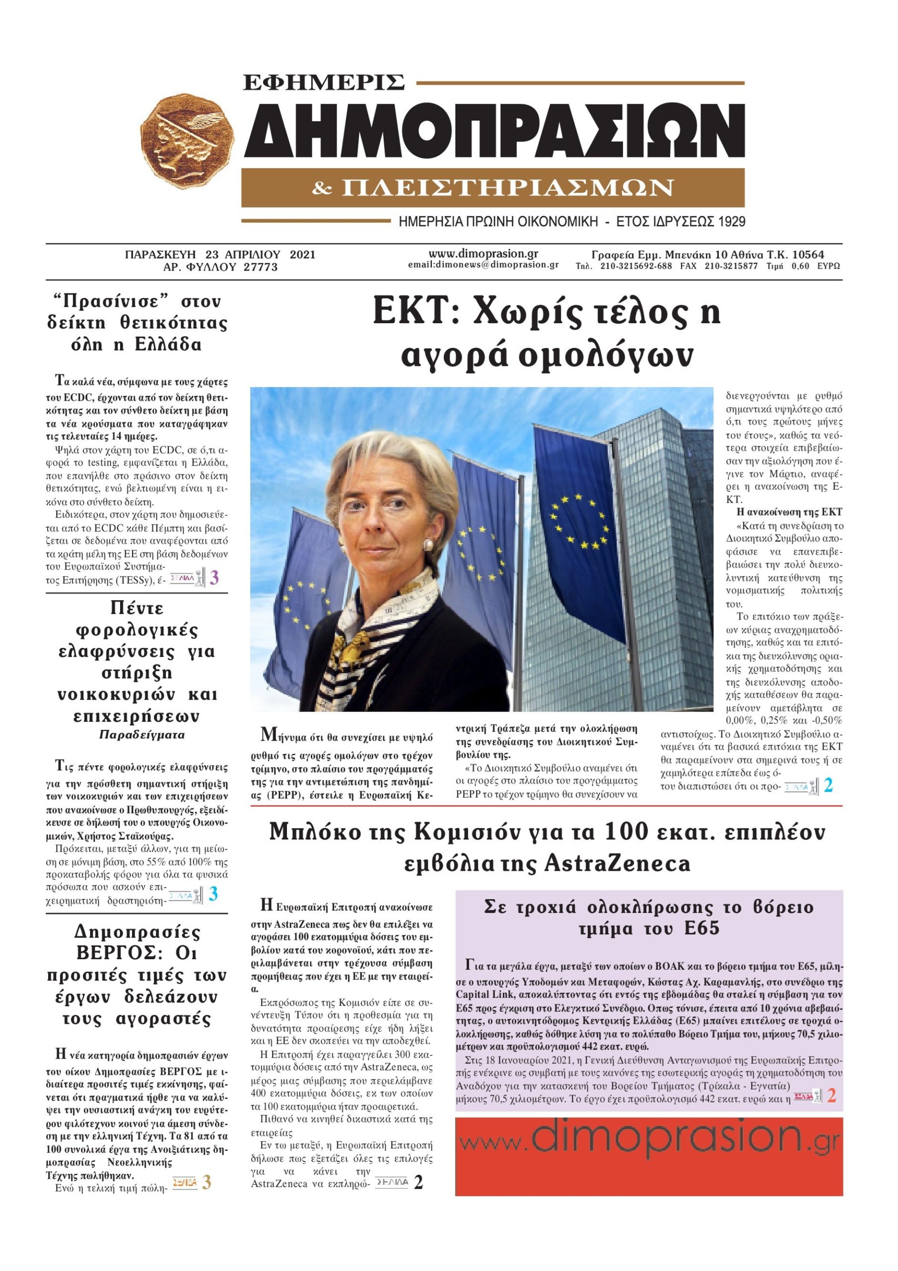 Οι οικονομικές εφημερίδες 23/4/2021 Διονύσης Νίκκας 06:36, Παρασκευή 23 Απριλίου 2021 Media Διαβάστε τα πρωτοσέλιδα των οικονομικών εφημερίδων… ΟΙΚΟΝΟΜΙΚΕΣ ΕΦΗΜΕΡΙΔΕΣ Μοιράσου το: σχολίασε κι εσύ (0 σχόλια) Ακολουθήστε το enikos.gr στο Google News και μάθετε πρώτοι όλες τις ειδήσεις Δείτε όλες τις τελευταίες ειδήσεις από την Ελλάδα και τον Κόσμο στο enikos.gr Ειδήσεις Ροή Ειδήσεων 1 ώρα πριν Ευρωπαϊκή Ένωση: Συμφωνία για δάνειο 90 δισ. ευρώ στην Ουκρανία τη διετία 2026-2027 6 ώρες πριν ΟΠΕΚΕΠΕ: Προφυλακιστέος ο φερόμενος αρχηγός και ο λογιστής της εγκληματικής οργάνωσης 7 ώρες πριν Αυξάνουν την πίεση προς την κυβέρνηση οι αγρότες: Κλείνουν παρακαμπτήριους και ανοίγουν διόδια – Τι θα γίνει τις γιορτές 7 ώρες πριν Φοινικούντα: Το Σάββατο απολογείται ο 30χρονος γιος γνωστού επιχειρηματία της Πλάκας που παραδόθηκε – Όσα είπε στους αστυνομικούς και ο ρόλος του στο έγκλημα 5 ώρες πριν ΑΕΚ – Κραϊόβα 3-2: Επική ανατροπή και πρόκριση στους «16» του Conference League η Ένωση 6 ώρες πριν Αρχαιολόγοι ανακάλυψαν ρωμαϊκά τεχνουργήματα από μια πόλη που δεν υπήρξε ποτέ – Τα τρία εντυπωσιακά κτίρια και ο αμφορέας με τις… σαρδέλες 7 ώρες πριν Ύπνος: Η απλή βραδινή ρουτίνα για να προστατεύσετε τα μαλλιά σας από το κρύο κατά τη διάρκεια του χειμώνα 8 ώρες πριν Manifesting: Πώς να συναντήσετε τον σύντροφο της ζωής σας, ανάλογα με τον μήνα γέννησής σας 2 ημέρες πριν 20 χρόνια τα Χριστούγεννα ξεκινούν στα Public με μεγάλη ποικιλία σε δώρα! 2 λεπτά πριν Εφημερεύοντα φαρμακεία σε Αθήνα και Θεσσαλονίκη (19/12) 8 λεπτά πριν Η TikTok στις ΗΠΑ πωλείται σε Oracle, Silver Lake και MGX – Οι λεπτομέρειες του «deal» 17 λεπτά πριν Αλεξάντερ Λουκασένκο: Η Λευκορωσία βρίσκεται κοντά στην αποκατάσταση των σχέσεών της με τις ΗΠΑ 32 λεπτά πριν Αυστραλία: Κήρυξε την Κυριακή (21/12) ημέρα εθνικού πένθους για τη φονική επίθεση στην παραλία Μπόνταϊ 42 λεπτά πριν Ρόδος: Δάσκαλος καράτε καταδικάστηκε για ασέλγεια σε ανήλικες αθλήτριες – Μαρτυρίες για αγγίγματα σε ευαίσθητα σημεία ENIKOS NETWORK Σε περίοδο αυξημένης δραστηριότητας η γρίπη στην Ελλάδα-Μέτρα προστασίας από τον ΕΟΔΥ Σκέφτεστε συνέχεια συζητήσεις που έχετε κάνει; Τι σημαίνει αυτό, σύμφωνα με ειδικό Στεγαστικό: Τι λέει η ΠΟΜΙΔΑ για τα νέα μέτρα που ανακοίνωσε ο Κυριάκος Μητσοτάκης Λαγκάρντ: Αισιόδοξη για την ανάπτυξη της Ευρωζώνης, αβέβαιη για τον πληθωρισμό Χαρτογραφώντας το «σημείο χωρίς επιστροφή»: Για πρώτη φορά αποκαλύπτεται με λεπτομέρεια το ακανθώδες όριο της ατμόσφαιρας τ... Η Google καταργεί τη λειτουργία «dark web report» – Πώς θα μπορούν οι χρήστες να διαγράφουν τα δεδομένα τους περισσότερα 02:50 , Παρασκευή 19 Δεκεμβρίου 2025 GNTM: «Κλείδωσαν» οι τέσσερις φιναλίστ – Μεγάλη ανατροπή στις τελευταίες αποχωρήσεις Για προτελευταία φορά εμφανίστηκαν στο πλατό του GNTM οι φιναλίστ του φετινού κύκλου, το βράδυ... 17:45 , Πέμπτη 18 Δεκεμβρίου 2025 ROUK ZOUK: Εορταστικό επεισόδιο με καλεσμένους τους πρωταγωνιστές του «Γιατί ρε πατέρα» Το Σάββατο 20 Δεκεμβρίου στις 21:00, η Ζέτα Μακρυπούλια υποδέχεται εκλεκτούς ηθοποιούς που όλο... 17:20 , Πέμπτη 18 Δεκεμβρίου 2025 Άγιος έρωτας: Η Χριστίνα εξομολογείται στον πατέρα Νικόλαο, απόψε στις 21:00 στον Alpha Η Νότα αποφασίζει να εκδικηθεί τον Πέτρο και τον Στέφανο, για χάρη του Λούη, όμως τα πράγματα ... 16:50 , Πέμπτη 18 Δεκεμβρίου 2025 Να μ’ αγαπάς: Ζωή και Φωτεινή συμφιλιώνονται ως μάνα με κόρη, απόψε στις 20:00 Η ταυτότητα του Άγγελου αποκαλύπτεται στο νέο επεισόδιο της σειράς “Να μ’ αγαπάς... ΤΕΛΕΥΤΑΙΕ