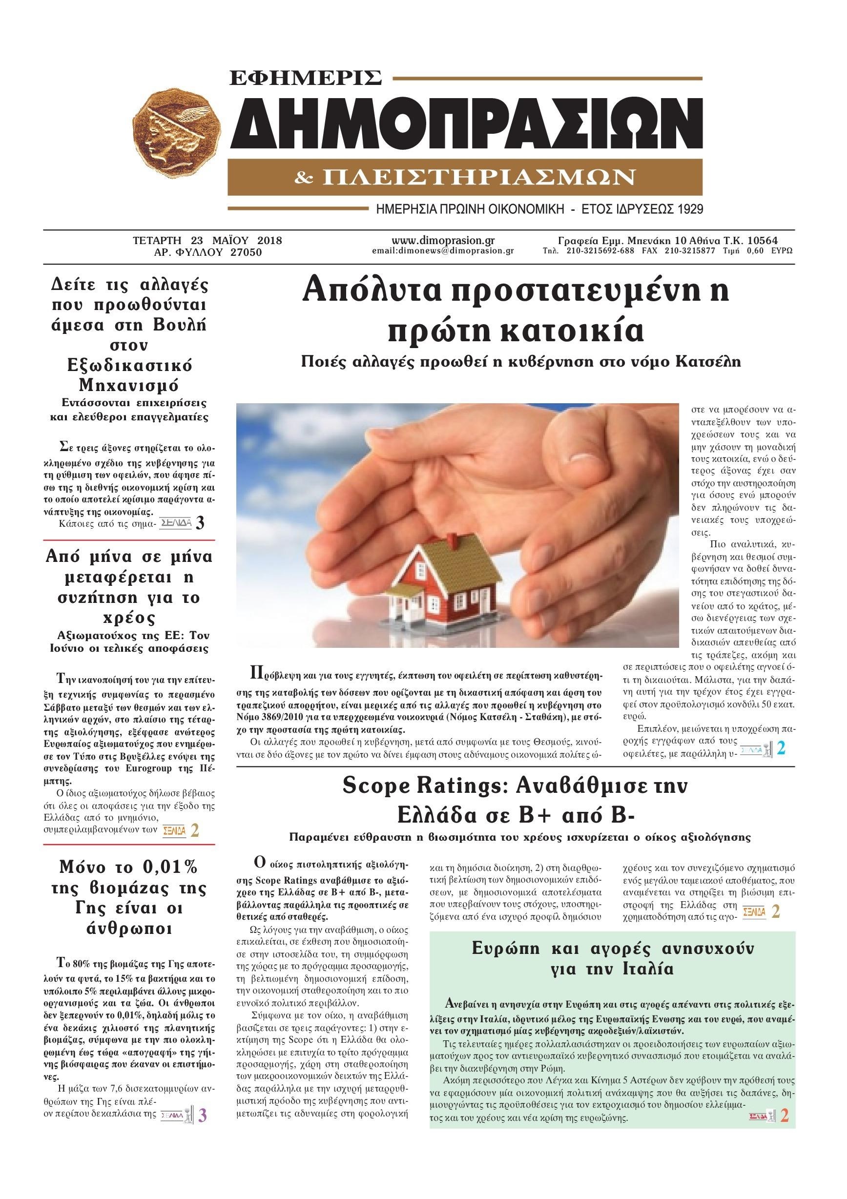 Οι οικονομικές εφημερίδες 23/5/2018 Κώστας Τεό 06:42, Τετάρτη 23 Μαΐου 2018 Media Διαβάστε τα σημερινά πρωτοσέλιδα των οικονομικών εφημερίδων: ΟΙΚΟΝΟΜΙΚΕΣ ΕΦΗΜΕΡΙΔΕΣ ΠΡΩΤΟΣΕΛΙΔΑ Μοιράσου το: σχολίασε κι εσύ (0 σχόλια) Ακολουθήστε το enikos.gr στο Google News και μάθετε πρώτοι όλες τις ειδήσεις Δείτε όλες τις τελευταίες ειδήσεις από την Ελλάδα και τον Κόσμο στο enikos.gr Ειδήσεις Ροή Ειδήσεων 2 ώρες πριν Δημοσκόπηση Metron Analysis: Στις 10 μονάδες η διαφορά ΝΔ-ΠΑΣΟΚ, στην 3η θέση η Πλεύση Ελευθερίας – 8 στους 10 στηρίζουν τον αγώνα των αγροτών 6 ώρες πριν Αγρότες: «Όχι στον διάλογο, μας εμπαίζει η κυβέρνηση» – Αποφάσισαν κλιμάκωση των κινητοποιήσεων, τι θα γίνει τα Χριστούγεννα 2 ώρες πριν Νίκος Παππάς στον ΑΝΤ1: «Δεν κρύβομαι – Μετά το συμβάν ακολούθησα κανονικά το πρόγραμμά μου» – ΒΙΝΤΕΟ 3 ώρες πριν Αθήνα: Εξαρθρώθηκε εγκληματική οργάνωση που διακινούσε ναρκωτικά σε μορφή σοκολάτας – Δύο τράπερ ανάμεσα στους 4 συλληφθέντες – ΒΙΝΤΕΟ 2 ώρες πριν Διαμαντής Καραναστάσης: Οδηγούσε υπό την επήρεια αλκοόλ – Του αφαιρέθηκε το δίπλωμα και του επιβλήθηκε πρόστιμο 350 ευρώ 2 ώρες πριν Manifesting: Πώς να συναντήσετε τον σύντροφο της ζωής σας, ανάλογα με τον μήνα γέννησής σας 4 ώρες πριν Γάμος: 11 ψυχρές αλλά ευγενικές φράσεις, που λέει ένας άνδρας όταν σκέφτεται τον χωρισμό 3 ώρες πριν Σφουγγάρισμα: Η συνήθεια που θα σας βοηθήσει να διατηρήσετε το σπίτι σας καθαρό και τακτοποιημένο 2 ημέρες πριν 20 χρόνια τα Χριστούγεννα ξεκινούν στα Public με μεγάλη ποικιλία σε δώρα! 3 λεπτά πριν Μπορεί ο Μαδούρο να αντέξει τον αποκλεισμό του Τραμπ; Τι θα χρειαστεί η Ουάσινγκτον για να τον ανατρέψει 7 λεπτά πριν Αρχαιολόγοι ανακάλυψαν ρωμαϊκά τεχνουργήματα από μια πόλη που δεν υπήρξε ποτέ – Τα τρία εντυπωσιακά κτίρια και ο αμφορέας με τις… σαρδέλες 9 λεπτά πριν Στο ΟΑΚΑ για το «Παναθηναϊκός – Χάποελ» η Κίμπερλι Γκίλφοϊλ – ΦΩΤΟ 16 λεπτά πριν Ούρσουλα φον ντερ Λάιεν: Μετατίθεται για τον Ιανουάριο η υπογραφή της εμπορικής συμφωνίας «ΕΕ-MERCOSUR» 21 λεπτά πριν Φοινικούντα: Το Σάββατο απολογείται ο 30χρονος γιος γνωστού επιχειρηματία της Πλάκας που παραδόθηκε – Όσα είπε στους αστυνομικούς και ο ρόλος του στο έγκλημα ENIKOS NETWORK Σε περίοδο αυξημένης δραστηριότητας η γρίπη στην Ελλάδα-Μέτρα προστασίας από τον ΕΟΔΥ Σκέφτεστε συνέχεια συζητήσεις που έχετε κάνει; Τι σημαίνει αυτό, σύμφωνα με ειδικό Λαγκάρντ: Αισιόδοξη για την ανάπτυξη της Ευρωζώνης, αβέβαιη για τον πληθωρισμό ΑΣΕΠ 2ΓΒ/2025: Σήμερα αρχίζει η υποβολή ενστάσεων – Πότε θα βγουν τα οριστικά αποτελέσματα Χαρτογραφώντας το «σημείο χωρίς επιστροφή»: Για πρώτη φορά αποκαλύπτεται με λεπτομέρεια το ακανθώδες όριο της ατμόσφαιρας τ... Η Google καταργεί τη λειτουργία «dark web report» – Πώς θα μπορούν οι χρήστες να διαγράφουν τα δεδομένα τους περισσότερα 17:45 , Πέμπτη 18 Δεκεμβρίου 2025 ROUK ZOUK: Εορταστικό επεισόδιο με καλεσμένους τους πρωταγωνιστές του «Γιατί ρε πατέρα» Το Σάββατο 20 Δεκεμβρίου στις 21:00, η Ζέτα Μακρυπούλια υποδέχεται εκλεκτούς ηθοποιούς που όλο... 17:20 , Πέμπτη 18 Δεκεμβρίου 2025 Άγιος έρωτας: Η Χριστίνα εξομολογείται στον πατέρα Νικόλαο, απόψε στις 21:00 στον Alpha Η Νότα αποφασίζει να εκδικηθεί τον Πέτρο και τον Στέφανο, για χάρη του Λούη, όμως τα πράγματα ... 16:50 , Πέμπτη 18 Δεκεμβρίου 2025 Να μ’ αγαπάς: Ζωή και Φωτεινή συμφιλιώνονται ως μάνα με κόρη, απόψε στις 20:00 Η ταυτότητα του Άγγελου αποκαλύπτεται στο νέο επεισόδιο της σειράς “Να μ’ αγαπάς... 15:52 , Πέμπτη 18 Δεκεμβρίου 2025 Το Σπίτι Δ
