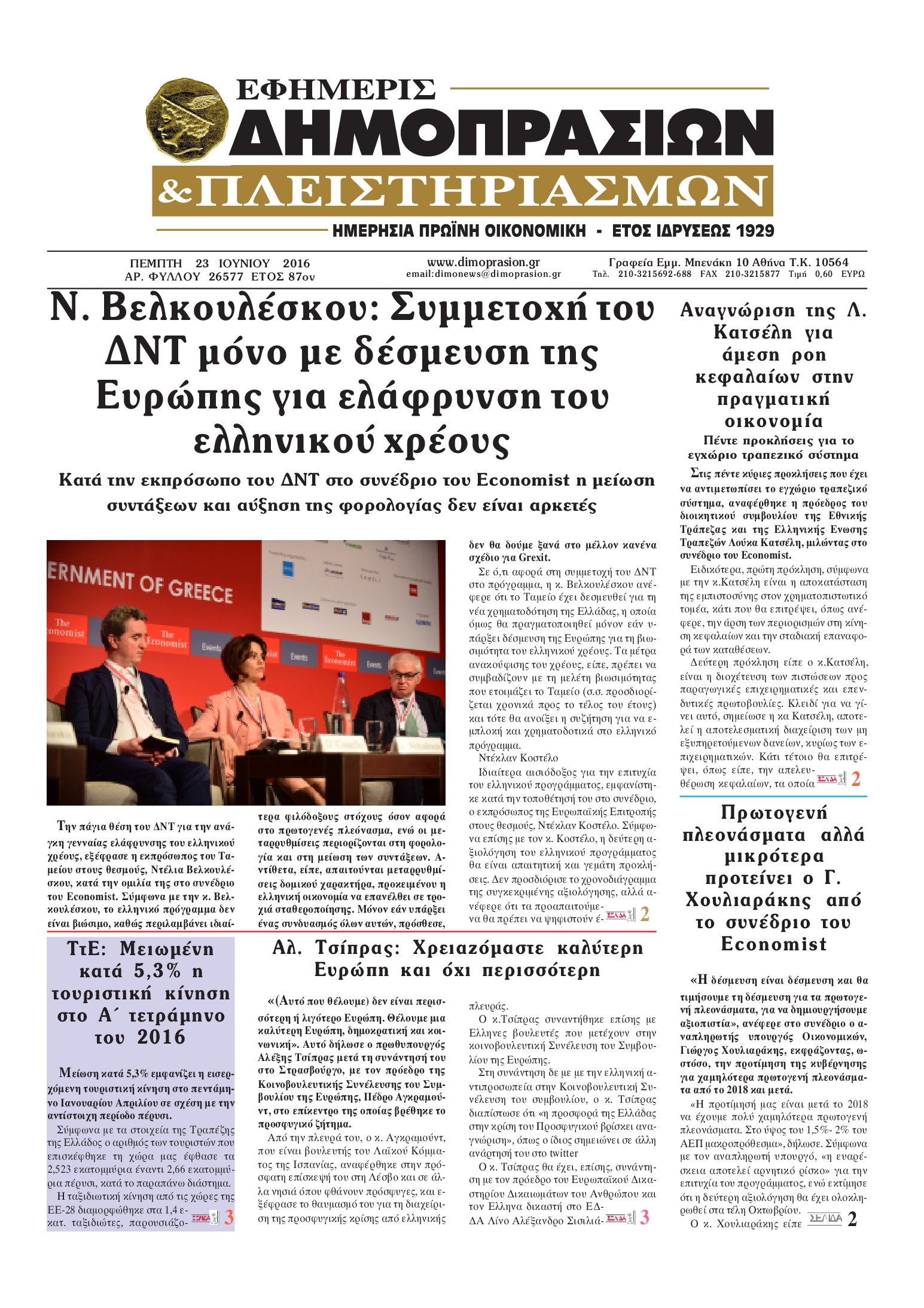 Oι οικονομικές εφημερίδες 23/6/2016 Enikos Newsroom 05:06, Πέμπτη 23 Ιουνίου 2016 Media Διαβάστε τα σημερινά πρωτοσέλιδα των οικονομικών εφημερίδων: ΟΙΚΟΝΟΜΙΚΕΣ ΕΦΗΜΕΡΙΔΕΣ ΠΡΩΤΟΣΕΛΙΔΑ Μοιράσου το: σχολίασε κι εσύ (0 σχόλια) Ακολουθήστε το enikos.gr στο Google News και μάθετε πρώτοι όλες τις ειδήσεις Δείτε όλες τις τελευταίες ειδήσεις από την Ελλάδα και τον Κόσμο στο enikos.gr Ειδήσεις Ροή Ειδήσεων 1 ώρα πριν Νίκος Παππάς: Άφαντος παραμένει ο ευρωβουλευτής μετά την επίθεση στον Νίκο Γιαννόπουλο 49 λεπτά πριν Μητσοτάκης: Η Ελλάδα στηρίζει την Ουκρανία και θα υποστηρίξει οποιαδήποτε λύση της παρέχει χρηματοδοτική σταθερότητα 2 ώρες πριν Συναγερμός και στην Ελλάδα για τη «σούπερ γρίπη»: Πόσο σοβαρή είναι και ποιοι θεωρούνται πιο ευάλωτοι – 3 ειδικοί μιλούν στο enikos.gr 1 ώρα πριν Με το βλέμμα στραμμένο στις Σέρρες οι αγρότες – Ο χάρτης των μπλόκων στη Βόρεια Ελλάδα 3 ώρες πριν Ντόναλντ Τραμπ: Το διάγγελμα, η πτώση στις δημοσκοπήσεις και το… χάος που κληρονόμησε από τον Μπάιντεν 2 ώρες πριν Τα 4 ζώδια που λαμβάνουν ένα ισχυρό σημάδι από το σύμπαν – «Αποκαλύπτεται κάτι που μπορεί να αλλάξει τη ζωή μας» 3 ώρες πριν Η σύζυγός του παραπονιέται για τα χρήματα που της δίνει για ψώνια κάθε μήνα – «Λέει ότι νιώθει φτωχή και της είπα να βρει δουλειά» 1 ώρα πριν Αν κάνετε συνεχώς αυτά τα 8 πράγματα με τα κατοικίδιά σας, σας λείπει η ανθρώπινη επαφή 1 ημέρα πριν 20 χρόνια τα Χριστούγεννα ξεκινούν στα Public με μεγάλη ποικιλία σε δώρα! 4 λεπτά πριν Καμμένος σε Καρυστιανού: Σας πολεμάνε, γιατί σας φοβούνται – Η ανάγκη για Οξυγόνο θα επικρατήσει 8 λεπτά πριν Σύνοδος Κορυφής: Δεν θα φύγουμε χωρίς απόφαση, λένε Κόστα και Φον Ντερ Λάιεν – «Καμπανάκι» Ζελένσκι για τη χρηματοδότηση της Ουκρανίας 14 λεπτά πριν Άνδρας 30 ετών αποκαλύπτει πώς έχασε 45 κιλά σε 1 χρόνο: «Ήμουν νωθρός και ανασφαλής – Πλέον νιώθω ικανός για οτιδήποτε» 20 λεπτά πριν Ανατροπή για τα ενοίκια: Παράταση 3 μηνών για την υποχρεωτική πληρωμή μέσω τράπεζας 26 λεπτά πριν Φωκίδα: «Τώρα θα πάω στους αγγέλους»: Τα τελευταία λόγια του άνδρα που βρέθηκε απανθρακωμένος στο αυτοκίνητό του ENIKOS NETWORK Τι περιλαμβάνει το σχέδιο της ΕΕ για την καρδιαγγειακή υγεία-Οι προτάσεις της Ελληνικής Καρδιολογικής Εταιρείας Σύγχρονες τεχνικές αποκατάστασης χόνδρινων βλαβών & διατήρησης της άρθρωσης Ειδικό επιδοτούμενο πρόγραμμα κατάρτισης από ΔΥΠΑ και ΕΛΓΟ – ΔΗΜΗΤΡΑ: Έως αύριο οι ενστάσεις – Όσα πρέπει να γνωρίζετε Συντάξεις Ιανουαρίου 2026: Ποια ταμεία πιστώνουν σήμερα τα ποσά Χαρτογραφώντας το «σημείο χωρίς επιστροφή»: Για πρώτη φορά αποκαλύπτεται με λεπτομέρεια το ακανθώδες όριο της ατμόσφαιρας τ... Η Google καταργεί τη λειτουργία «dark web report» – Πώς θα μπορούν οι χρήστες να διαγράφουν τα δεδομένα τους περισσότερα 08:00 , Πέμπτη 18 Δεκεμβρίου 2025 Την Κυριακή με τη Realnews: Δωροεπιταγή 10€ Δωροεπιταγή αξίας 10€ για αγορές άνω των 60€ από τα πολυκαταστήματα FactoryOutlet H προσφορά ι... 07:50 , Πέμπτη 18 Δεκεμβρίου 2025 «Το σόι σου»: Backstage στα γυρίσματα για το εορταστικό επεισόδιο «Το σόι σου» φορά τα γιορτινά του για τα Χριστούγεννα και η Όλγα Λαφαζάνη, με την κάμερα του «... 07:36 , Πέμπτη 18 Δεκεμβρίου 2025 Οι αθλητικές μεταδόσεις 18/12/2025 – Πού θα δείτε τον αγώνα της ΑΕΚ με την Κραϊόβα για το Conference League Τα ματς ΑΕΚ – Ουνιβερσιτάτεα Κραϊόβα για το Conference League και Παναθηναϊκός – Χάποελ Τελ Αβ... 05:48 , Πέμπτη 18 Δεκεμβρίου 2025 Οι οικονομικές εφημερίδες 18/12/2025 Διαβάστε τα πρωτοσέλιδα από τις οικονομικές εφημε