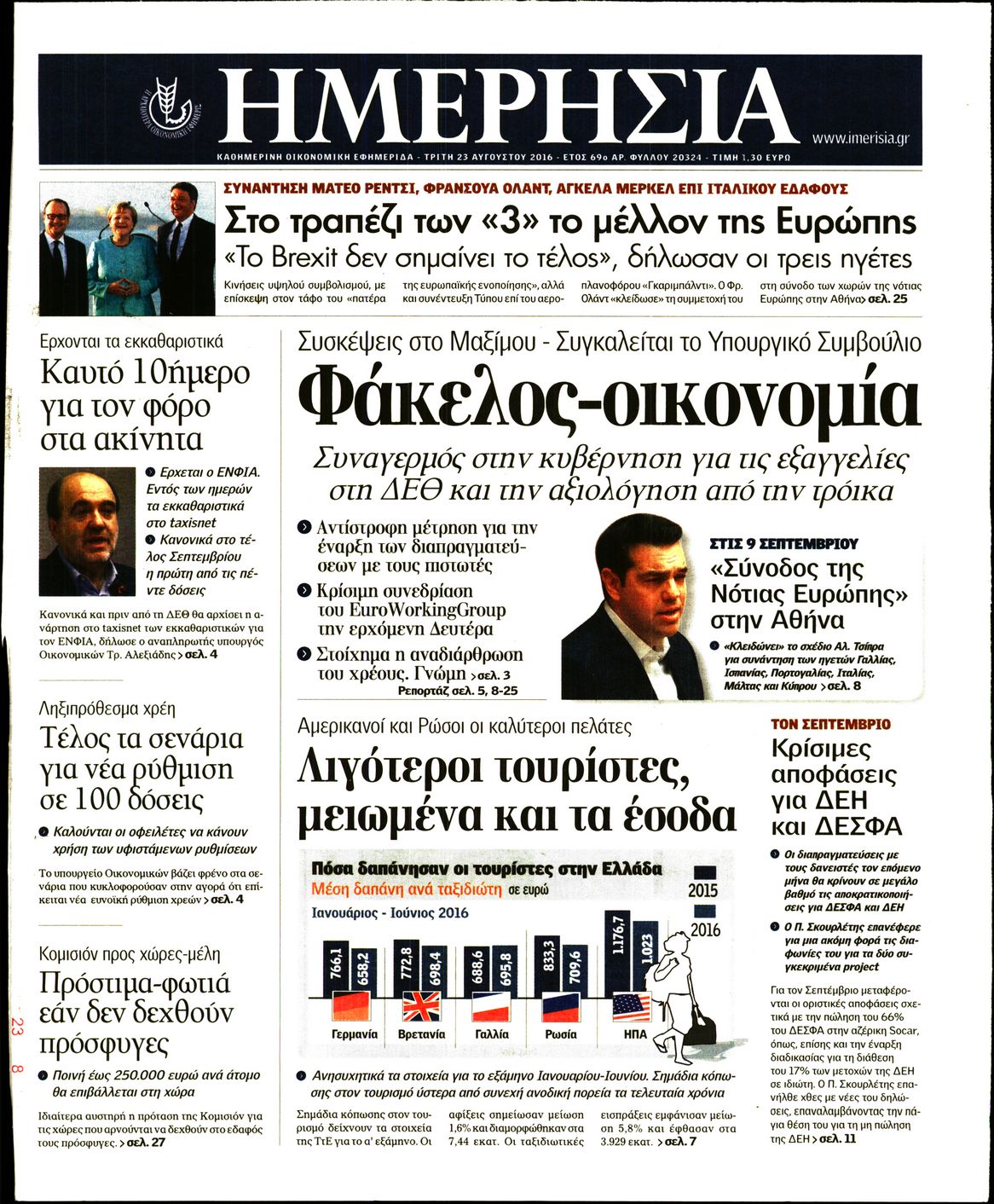 Οι οικονομικές εφημερίδες 23/8/2016 Enikos Newsroom 05:30, Τρίτη 23 Αυγούστου 2016 Media Διαβάστε τα σημερινά πρωτοσέλιδα των οικονομικών εφημερίδων: ΟΙΚΟΝΟΜΙΚΕΣ ΕΦΗΜΕΡΙΔΕΣ ΠΡΩΤΟΣΕΛΙΔΑ Μοιράσου το: σχολίασε κι εσύ (0 σχόλια) Ακολουθήστε το enikos.gr στο Google News και μάθετε πρώτοι όλες τις ειδήσεις Δείτε όλες τις τελευταίες ειδήσεις από την Ελλάδα και τον Κόσμο στο enikos.gr Ειδήσεις Ροή Ειδήσεων 2 ώρες πριν Πούτιν: «Ανοησίες» και «υστερίες» οι ισχυρισμοί της Ευρώπης για πιθανή σύγκρουση με τη Ρωσία – «Κάνουν πλύση εγκεφάλου» 6 ώρες πριν Έρευνα MRB: Η πρόθεση ψήφου και τα σημαντικότερα προβλήματα – Οι «λέξεις» που εκφράζουν τους πολίτες 3 ώρες πριν Αμοργός: «Θα προσπαθήσω να το κάνω κάθε μέρα» – Ποιος είναι ο αγρότης που έστησε μόνος του το πρώτο μπλόκο στο νησί 50 λεπτά πριν Τραγωδία στην Αλεξανδρούπολη: Παιδάκι 3 ετών μεταφέρθηκε νεκρό από τη μητέρα του στο νοσοκομείο 2 ώρες πριν Συνάντηση Μητσοτάκη με την Κ.Ο. της ΝΔ: Οι αφίξεις των βουλευτών, τα γλυκά και τα «πηγαδάκια» 6 ώρες πριν Τα 4 ζώδια που ξαναβρίσκουν τον εαυτό τους – «Μπαίνετε επιτέλους στην ουσία των πραγμάτων» 7 ώρες πριν 20 χρόνια τα Χριστούγεννα ξεκινούν στα Public με μεγάλη ποικιλία σε δώρα! 5 ώρες πριν «Δεν είχα κλάψει από τότε που διαγνώστηκα με καρκίνο, ώσπου ένα τηλεφώνημα με έκανε να λυγίσω» – Η συγκλονιστική εξομολόγηση ενός άνδρα 4 ώρες πριν Τα 7 σπάνια χαρακτηριστικά που κάνουν κάποιους ανθρώπους ακαταμάχητους 4 λεπτά πριν Νέο επεισόδιο στην Εξεταστική ανάμεσα σε Κωνσταντοπούλου και Συρεγγέλα – Διακόπηκε προσωρινά η συνεδρίαση 11 λεπτά πριν Εξαφάνιση 33χρονου γιατρού στην Κρήτη: Για απάτη κατηγορείται ο ιδιωτικός ερευνητής που συνελήφθη 16 λεπτά πριν Εξεταστική για ΟΠΕΚΕΠΕ-Μυλωνάκης: Διαχρονικές, διακομματικές οι παθογένειες – Τι είπε για Μπουκώρο και Βάρρα 22 λεπτά πριν Παναθηναϊκός: Θέλει τον Κέπα της Άρσεναλ δανεικό για 6 μήνες 28 λεπτά πριν Το Λαϊκό Λαχείο στον ρυθμό των Χριστουγέννων: Μοιράζει μέχρι και 1.000.000 ευρώ στην ειδική κλήρωση της Παρασκευής 19 Δεκεμβρίου ENIKOS NETWORK 5 πράγματα που αποφεύγει γαστρεντερολόγος για να μειώσει τον κίνδυνο καρκίνου του εντέρου Ανησυχητική αύξηση της υπέρτασης στα παιδιά – Πώς θα τα προστατέψουμε; Συντάξεις Ιανουαρίου 2026: Σε ποιους θα πιστωθούν την Πέμπτη τα χρήματα και τι αυξήσεις θα δοθούν – Δείτε αναλυτικά παραδεί... ΕΛΕΤΑΕΝ: Πόσα χρήματα θα δοθούν σε δήμους και νοικοκυριά από τις ΑΠΕ Σύγχρονος Νοστράδαμος: Προειδοποιεί για «μεγάλο γεγονός» τους επόμενους μήνες που θα συγκλονίσει τη Βρετανία και τον κόσμο Τεστ παρατηρητικότητας: Μπορείτε να βρείτε τις 3 διαφορές στις εικόνες με έναν πιγκουίνο σε 14 δευτερόλεπτα περισσότερα 12:35 , Τετάρτη 17 Δεκεμβρίου 2025 Μίρκα Παπακωνσταντίνου: «Δεν ήμουν αισιόδοξη για τα νούμερα – Είμαι ρεαλίστρια» Στα γυρίσματα του εορταστικού επεισοδίου της αγαπημένης σειράς “Το Σόι Σου”, βρέθηκε η κάμερα ... 12:12 , Τετάρτη 17 Δεκεμβρίου 2025 Ακούστε την εκπομπή του Νίκου Χατζηνικολάου 17/12/2025 Ακούστε την εκπομπή του Νίκου Χατζηνικολάου στον ραδιοφωνικό σταθμό RealFm 97,8, την Τετάρτη 1... 11:35 , Τετάρτη 17 Δεκεμβρίου 2025 Home Alone: Το σπίτι της ταινίας θα ανακαινιστεί – Επιστροφή στην αισθητική της δεκαετίας του ’90 Οι νέοι ιδιοκτήτες του πραγματικού σπιτιού που παρουσιάζεται στην κλασική ταινία του 1990 «Hom... 11:25 , Τετάρτη 17 Δεκεμβρίου 2025 Grand Hotel: Απόψε το τελευταίο επεισόδιο της χρονιάς – Όλα τα μυστικά μένουν εδώ Το τελευταίο επεισόδιο της χρονιάς της σειράς «