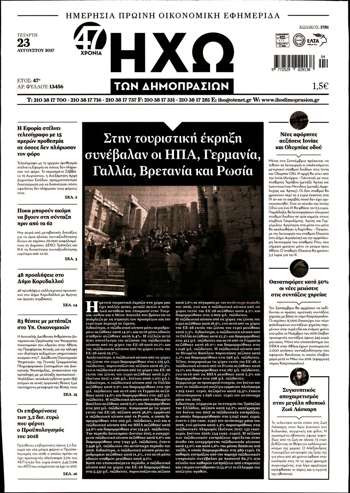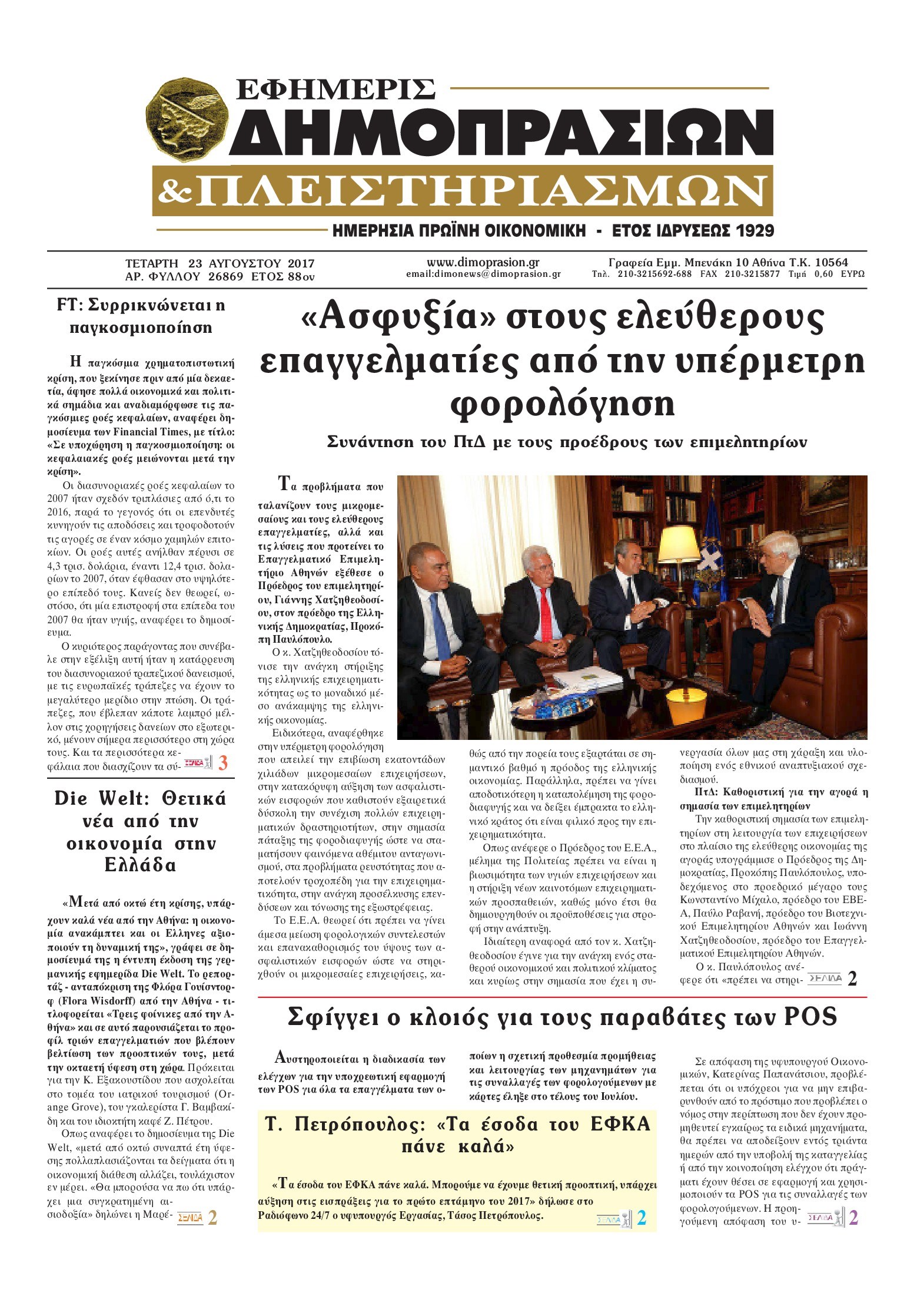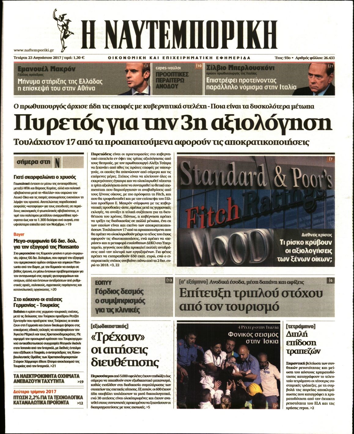 Οι οικονομικές εφημερίδες 23/8/2017 Enikos Newsroom 07:10, Τετάρτη 23 Αυγούστου 2017 Media Διαβάστε τα σημερινά πρωτοσέλιδα των οικονομικών εφημερίδων: ΟΙΚΟΝΟΜΙΚΕΣ ΕΦΗΜΕΡΙΔΕΣ ΠΡΩΤΟΣΕΛΙΔΑ Μοιράσου το: σχολίασε κι εσύ (0 σχόλια) Ακολουθήστε το enikos.gr στο Google News και μάθετε πρώτοι όλες τις ειδήσεις Δείτε όλες τις τελευταίες ειδήσεις από την Ελλάδα και τον Κόσμο στο enikos.gr Ειδήσεις Ροή Ειδήσεων 8 ώρες πριν Εκτός ευρωομάδας ΣΥΡΙΖΑ ο Νίκος Παππάς μετά την επίθεση στον δημοσιογράφο Νίκο Γιαννόπουλο – Η μήνυση και οι νέες δηλώσεις 8 ώρες πριν «Αγριεύουν» οι αγρότες: «Δεν συντρέχει λόγος συνάντησης με τον πρωθυπουργό» – Ώρα αποφάσεων στη σύσκεψη της Πέμπτης 8 ώρες πριν Κυψέλη: Χωρίς την οικογένειά της δίπλα της απολογήθηκε η 16χρονη – «Της είχε επιτεθεί κάποιος για να την βιάσει, φοβήθηκε και κυκλοφορούσε με μαχαίρι» 8 ώρες πριν Politico: Το πρόβλημα της Ευρώπης δεν είναι το Βέλγιο αλλά ο Ντόναλντ Τραμπ 10 ώρες πριν Αλεξανδρούπολη: Πολυοργανική ανεπάρκεια λόγω υποσιτισμού η αιτία θανάτου του 3χρονου αγοριού 1 ώρα πριν Καούρα: Το μπαχαρικό που είναι «εξίσου αποτελεσματικό» με την ομεπραζόλη, σύμφωνα με ειδικούς 2 ώρες πριν Τα ζώδια σήμερα, Πέμπτη 18 Δεκεμβρίου: Λέοντες, η καρδιά σας θέλει να εκφραστεί 8 ώρες πριν Μυστήριο με τεράστιες κυκλικές πέτρες 200 κιλών – Ανακαλύφθηκαν τυχαία κατά τη διάρκεια οδικών έργων και κανείς δεν ξέρει από πού προέρχονται 22 ώρες πριν 20 χρόνια τα Χριστούγεννα ξεκινούν στα Public με μεγάλη ποικιλία σε δώρα! 7 λεπτά πριν Εορτολόγιο: Ποιοι γιορτάζουν σήμερα 18 Δεκεμβρίου 18 λεπτά πριν Επιχειρήσεις: Έρχονται νέα μέτρα φορολογικών ελαφρύνσεων – Τα σχέδια για την προκαταβολή φόρου και το τέλος επιτηδεύματος 26 λεπτά πριν ΗΠΑ: Οριστική άρση κυρώσεων κατά της Συρίας – Ανοίγει ο δρόμος για επενδύσεις 34 λεπτά πριν Οι τελευταίες εξελίξεις στην εμπορική συμφωνία Ευρωπαϊκής Ένωσης – Mercosur 38 λεπτά πριν Ρεκόρ εσόδων για τον Παναμά από τα τέλη διέλευσης της Διώρυγας ENIKOS NETWORK Μπορείτε να εντοπίσετε το ποντικάκι που κρύβεται πίσω από όλα τα μανιτάρια; Μόνο όσοι έχουν τα μάτια γερακιού μπορούν να λύ... Το «λουλούδι σκαντζόχοιρος» που μπορεί να ενισχύσει το ανοσοποιητικό, να μειώσει τη φλεγμονή και να ρυθμίσει το σάκχαρο ΕΛΣΤΑΤ: Τι δείχνουν τα νέα στοιχεία για τις ηλεκτρονικές παραγγελίες των επιχειρήσεων ΚΕΠΕ: Οι 3 διακριτές συμβολές των ΜμΕ και της μεταποίησης στην ελληνική οικονομία Χαρτογραφώντας το «σημείο χωρίς επιστροφή»: Για πρώτη φορά αποκαλύπτεται με λεπτομέρεια το ακανθώδες όριο της ατμόσφαιρας τ... Η Google καταργεί τη λειτουργία «dark web report» – Πώς θα μπορούν οι χρήστες να διαγράφουν τα δεδομένα τους περισσότερα 05:48 , Πέμπτη 18 Δεκεμβρίου 2025 Οι οικονομικές εφημερίδες 18/12/2025 Διαβάστε τα πρωτοσέλιδα από τις οικονομικές εφημερίδες, σήμερα 18/12/2025. 05:43 , Πέμπτη 18 Δεκεμβρίου 2025 Οι αθλητικές εφημερίδες 18/12/2025 Διαβάστε τα πρωτοσέλιδα από τις αθλητικές εφημερίδες, σήμερα 18/12/2025. 05:38 , Πέμπτη 18 Δεκεμβρίου 2025 Οι πολιτικές εφημερίδες 18/12/2025 Διαβάστε τα πρωτοσέλιδα από τις πολιτικές εφημερίδες, σήμερα 18/12/2025. 05:22 , Πέμπτη 18 Δεκεμβρίου 2025 Το Ποντίκι σήμερα Πέμπτη 18/12/2025 Διαβάστε το πρωτοσέλιδο της εφημερίδας «Το Ποντίκι» σήμερα 18/12/2025. ΤΕΛΕΥΤΑΙΕΣ ΕΙΔΗΣΕΙΣ 7 λεπτά πριν Εορτολόγιο: Ποιοι γιορτάζουν σήμερα 18 Δεκεμβρίου 18 λεπτά πριν Επιχειρήσεις: Έρχονται νέα μέτρα φορολογικών... 26 λεπτά πριν ΗΠΑ: Οριστική άρση κυρώσεων κατά της Συρίας – Ανοίγει... 34 λεπτά πριν Οι τελευταίες εξελίξεις 