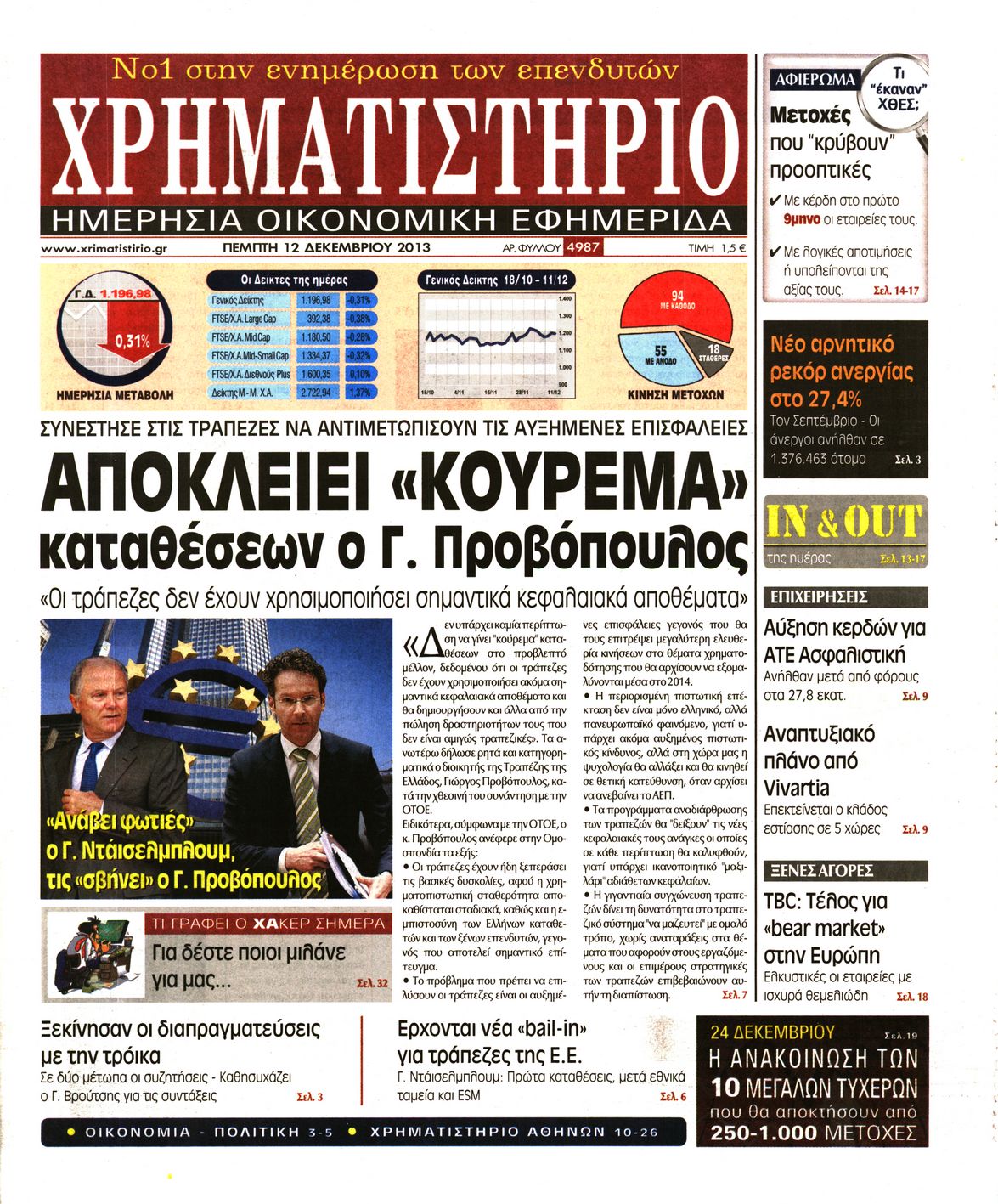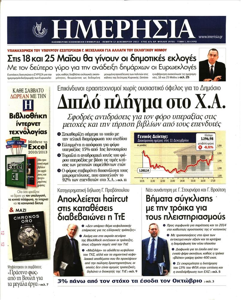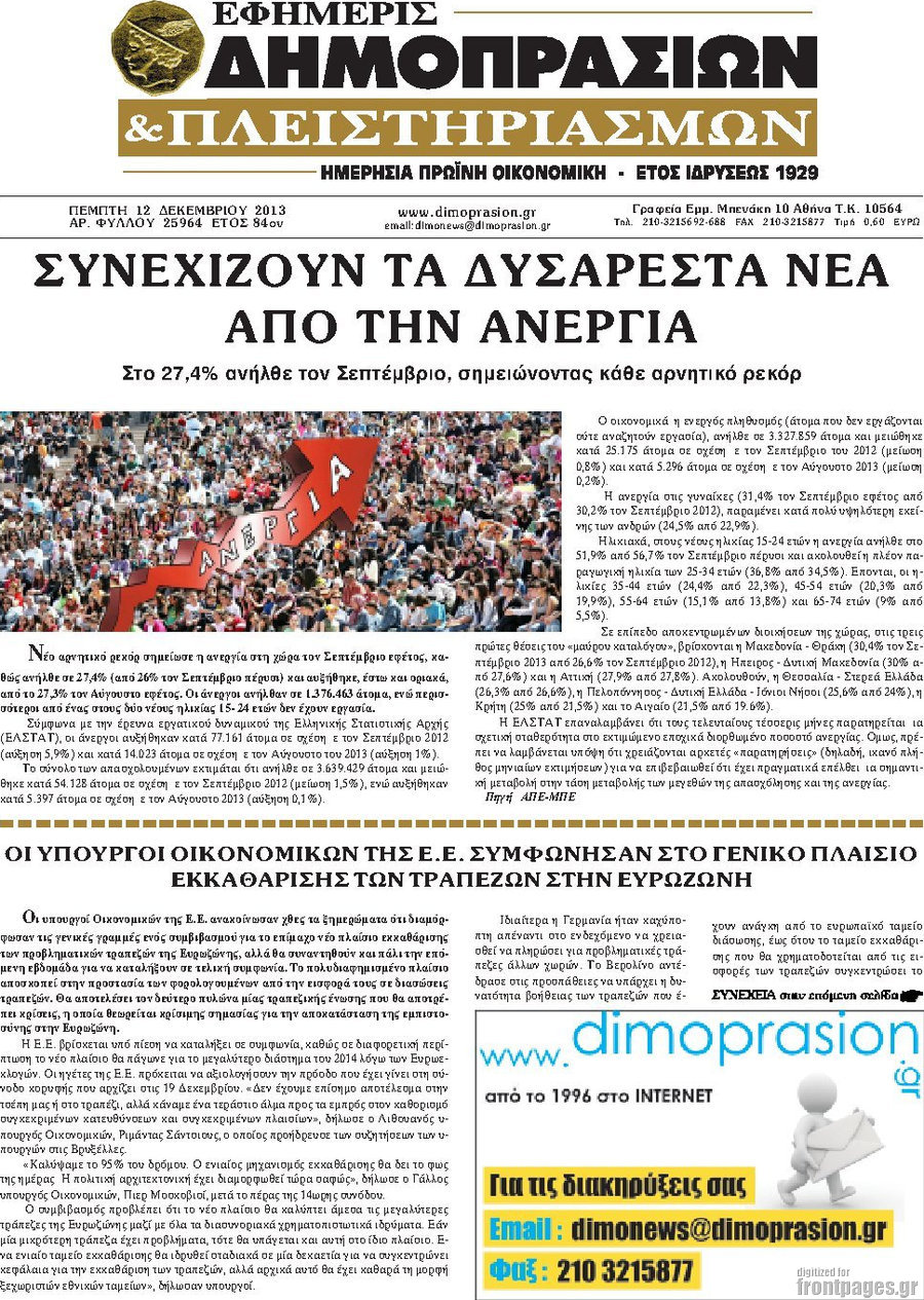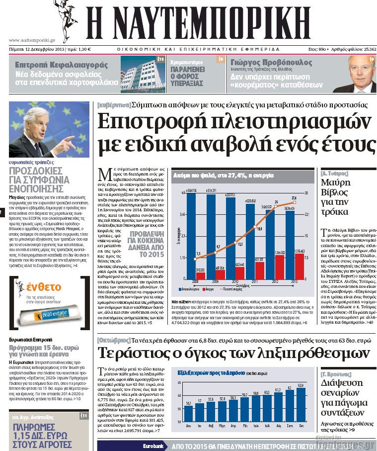 Οι oικονομικές εφημερίδες Enikos Newsroom 08:53, Πέμπτη 12 Δεκεμβρίου 2013 Media Οι oικονομικές εφημερίδες Διαβάστε τα πρωτοσέλιδα των οικονομικών εφημερίδων: ΕΦΗΜΕΡΙΔΕΣ ΟΙΚΟΝΟΜΙΚΕΣ ΕΦΗΜΕΡΙΔΕΣ ΠΡΩΤΟΣΕΛΙΔΑ Μοιράσου το: σχολίασε κι εσύ (0 σχόλια) Ακολουθήστε το enikos.gr στο Google News και μάθετε πρώτοι όλες τις ειδήσεις Δείτε όλες τις τελευταίες ειδήσεις από την Ελλάδα και τον Κόσμο στο enikos.gr Ειδήσεις Ροή Ειδήσεων 5 λεπτά πριν Φοροδιαφυγή: Ποιοι φορολογούμενοι κινδυνεύουν να πληρώσουν «τσουχτερά» πρόστιμα 8 ώρες πριν Εκτός ευρωομάδας ΣΥΡΙΖΑ ο Νίκος Παππάς μετά την επίθεση στον δημοσιογράφο Νίκο Γιαννόπουλο – Η μήνυση και οι νέες δηλώσεις 9 ώρες πριν «Αγριεύουν» οι αγρότες: «Δεν συντρέχει λόγος συνάντησης με τον πρωθυπουργό» – Ώρα αποφάσεων στη σύσκεψη της Πέμπτης 9 ώρες πριν Κυψέλη: Χωρίς την οικογένειά της δίπλα της απολογήθηκε η 16χρονη – «Της είχε επιτεθεί κάποιος για να την βιάσει, φοβήθηκε και κυκλοφορούσε με μαχαίρι» 8 ώρες πριν Politico: Το πρόβλημα της Ευρώπης δεν είναι το Βέλγιο αλλά ο Ντόναλντ Τραμπ 1 ώρα πριν Καούρα: Το μπαχαρικό που είναι «εξίσου αποτελεσματικό» με την ομεπραζόλη, σύμφωνα με ειδικούς 2 ώρες πριν Τα ζώδια σήμερα, Πέμπτη 18 Δεκεμβρίου: Λέοντες, η καρδιά σας θέλει να εκφραστεί 8 ώρες πριν Μυστήριο με τεράστιες κυκλικές πέτρες 200 κιλών – Ανακαλύφθηκαν τυχαία κατά τη διάρκεια οδικών έργων και κανείς δεν ξέρει από πού προέρχονται 22 ώρες πριν 20 χρόνια τα Χριστούγεννα ξεκινούν στα Public με μεγάλη ποικιλία σε δώρα! 3 λεπτά πριν Καιρός: Ηλιοφάνεια σήμερα με παροδικές νεφώσεις – Αναλυτική πρόγνωση ανά περιοχή 5 λεπτά πριν Φοροδιαφυγή: Ποιοι φορολογούμενοι κινδυνεύουν να πληρώσουν «τσουχτερά» πρόστιμα 18 λεπτά πριν Εορτολόγιο: Ποιοι γιορτάζουν σήμερα 18 Δεκεμβρίου 29 λεπτά πριν Επιχειρήσεις: Έρχονται νέα μέτρα φορολογικών ελαφρύνσεων – Τα σχέδια για την προκαταβολή φόρου και το τέλος επιτηδεύματος 36 λεπτά πριν ΗΠΑ: Οριστική άρση κυρώσεων κατά της Συρίας – Ανοίγει ο δρόμος για επενδύσεις ENIKOS NETWORK Μπορείτε να εντοπίσετε το ποντικάκι που κρύβεται πίσω από όλα τα μανιτάρια; Μόνο όσοι έχουν τα μάτια γερακιού μπορούν να λύ... Το «λουλούδι σκαντζόχοιρος» που μπορεί να ενισχύσει το ανοσοποιητικό, να μειώσει τη φλεγμονή και να ρυθμίσει το σάκχαρο Φοροδιαφυγή: Ποιοι φορολογούμενοι κινδυνεύουν να πληρώσουν «τσουχτερά» πρόστιμα ΕΛΣΤΑΤ: Τι δείχνουν τα νέα στοιχεία για τις ηλεκτρονικές παραγγελίες των επιχειρήσεων Χαρτογραφώντας το «σημείο χωρίς επιστροφή»: Για πρώτη φορά αποκαλύπτεται με λεπτομέρεια το ακανθώδες όριο της ατμόσφαιρας τ... Η Google καταργεί τη λειτουργία «dark web report» – Πώς θα μπορούν οι χρήστες να διαγράφουν τα δεδομένα τους περισσότερα 05:48 , Πέμπτη 18 Δεκεμβρίου 2025 Οι οικονομικές εφημερίδες 18/12/2025 Διαβάστε τα πρωτοσέλιδα από τις οικονομικές εφημερίδες, σήμερα 18/12/2025. 05:43 , Πέμπτη 18 Δεκεμβρίου 2025 Οι αθλητικές εφημερίδες 18/12/2025 Διαβάστε τα πρωτοσέλιδα από τις αθλητικές εφημερίδες, σήμερα 18/12/2025. 05:38 , Πέμπτη 18 Δεκεμβρίου 2025 Οι πολιτικές εφημερίδες 18/12/2025 Διαβάστε τα πρωτοσέλιδα από τις πολιτικές εφημερίδες, σήμερα 18/12/2025. 05:22 , Πέμπτη 18 Δεκεμβρίου 2025 Το Ποντίκι σήμερα Πέμπτη 18/12/2025 Διαβάστε το πρωτοσέλιδο της εφημερίδας «Το Ποντίκι» σήμερα 18/12/2025. ΤΕΛΕΥΤΑΙΕΣ ΕΙΔΗΣΕΙΣ 3 λεπτά πριν Καιρός: Ηλιοφάνεια σήμερα με παροδικές νεφώσεις –... 5 λεπτά πριν Φοροδιαφυγή: Ποιοι φορολογούμενοι κινδυνεύουν να... 18 λεπτά πριν Εορτολόγιο: Ποιοι γιορτάζουν σήμερα 18 Δεκεμβρί