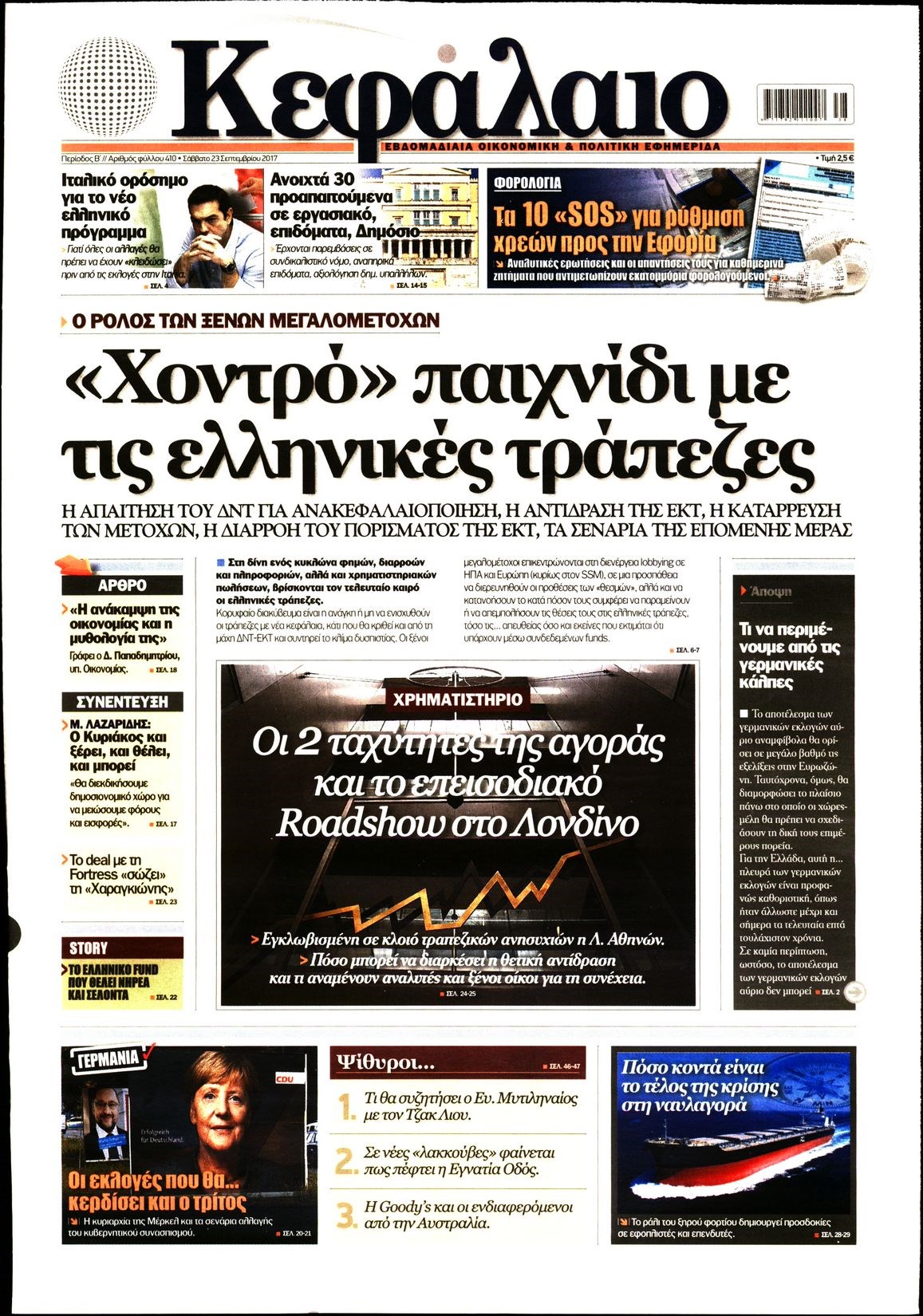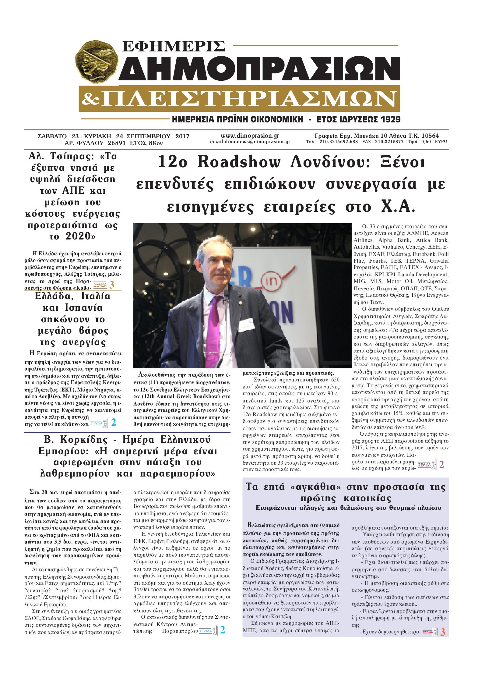 Οι οικονομικές εφημερίδες 23/9/2017 Enikos Newsroom 07:24, Σάββατο 23 Σεπτεμβρίου 2017 Media Διαβάστε τα σημερινά πρωτοσέλιδα των οικονομικών εφημερίδων: ΟΙΚΟΝΟΜΙΚΕΣ ΕΦΗΜΕΡΙΔΕΣ ΠΡΩΤΟΣΕΛΙΔΑ Μοιράσου το: σχολίασε κι εσύ (0 σχόλια) Ακολουθήστε το enikos.gr στο Google News και μάθετε πρώτοι όλες τις ειδήσεις Δείτε όλες τις τελευταίες ειδήσεις από την Ελλάδα και τον Κόσμο στο enikos.gr Ειδήσεις Ροή Ειδήσεων 1 ώρα πριν Αυξάνουν την πίεση προς την κυβέρνηση οι αγρότες: Κλείνουν παρακαμπτήριους και ανοίγουν διόδια – Τι θα γίνει τις γιορτές 16 λεπτά πριν ΟΠΕΚΕΠΕ: Προφυλακιστέος ο φερόμενος αρχηγός και ο λογιστής της εγκληματικής οργάνωσης 1 ώρα πριν Φοινικούντα: Το Σάββατο απολογείται ο 30χρονος γιος γνωστού επιχειρηματία της Πλάκας που παραδόθηκε – Όσα είπε στους αστυνομικούς και ο ρόλος του στο έγκλημα 57 λεπτά πριν Μπορεί ο Μαδούρο να αντέξει τον αποκλεισμό του Τραμπ; Τι θα χρειαστεί η Ουάσινγκτον για να τον ανατρέψει 2 ώρες πριν Πρίγκιπας Ουίλιαμ – Κέιτ: Η νέα οικογενειακή φωτογραφία για τις Χριστουγεννιάτικες κάρτες του 2025 2 ώρες πριν Ύπνος: Η απλή βραδινή ρουτίνα για να προστατεύσετε τα μαλλιά σας από το κρύο κατά τη διάρκεια του χειμώνα 3 ώρες πριν Manifesting: Πώς να συναντήσετε τον σύντροφο της ζωής σας, ανάλογα με τον μήνα γέννησής σας 2 ημέρες πριν 20 χρόνια τα Χριστούγεννα ξεκινούν στα Public με μεγάλη ποικιλία σε δώρα! 1 ώρα πριν Αρχαιολόγοι ανακάλυψαν ρωμαϊκά τεχνουργήματα από μια πόλη που δεν υπήρξε ποτέ – Τα τρία εντυπωσιακά κτίρια και ο αμφορέας με τις… σαρδέλες 16 λεπτά πριν ΟΠΕΚΕΠΕ: Προφυλακιστέος ο φερόμενος αρχηγός και ο λογιστής της εγκληματικής οργάνωσης 26 λεπτά πριν Αθηνά Μαξίμου: Η τρυφερή ανάρτηση για τα γενέθλια του Αιμίλιου Χειλάκη – «Είναι η εκλεκτική συγγένειά μου, η επιλογή και η ευθύνη μου» 42 λεπτά πριν Παναθηναϊκός – Χάποελ Τελ Αβίβ 93-82: Με… φόρα από την Κωνσταντινούπολη 57 λεπτά πριν Μπορεί ο Μαδούρο να αντέξει τον αποκλεισμό του Τραμπ; Τι θα χρειαστεί η Ουάσινγκτον για να τον ανατρέψει 1 ώρα πριν Αρχαιολόγοι ανακάλυψαν ρωμαϊκά τεχνουργήματα από μια πόλη που δεν υπήρξε ποτέ – Τα τρία εντυπωσιακά κτίρια και ο αμφορέας με τις… σαρδέλες ENIKOS NETWORK Σε περίοδο αυξημένης δραστηριότητας η γρίπη στην Ελλάδα-Μέτρα προστασίας από τον ΕΟΔΥ Σκέφτεστε συνέχεια συζητήσεις που έχετε κάνει; Τι σημαίνει αυτό, σύμφωνα με ειδικό Στεγαστικό: Τι λέει η ΠΟΜΙΔΑ για τα νέα μέτρα που ανακοίνωσε ο Κυριάκος Μητσοτάκης Λαγκάρντ: Αισιόδοξη για την ανάπτυξη της Ευρωζώνης, αβέβαιη για τον πληθωρισμό Χαρτογραφώντας το «σημείο χωρίς επιστροφή»: Για πρώτη φορά αποκαλύπτεται με λεπτομέρεια το ακανθώδες όριο της ατμόσφαιρας τ... Η Google καταργεί τη λειτουργία «dark web report» – Πώς θα μπορούν οι χρήστες να διαγράφουν τα δεδομένα τους περισσότερα 17:45 , Πέμπτη 18 Δεκεμβρίου 2025 ROUK ZOUK: Εορταστικό επεισόδιο με καλεσμένους τους πρωταγωνιστές του «Γιατί ρε πατέρα» Το Σάββατο 20 Δεκεμβρίου στις 21:00, η Ζέτα Μακρυπούλια υποδέχεται εκλεκτούς ηθοποιούς που όλο... 17:20 , Πέμπτη 18 Δεκεμβρίου 2025 Άγιος έρωτας: Η Χριστίνα εξομολογείται στον πατέρα Νικόλαο, απόψε στις 21:00 στον Alpha Η Νότα αποφασίζει να εκδικηθεί τον Πέτρο και τον Στέφανο, για χάρη του Λούη, όμως τα πράγματα ... 16:50 , Πέμπτη 18 Δεκεμβρίου 2025 Να μ’ αγαπάς: Ζωή και Φωτεινή συμφιλιώνονται ως μάνα με κόρη, απόψε στις 20:00 Η ταυτότητα του Άγγελου αποκαλύπτεται στο νέο επεισόδιο της σειράς “Να μ’ αγαπάς... 15:52 , Πέμπτη 18 Δεκεμβρίου 2025 Το Σπίτι Δίπλα Στο Ποτάμι: Το καθη