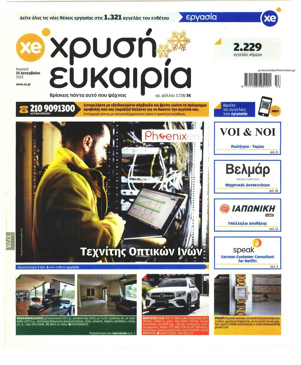 Οι οικονομικές εφημερίδες 24/12/2022 Enikos Newsroom 07:11, Σάββατο 24 Δεκεμβρίου 2022 Media Διαβάστε τα πρωτοσέλιδα από τις οικονομικές εφημερίδες, σήμερα 24/12/2022.Οι οικονομικές εφημερίδες 23/12/2022 Σχετικά Άρθρα Οι οικονομικές εφημερίδες 22/12/2022Οι οικονομικές εφημερίδες 21/12/2022 ΕΦΗΜΕΡΙΔΕΣ ΟΙΚΟΝΟΜΙΚΕΣ ΕΦΗΜΕΡΙΔΕΣ ΠΡΩΤΟΣΕΛΙΔΑ Μοιράσου το: σχολίασε κι εσύ (0 σχόλια) Ακολουθήστε το enikos.gr στο Google News και μάθετε πρώτοι όλες τις ειδήσεις Δείτε όλες τις τελευταίες ειδήσεις από την Ελλάδα και τον Κόσμο στο enikos.gr Ειδήσεις Ροή Ειδήσεων 5 ώρες πριν Μητσοτάκης: Αναγκαία η μεταρρύθμιση του πρωτογενούς τομέα – Τα 6 νέα μέτρα για το στεγαστικό και οι αναφορές σε «Ιθάκη» και «πολιτικούς του καναπέ» 5 ώρες πριν Δάνεια σε ελβετικό φράγκο: Τα βασικά σημεία της ρύθμισης – ανάσας για 40.000 δανειολήπτες – Αναλυτικός οδηγός με ερωτήσεις και απαντήσεις 4 ώρες πριν Κυψέλη: Εξιτήριο πήρε η 14χρονη μαθήτρια που μαχαιρώθηκε από την 16χρονη σε σχολείο – «Θέλω να βοηθήσω το παιδί, έχει μπλέξει με κακές παρέες» 4 ώρες πριν Τραμπ: Γιατί κατέθεσε τώρα την αγωγή κατά του BBC – Πώς η κίνησή του εξυπηρετεί το νέο δόγμα του για «αντίσταση» στην Ευρώπη, υπέρ των συντηρητικών 5 ώρες πριν ΟΠΕΚΕΠΕ – Παράνομες επιδοτήσεις: Ελεύθεροι με περιοριστικούς όρους και οι 7 κατηγορούμενοι που απολογήθηκαν σήμερα 4 ώρες πριν Ανακαλύφθηκε βυθισμένη πέτρινη κατασκευή ανοιχτά της Κριμαίας – Αποτελεί μέρος αρχαίας ελληνικής αποικίας 5 ώρες πριν Ύπνος: Αυτό μπορεί να είναι το χειρότερο λάθος για το βιολογικό ρολόι σας, σύμφωνα με ειδικό 6 ώρες πριν Αριθμολογία: Οι άνθρωποι που έχουν γεννηθεί αυτές τις 3 ημερομηνίες, προσελκύουν μεγάλη τύχη πριν από το τέλος του 2025 8 ώρες πριν Οι 7 συμπεριφορές που μαρτυρούν ότι ένας άνδρας επενδύει μακροπρόθεσμα σε μια σχέση 11 λεπτά πριν Νίκος Πλακιάς: Η Μαρία Καρυστιανού πλέον θα κρίνεται ως πολιτικός και όχι ως συγγενής 27 λεπτά πριν Ντόναλντ Τραμπ: Κάλυψε απόλυτα την προσωπάρχη του Λευκού Οίκου: «Ναι, έχω προσωπικότητα αλκοολικού» 42 λεπτά πριν ΗΠΑ: Στην αγορά δύο Boeing 747-8 προχωρά η Πολεμική Αεροπορία για την υποστήριξη του προεδρικού στόλου 56 λεπτά πριν Ιταλία: Λεωφορείο έπεσε πάνω σε βιτρίνα καταστήματος στο Τορίνο – Τρεις τραυματίες 1 ώρα πριν Χαλάνδρι: Καθηγητής έπιασε με κόφτη τα δάχτυλα μαθητή σε κατάληψη – «Μου έχεις πιάσει το χέρι» ENIKOS NETWORK Αίτημα ΙΣΑ για την εξαίρεση των προσωπικών γιατρών από τις κατ’ οίκον επισκέψεις Η σκανδιναβική μέθοδος στον ύπνο που μπορεί να σώσει έναν γάμο Πιερρακάκης: Ο προϋπολογισμός συμβάλλει ουσιαστικά στην ενίσχυση της αγοραστικής δύναμης της πλειονότητας των εργαζομένων e-ΕΦΚΑ: Παρατείνεται η προθεσμία για την υποβολή ΑΠΔ – Ποιους αφορά Σύγχρονος Νοστράδαμος: Προειδοποιεί για «μεγάλο γεγονός» τους επόμενους μήνες που θα συγκλονίσει τη Βρετανία και τον κόσμο Τεστ παρατηρητικότητας: Μπορείτε να βρείτε τις 3 διαφορές στις εικόνες με έναν πιγκουίνο σε 14 δευτερόλεπτα περισσότερα 20:06 , Τρίτη 16 Δεκεμβρίου 2025 Ο ΣΚΑΙ καταγγέλλει τον ΕΚΚΟΜΕΔ Επιστολή με την οποία καταγράφει την έντονη διαμαρτυρία του προς τον διευθύνοντα σύμβουλο του... 17:40 , Τρίτη 16 Δεκεμβρίου 2025 Eurovision: Στις 4 Ιανουαρίου αποκαλύπτονται τα 28 τραγούδια του ελληνικού τελικού Η αγωνία τελειώνει, η γιορτή της Eurovision αρχίζει στην ΕΡΤ από τις πρώτες ημέρες της νέας χρ... 17:09 , Τρίτη 16 Δεκεμβρίου 2025 Alter Ego Media: Βαθύτατη θλίψη και ειλικρινή συλλυπητήρια για την απώλεια της Ειρήνης Μαρινάκη Τη βαθύτατη