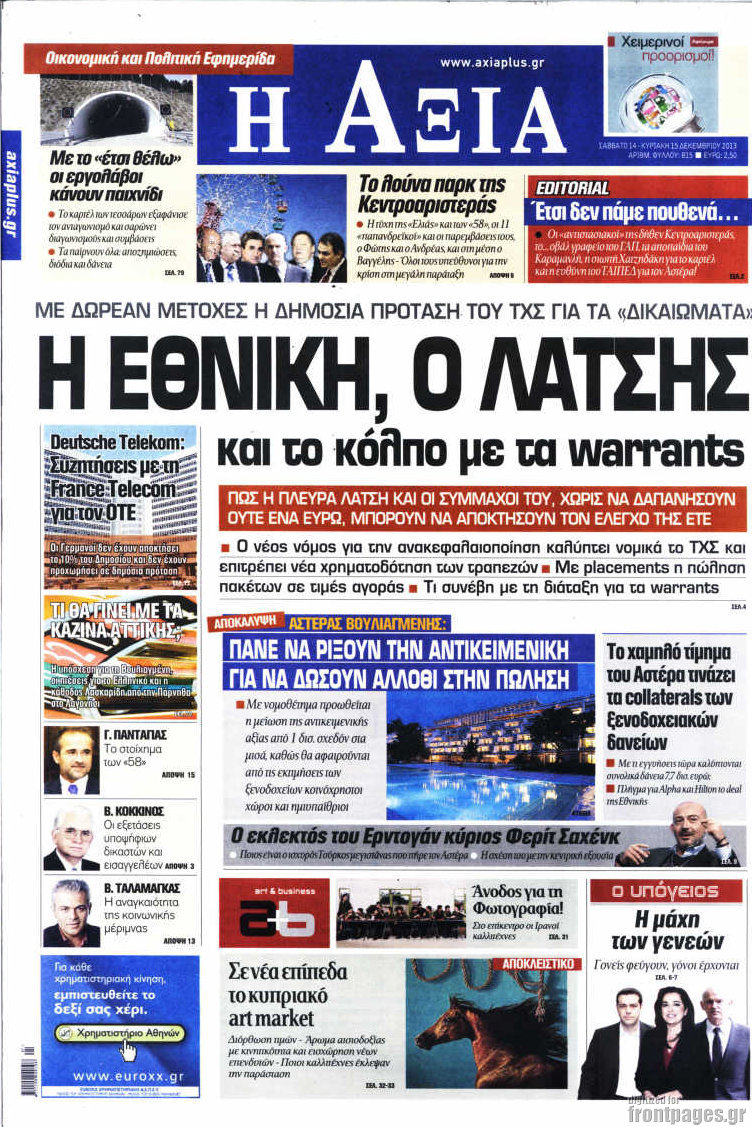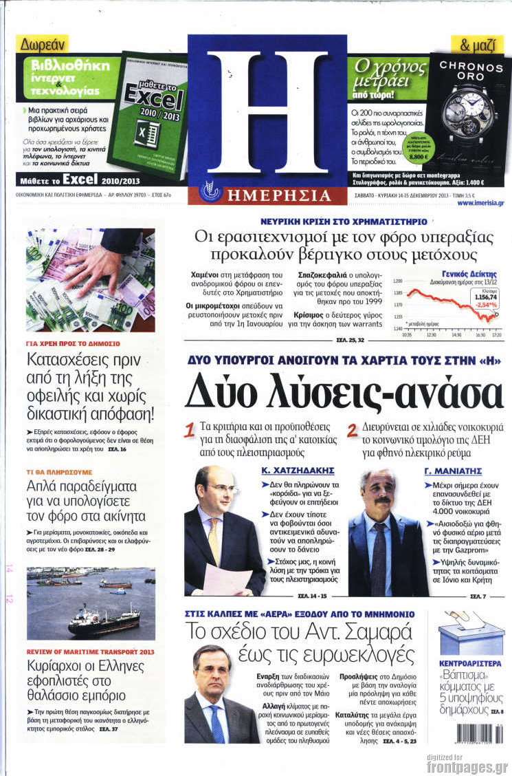 Οι oικονομικές εφημερίδες Enikos Newsroom 08:38, Σάββατο 14 Δεκεμβρίου 2013 Media Οι oικονομικές εφημερίδες Διαβάστε τα πρωτοσέλιδα των οικονομικών εφημερίδων: ΟΙΚΟΝΟΜΙΚΕΣ ΕΦΗΜΕΡΙΔΕΣ ΠΡΩΤΟΣΕΛΙΔΑ Μοιράσου το: σχολίασε κι εσύ (0 σχόλια) Ακολουθήστε το enikos.gr στο Google News και μάθετε πρώτοι όλες τις ειδήσεις Δείτε όλες τις τελευταίες ειδήσεις από την Ελλάδα και τον Κόσμο στο enikos.gr Ειδήσεις Ροή Ειδήσεων 1 ώρα πριν Ρομπ και Μισέλ Ράινερ: Φωτογραφίες από τη στιγμή που οι αρχές συλλαμβάνουν τον γιο τους – Ο «μεγάλος καβγάς» πριν από την τραγωδία 49 λεπτά πριν Προϋπολογισμός 2026: Σήμερα η ομιλία Μητσοτάκη στη Βουλή – Μέτρα για νέους, μεσαία τάξη και στεγαστικό 2 ώρες πριν Χριστούγεννα: Τι περιμένουν οι έμποροι για να «ζεσταθεί» η αγορά 2 ώρες πριν Κρίσιμη ημέρα για τους αγρότες: Σήμερα θα δώσουν την απάντησή τους στην κυβέρνηση μετά το νέο κάλεσμα για διάλογο 2 ώρες πριν Οι Τούρκοι θέλουν να παρακολουθούν την Αθήνα από την Σμύρνη με Drones – Δείτε βίντεο 3 ώρες πριν Οπτική ψευδαίσθηση: Μόνο 1 στους 10 ανθρώπους θα βρει το κόκκινο αυγό σε 7 δευτερόλεπτα 3 ώρες πριν Υψηλή χοληστερίνη: Γιατρός αποκαλύπτει δύο τρόπους για να την μειώσετε χωρίς φαρμακευτική αγωγή 4 ώρες πριν Τα ζώδια σήμερα, Τρίτη 16 Δεκεμβρίου: Ιχθύες, δεν χρειάζεται να έχετε όλες τις απαντήσεις 1 ώρα πριν Ανακαλύφθηκε περίτεχνη μαρμάρινη μπανιέρα που επαναχρησιμοποιήθηκε ως κρήνη 4 λεπτά πριν «Το θαύμα των Χριστουγέννων»: Σκύλος που εξαφανίστηκε το 2021 βρέθηκε σε καταφύγιο ζώων σε απόσταση 3.200 χιλιομέτρων – ΒΙΝΤΕΟ 9 λεπτά πριν Ευγενία Σαμαρά – Οδυσσέας Παπασπηλιόπουλος: Τίτλοι τέλους 14 λεπτά πριν Η πεθερά της την κατηγορεί πως δεν την ταΐζει σωστά – «Δεν παραπονιέται όμως στον γιο της» 18 λεπτά πριν Δολοφονία στο Νέο Ψυχικό: «Δεν είχαμε κόντρα με τον τοπογράφο» λέει ο μεσίτης της Μυκόνου 23 λεπτά πριν Σίδνεϊ: Βίντεο με ηλικιωμένο ζευγάρι που όρμησε για να σταματήσει τον έναν δράστη – Συγκλονιστικές μαρτυρίες για τους «ήρωες μέχρι τέλους» ENIKOS NETWORK Η Νο1 άσκηση για σμιλεμένους γλουτούς – Την κάνετε στο σπίτι και διαρκεί 1 λεπτό 54χρονη που νόμιζε ότι είχε ιγμορίτιδα έλαβε διάγνωση για σπάνιο καρκίνο – Η συγκλονιστική μαρτυρία της Φορολογικές δηλώσεις 2026: Στις 16 Μαρτίου αρχίζει η υποβολή – Νέες κατηγορίες στις προσυμπληρωμένες Χριστούγεννα: Τι περιμένουν οι έμποροι για να «ζεσταθεί» η αγορά Σύγχρονος Νοστράδαμος: Προειδοποιεί για «μεγάλο γεγονός» τους επόμενους μήνες που θα συγκλονίσει τη Βρετανία και τον κόσμο Τεστ παρατηρητικότητας: Μπορείτε να βρείτε τις 3 διαφορές στις εικόνες με έναν πιγκουίνο σε 14 δευτερόλεπτα περισσότερα 08:00 , Τρίτη 16 Δεκεμβρίου 2025 Την Κυριακή με τη Realnews: Δωροεπιταγή 10€ Δωροεπιταγή αξίας 10€ για αγορές άνω των 60€ από τα πολυκαταστήματα FactoryOutlet H προσφορά ι... 05:48 , Τρίτη 16 Δεκεμβρίου 2025 Οι οικονομικές εφημερίδες 16/12/2025 Διαβάστε τα πρωτοσέλιδα από τις οικονομικές εφημερίδες, σήμερα 16/12/2025. 05:43 , Τρίτη 16 Δεκεμβρίου 2025 Οι αθλητικές εφημερίδες 16/12/2025 Διαβάστε τα πρωτοσέλιδα από τις αθλητικές εφημερίδες, σήμερα 16/12/2025. 05:38 , Τρίτη 16 Δεκεμβρίου 2025 Οι πολιτικές εφημερίδες 16/12/2025 Διαβάστε τα πρωτοσέλιδα από τις πολιτικές εφημερίδες, σήμερα 16/12/2025. ΤΕΛΕΥΤΑΙΕΣ ΕΙΔΗΣΕΙΣ 9 λεπτά πριν Ευγενία Σαμαρά – Οδυσσέας Παπασπηλιόπουλος: Τίτλοι... 14 λεπτά πριν Η πεθερά της την κατηγορεί πως δεν την ταΐζει σωστά... 18 λεπτά πριν Δολοφονία στο Νέο Ψυχικό: «Δεν είχαμε κόντρα με τον... 23 λεπτά πριν Σίδνεϊ: Βίντεο με ηλικιωμέ