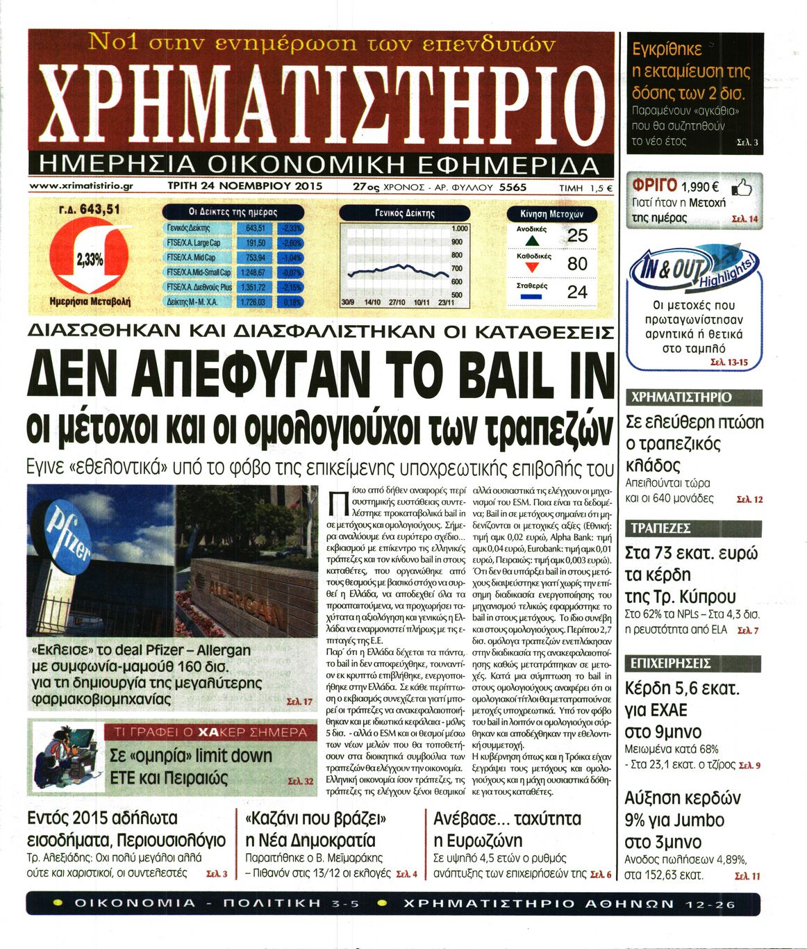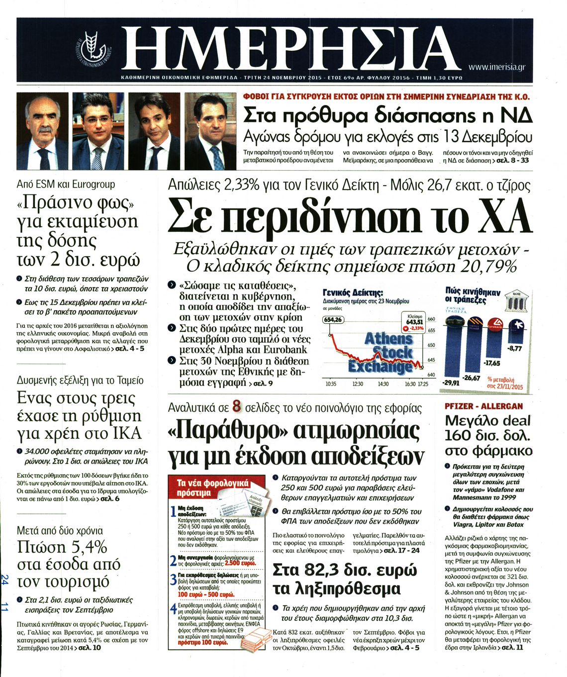 Οι οικονομικές εφημερίδες 24/11/2015 Enikos Newsroom 06:31, Τρίτη 24 Νοεμβρίου 2015 Media Διαβάστε τα σημερινά πρωτοσέλιδα των οικονομικών εφημερίδων: ΟΙΚΟΝΟΜΙΚΕΣ ΕΦΗΜΕΡΙΔΕΣ ΠΡΩΤΟΣΕΛΙΔΑ Μοιράσου το: σχολίασε κι εσύ (0 σχόλια) Ακολουθήστε το enikos.gr στο Google News και μάθετε πρώτοι όλες τις ειδήσεις Δείτε όλες τις τελευταίες ειδήσεις από την Ελλάδα και τον Κόσμο στο enikos.gr Ειδήσεις Ροή Ειδήσεων 4 ώρες πριν Αυξάνουν την πίεση προς την κυβέρνηση οι αγρότες: Κλείνουν παρακαμπτήριους και ανοίγουν διόδια – Τι θα γίνει τις γιορτές 3 ώρες πριν ΟΠΕΚΕΠΕ: Προφυλακιστέος ο φερόμενος αρχηγός και ο λογιστής της εγκληματικής οργάνωσης 4 ώρες πριν Φοινικούντα: Το Σάββατο απολογείται ο 30χρονος γιος γνωστού επιχειρηματία της Πλάκας που παραδόθηκε – Όσα είπε στους αστυνομικούς και ο ρόλος του στο έγκλημα 4 ώρες πριν Μπορεί ο Μαδούρο να αντέξει τον αποκλεισμό του Τραμπ; Τι θα χρειαστεί η Ουάσινγκτον για να τον ανατρέψει 3 ώρες πριν ΑΕΚ – Κραϊόβα 3-2: Επική ανατροπή και πρόκριση στους «16» του Conference League η Ένωση 4 ώρες πριν Αρχαιολόγοι ανακάλυψαν ρωμαϊκά τεχνουργήματα από μια πόλη που δεν υπήρξε ποτέ – Τα τρία εντυπωσιακά κτίρια και ο αμφορέας με τις… σαρδέλες 5 ώρες πριν Ύπνος: Η απλή βραδινή ρουτίνα για να προστατεύσετε τα μαλλιά σας από το κρύο κατά τη διάρκεια του χειμώνα 6 ώρες πριν Manifesting: Πώς να συναντήσετε τον σύντροφο της ζωής σας, ανάλογα με τον μήνα γέννησής σας 2 ημέρες πριν 20 χρόνια τα Χριστούγεννα ξεκινούν στα Public με μεγάλη ποικιλία σε δώρα! 17 λεπτά πριν Πόλεμος στην Ουκρανία: Ρωσικά drones έπληξαν την Οδησσό – Μία νεκρή και ζημιές σε ενεργειακές υποδομές 24 λεπτά πριν ΑΕΚ-Κραϊόβα: Τα highlights της μυθικής ανατροπής της «Ένωσης» 39 λεπτά πριν Μιχάλης Χρυσοχοΐδης από την Κωνσταντινούπολη: Κοινές επιχειρήσεις Ελλάδας – Τουρκίας ενάντια στο οργανωμένο έγκλημα 1 ώρα πριν Μάρκο Νίκολιτς: «Είμαι περήφανος για τους παίκτες μου, όποιος αντίπαλος και να έρθει θα προετοιμαστούμε» 1 ώρα πριν ΟΗΕ: Την εκλογή του νέου ύπατου αρμοστή για τους Πρόσφυγες Μπαρχάμ Άχμεντ Σαλίχ χαιρέτησε ο Αντόνιο Γκουτέρες ENIKOS NETWORK Σε περίοδο αυξημένης δραστηριότητας η γρίπη στην Ελλάδα-Μέτρα προστασίας από τον ΕΟΔΥ Σκέφτεστε συνέχεια συζητήσεις που έχετε κάνει; Τι σημαίνει αυτό, σύμφωνα με ειδικό Στεγαστικό: Τι λέει η ΠΟΜΙΔΑ για τα νέα μέτρα που ανακοίνωσε ο Κυριάκος Μητσοτάκης Λαγκάρντ: Αισιόδοξη για την ανάπτυξη της Ευρωζώνης, αβέβαιη για τον πληθωρισμό Χαρτογραφώντας το «σημείο χωρίς επιστροφή»: Για πρώτη φορά αποκαλύπτεται με λεπτομέρεια το ακανθώδες όριο της ατμόσφαιρας τ... Η Google καταργεί τη λειτουργία «dark web report» – Πώς θα μπορούν οι χρήστες να διαγράφουν τα δεδομένα τους περισσότερα 17:45 , Πέμπτη 18 Δεκεμβρίου 2025 ROUK ZOUK: Εορταστικό επεισόδιο με καλεσμένους τους πρωταγωνιστές του «Γιατί ρε πατέρα» Το Σάββατο 20 Δεκεμβρίου στις 21:00, η Ζέτα Μακρυπούλια υποδέχεται εκλεκτούς ηθοποιούς που όλο... 17:20 , Πέμπτη 18 Δεκεμβρίου 2025 Άγιος έρωτας: Η Χριστίνα εξομολογείται στον πατέρα Νικόλαο, απόψε στις 21:00 στον Alpha Η Νότα αποφασίζει να εκδικηθεί τον Πέτρο και τον Στέφανο, για χάρη του Λούη, όμως τα πράγματα ... 16:50 , Πέμπτη 18 Δεκεμβρίου 2025 Να μ’ αγαπάς: Ζωή και Φωτεινή συμφιλιώνονται ως μάνα με κόρη, απόψε στις 20:00 Η ταυτότητα του Άγγελου αποκαλύπτεται στο νέο επεισόδιο της σειράς “Να μ’ αγαπάς... 15:52 , Πέμπτη 18 Δεκεμβρίου 2025 Το Σπίτι Δίπλα Στο Ποτάμι: Το καθηλωτικό τελευταίο επεισόδιο για το 2025 απόψε στις 22:30 Καθηλώνει το σημερινό 