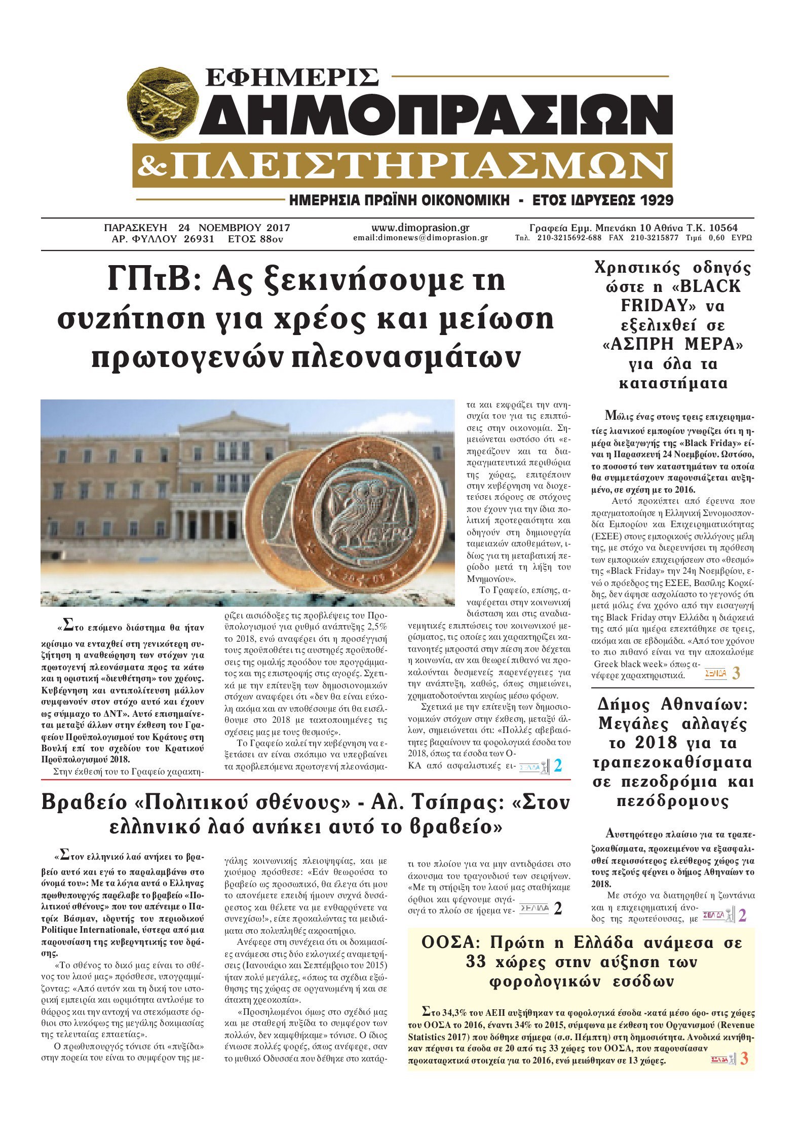 Οι οικονομικές εφημερίδες 24/11/2017 Enikos Newsroom 07:06, Παρασκευή 24 Νοεμβρίου 2017 Media Διαβάστε τα σημερινά πρωτοσέλιδα των οικονομικών εφημερίδων: ΟΙΚΟΝΟΜΙΚΕΣ ΕΦΗΜΕΡΙΔΕΣ ΠΡΩΤΟΣΕΛΙΔΑ Μοιράσου το: σχολίασε κι εσύ (0 σχόλια) Ακολουθήστε το enikos.gr στο Google News και μάθετε πρώτοι όλες τις ειδήσεις Δείτε όλες τις τελευταίες ειδήσεις από την Ελλάδα και τον Κόσμο στο enikos.gr Ειδήσεις Ροή Ειδήσεων 18 λεπτά πριν Χριστούγεννα στα μπλόκα οι αγρότες: Άνοιξαν στα διόδια και μοίρασαν προϊόντα στους πολίτες – Νέα σύσκεψη την Κυριακή στη Νίκαια 39 λεπτά πριν Κύκλωμα διακίνησης ναρκωτικών σε σχολεία: Τηλεφωνούσαν στους ανηλίκους την ώρα του μαθήματος – Οι διάλογοι-σοκ, τα «ψευδώνυμα» και τα βασανιστήρια 7 λεπτά πριν Αρχεία Επστάιν: Οι 500 σελίδες που λείπουν, τα αναπάντητα ερωτήματα και οι επώνυμοι – Τι έπεται 2 ώρες πριν Ζελένσκι: Μόνο οι ΗΠΑ και ο Τραμπ μπορούν να πιέσουν τη Ρωσία να βάλει τέλος στον πόλεμο 2 ώρες πριν Φοινικούντα: Προφυλακιστέος ο 30χρονος για συνέργεια στη διπλή δολοφονία – Και άλλα πρόσωπα στο «μικροσκόπιο» 2 ώρες πριν Αριθμολογία: Ο αριθμός του φύλακα αγγέλου σας, με βάση τον μήνα γέννησής σας – «Έτσι σας στέλνει σημάδια το σύμπαν» 3 ώρες πριν Πώς να απαλλαγείτε από τη μυρωδιά του τηγανητού φαγητού: Το μυστικό βρίσκεται στην κουζίνα σας 14 ώρες πριν Enerwave: Το νέο «ρεύμα» στη λιανική ενέργειας που αλλάζει την εμπειρία του καταναλωτή 1 ώρα πριν Ύπνος: Η διατροφή που μπορεί να σας βοηθήσει να κοιμάστε καλύτερα και να ζήσετε περισσότερο 4 λεπτά πριν Αποκαλύφθηκε το άγνωστο «GPS» της αρχαιότητας – Πώς οι ναοί «φώτιζαν» τον δρόμο των ναυτικών πριν από την εφεύρεση των φάρων 7 λεπτά πριν Αρχεία Επστάιν: Οι 500 σελίδες που λείπουν, τα αναπάντητα ερωτήματα και οι επώνυμοι – Τι έπεται 18 λεπτά πριν Χριστούγεννα στα μπλόκα οι αγρότες: Άνοιξαν στα διόδια και μοίρασαν προϊόντα στους πολίτες – Νέα σύσκεψη την Κυριακή στη Νίκαια 28 λεπτά πριν Ολυμπιακός – Κηφισιά 1-1: Δεύτερη σερί ισοπαλία για τους Ερυθρόλευκους – Υπό… αμφισβήτηση η κορυφή της Super League 39 λεπτά πριν Κύκλωμα διακίνησης ναρκωτικών σε σχολεία: Τηλεφωνούσαν στους ανηλίκους την ώρα του μαθήματος – Οι διάλογοι-σοκ, τα «ψευδώνυμα» και τα βασανιστήρια ENIKOS NETWORK Οι γυναίκες αποκαλύπτουν το πιο ελκυστικό πράγμα που μπορεί να κάνει ένας άνδρας Ομορφιά και αντιγήρανση: Ειδικοί μιλούν για συσκευές περιποίησης του δέρματος Ακύρωση ΑΦΜ για απάτες – Ποιους βάζει στο στόχαστρο η ΑΑΔΕ Ρεύμα: Πώς μπορείτε να αλλάξετε πάροχο γρήγορα και εύκολα – Τα βήματα της διαδικασίας Χαρτογραφώντας το «σημείο χωρίς επιστροφή»: Για πρώτη φορά αποκαλύπτεται με λεπτομέρεια το ακανθώδες όριο της ατμόσφαιρας τ... Η Google καταργεί τη λειτουργία «dark web report» – Πώς θα μπορούν οι χρήστες να διαγράφουν τα δεδομένα τους περισσότερα 20:30 , Σάββατο 20 Δεκεμβρίου 2025 Αυτή την Κυριακή με τη Realnews: Instyle, μαζί Drive και Realnews Geopolitics Αυτή την Κυριακή με τη Realnews: Instyle, μαζί Drive και Realnews Geopolitics Instyle Η Άννα Ρ... 20:28 , Σάββατο 20 Δεκεμβρίου 2025 Ο ΑΝΤ1 γεμίζει τις γιορτές με μουσική – Ποιους καλλιτέχνες θα απολαύσουμε Φέτος στον ΑΝΤ1 γιορτάζουμε τις νύχτες μας παρέα με αγαπημένους καλλιτέχνες και μεγάλες μουσι... 18:19 , Σάββατο 20 Δεκεμβρίου 2025 HOTΕΛ ΕΛVIRA: Η Ελβίρα μαθαίνει πως ο Χάρι μένει κρυφά στο ξενοδοχείο του Παντελή Συνεχίζονται οι εκλογές για πρόεδρο, στο νέο επεισόδιο της κωμικής σειράς του MEGA, HOTΕΛ ΕΛVI... 14:04 , Σάββατο 20 Δεκεμβρίου 2025 Η Realnews αυτής της Κυριακής (21/12/2025) Με τίτλο: «Ασπί