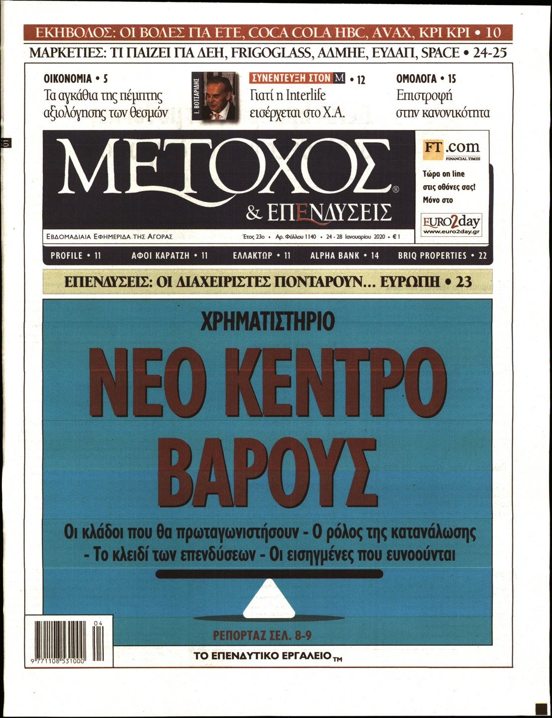 Οι οικονομικές εφημερίδες 24/1/20 Διονύσης Νίκκας 06:31, Παρασκευή 24 Ιανουαρίου 2020 Media Διαβάστε τα πρωτοσέλιδα των οικονομικών εφημερίδων… ΟΙΚΟΝΟΜΙΚΕΣ ΕΦΗΜΕΡΙΔΕΣ Μοιράσου το: σχολίασε κι εσύ (0 σχόλια) Ακολουθήστε το enikos.gr στο Google News και μάθετε πρώτοι όλες τις ειδήσεις Δείτε όλες τις τελευταίες ειδήσεις από την Ελλάδα και τον Κόσμο στο enikos.gr Ειδήσεις Ροή Ειδήσεων 3 ώρες πριν Χριστούγεννα στα μπλόκα: Επιμένουν στις κινητοποιήσεις τους οι αγρότες – Ανοίγουν τα διόδια το Σαββατοκύριακο 3 ώρες πριν Ουκρανία: Η άνευ προηγουμένου επίθεση σε ρωσικό τάνκερ στη Μεσόγειο και το μήνυμα προς στον Πούτιν – Το «μακρύ χέρι» του Κιέβου 3 ώρες πριν Πούτιν: Τα μηνύματα σε Ευρώπη και ΝΑΤΟ από το μαραθώνιο «σόου» του – Η απαίτηση για «σεβασμό» και η ειρήνη «με τους όρους» της Μόσχας 3 ώρες πριν Τραμπ: Δεν αποκλείει την πιθανότητα ενός πολέμου στη Βενεζουέλα – «Ο Μαδούρο ξέρει καλύτερα από τον καθένα τι ακριβώς θέλω» 4 ώρες πριν Συνεχίζει να προκαλεί ο Μίτσκοσκι: «Για μένα το όνομα Μακεδονία είναι ιερό» 3 ώρες πριν Ανακαλύφθηκαν αρχαία χρυσά νομίσματα 2.200 ετών που απεικονίζουν τον θεό Απόλλωνα – Η άγνωστη σύνδεση με τον Φίλιππο Β΄ της Μακεδονίας 4 ώρες πριν Ύπνος: Μια κρυφή κατάσταση του εγκεφάλου πριν από τον ύπνο μπορεί να είναι το “κλειδί” για υψηλή ευφυΐα και δημιουργικότητα 5 ώρες πριν Αριθμολογία: Οι άνθρωποι που έχουν γεννηθεί αυτές τις 4 ημερομηνίες, συχνά παρεξηγούνται – «Η καλοσύνη τους κρύβει τεράστια δύναμη» 6 ώρες πριν Ξεχάστε το καθάρισμα το Σαββατοκύριακο: Ο «κανόνας των 20 λεπτών» που θα σας λύσει τα χέρια 9 λεπτά πριν Euroleague: Επέστρεψε στις νίκες ο Ολυμπιακός, πήρε την ματσάρα της χρονιάς η Μπάρτσα – Τα αποτελέσματα και η βαθμολογία 24 λεπτά πριν Συρία: Μαζικά πλήγματα των ΗΠΑ σε θέσεις του Ισλαμικού Κράτους – Χέγκσεθ: «Δεν είναι αρχή πολέμου, είναι μια δήλωση εκδίκησης» για το θάνατο των στρατιωτών μας 37 λεπτά πριν Ουκρανία: Ολοκληρώθηκαν οι συνομιλίες με τους Αμερικανούς κι Ευρωπαίους διαπραγματευτές 52 λεπτά πριν Μπαρτσελόνα – Μπασκόνια 134-124: Οι «μπλαουγκράνα» πήραν το ματς της χρονιάς ύστερα από τρεις παρατάσεις 1 ώρα πριν Φαίη Σκορδά: «Παλιότερα τα κομπλιμέντα τα προσπερνούσα, τώρα τα έχω ανάγκη» ENIKOS NETWORK Το ΕΚΑΒ τιμήθηκε από την Ακαδημία Αθηνών για τα 40 χρόνια προσφοράς του Έχετε πραγματικά μεγάλη καρδιά; 10 χαρακτηριστικά όσων έχουν καλοσύνη Αναστολή μέτρων αναγκαστικής εκτέλεσης για κτηνοτρόφους που πλήττονται από την ευλογιά των αιγοπροβάτων Πλήρης επάρκεια προϊόντων στις λαϊκές της Αττικής, παρά τις αγροτικές κινητοποιήσεις – Τι απαντούν οι πωλητές Χαρτογραφώντας το «σημείο χωρίς επιστροφή»: Για πρώτη φορά αποκαλύπτεται με λεπτομέρεια το ακανθώδες όριο της ατμόσφαιρας τ... Η Google καταργεί τη λειτουργία «dark web report» – Πώς θα μπορούν οι χρήστες να διαγράφουν τα δεδομένα τους περισσότερα 22:42 , Παρασκευή 19 Δεκεμβρίου 2025 Γιώργος Γιαννόπουλος για “Το σόι σου”: “Είναι ευτυχία και ευλογία αυτή η σειρά” «Είναι ευτυχία και ευλογία η συγκυρία αυτής της σειράς», θα πει ο Γιώργος Γιαννόπουλος -ο αγαπ... 20:37 , Παρασκευή 19 Δεκεμβρίου 2025 Don’t Forget The Lyrics: Η Έλλη Κοκκίνου υποδέχεται 4 παίκτες που θα κάνουν τα πάντα για να μη χάσουν ούτε… μισή λέξη από τους στίχους Το «Don’t Forget The Lyrics» επιστρέφει απόψε, Παρασκευή 19 Δεκεμβρίου, στις 21:00 με νέο επει... 19:31 , Παρασκευή 19 Δεκεμβρίου 2025 GNTM: Απόψε ο μεγάλος τελικός για τους 4 φιναλίστ Έπειτα από μήνες γεμάτους μόδα, δη