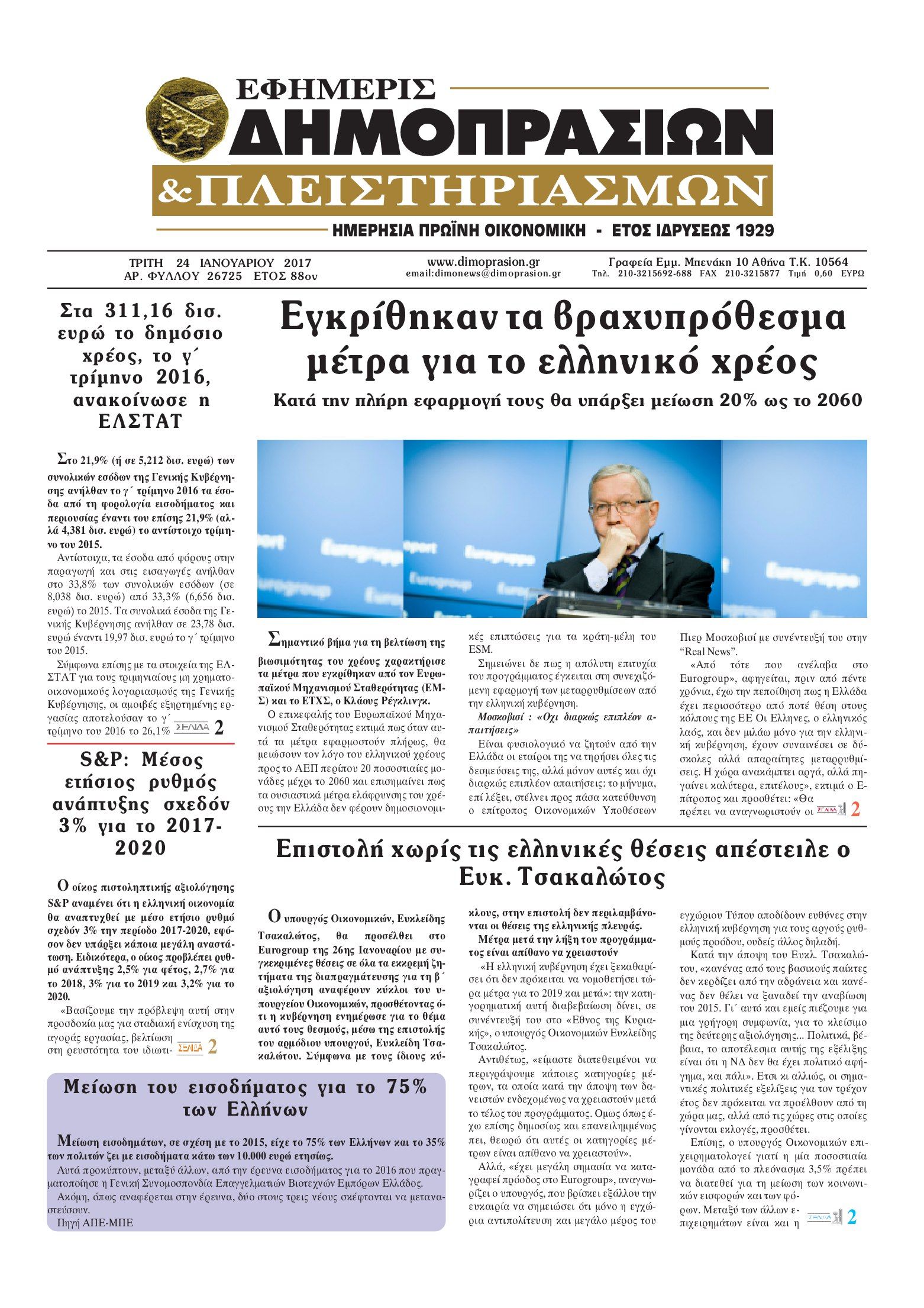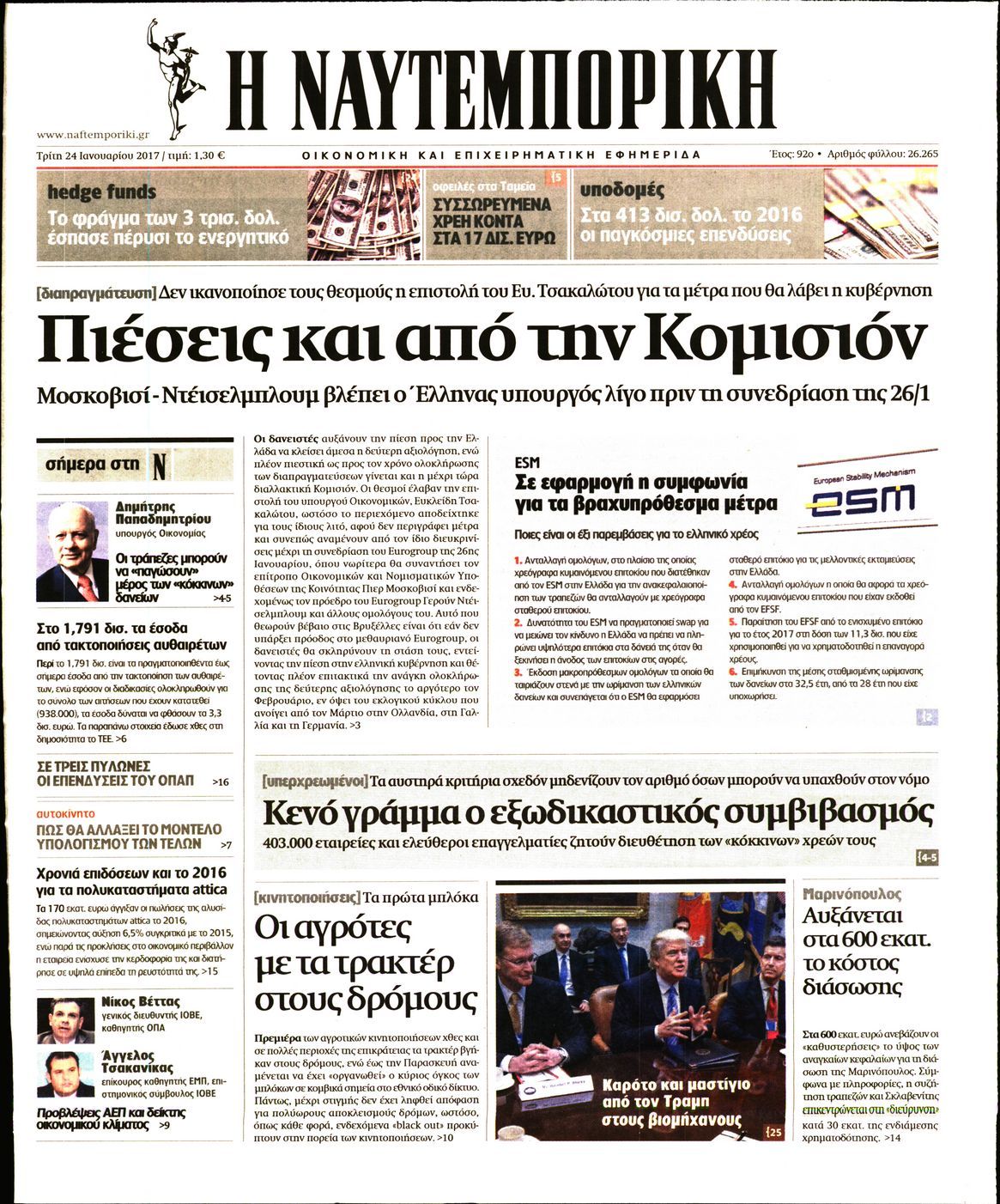 Οι οικονομικές εφημερίδες 24/1/2017 Enikos Newsroom 04:53, Τρίτη 24 Ιανουαρίου 2017 Media Διαβάστε τα σημερινά πρωτοσέλιδα των οικονομικών εφημερίδων ΟΙΚΟΝΟΜΙΚΕΣ ΕΦΗΜΕΡΙΔΕΣ ΠΡΩΤΟΣΕΛΙΔΑ Μοιράσου το: σχολίασε κι εσύ (0 σχόλια) Ακολουθήστε το enikos.gr στο Google News και μάθετε πρώτοι όλες τις ειδήσεις Δείτε όλες τις τελευταίες ειδήσεις από την Ελλάδα και τον Κόσμο στο enikos.gr Ειδήσεις Ροή Ειδήσεων 15 λεπτά πριν Μητσοτάκης σε αγρότες: Είμαστε ανοιχτοί στον διάλογο, αλλά όχι στο παράλογο – Η διεκδίκηση αιτημάτων οφείλει να γίνεται με σεβασμό στο κοινωνικό σύνολο 31 λεπτά πριν Γρίπη: «Καμπανάκι» από τους επιστήμονες για έξαρση κρουσμάτων στις γιορτές – Ποιοι κινδυνεύουν και πώς προστατευόμαστε 2 ώρες πριν Γαλλία: Έτοιμοι για Χριστούγεννα στους δρόμους οι αγρότες – «Οι δεσμεύσεις της κυβέρνησης δεν είναι αρκετές» 1 ώρα πριν Φοροδιαφυγή και «κενό ΦΠΑ»: Πώς τα ψηφιακά εργαλεία έφεραν δισεκατομμύρια στα ταμεία του Δημοσίου 3 ώρες πριν Τζορτζ Κλούνεϊ: Πέθανε η αδελφή του, Άντα Ζάιντλερ – «Η ηρωίδα μου» 25 λεπτά πριν Τα άστρα ευνοούν σκανδαλωδώς 4 ζώδια – «Εμφανίζονται ξαφνικά ευκαιρίες γιατί αποφασίζετε να αφήσετε πίσω το παρελθόν» 1 ώρα πριν Οι γονείς της θέλουν να έχουν πρόσβαση στον τραπεζικό της λογαριασμό – «Επιμένουν πως στις οικογένειες δεν υπάρχουν μυστικά» 2 ώρες πριν Αρχαιολόγοι ανακάλυψαν κάτι που δεν περίμεναν: Τα μαθηματικά υπήρχαν πριν από τους αριθμούς – Το μυστικό που κρύβεται πίσω από περίεργα αγγεία 8.000 ετών 1 ημέρα πριν Enerwave: Το νέο «ρεύμα» στη λιανική ενέργειας που αλλάζει την εμπειρία του καταναλωτή 7 λεπτά πριν Πώς «ακούγονται» το Δέλτα του Αξιού και η λίμνη Ορεστιάδα; Οι πρώτες ηχογραφήσεις των επιστημόνων δείχνουν κάτι απρόσμενο 15 λεπτά πριν Μητσοτάκης σε αγρότες: Είμαστε ανοιχτοί στον διάλογο, αλλά όχι στο παράλογο – Η διεκδίκηση αιτημάτων οφείλει να γίνεται με σεβασμό στο κοινωνικό σύνολο 15 λεπτά πριν Πρίγκιπας Χάρι: Το αμφιλεγόμενο σχόλιο τα Χριστούγεννα που πυροδότησε την έντονη οικογενειακή διαμάχη της Μέγκαν Μαρκλ 22 λεπτά πριν «Ενεργή Μάχη»: Τι αλλάζει με το νέο νομοσχέδιο της Πολιτικής Προστασίας – Τα 10 βασικά σημεία 25 λεπτά πριν Τα άστρα ευνοούν σκανδαλωδώς 4 ζώδια – «Εμφανίζονται ξαφνικά ευκαιρίες γιατί αποφασίζετε να αφήσετε πίσω το παρελθόν» ENIKOS NETWORK Έχετε καταρροή και φαγούρα στα μάτια στις γιορτές; Μπορεί να ευθύνεται το σύνδρομο χριστουγεννιάτικου δέντρου Η Danielle Fishel μετά τη διάγνωση καρκίνου του μαστού: «Είμαι καλά και νιώθω ευγνωμοσύνη» Πρωτοχρονιά 2026: Πόσο θα κοστίσει φέτος η βασιλόπιτα – Οι τιμές σε ζαχαροπλαστεία, φούρνους και σούπερ μάρκετ «Πολεμική» προετοιμασία από την ευρωπαϊκή βιομηχανία ενέργειας – Η Eurelectric ζητεί «ομπρέλα» προστασίας για τις υποδομές Χαρτογραφώντας το «σημείο χωρίς επιστροφή»: Για πρώτη φορά αποκαλύπτεται με λεπτομέρεια το ακανθώδες όριο της ατμόσφαιρας τ... Η Google καταργεί τη λειτουργία «dark web report» – Πώς θα μπορούν οι χρήστες να διαγράφουν τα δεδομένα τους περισσότερα 09:43 , Κυριακή 21 Δεκεμβρίου 2025 Το λάθος στην ταινία Die Hard που άφησε άναυδους τους θαυμαστές του Μπρους Γουίλις Ένας φανατικός των ταινιών άφησε άναυδους τους θαυμαστές του Die Hard, επισημαίνοντας τρία βασ... 08:13 , Κυριακή 21 Δεκεμβρίου 2025 Άγιος έρωτας: Ένας καταστροφικός σεισμός χτυπά τη Στέρνα Καταιγιστικές είναι οι εξελίξεις στα δυο τελευταία, συγκλονιστικά επεισόδια του 2025 της σειρά... 08:00 , Κυριακή 21 Δεκεμβρίου 2025 Σήμερα με τη Realnews: Ό,τ