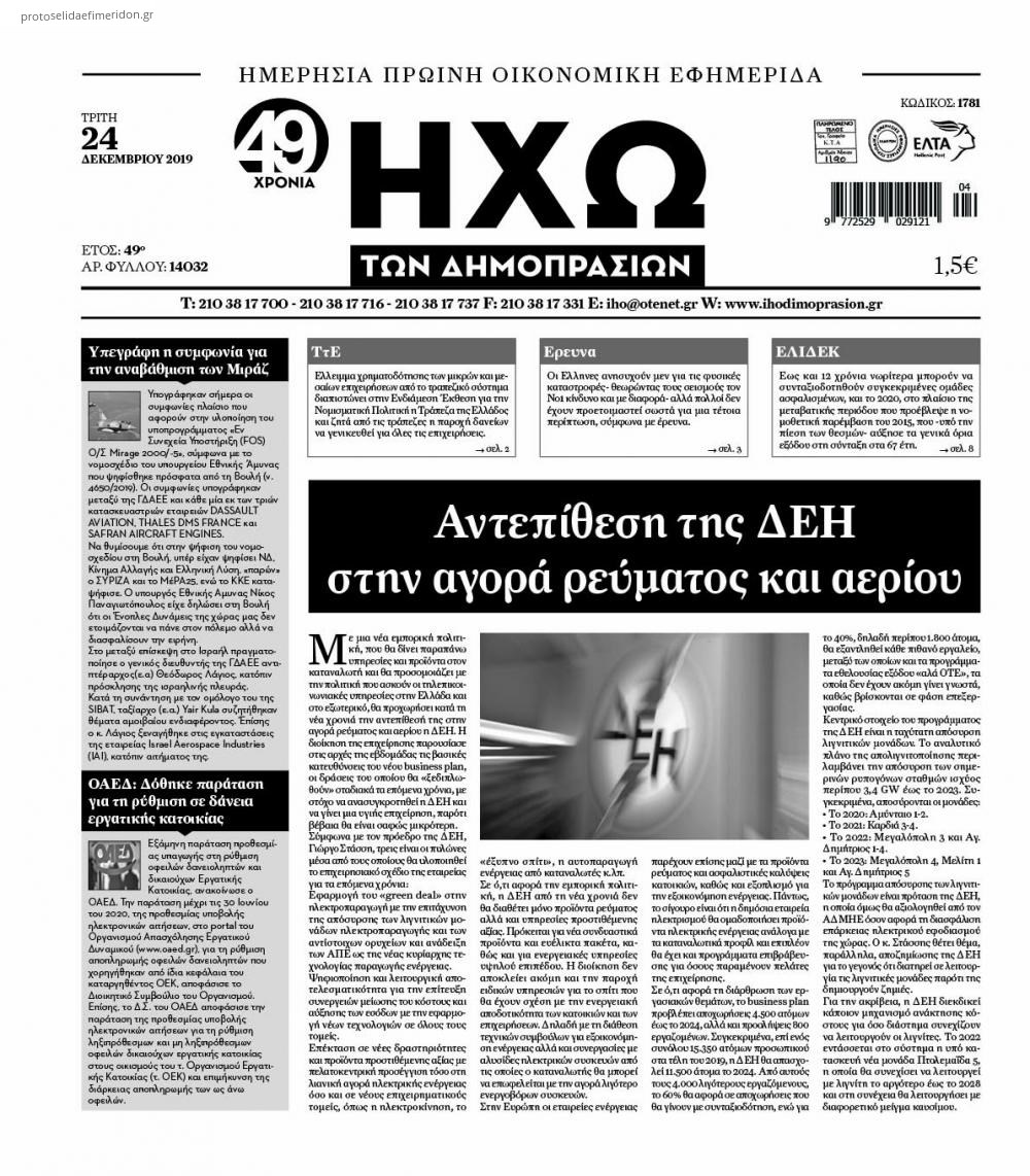 Οι οικονομικές εφημερίδες 24/12/2019 Κώστας Τεό 07:48, Τρίτη 24 Δεκεμβρίου 2019 Media Διαβάστε τα πρωτοσέλιδα των οικονομικών εφημερίδων: ΟΙΚΟΝΟΜΙΚΕΣ ΕΦΗΜΕΡΙΔΕΣ ΠΡΩΤΟΣΕΛΙΔΑ Μοιράσου το: σχολίασε κι εσύ (0 σχόλια) Ακολουθήστε το enikos.gr στο Google News και μάθετε πρώτοι όλες τις ειδήσεις Δείτε όλες τις τελευταίες ειδήσεις από την Ελλάδα και τον Κόσμο στο enikos.gr Ειδήσεις Ροή Ειδήσεων 8 ώρες πριν Χριστούγεννα στα μπλόκα: Επιμένουν στις κινητοποιήσεις τους οι αγρότες – Ανοίγουν τα διόδια το Σαββατοκύριακο 9 ώρες πριν Ουκρανία: Η άνευ προηγουμένου επίθεση σε ρωσικό τάνκερ στη Μεσόγειο και το μήνυμα προς στον Πούτιν – Το «μακρύ χέρι» του Κιέβου 8 ώρες πριν Πούτιν: Τα μηνύματα σε Ευρώπη και ΝΑΤΟ από το μαραθώνιο «σόου» του – Η απαίτηση για «σεβασμό» και η ειρήνη «με τους όρους» της Μόσχας 7 ώρες πριν ΗΠΑ: Η κυβέρνηση του Ντόναλντ Τραμπ άρχισε να δημοσιοποιεί τα αρχεία Έπσταϊν 7 ώρες πριν Άνω Λιόσια: Πυροβολισμοί σε επιχείρηση με χαλιά – Εντοπίστηκαν 10 κάλυκες 54 λεπτά πριν Αυγά: Πόσα μπορείτε να τρώτε την ημέρα με ασφάλεια για μέγιστη πρόσληψη πρωτεΐνης 1 ώρα πριν Τα ζώδια σήμερα, Σάββατο 20 Δεκεμβρίου: Παρθένοι, το σύμπαν σας δίνει το κλειδί 8 ώρες πριν Ανακαλύφθηκαν αρχαία χρυσά νομίσματα 2.200 ετών που απεικονίζουν τον θεό Απόλλωνα – Η άγνωστη σύνδεση με τον Φίλιππο Β΄ της Μακεδονίας 9 ώρες πριν Ύπνος: Μια κρυφή κατάσταση του εγκεφάλου πριν από τον ύπνο μπορεί να είναι το “κλειδί” για υψηλή ευφυΐα και δημιουργικότητα 15 λεπτά πριν Κίριλ Ντμίτριεφ: Στις ΗΠΑ ο απεσταλμένος της Ρωσίας για συνομιλίες με τους ομολόγους του, Γουίτκοφ και Κούσνερ 23 λεπτά πριν ΔΕΔΔΗΕ: Διακοπές ρεύματος σήμερα (20/12) στην Αθήνα και σε άλλες 7 περιοχές της Αττικής 31 λεπτά πριν Κολομβία: Είκοσι χρόνια κάθειρξη σε πρώην ανώτερο αξιωματικό για 72 εκτελέσεις αμάχων 39 λεπτά πριν Οπτική ψευδαίσθηση: Μόνο αν είσαι ο Σέρλοκ Χολμς θα βρεις τον αριθμό «87» σε 7 δευτερόλεπτα 46 λεπτά πριν Σαρωτικοί οι έλεγχοι στους δρόμους ενόψει εορτών – Μπλόκα της τροχαίας σε κεντρικές αρτηρίες της Αττικής ENIKOS NETWORK Το ΕΚΑΒ τιμήθηκε από την Ακαδημία Αθηνών για τα 40 χρόνια προσφοράς του Έχετε πραγματικά μεγάλη καρδιά; 10 χαρακτηριστικά όσων έχουν καλοσύνη Αναστολή μέτρων αναγκαστικής εκτέλεσης για κτηνοτρόφους που πλήττονται από την ευλογιά των αιγοπροβάτων Πλήρης επάρκεια προϊόντων στις λαϊκές της Αττικής, παρά τις αγροτικές κινητοποιήσεις – Τι απαντούν οι πωλητές Χαρτογραφώντας το «σημείο χωρίς επιστροφή»: Για πρώτη φορά αποκαλύπτεται με λεπτομέρεια το ακανθώδες όριο της ατμόσφαιρας τ... Η Google καταργεί τη λειτουργία «dark web report» – Πώς θα μπορούν οι χρήστες να διαγράφουν τα δεδομένα τους περισσότερα 05:48 , Σάββατο 20 Δεκεμβρίου 2025 Οι οικονομικές εφημερίδες 20/12/2025 Διαβάστε τα πρωτοσέλιδα από τις οικονομικές εφημερίδες, σήμερα 20/12/2025. 05:43 , Σάββατο 20 Δεκεμβρίου 2025 Οι αθλητικές εφημερίδες 20/12/2025 Διαβάστε τα πρωτοσέλιδα από τις αθλητικές εφημερίδες, σήμερα 20/12/2025. 05:38 , Σάββατο 20 Δεκεμβρίου 2025 Οι πολιτικές εφημερίδες 20/12/2025 Διαβάστε τα πρωτοσέλιδα από τις πολιτικές εφημερίδες, σήμερα 20/12/2025. 04:20 , Σάββατο 20 Δεκεμβρίου 2025 Αγγελική Νικολούλη: Τα συλλυπητήρια για την απώλεια της Ειρήνης Μαρινάκη Τα συλληπητήρια στον πρόεδρο του Mega, τον Βαγγέλη Μαρινάκη, για την απώλεια της μητέρας του Ε... ΤΕΛΕΥΤΑΙΕΣ ΕΙΔΗΣΕΙΣ 15 λεπτά πριν Κίριλ Ντμίτριεφ: Στις ΗΠΑ ο απεσταλμένος της Ρωσίας... 23 λεπτά πριν ΔΕΔΔΗΕ: Διακοπές ρεύματος σήμερα (20/12) στην Αθήνα 