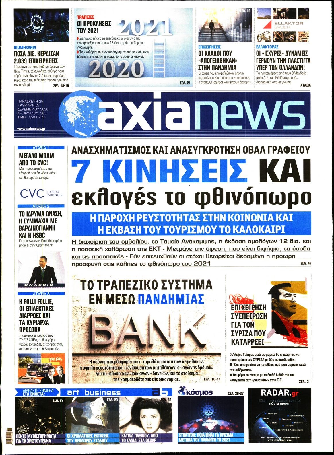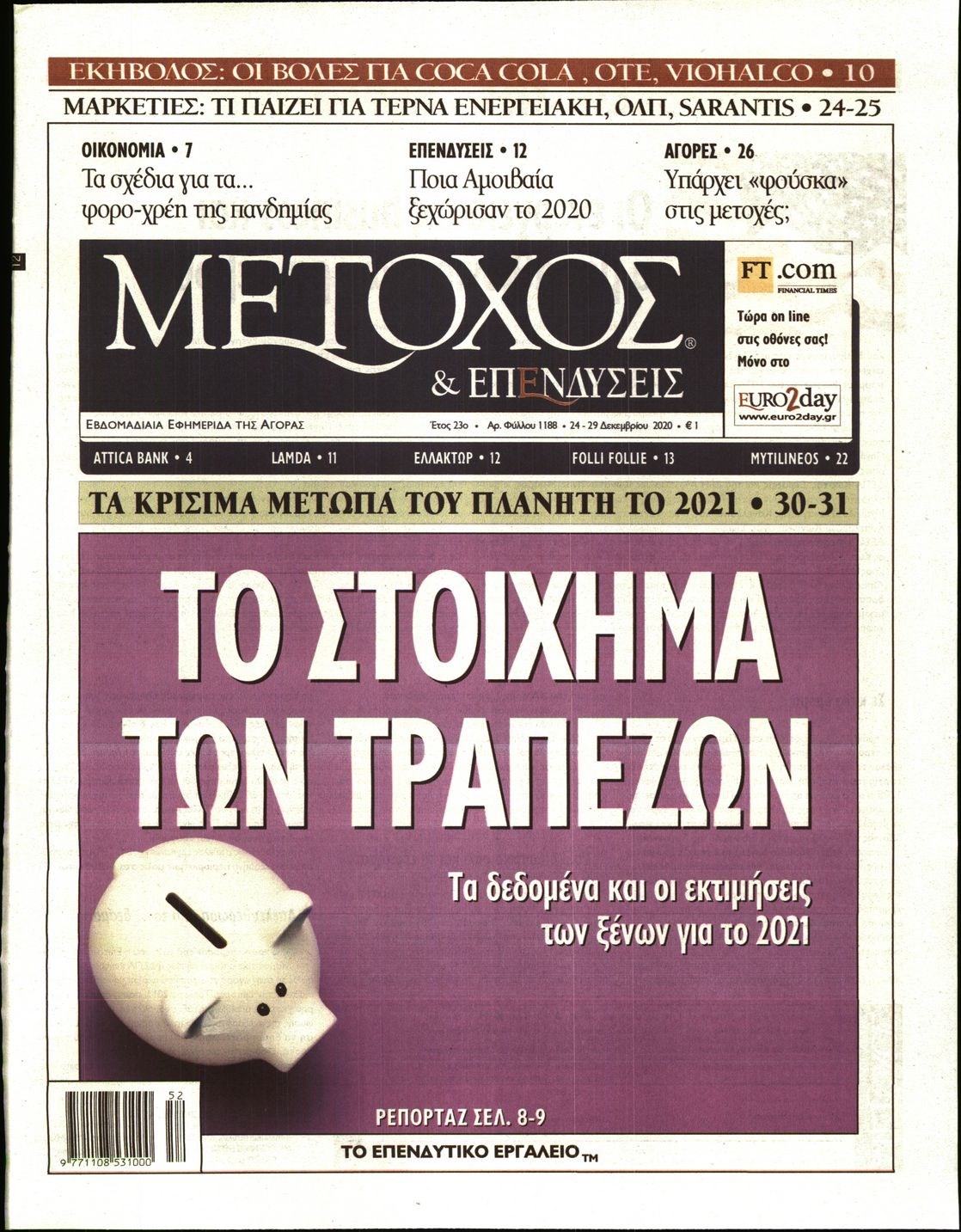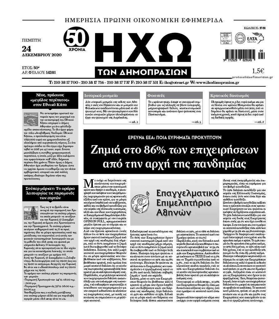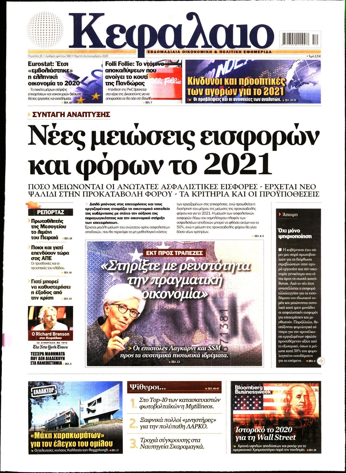 Οι οικονομικές εφημερίδες 24/12/2020 Διονύσης Νίκκας 06:32, Πέμπτη 24 Δεκεμβρίου 2020 Media Διαβάστε τα πρωτοσέλιδα των οικονομικών εφημερίδων… ΟΙΚΟΝΟΜΙΚΕΣ ΕΦΗΜΕΡΙΔΕΣ Μοιράσου το: σχολίασε κι εσύ (0 σχόλια) Ακολουθήστε το enikos.gr στο Google News και μάθετε πρώτοι όλες τις ειδήσεις Δείτε όλες τις τελευταίες ειδήσεις από την Ελλάδα και τον Κόσμο στο enikos.gr Ειδήσεις Ροή Ειδήσεων 2 ώρες πριν Υπόθεση Έπσταϊν: Το Υπουργείο Δικαιοσύνης δημοσιοποίησε μια σειρά από εξαιρετικά επεξεργασμένα αρχεία – «Λείπουν τα πιο σημαντικά έγγραφα», λένε οι Δημοκρατικοί 1 ώρα πριν Ο «χάρτης» με τις αυξήσεις και τις φοροελαφρύνσεις του 2026 – Ποιοι και πόσα κερδίζουν 11 ώρες πριν Χριστούγεννα στα μπλόκα: Επιμένουν στις κινητοποιήσεις τους οι αγρότες – Ανοίγουν τα διόδια το Σαββατοκύριακο 2 ώρες πριν ΟΝΕΧ – MEGATUGS: Ξεκίνησε η ναυπήγηση ρυμουλκών στην Ελλάδα – Προθάλαμος πολεμικών πλοίων – Δείτε φωτογραφίες και βίντεο 2 ώρες πριν Καιρός: Αλλαγή σκηνικού σήμερα με βροχές και πτώση της θερμοκρασίας – Οι προβλέψεις των μετεωρολόγων για τα Χριστούγεννα 4 ώρες πριν Αυγά: Πόσα μπορείτε να τρώτε την ημέρα με ασφάλεια για μέγιστη πρόσληψη πρωτεΐνης 4 ώρες πριν Οπτική ψευδαίσθηση: Μόνο αν είσαι ο Σέρλοκ Χολμς θα βρεις τον αριθμό «87» σε 7 δευτερόλεπτα 2 ώρες πριν Αρχαιολόγοι ανακάλυψαν σε χωράφι απεικόνιση 600 ετών ενός Αγίου – Τα στοιχεία που δείχνουν ότι μαρτύρησε 55 λεπτά πριν Αγχώνεται για το χριστουγεννιάτικο δώρο που πήρε στην πλούσια σύντροφό του – «Φοβάμαι πως θα το βρει φθηνιάρικο, φοράει βραχιόλια Cartier» 6 λεπτά πριν Κρήτη: «Πίεση διαρκείας» με νέες αφίξεις μεταναστών – Τρεις επιχειρήσεις διάσωσης νότια του νησιού 15 λεπτά πριν Η χήνα… που πέρασαν για κλέφτη: Έσπασε την πόρτα προκαλώντας πανικό 22 λεπτά πριν Θεσσαλονίκη: 24ωρη λειτουργία σήμερα σε μετρό και 6 λεωφορειακές γραμμές 30 λεπτά πριν «Porto Leone: Στη γειτονιά με τα κόκκινα φανάρια» – Ο Χρόνης αποκαλύπτει στην Αλεξάνδρα το μυστικό για το παιδί της Λένας 38 λεπτά πριν Νέες αιτήσεις για ίδρυση μη κρατικών πανεπιστημίων στο πρώτο δίμηνο του 2026 – Τι είπε η Ζαχαράκη ENIKOS NETWORK Είστε μόνιμα απρόσεκτοι; 3 σημάδια που δείχνουν ότι μπορεί να είναι σύμπτωμα πάθησης Πόσα κιλά παίρνουμε πραγματικά τα Χριστούγεννα, σύμφωνα με την επιστήμη – Πώς να το αποτρέψουμε; Mega χριστουγεννιάτικη φορολοταρία: «Κλείδωσε» η ημερομηνία για την κλήρωση – Ερωτήσεις και απαντήσεις Αναστολή μέτρων αναγκαστικής εκτέλεσης για κτηνοτρόφους που πλήττονται από την ευλογιά των αιγοπροβάτων Χαρτογραφώντας το «σημείο χωρίς επιστροφή»: Για πρώτη φορά αποκαλύπτεται με λεπτομέρεια το ακανθώδες όριο της ατμόσφαιρας τ... Η Google καταργεί τη λειτουργία «dark web report» – Πώς θα μπορούν οι χρήστες να διαγράφουν τα δεδομένα τους περισσότερα 09:30 , Σάββατο 20 Δεκεμβρίου 2025 «Porto Leone: Στη γειτονιά με τα κόκκινα φανάρια» – Ο Χρόνης αποκαλύπτει στην Αλεξάνδρα το μυστικό για το παιδί της Λένας Η μεγάλη δραματική σειρά του Apha «Porto Leone: Στη γειτονιά με τα κόκκινα φανάρια» μας μεταφέ... 08:14 , Σάββατο 20 Δεκεμβρίου 2025 Τρομεροί γονείς: Η Μαρία Καβογιάννη εισβάλλει στο σπίτι της οικογένειας Στεφανίδη Όσα θα δούμε στο νέο διπλό επεισόδιο της σειράς «Τρομεροί γονείς», σήμερα Σάββατο 20 Δεκεμβρίο... 05:48 , Σάββατο 20 Δεκεμβρίου 2025 Οι οικονομικές εφημερίδες 20/12/2025 Διαβάστε τα πρωτοσέλιδα από τις οικονομικές εφημερίδες, σήμερα 20/12/2025. 05:43 , Σάββατο 20 Δεκεμβρίου 2025 Οι αθλητικές εφημερίδες 20/12/2025 Διαβάστε τα πρωτοσέ