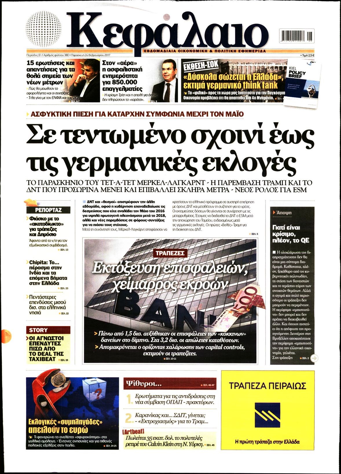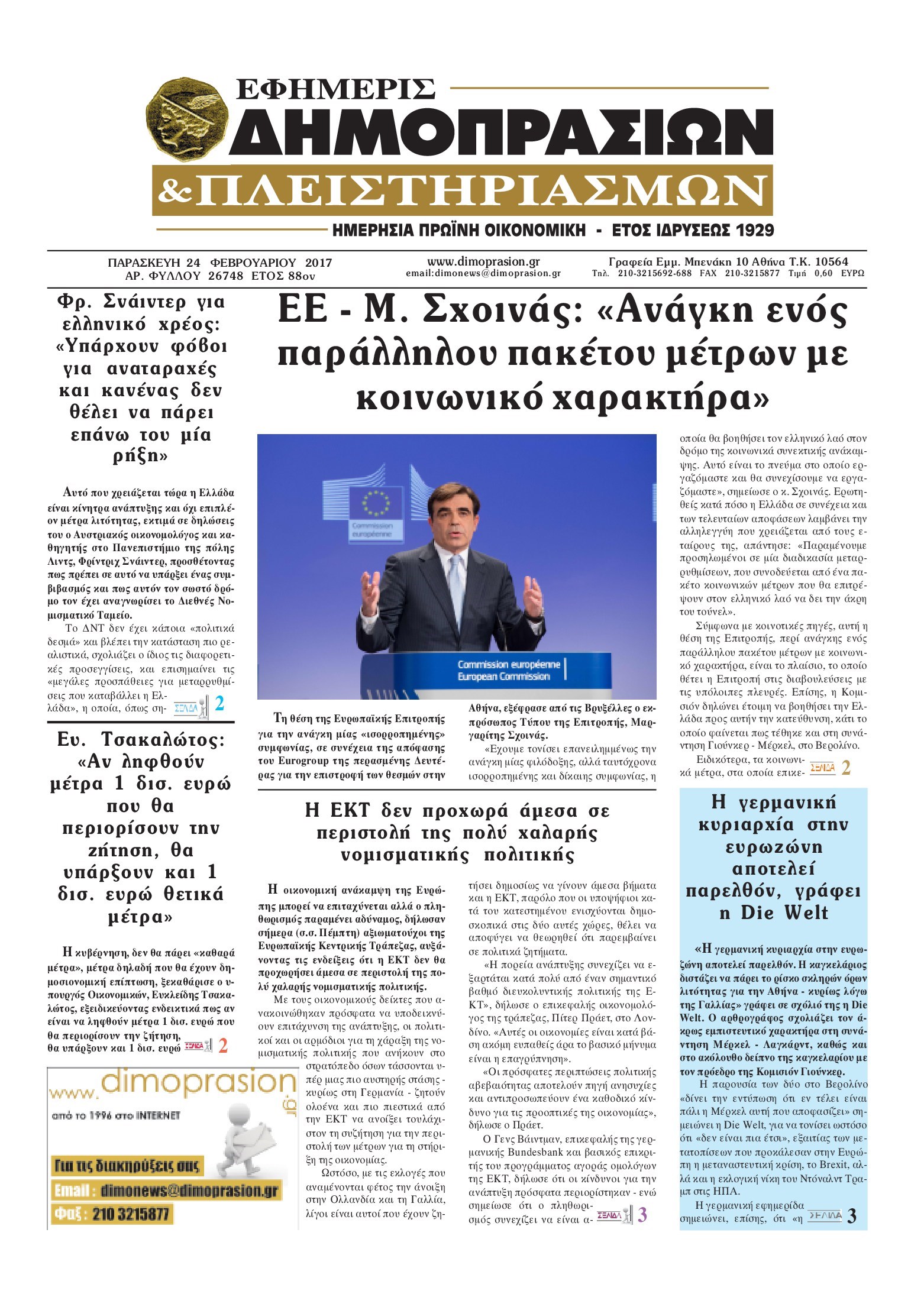 Οι οικονομικές εφημερίδες 24/2/2017 Enikos Newsroom 06:31, Παρασκευή 24 Φεβρουαρίου 2017 Media Διαβάστε τα σημερινά πρωτοσέλιδα των οικονομικών εφημερίδων: ΟΙΚΟΝΟΜΙΚΕΣ ΕΦΗΜΕΡΙΔΕΣ ΠΡΩΤΟΣΕΛΙΔΑ Μοιράσου το: σχολίασε κι εσύ (0 σχόλια) Ακολουθήστε το enikos.gr στο Google News και μάθετε πρώτοι όλες τις ειδήσεις Δείτε όλες τις τελευταίες ειδήσεις από την Ελλάδα και τον Κόσμο στο enikos.gr Ειδήσεις Ροή Ειδήσεων 4 ώρες πριν Εκτός ευρωομάδας ΣΥΡΙΖΑ ο Νίκος Παππάς μετά την επίθεση στον δημοσιογράφο Νίκο Γιαννόπουλο – Η μήνυση και οι νέες δηλώσεις 5 ώρες πριν «Αγριεύουν» οι αγρότες: «Δεν συντρέχει λόγος συνάντησης με τον πρωθυπουργό» – Ώρα αποφάσεων στη σύσκεψη της Πέμπτης 5 ώρες πριν Κυψέλη: Χωρίς την οικογένειά της δίπλα της απολογήθηκε η 16χρονη – «Της είχε επιτεθεί κάποιος για να την βιάσει, φοβήθηκε και κυκλοφορούσε με μαχαίρι» 4 ώρες πριν Politico: Το πρόβλημα της Ευρώπης δεν είναι το Βέλγιο αλλά ο Ντόναλντ Τραμπ 6 ώρες πριν Αλεξανδρούπολη: Πολυοργανική ανεπάρκεια λόγω υποσιτισμού η αιτία θανάτου του 3χρονου αγοριού 4 ώρες πριν Μυστήριο με τεράστιες κυκλικές πέτρες 200 κιλών – Ανακαλύφθηκαν τυχαία κατά τη διάρκεια οδικών έργων και κανείς δεν ξέρει από πού προέρχονται 5 ώρες πριν Ύπνος: Ειδικός εξηγεί τον πραγματικό λόγο που ξυπνάτε στις 4 τα ξημερώματα – Ο ρόλος των ορμονών και του κιρκάδιου ρυθμού 6 ώρες πριν Αριθμολογία: Οι άνθρωποι που έχουν γεννηθεί αυτές τις 4 ημερομηνίες, είναι τρυφεροί και αγαπούν ανιδιοτελώς 18 ώρες πριν 20 χρόνια τα Χριστούγεννα ξεκινούν στα Public με μεγάλη ποικιλία σε δώρα! 12 λεπτά πριν Βραζιλία: Το Κογκρέσο ενέκρινε σχέδιο νόμου για τη μείωση της ποινής του πρώην προέδρου Μπολσονάρου 27 λεπτά πριν Ένταση στο περιφερειακό συμβούλιο Δυτικής Μακεδονίας: Φωνές, σπρωξιές και διακοπή – Δείτε βίντεο 41 λεπτά πριν Σουδάν: Επιδρομή drone σε χωριό του Νότιου Κορντοφάν – Οκτώ νεκροί 57 λεπτά πριν Αλ Τσαντίρι Νιουζ: Η κόρη της Πάολα στο κοινό – Η ατάκα Λαζόπουλου που την έκανε να «κοκκινήσει» 1 ώρα πριν Ρωσία: Ουκρανικές δυνάμεις έπληξαν πλοίο στο λιμάνι του Ροστόφ – Αναφορές για θύματα ENIKOS NETWORK Αϋπνία: Το κόλπο που θα σας βοηθήσει να κοιμηθείτε απόψε – Είναι απλό και έχει αποτέλεσμα 2,6 εκατομμύρια πολίτες έχουν ήδη εμβολιαστεί κατά της γρίπης ΕΛΣΤΑΤ: Τι δείχνουν τα νέα στοιχεία για τις ηλεκτρονικές παραγγελίες των επιχειρήσεων ΚΕΠΕ: Οι 3 διακριτές συμβολές των ΜμΕ και της μεταποίησης στην ελληνική οικονομία Χαρτογραφώντας το «σημείο χωρίς επιστροφή»: Για πρώτη φορά αποκαλύπτεται με λεπτομέρεια το ακανθώδες όριο της ατμόσφαιρας τ... Η Google καταργεί τη λειτουργία «dark web report» – Πώς θα μπορούν οι χρήστες να διαγράφουν τα δεδομένα τους περισσότερα 02:30 , Πέμπτη 18 Δεκεμβρίου 2025 Αλ Τσαντίρι Νιουζ: Η κόρη της Πάολα στο κοινό – Η ατάκα Λαζόπουλου που την έκανε να «κοκκινήσει» Γιορτινή διάθεση και ευχάριστες στιγμές γέμισε η αποψινή, τελευταία για το 2025, εκπομπή του «... 22:24 , Τετάρτη 17 Δεκεμβρίου 2025 Το Σπίτι Δίπλα Στο Ποτάμι: Σε κίνδυνο η υγεία του Απόστολου – Τι θα δούμε απόψε “Το Σπίτι Δίπλα στο Ποτάμι” ξετυλίγει το νήμα της ζωής των πέντε αδελφών με καταισ... 21:14 , Τετάρτη 17 Δεκεμβρίου 2025 Παιχνίδια Εκδίκησης: Θα καταφέρει ο Χρήστος να κλονίσει την εμπιστοσύνη της Μάγιας απέναντι στον Άγη; Τα «Παιχνίδια Εκδίκησης» έρχονται απόψε στις 22:30, στον Αντ1, με το τελευταίο επεισόδιο της χ... 20:57 , Τετάρτη 17 Δεκεμβρίου 2025 Άγιος Έρωτας: Η Χλόη καταθέτει εναντίον του πατέρα της και ο Χάρης αποκαλ