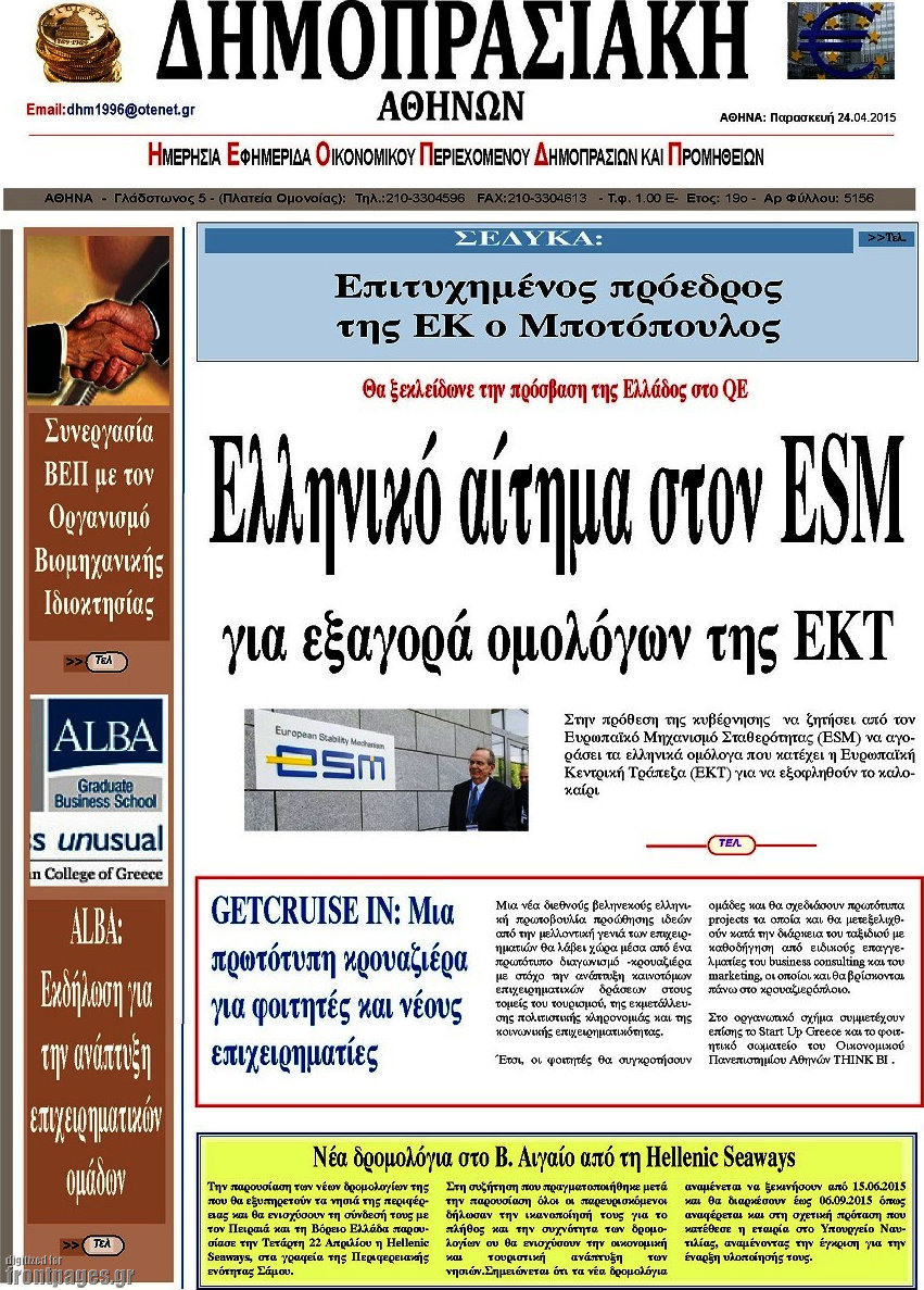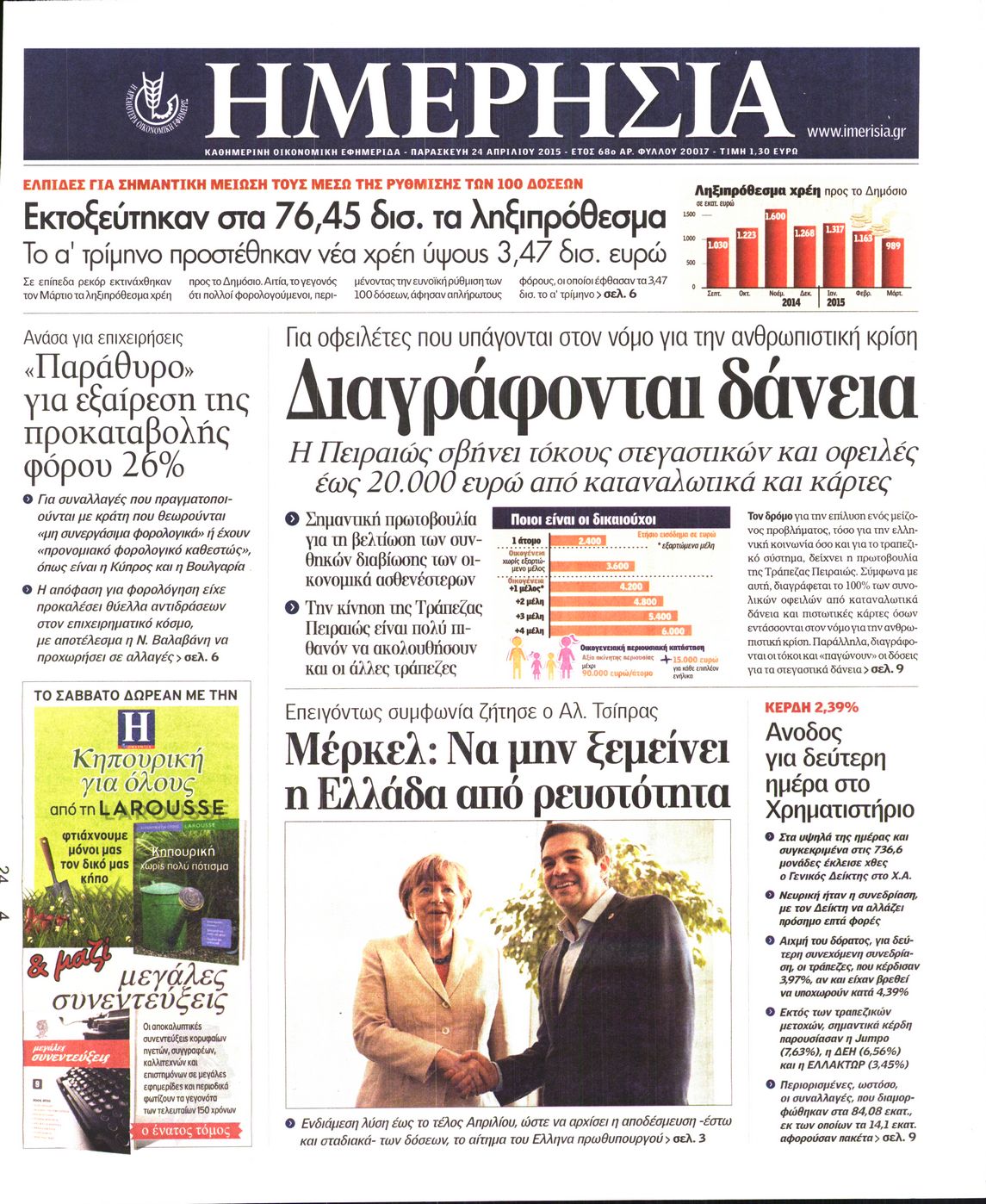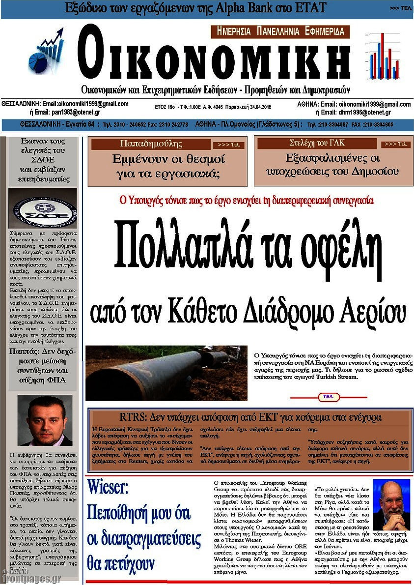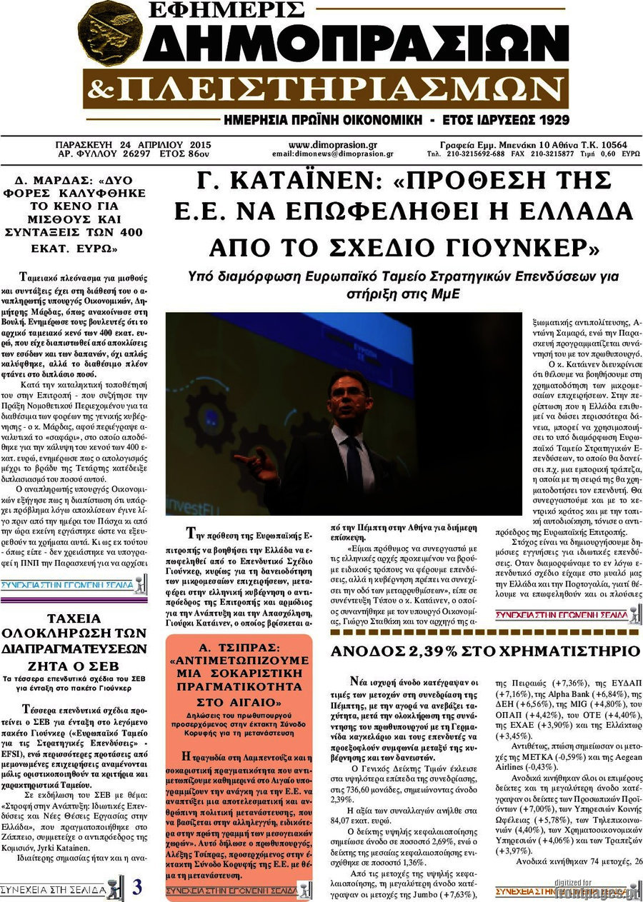 Οι οικονομικές εφημερίδες 24/4/2015 Enikos Newsroom 07:25, Παρασκευή 24 Απριλίου 2015 Media Διαβάστε τα σημερινά πρωτοσέλιδα των οικονομικών εφημερίδων: ΕΦΗΜΕΡΙΔΕΣ ΟΙΚΟΝΟΜΙΚΕΣ ΕΦΗΜΕΡΙΔΕΣ ΠΡΩΤΟΣΕΛΙΔΑ Μοιράσου το: σχολίασε κι εσύ (0 σχόλια) Ακολουθήστε το enikos.gr στο Google News και μάθετε πρώτοι όλες τις ειδήσεις Δείτε όλες τις τελευταίες ειδήσεις από την Ελλάδα και τον Κόσμο στο enikos.gr Ειδήσεις Ροή Ειδήσεων 2 ώρες πριν Εθνικό Απολυτήριο: Από το σχολικό έτος 2027-2028 ξεκινά η εφαρμογή του – Δεν καταργούνται οι πανελλήνιες 3 ώρες πριν Τέμπη: Τα «γυμνά» καθίσματα του Intercity 62 στη φωτιά και οι τραγικές συνέπειες – «Ενδεχομένως κάποιοι να είχαν γλιτώσει, εάν ήταν πυράντοχα» 2 ώρες πριν Αμβούργο: Συνελήφθη Έλληνας από την Κομοτηνή για απόπειρα σαμποτάζ σε πολεμικά πλοία 1 ώρα πριν Δολοφονία στη Νέα Πέραμο: Για κατάθεση στο Τμήμα Ανθρωποκτονιών η σύντροφος του 27χρονου – Στοιχεία για το κίνητρο της εκτέλεσης ψάχνουν οι Αρχές 1 ώρα πριν «Αναβρασμός» για τον 13ο και 14ο μισθό στο Δημόσιο: Εν αναμονή δημοσίευσης της απόφασης του ΣτΕ – Τι ζητεί η ΑΔΕΔΥ, τι αναφέρει η Ένωση Δικαστών και Εισαγγελέων 2 ώρες πριν Τα 3 ζώδια που θα δουν τη ζωή τους να βελτιώνεται αισθητά μέχρι τα τέλη Φεβρουαρίου – «Τα πράγματα πηγαίνουν προς το καλύτερο» 9 ώρες πριν Ο πατέρας του ανακάλυψε πως δεν είναι το βιολογικό του παιδί – «Ελπίζαμε να ήταν ψέμα» 6 ώρες πριν Οι 9 φράσεις που χρησιμοποιούν οι πανέξυπνοι άνθρωποι και οι υπόλοιποι απλώς… δεν καταλαβαίνουν 3 ώρες πριν Είναι τελικά επικίνδυνο να κάθεστε σε μια δημόσια τουαλέτα; Η επιστήμη ίσως σας εκπλήξει 4 λεπτά πριν Θοδωρής Κολυδάς: Η ανάρτηση με αιχμές για «τηλεοπτική δραματοποίηση» του καιρού – «Αγγίζει τα όρια της υπερβολής» 9 λεπτά πριν Λάρισα: Συναγερμός για φωτιά σε διαμέρισμα – Αναφορές για εγκλωβισμένο – ΒΙΝΤΕΟ και ΦΩΤΟ 17 λεπτά πριν Πωλίνα: «Με φλερτάρουν μόνο νεότεροι άνδρες, έχω κάνει σχέση με μικρότερο» 23 λεπτά πριν Εισβολή ληστών σε σπίτι στα Μεσόγεια: Έβαλαν χειροπέδες στους ιδιοκτήτες και έφυγαν με 65.000 ευρώ και κοσμήματα μεγάλης αξίας 28 λεπτά πριν Boυλή: Στην Ολομέλεια αύριο το νομοσχέδιο για τη νόμιμη μετανάστευση – Τι προβλέπει ENIKOS NETWORK Άδωνις Γεωργιάδης: Σε app για το κινητό τηλέφωνο το Εθνικό Μητρώο Νεοπλασιών ΣΕΙΒ: Η ιατρική τεχνολογία, μοχλός βιωσιμότητας και ισότιμης πρόσβασης ΙΜΕ ΓΣΕΒΕΕ: Δεν επαρκεί το μηνιαίο εισόδημα για 6 στα 10 ελληνικά νοικοκυριά – «Θηλιά» η ακρίβεια σε τρόφιμα, ενέργεια και ... Πιερρακάκης στη Handelsblatt: Πρότυπο για την Ευρώπη το ελληνικό μοντέλο ενάντια στη φοροδιαφυγή Ευπάθεια στο moltbook ai αποκαλύπτει email, tokens σύνδεσης και api keys Αυτός είναι ο ρόλος της μικρής τρύπας στους νυχοκόπτες – «Είμαι ο μόνος που δεν το ήξερε;»» περισσότερα 10:57 , Τρίτη 03 Φεβρουαρίου 2026 Ακούστε το σχόλιο του Νίκου Χατζηνικολάου 3/2/2026 Ακούστε το σχόλιο του Νίκου Χατζηνικολάου στον ραδιοφωνικό σταθμό Realfm 97,8, την Τρίτη 3 Φεβ... 10:42 , Τρίτη 03 Φεβρουαρίου 2026 Τηλεθέαση (2/2): Ανατροπή στους πίνακες για την πρωινή ψυχαγωγική ζώνη Στις πρωινές εκπομπές, οι «Αταίριαστοι» του ΣΚΑΪ βρέθηκαν στην κορυφή της τηλεθέασης τόσο στο ... 05:48 , Τρίτη 03 Φεβρουαρίου 2026 Οι οικονομικές εφημερίδες 3/2/2026 Διαβάστε τα πρωτοσέλιδα από τις οικονομικές εφημερίδες, σήμερα 3/2/2026. 05:38 , Τρίτη 03 Φεβρουαρίου 2026 Οι πολιτικές εφημερίδες 3/2/2026 Διαβάστε τα πρωτοσέλιδα από τις πολιτικές εφημερίδες, σήμερα 3/2/2026. ΤΕΛΕΥΤΑΙΕΣ ΕΙΔΗΣΕΙΣ 4 λεπτά πριν Θοδωρής Κολυδάς: Η ανάρτηση με αιχμές για «τηλ